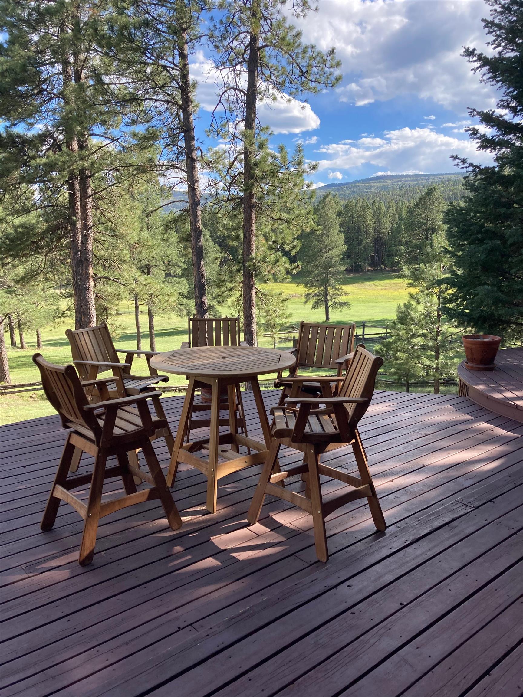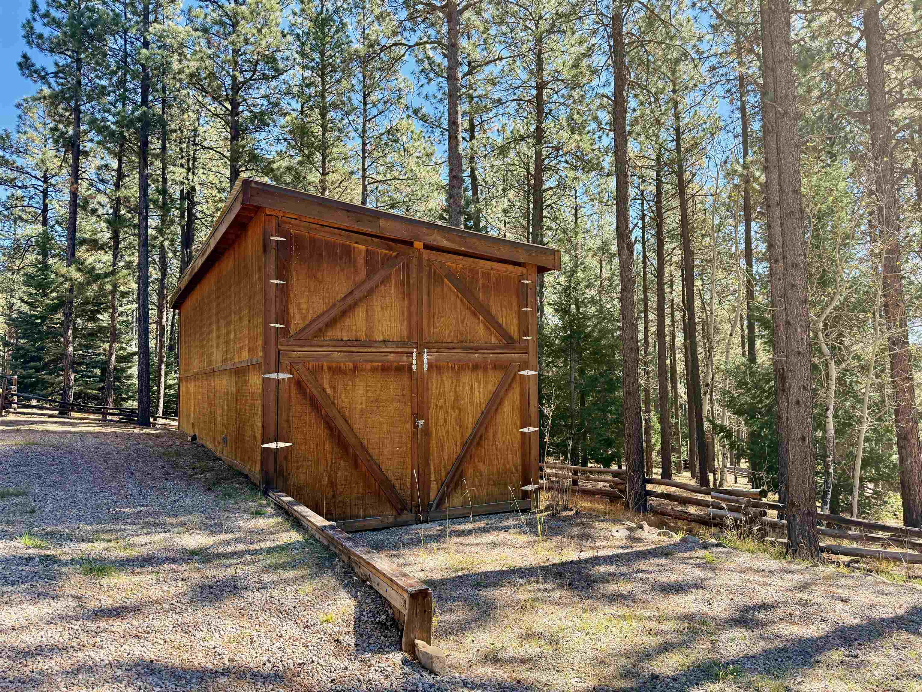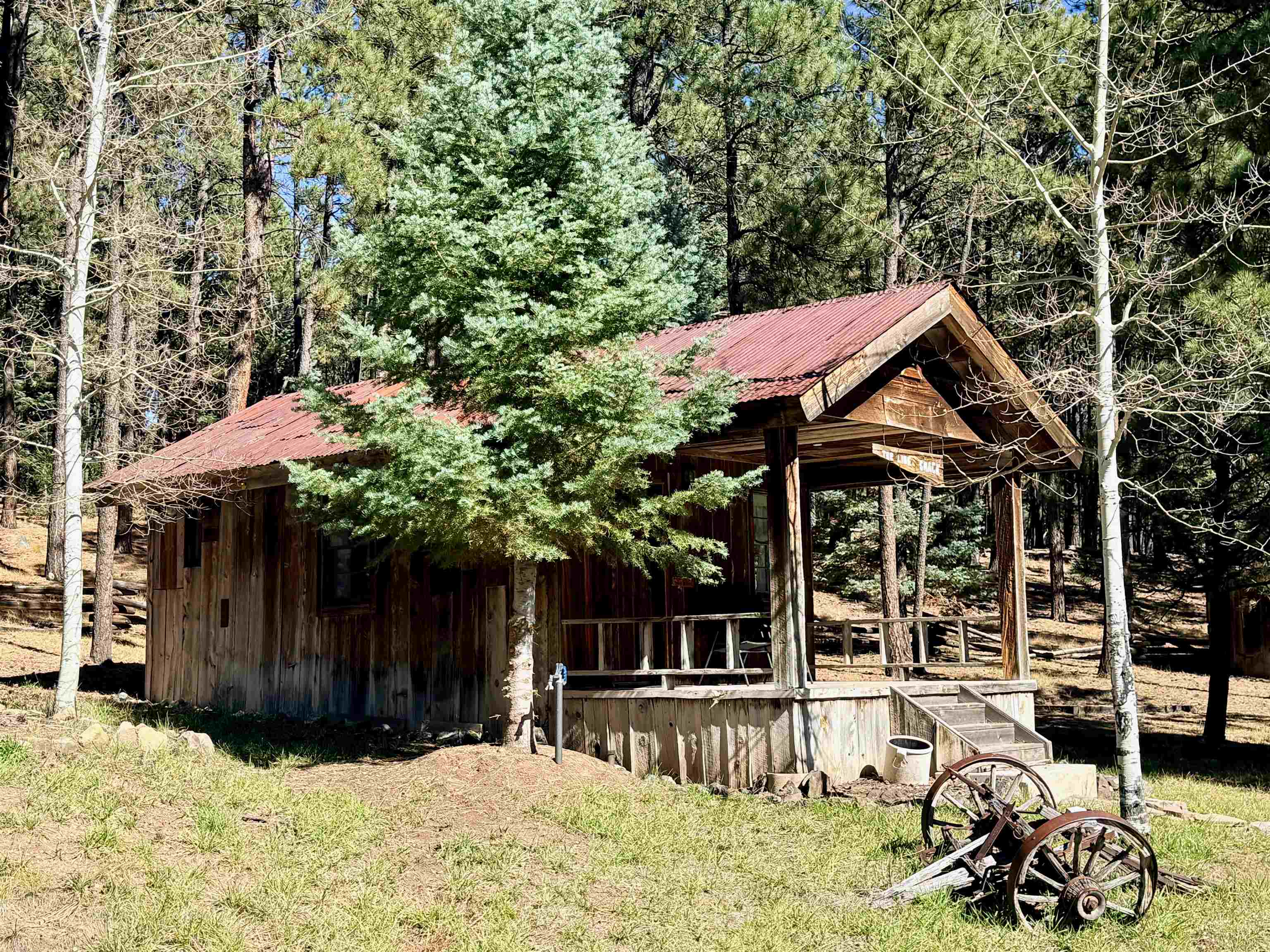 In the northern mountains of New Mexico, just off the Enchanted Circle in Angel Fire - One of the most beautiful properties in the Black Lake area. On approximately 11.83 acres of well maintained land, completely surrounded by split-rail fencing cut from the property. Sutton-built house, approximately 2645 sq-ft of heated living space, is perched on a hill with a large open deck overlooking mountain views, meadows, and a fenced in orchard of fruit trees. Vegetable garden, fenced to keep out the elk and deer-friends, is ready for spring planting. Hummingbird heaven. There is a guest house, approximately 280 sq-ft - 1 BDR, 1 BA, kitchen - made from 140 yr old barn wood from a ranch in Durango, CO. 1140 +/- sq-ft outbuilding houses an office/shop with workbench as well as a separate bay for storing equipment, 574 +/- sqft outbuilding can house a travel trailer, car or truck, etc. Deeded entry into Carson National Forest is a short distance down the road. Kit Carson fiber optic internet is run to house for lightning-fast communications. Get out of the heat and pressures of the city and work from the stress-free mountains of northern New Mexico where the average summer temperature is 76 degrees with little to no humidity and, better still, almost, if not, mosquito-free. Mosquitoes, chiggers, No-See-Ums, poisonous snakes, and more don't choose to live at this altitude. Angel Fire Resort with its family-friendly ski mountain, nationally recognized mountain bike terrain park, PGA-rated golf course, $15 mill country club, tennis and pickleball courts, etc. is only 8 miles away on all-weather roads. Angel Fire Airport, primarily for private aircraft, has a jet-capable runway and is also approximately 8 miles away. Advanced Air now operates 5 round-trips/week from Albuquerque. Please come visit!