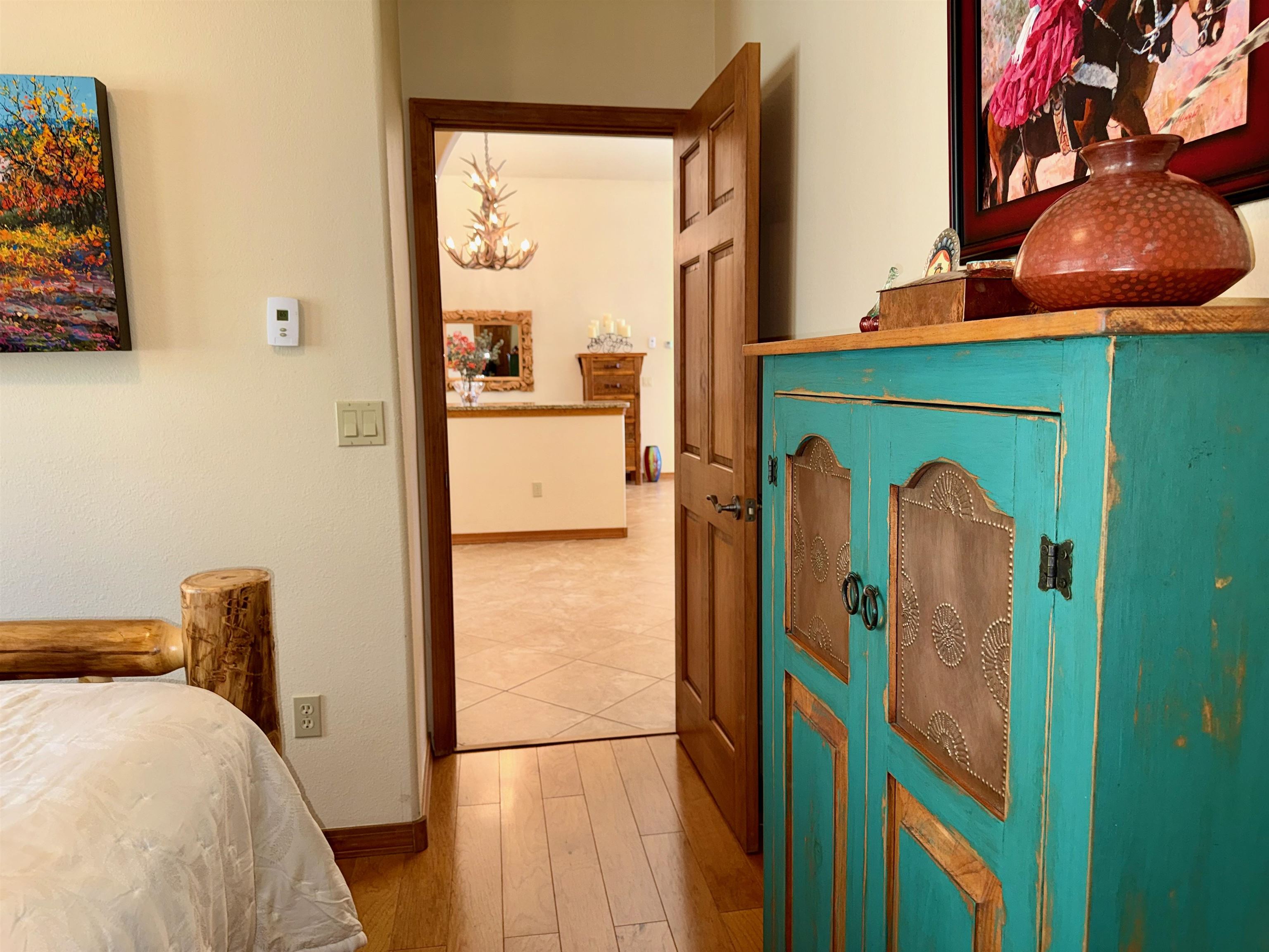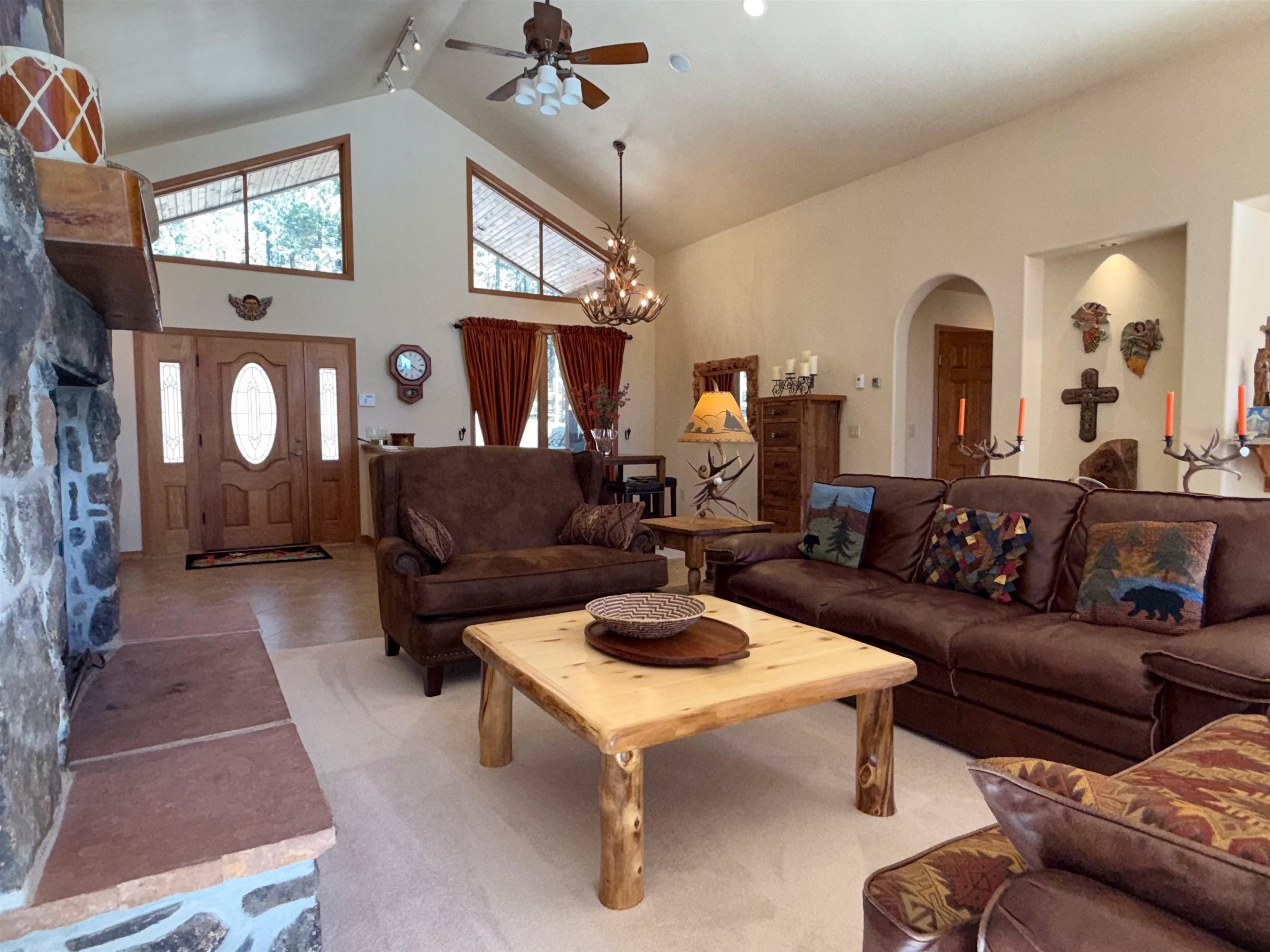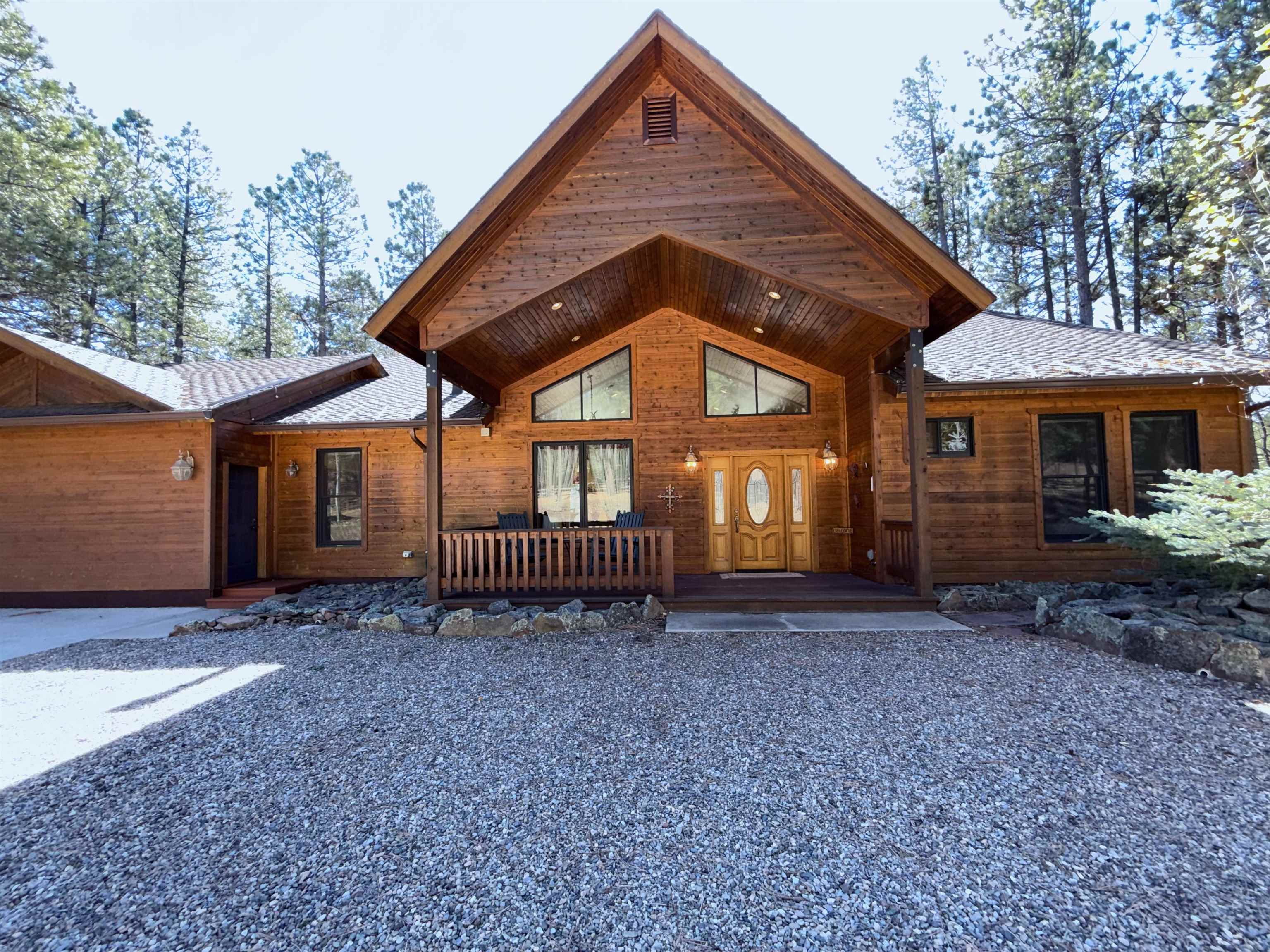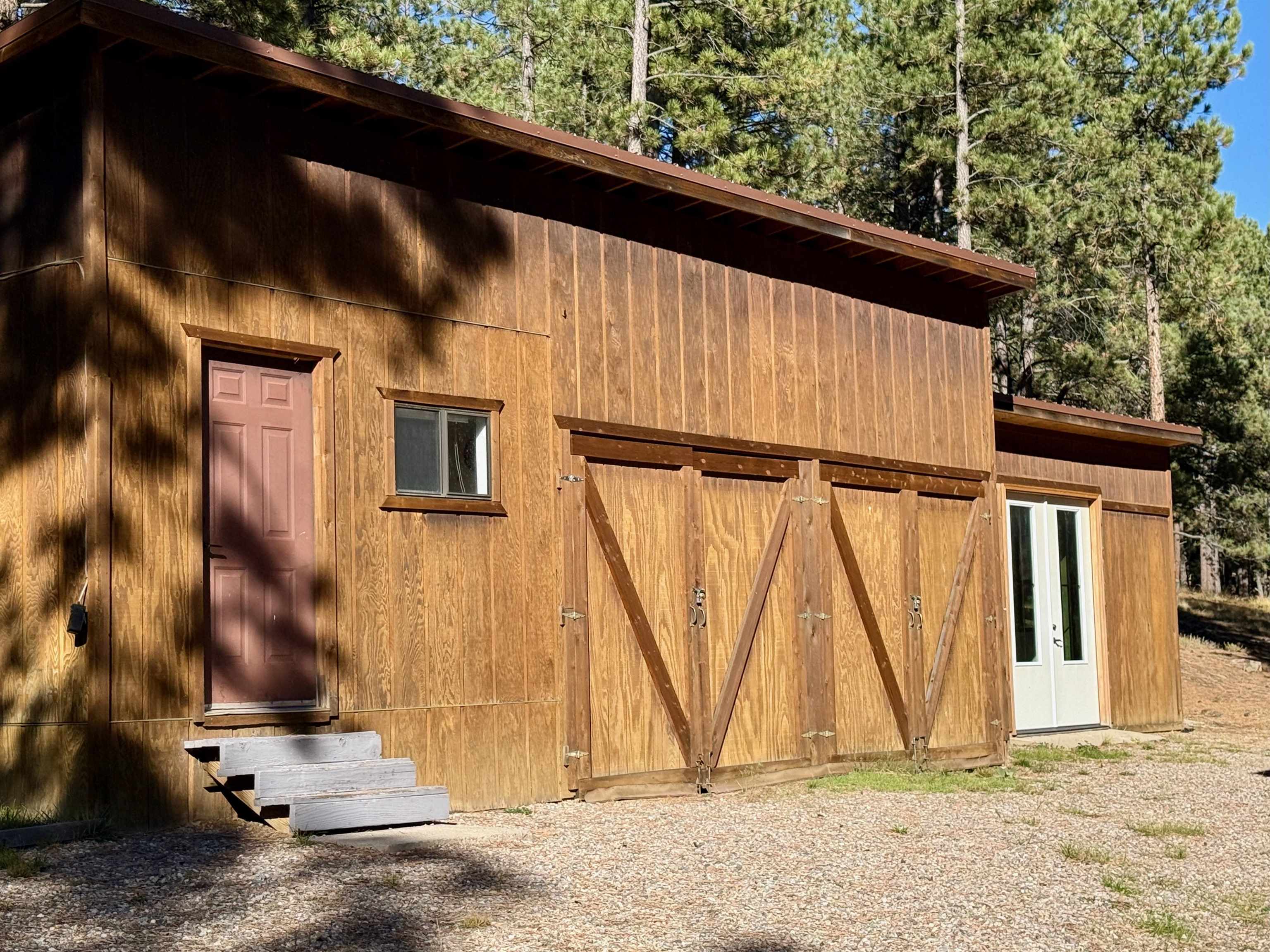In the northern mountains of New Mexico, just off the Enchanted Circle in Angel Fire - One of the most beautiful properties in the Black Lake area. On approximately 11.83 acres of well maintained land, completely surrounded by split-rail fencing cut from the property. Sutton-built house, approximately 2645 sq-ft of heated living space, is perched on a hill with a large open deck overlooking mountain views, meadows, and a fenced in orchard of fruit trees. Vegetable garden, fenced to keep out the elk and deer-friends, is ready for spring planting. Hummingbird heaven. There is a guest house, approximately 280 sq-ft - 1 BDR, 1 BA, kitchen - made from 140 yr old barn wood from a ranch in Durango, CO. 1140 +/- sq-ft outbuilding houses an office/shop with workbench as well as a separate bay for storing equipment, 574 +/- sqft outbuilding can house a travel trailer, car or truck, etc. Deeded entry into Carson National Forest is a short distance down the road. Kit Carson fiber optic internet is run to house for lightning-fast communications. Get out of the heat and pressures of the city and work from the stress-free mountains of northern New Mexico where the average summer temperature is 76 degrees with little to no humidity and, better still, almost, if not, mosquito-free. Mosquitoes, chiggers, No-See-Ums, poisonous snakes, and more don't choose to live at this altitude. Angel Fire Resort with its family-friendly ski mountain, nationally recognized mountain bike terrain park, PGA-rated golf course, $15 mill country club, tennis and pickleball courts, etc. is only 8 miles away on all-weather roads. Angel Fire Airport, primarily for private aircraft, has a jet-capable runway and is also approximately 8 miles away. Advanced Air now operates 5 round-trips/week from Albuquerque. Please come visit!