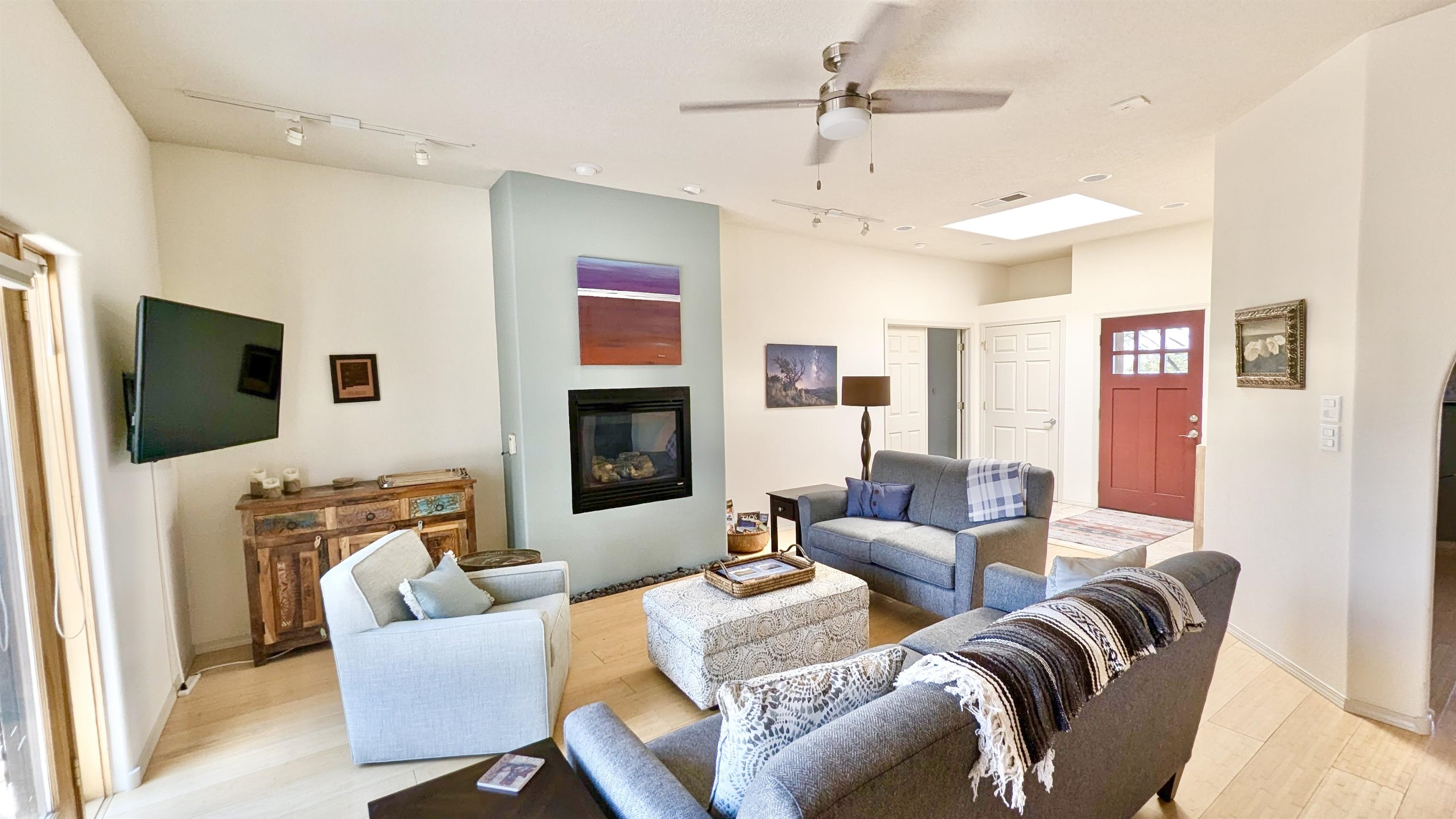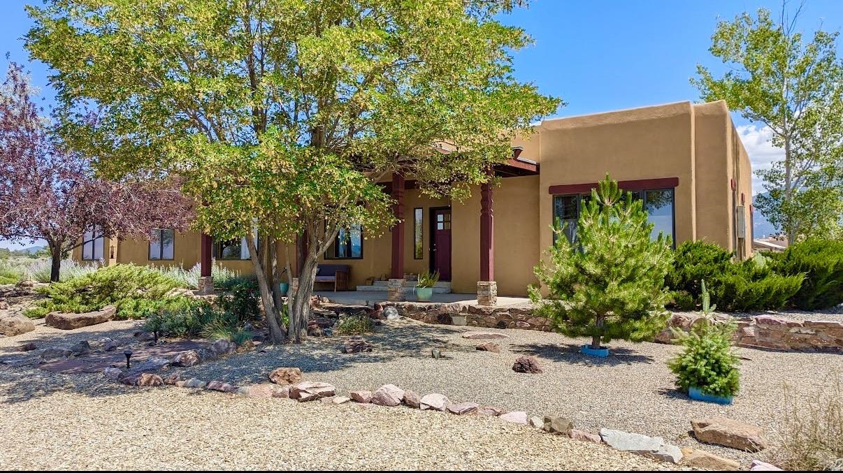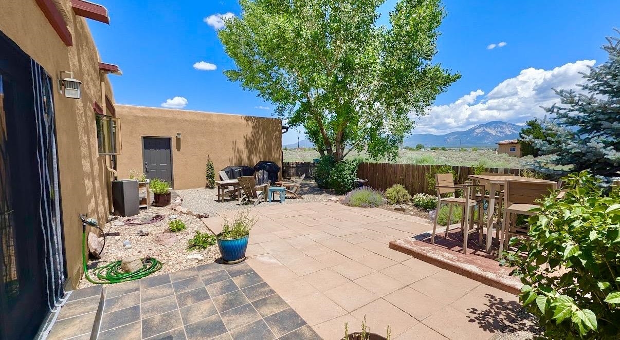 This beautifully maintained Pueblo-style home, constructed in 2006, offers breathtaking views, convenient access to Taos's renowned amenities, and a short drive to their attractions. Schedule a viewing appointment today to experience this four-bedroom, two-bathroom sanctuary nestled in the heart of Northern New Mexico. Spanning 2,224 square feet, with a 2-car attached garage, this home sits on a one-acre landscaped property that boasts a meticulously designed interior with tile and pergo style flooring, granite countertops, stainless steel appliances, and elegant decor. The open floor plan is well designed and is perfect for day to day living or for entertaining. The master suite is spacious and features a walk-in closet and master bathroom with a jetted tub and walk-in shower. The spacious outdoor living area is further enhanced by mature trees, a patio, a covered porch, and panoramic views of the majestic Sangre de Cristo mountains. Strategically located, the home is approximately 10 minutes from the Town of Taos, 25 minutes from the Taos Ski Valley, 9 minutes from the Rio Grande Gorge Bridge, and 5 minutes from the Taos Regional Airport, this home provides unparalleled convenience for those seeking a Northern New Mexico lifestyle. Please reach out if you would like to see this home in person.