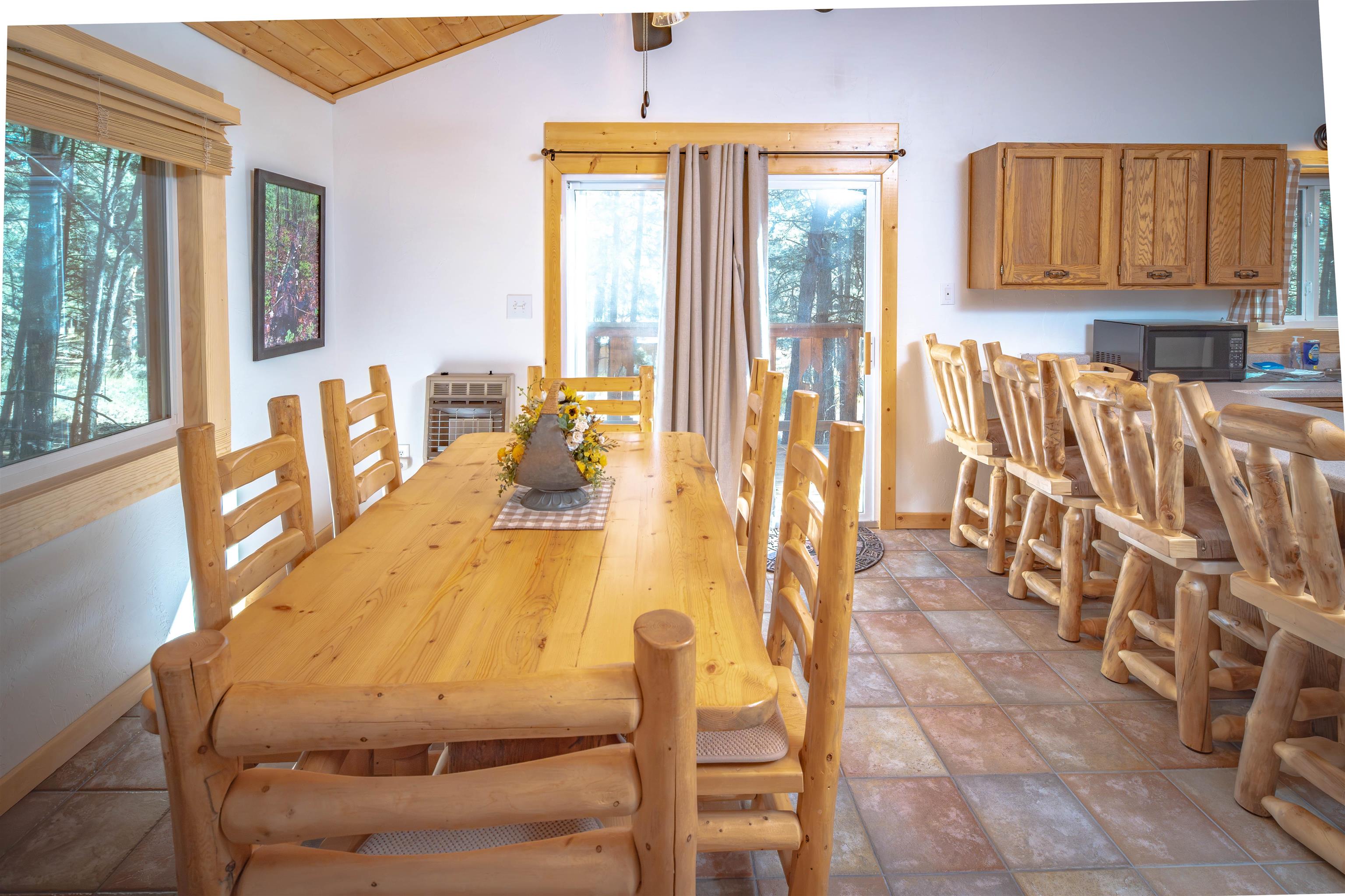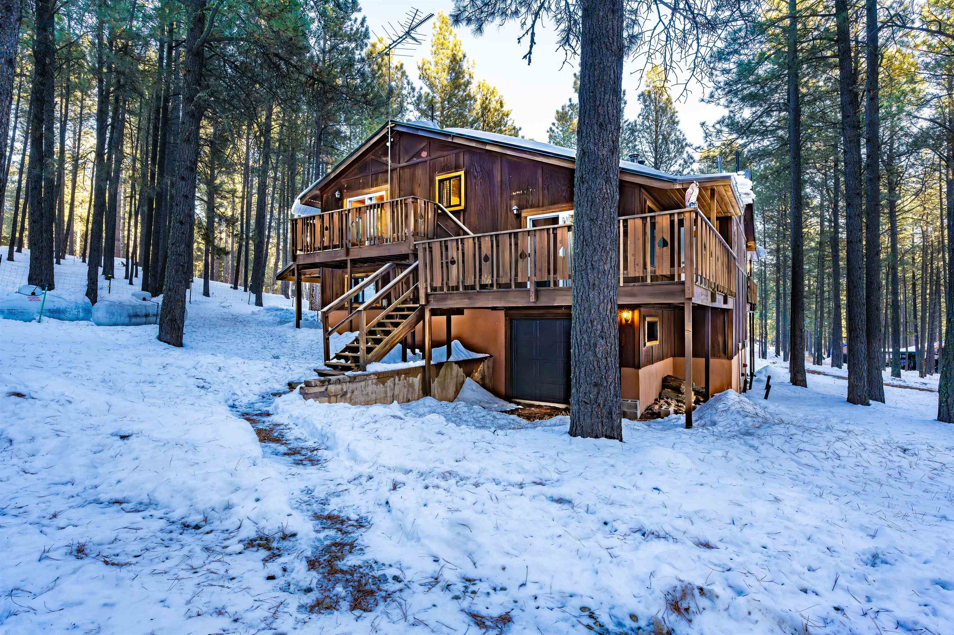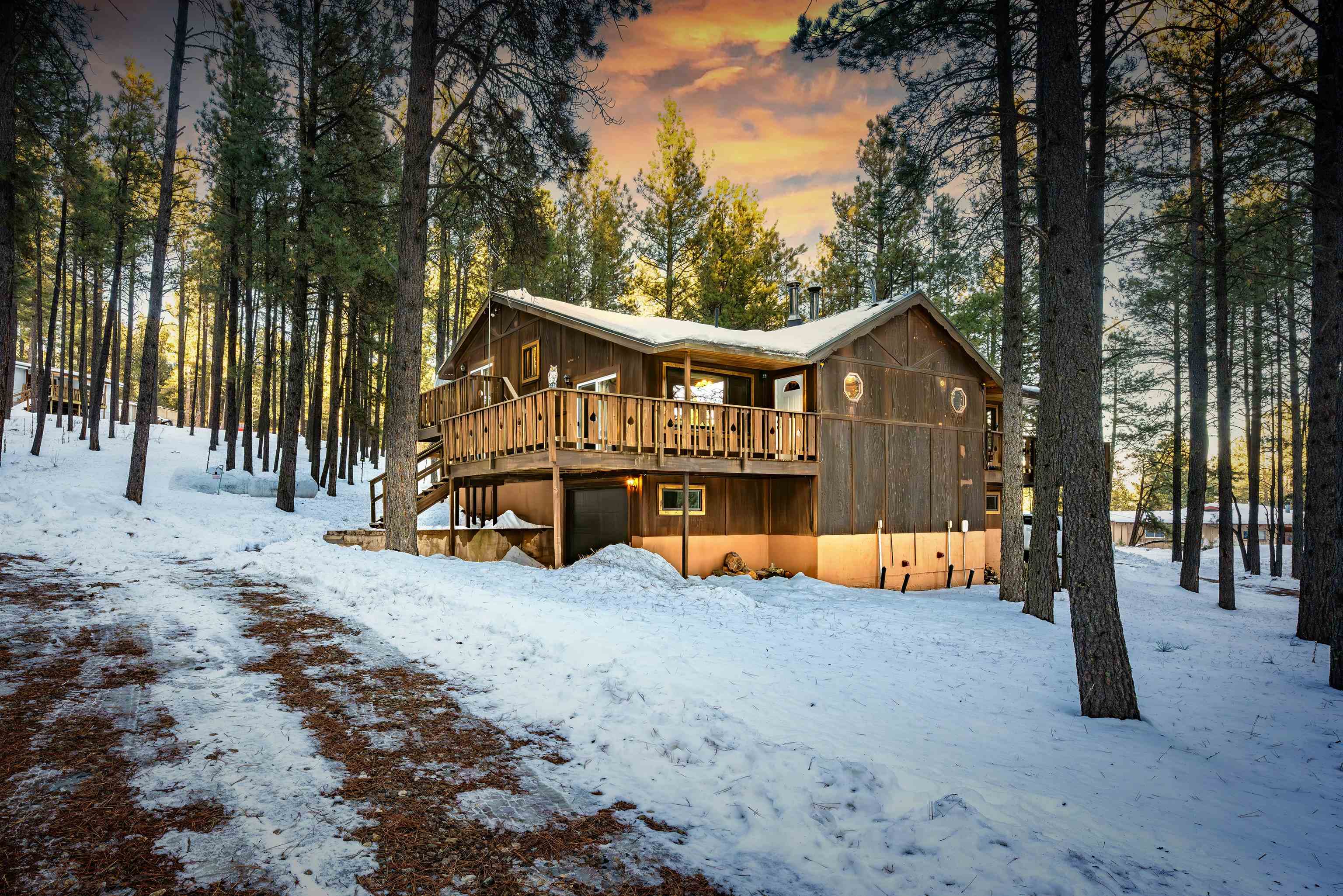 Looking for a mountain home that pays for itself? This well-kept duplex is already income-producing, with a month-to-month tenant on one side bringing in $2,000 a month! With an assumable VA loan at a 2.25% interest rate and seller financing as an option, this property makes for a great investment or mountain getaway that helps cover the bills. Together, the two mirrored units offer 2,930 sq ft of living space on a 1-acre wooded lot, just 10 minutes from Angel Fire Resort. Each side includes 3 bedrooms and 2 baths in a smart split-level layout that gives everyone a little privacy. The main entrance opens to a covered porch with tongue-and-groove ceilings and a welcoming foyer--perfect for kicking off your ski boots after a day on the slopes. The living room centers around a big wood-burning stove that keeps the whole place cozy on snowy days. Downstairs, you'll find two bedrooms, a full bath, and garage access; upstairs you've got the kitchen and primary bedroom. Every level has its own propane wall heater for extra comfort. Recent updates include brand-new windows throughout and tongue-and-groove accents that give the home its warm mountain feel. Each unit has separate utility meters, so it's easy to manage whether you live in one side or rent them both out. Outside the resort boundary--no membership fees here--saving you thousands every year. Fully furnished and turnkey, this quiet duplex is surrounded by tall pines and designed from the start to be both comfortable and income-generating.