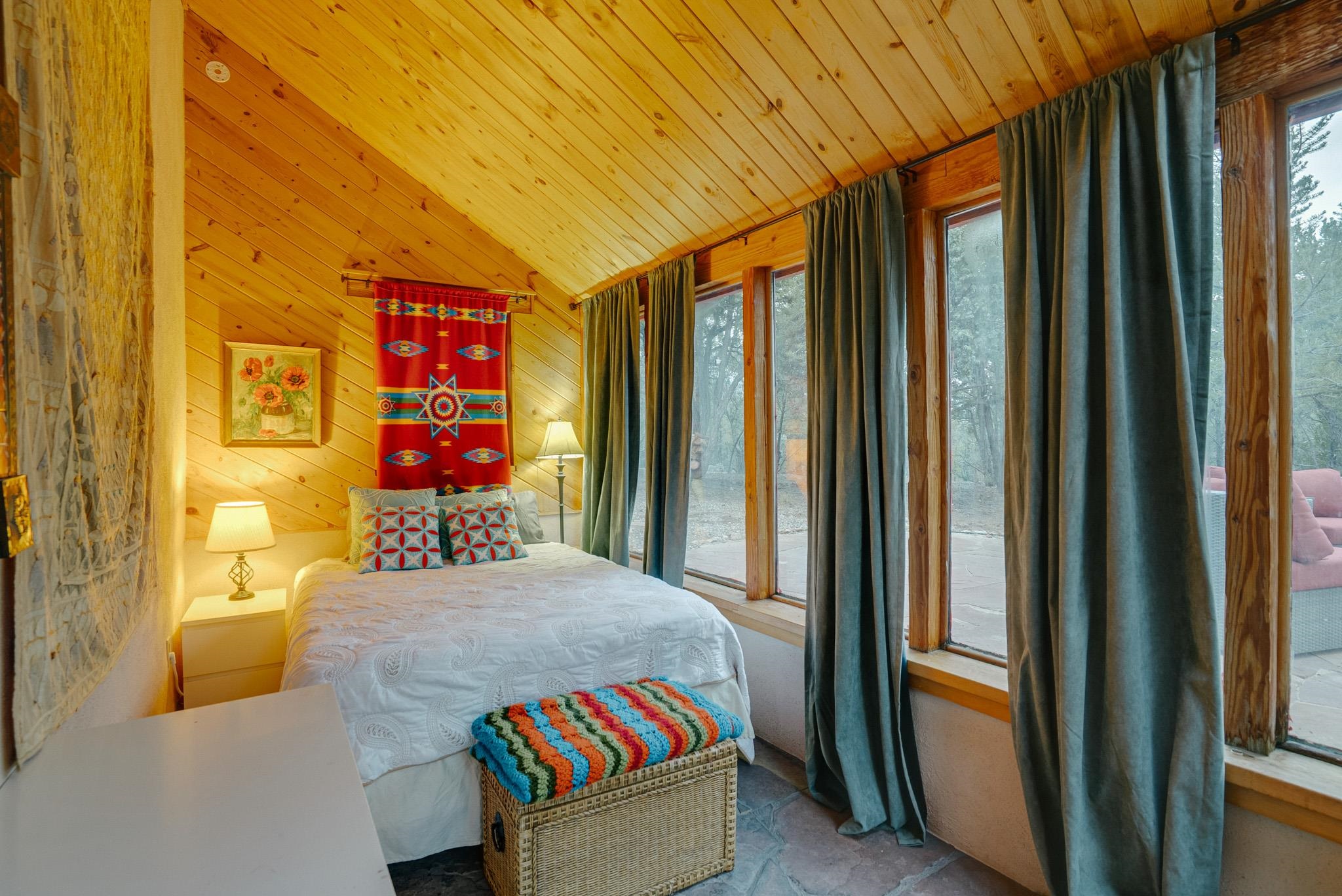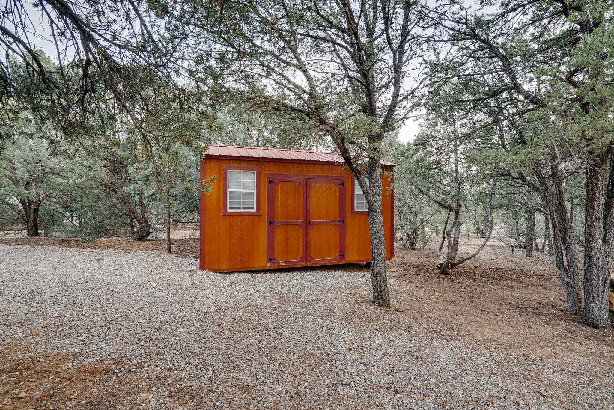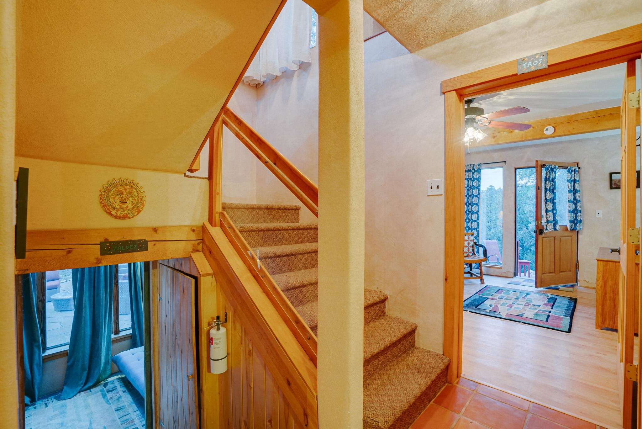 Welcome to your mountain getaway and get ready to play! This 3 bedroom/1.5 bath alpine escape on 2.5 acres has so much to offer: close proximity to Taos Ski Valley for winter enjoyment and nestled in the trees to keep cool in the summer! Load in family and friends and head toward Gallina Canyon to settle into this open concept, 3 level property with enough privacy to suit everyone. Trex decks surround the house for grilling and sharing beautiful meals, hefty rock work and flagstone patios hug the opposite side of the house, creating an ideal spot to gather around the fire, hot tub, play bocce ball, take an outdoor shower and make memories to last a lifetime. Whether you're chasing fresh powder, sunshine, or s'mores under the dark night sky, this property will deliver endless fun and fresh mountain air. If all this is not enough, kayaks are waiting for you in the large storage shed for river adventures and there is plenty of room for even more of your toys. This listing is being sold turnkey and has fiber optic in place. This property really has it all AND a successful rental track record.