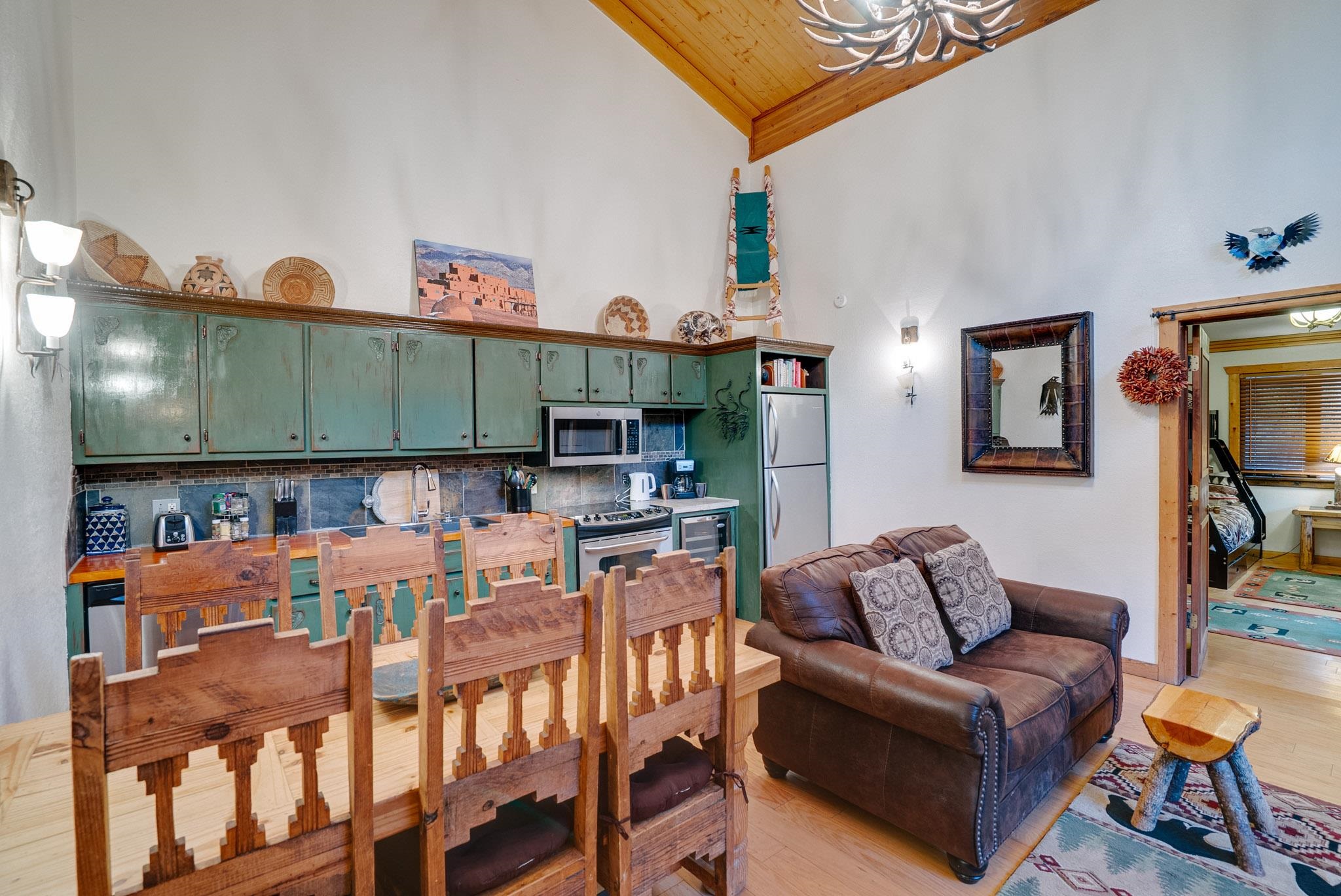 Don't miss out on this unique space! Breckenridge 1 in the Snow Bear Condominiums is a large third floor unit with stunning views, beautiful furnishings, and a strong rental history. Close to the gondola and Rio Hondo Learning Center, with a ski in from Raspberry Hill. Easy walk to the base of Taos Ski Valley! Breckenridge 1 is a favorite among skiers and summer tourists as well. Breckenridge 1 has two large alpine style bedrooms, one with two queen beds, the other with a queen and a bunk bed. En-suite bathrooms in each bedroom -- choose between a spa-style shower or a relaxing jacuzzi tub. Bright, open living area with high ceilings, oversized windows, and a stone fireplace that frames the mountain views! 2 private owner closets plus a separate ski locker. Designer cabinetry in the kitchen. Large deck ideal for morning coffee or evening sunsets. Fully furnished and ready for guests Contact Dani today to schedule a showing or for more information.