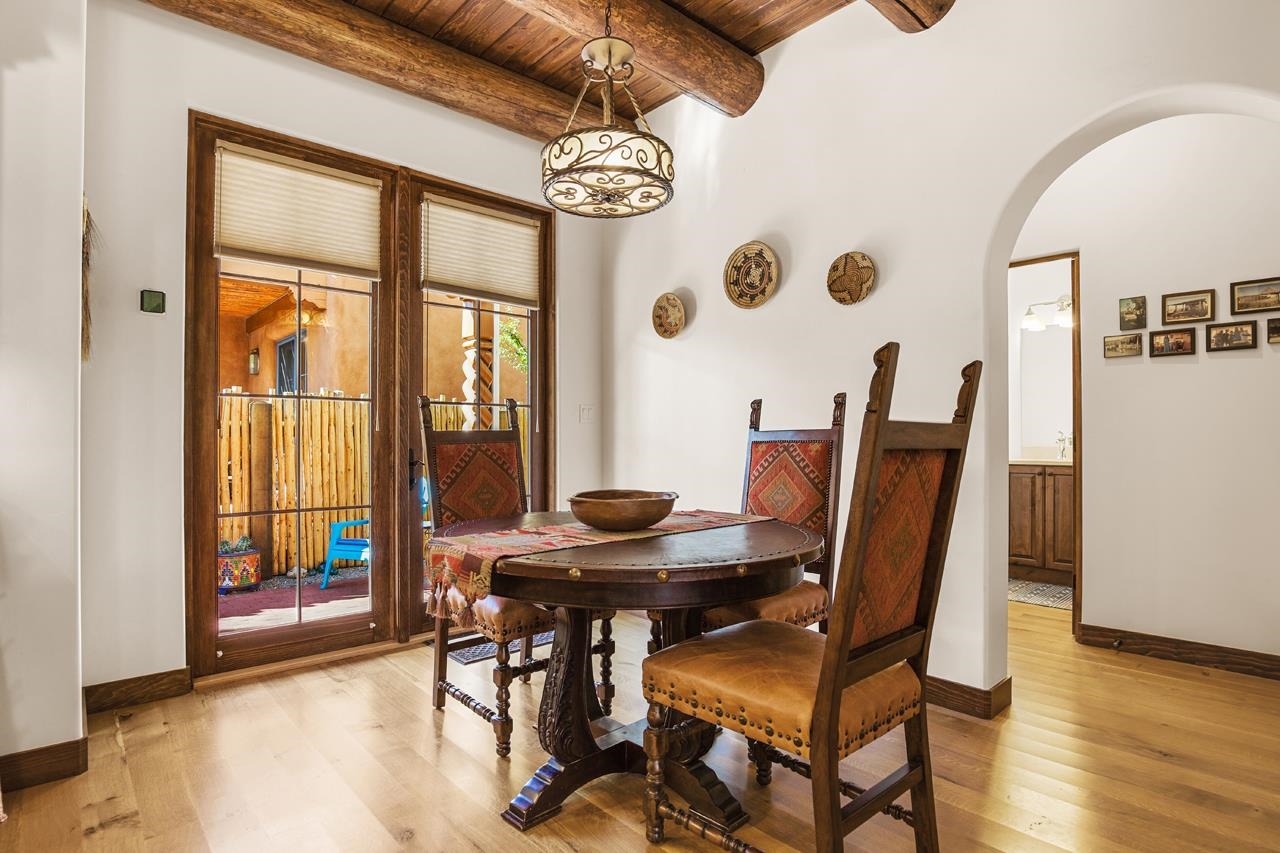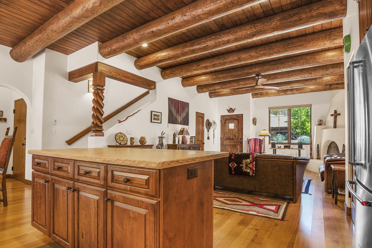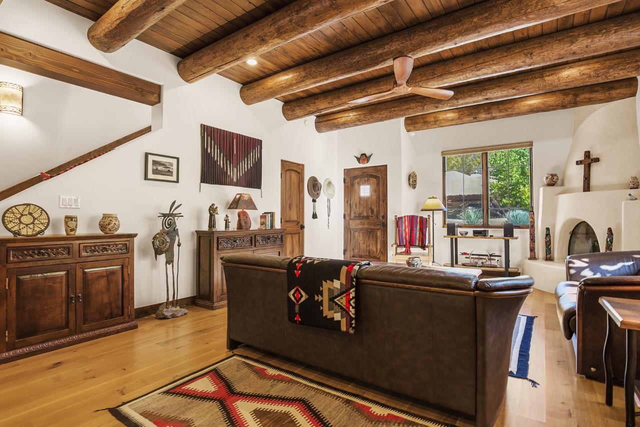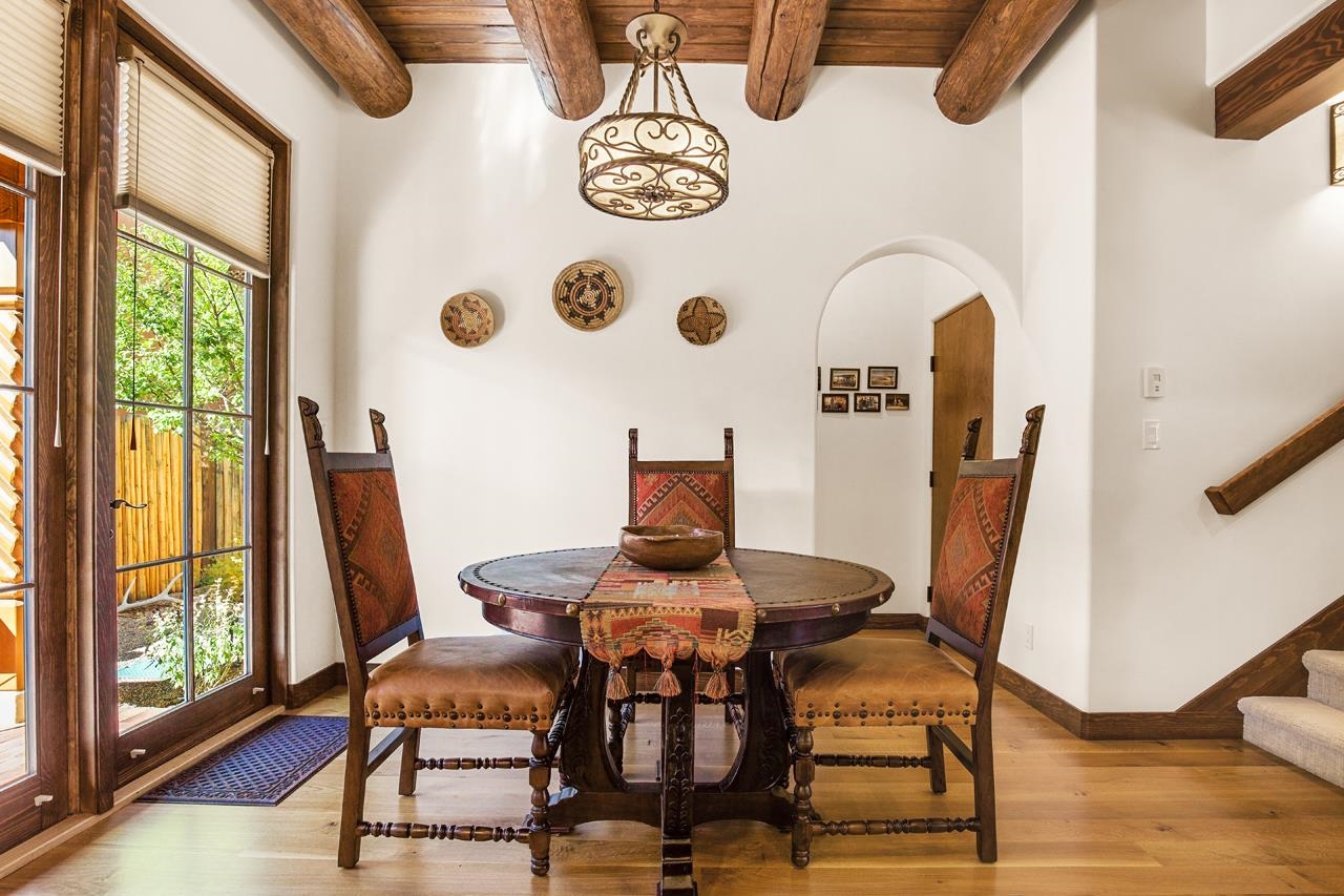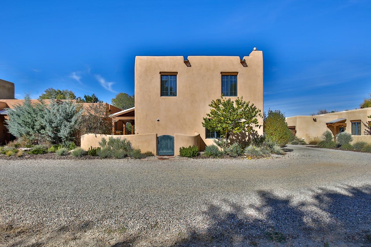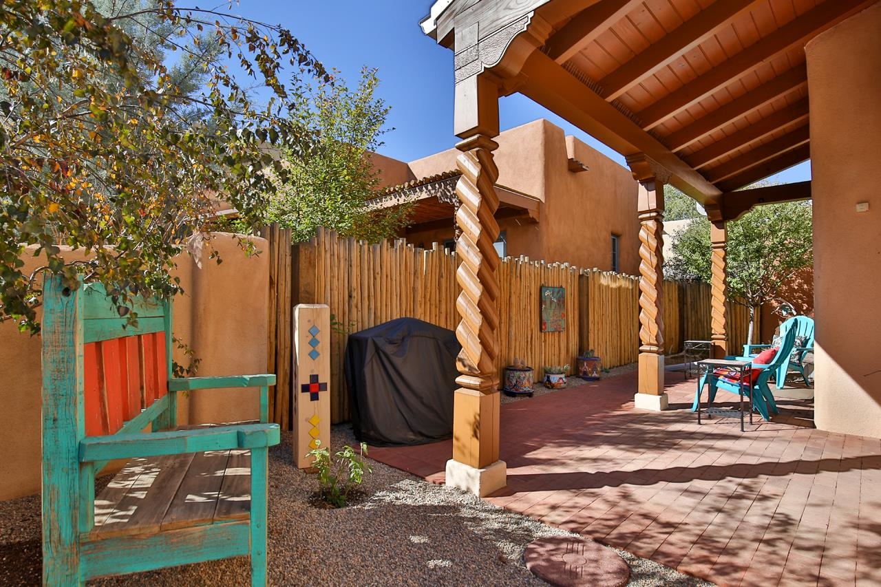 Move right in and start living the good life; no to-do list required! This stunning, high-quality condo in the heart of town is as turnkey as they come. Beautifully maintained and barely lived in, it feels brand new but with all the benefits of thoughtful, careful ownership. Every detail shines, every finish sparkles. This is the kind of home where you can drop your bags, pour a drink, and immediately feel at home. As a desirable corner end unit, this condo enjoys extra privacy, wonderful natural light, and beautifully landscaped surroundings that make it feel like its own little oasis but is under a mile to Taos Plaza. Inside, the open-concept great room glows with natural light, featuring gorgeous white oak floors, soaring viga-accented ceilings, and a cozy gas kiva fireplace for that perfect Taos touch. The kitchen is a dream. Knotty Alder cabinetry with soft-close hinges, sandstone countertops, premium KitchenAid appliances with a Bertazzoni range. The layout flows effortlessly from kitchen to dining area to a private backyard with a covered portal, perfect for sunny brunches or starlit evenings. Upstairs, you'll find three spacious bedrooms, views straight toward Taos Mountain, and two spa-like bathrooms finished in travertine. The primary suite is serene and elegant, with an ensuite bath that feels like a boutique retreat and a plus sized closet for your summer AND winter duds. Every inch of this home whispers quality, from the soundproofed walls, 2x8 construction and Sierra Pacific windows to the Hunter Douglas shades, Kohler fixtures, and built-in radon mitigation system. Even the roof and wall insulation levels are top tier, (R51 and R33) to be exact. With an attached garage, unbeatable in-town location, and not a single project in sight, this condo is pure Taos ease, polished, pristine, and absolutely move-in ready. For more, see video: https://youtu.be/KiPjo9KT-tE