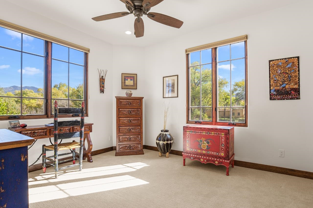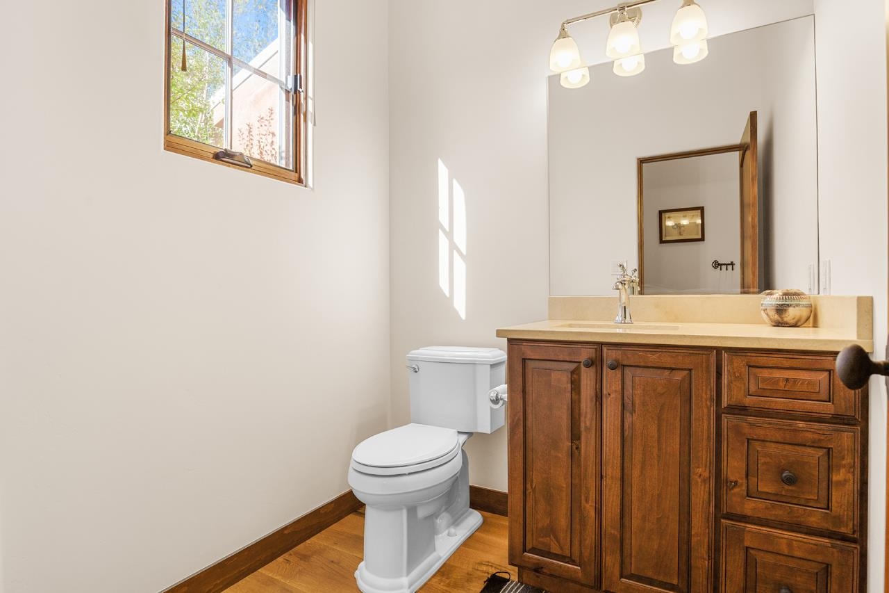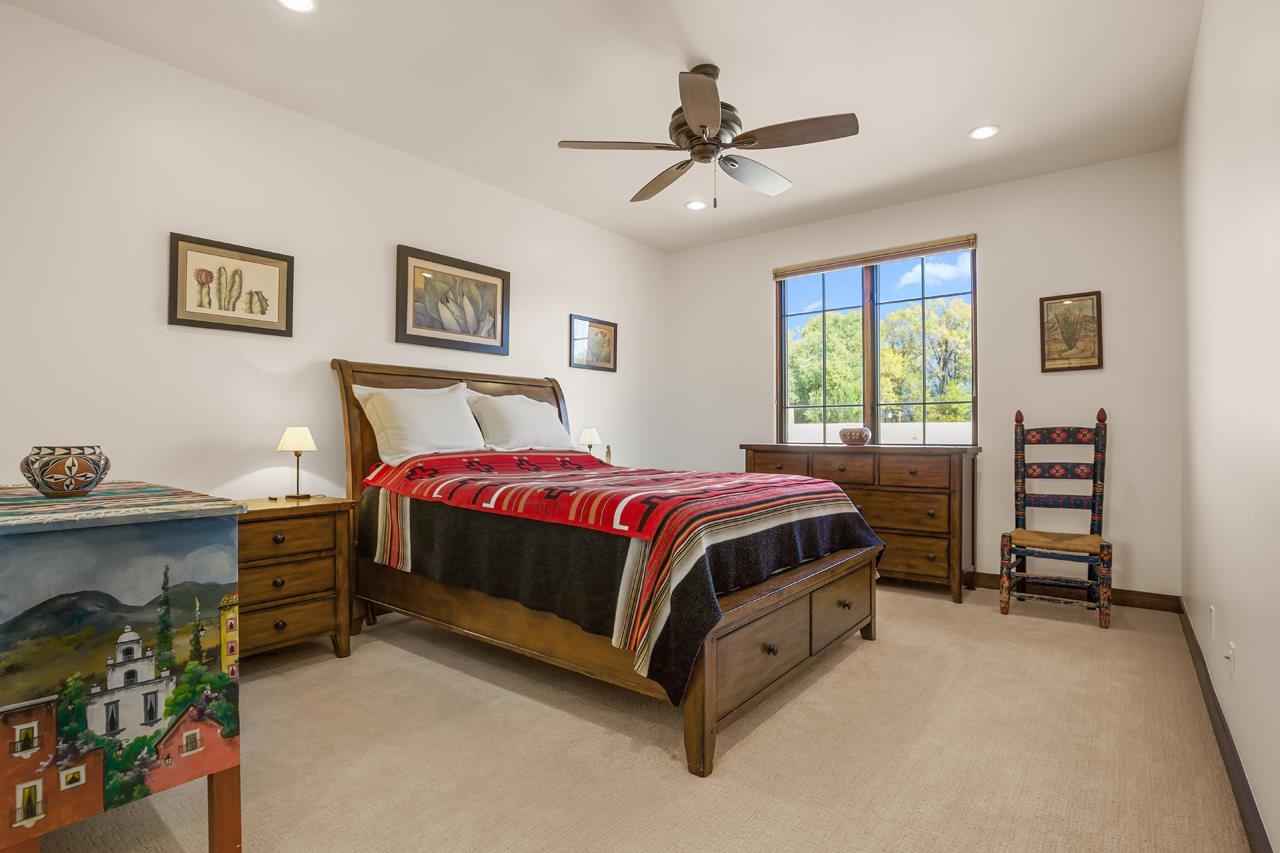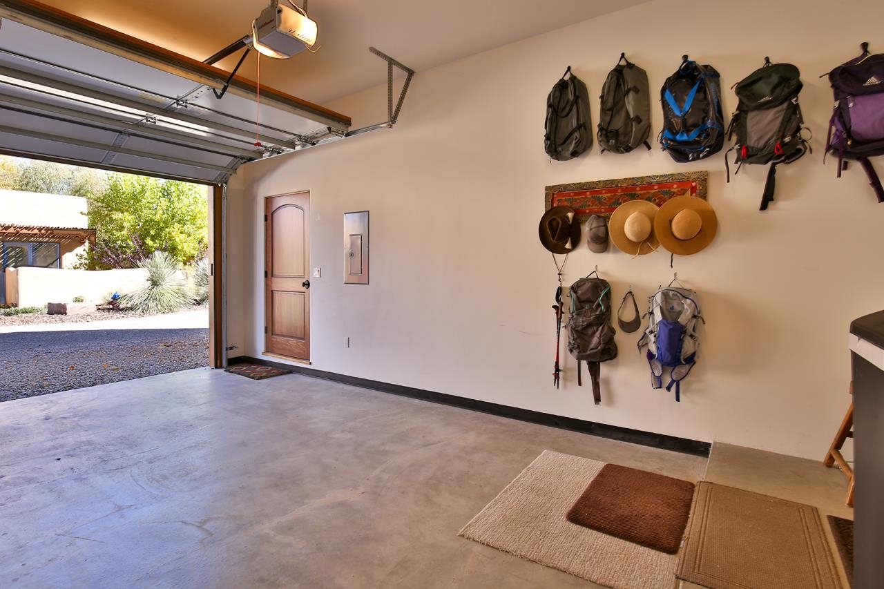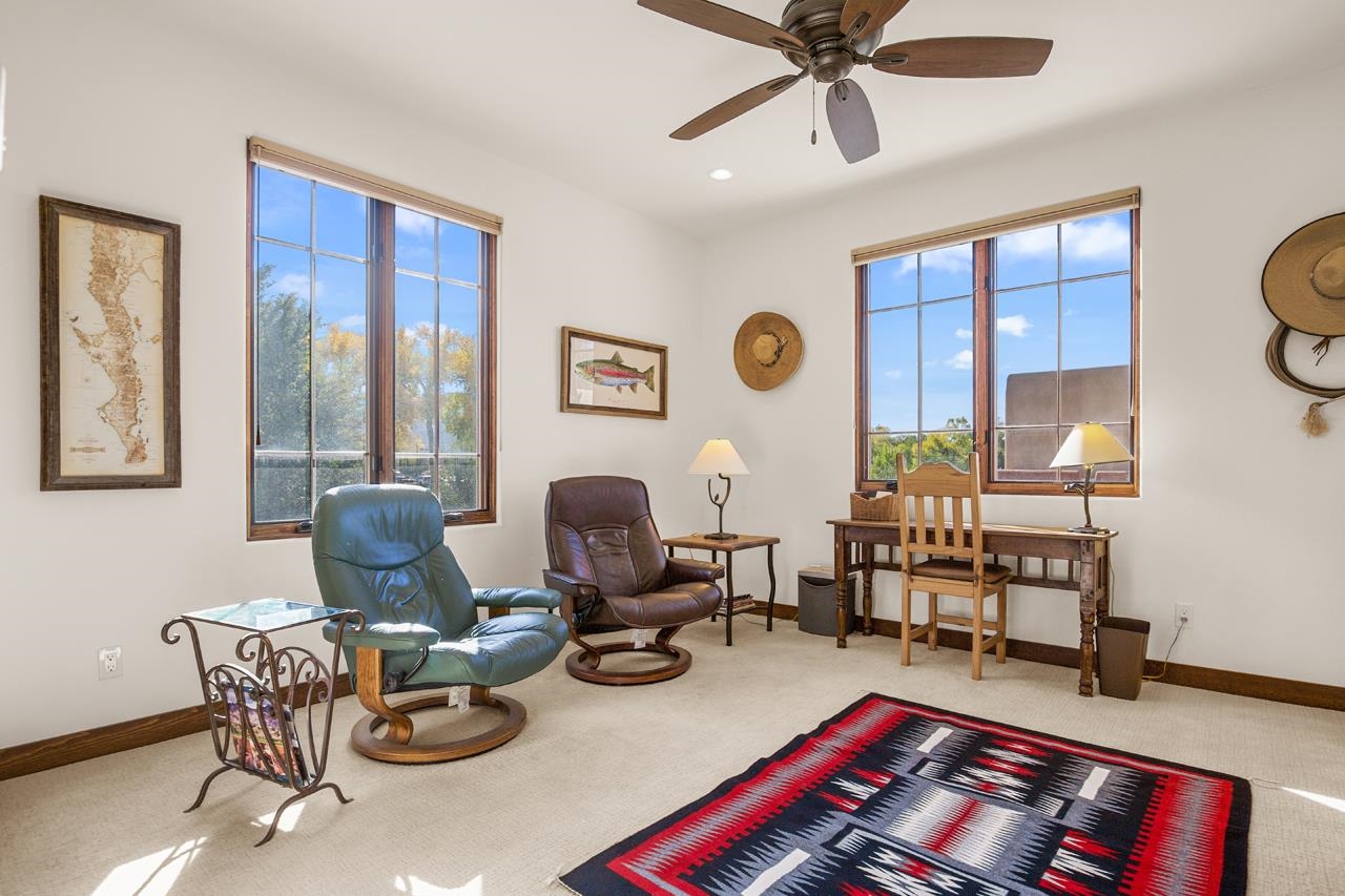 Move right in and start living the good life; no to-do list required! This stunning, high-quality condo in the heart of town is as turnkey as they come. Beautifully maintained and barely lived in, it feels brand new but with all the benefits of thoughtful, careful ownership. Every detail shines, every finish sparkles. This is the kind of home where you can drop your bags, pour a drink, and immediately feel at home. As a desirable corner end unit, this condo enjoys extra privacy, wonderful natural light, and beautifully landscaped surroundings that make it feel like its own little oasis but is under a mile to Taos Plaza. Inside, the open-concept great room glows with natural light, featuring gorgeous white oak floors, soaring viga-accented ceilings, and a cozy gas kiva fireplace for that perfect Taos touch. The kitchen is a dream. Knotty Alder cabinetry with soft-close hinges, sandstone countertops, premium KitchenAid appliances with a Bertazzoni range. The layout flows effortlessly from kitchen to dining area to a private backyard with a covered portal, perfect for sunny brunches or starlit evenings. Upstairs, you'll find three spacious bedrooms, views straight toward Taos Mountain, and two spa-like bathrooms finished in travertine. The primary suite is serene and elegant, with an ensuite bath that feels like a boutique retreat and a plus sized closet for your summer AND winter duds. Every inch of this home whispers quality, from the soundproofed walls, 2x8 construction and Sierra Pacific windows to the Hunter Douglas shades, Kohler fixtures, and built-in radon mitigation system. Even the roof and wall insulation levels are top tier, (R51 and R33) to be exact. With an attached garage, unbeatable in-town location, and not a single project in sight, this condo is pure Taos ease, polished, pristine, and absolutely move-in ready. For more, see video: https://youtu.be/KiPjo9KT-tE