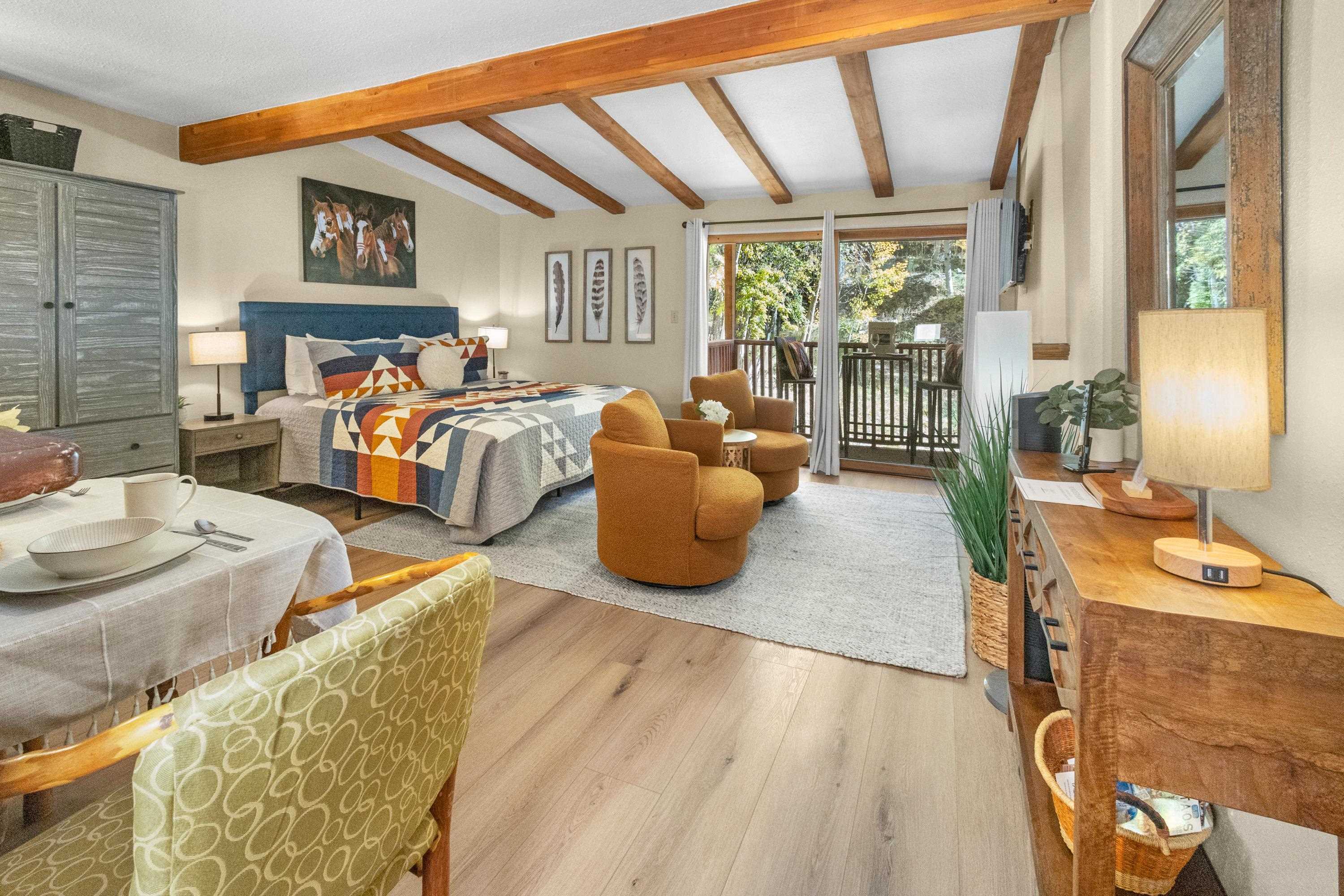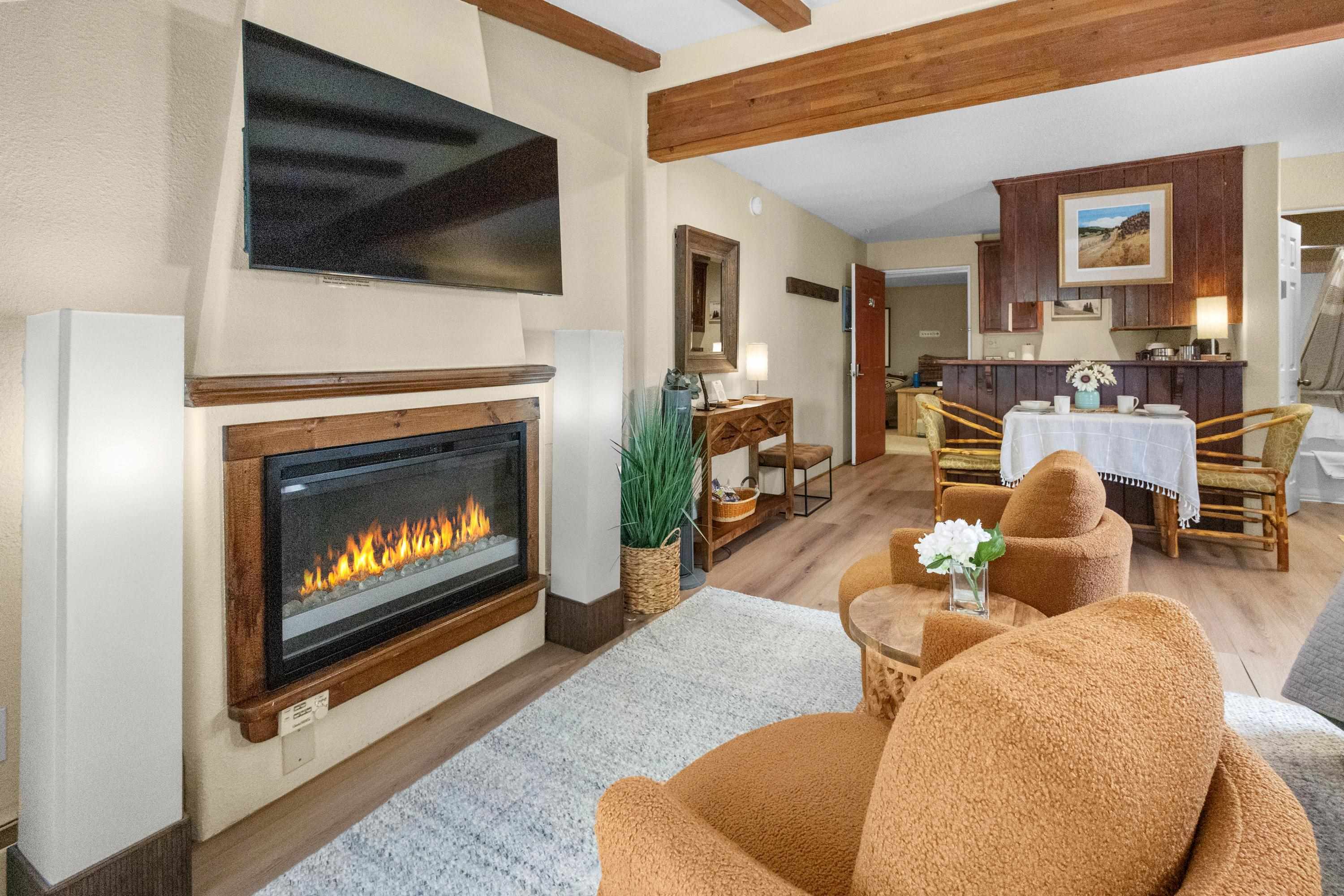 VIDEO TOUR - SEARCH YOUTUBE -"POWDERHORN CONDOS, TAOS SKI VALLEY" --- Introducing a distinctive condominium opportunity at Powderhorn Condominiums, situated in the heart of Taos Ski Valley. This inviting studio provides an ideal four-season retreat, conveniently located within walking distance of the lifts, base area, restaurants, and shops. Guests can conveniently park their vehicles and access all amenities on foot. This fully furnished and meticulously designed studio offers everything necessary for relaxation, culinary endeavors, and unwinding after a day of skiing or hiking. It features a cozy electric fireplace, ideal for sharing stories, and a complete bathroom equipped with a tub for soothing sore muscles. This condo is turnkey and ready for the season, boasting fresh paint, laminate flooring, a recently installed king-sized bed, an oversized armoire, plush chairs, and a cafe table on the private balcony. Home Owner's Association fees include virtually all services and expenses: trash collection, grounds and building maintenance, electric, natural gas, water, sewer, Dish Network satellite TV, high -speed fiber Wifi, building insurance, and snow removal. Additional amenities include a private deck for enjoying morning coffee or aprs-ski beverages and access to a spacious lobby area. The unit also includes a private owner's locker, providing convenient storage for ski and equipment. A VIP parking area is provided for your convenience after unloading luggage and is within walking distance.