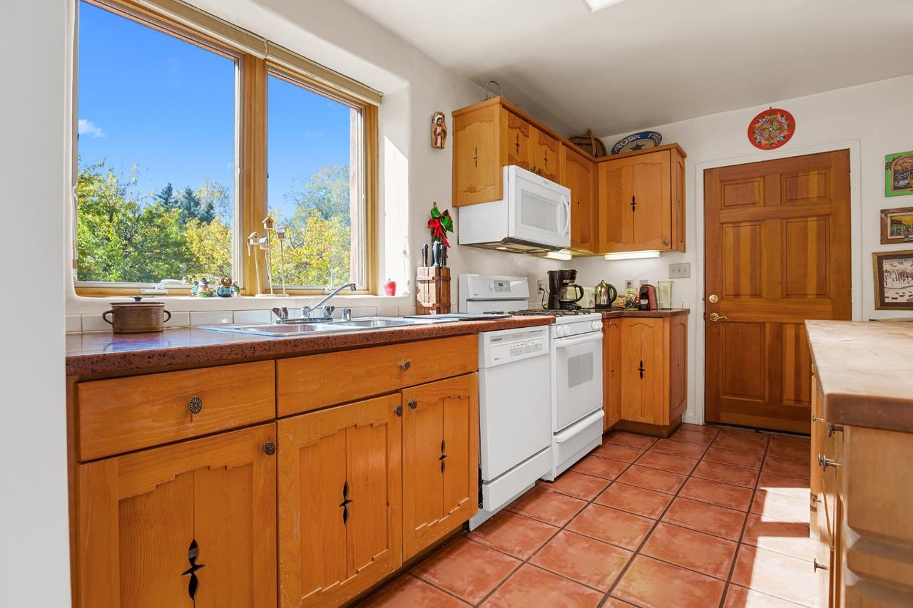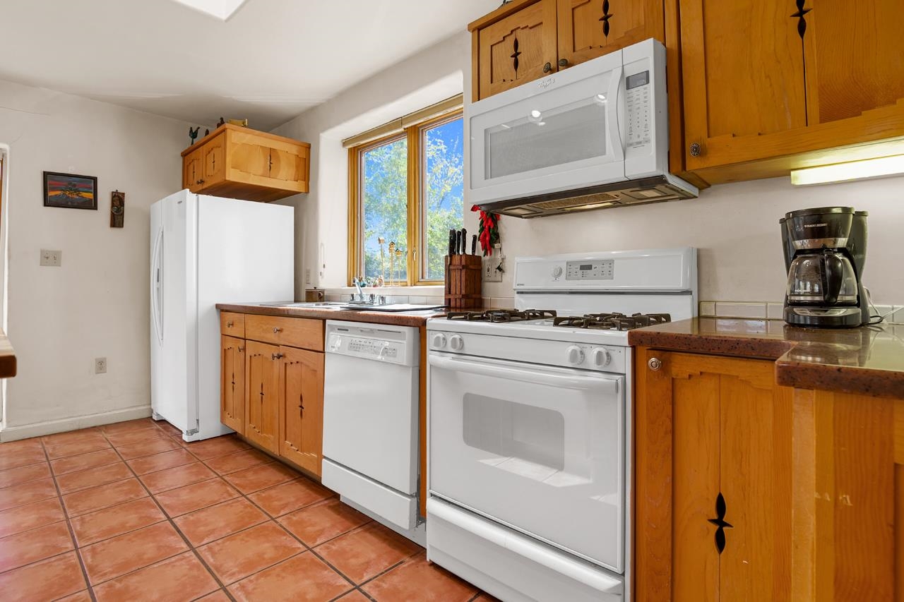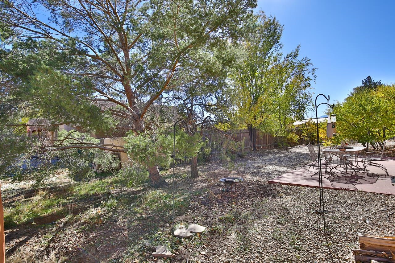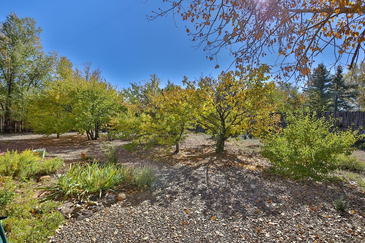 Bright Outlook - Located in the desirable residential area of Vegas de Taos Subdivision, this timeless Southwestern-style home blends classic charm with modern comfort all just minutes from town, restaurants, services, and Taos events. 1,479 sq.ft 2 bedrooms, 2 full baths, plus a bonus room off the living area, this home offers flexible space ideal for an office, studio, or den. Bonus room has a closet and could easily be a 3rd bedroom. The open-concept living area features high ceilings, pumice-crete construction, viga ceilings, nichos, and a kiva fireplace, creating a warm and inviting atmosphere. In-floor radiant heating throughout ensures year-round comfort. The light-filled kitchen boasts wooden cabinets with custom carving, skylight, a large functional island, and a separate dining area, perfect for entertaining or everyday living. The primary suite includes a large closet and a spacious bath with double sinks, bathtub, and a separate shower. The good-sized second bedroom is conveniently located near the second full bath. A laundry area in the hallway and abundant storage throughout add convenience and functionality. Tile and carpet floors, skylights, and expansive windows fill the home with natural light and showcase mountain and foothill views. A sliding glass door opens to a patio and naturally landscaped 0.37-acre yard, while a large gravel driveway provides ample parking. The attached 1-car garage offers parking, storage, or conversion to a studio or hobby space. The front courtyard features xeriscape landscaping, perennials, and a covered entry portal with stunning Taos Mountain views, completing this inviting and well-located home.