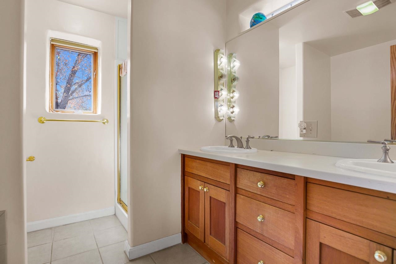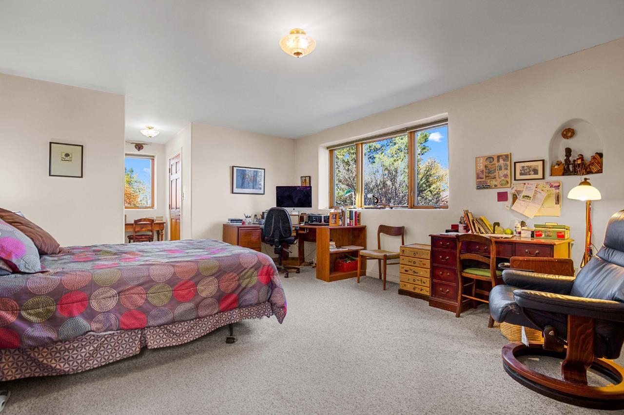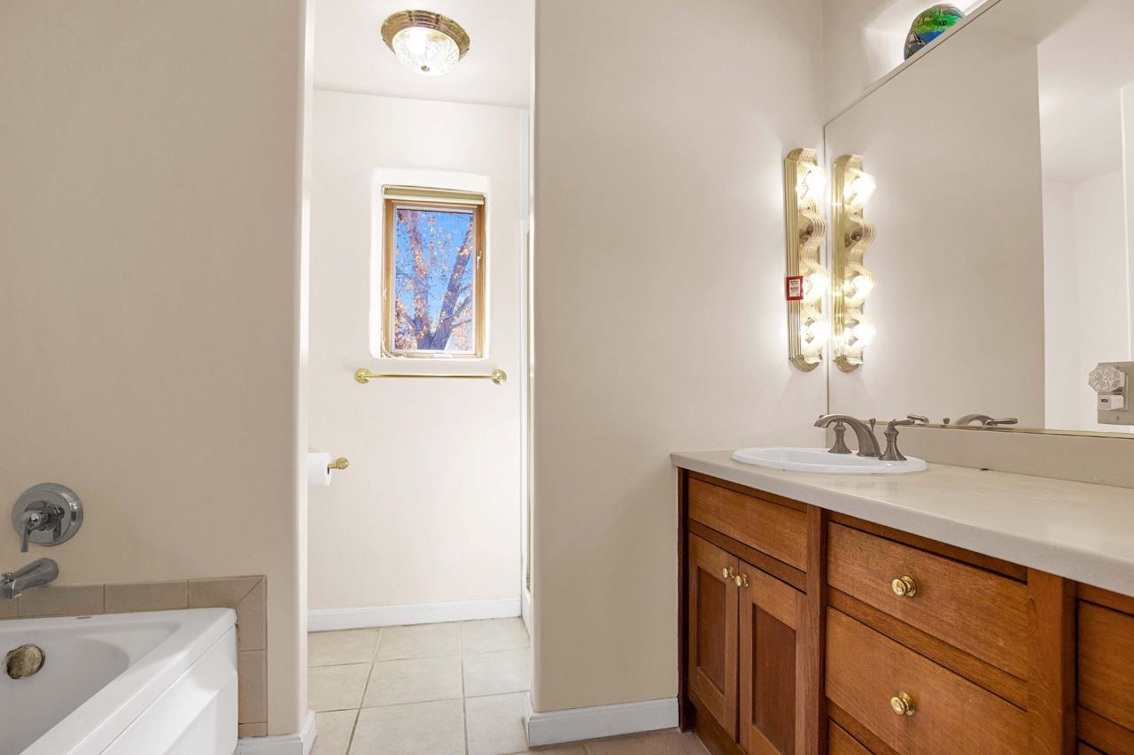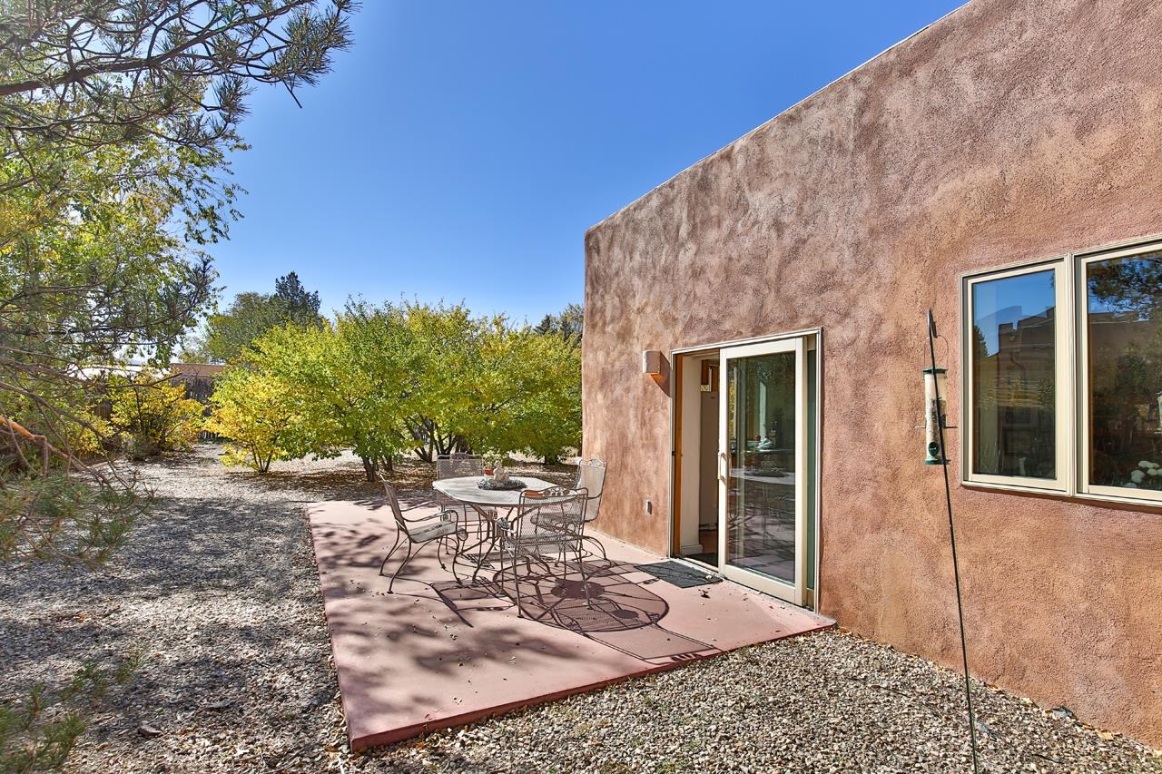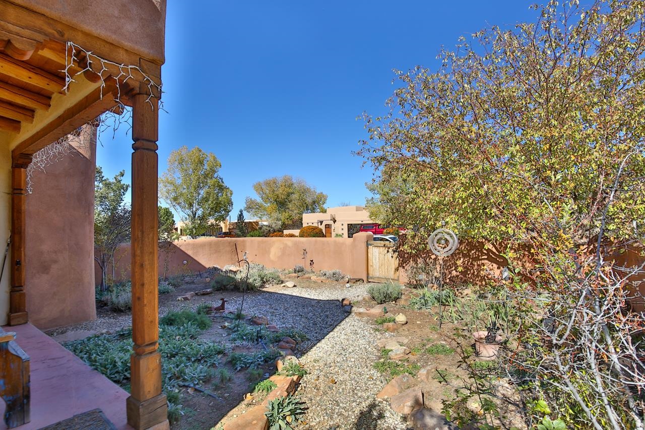 Bright Outlook - Located in the desirable residential area of Vegas de Taos Subdivision, this timeless Southwestern-style home blends classic charm with modern comfort all just minutes from town, restaurants, services, and Taos events. 1,479 sq.ft 2 bedrooms, 2 full baths, plus a bonus room off the living area, this home offers flexible space ideal for an office, studio, or den. Bonus room has a closet and could easily be a 3rd bedroom. The open-concept living area features high ceilings, pumice-crete construction, viga ceilings, nichos, and a kiva fireplace, creating a warm and inviting atmosphere. In-floor radiant heating throughout ensures year-round comfort. The light-filled kitchen boasts wooden cabinets with custom carving, skylight, a large functional island, and a separate dining area, perfect for entertaining or everyday living. The primary suite includes a large closet and a spacious bath with double sinks, bathtub, and a separate shower. The good-sized second bedroom is conveniently located near the second full bath. A laundry area in the hallway and abundant storage throughout add convenience and functionality. Tile and carpet floors, skylights, and expansive windows fill the home with natural light and showcase mountain and foothill views. A sliding glass door opens to a patio and naturally landscaped 0.37-acre yard, while a large gravel driveway provides ample parking. The attached 1-car garage offers parking, storage, or conversion to a studio or hobby space. The front courtyard features xeriscape landscaping, perennials, and a covered entry portal with stunning Taos Mountain views, completing this inviting and well-located home.
