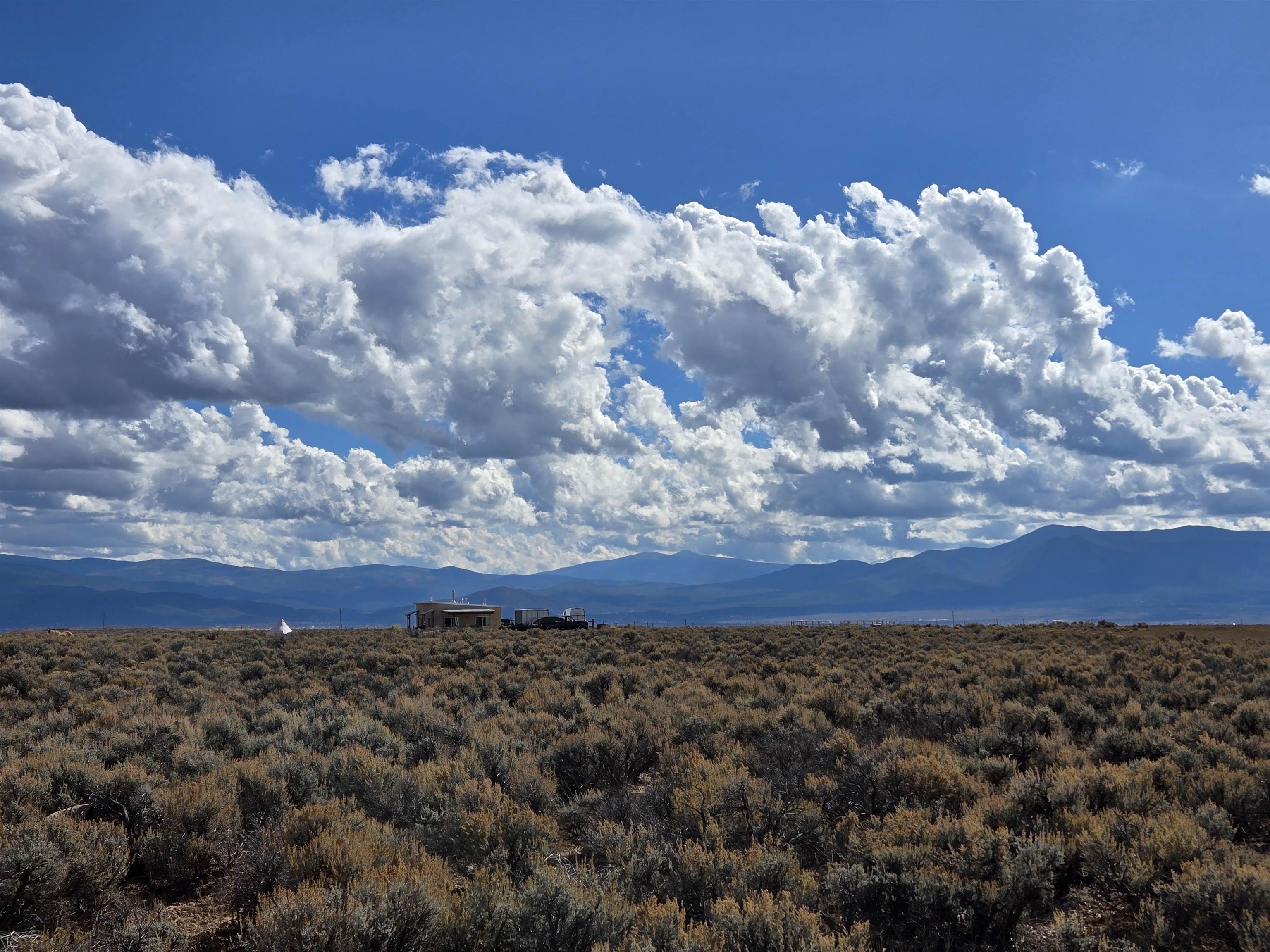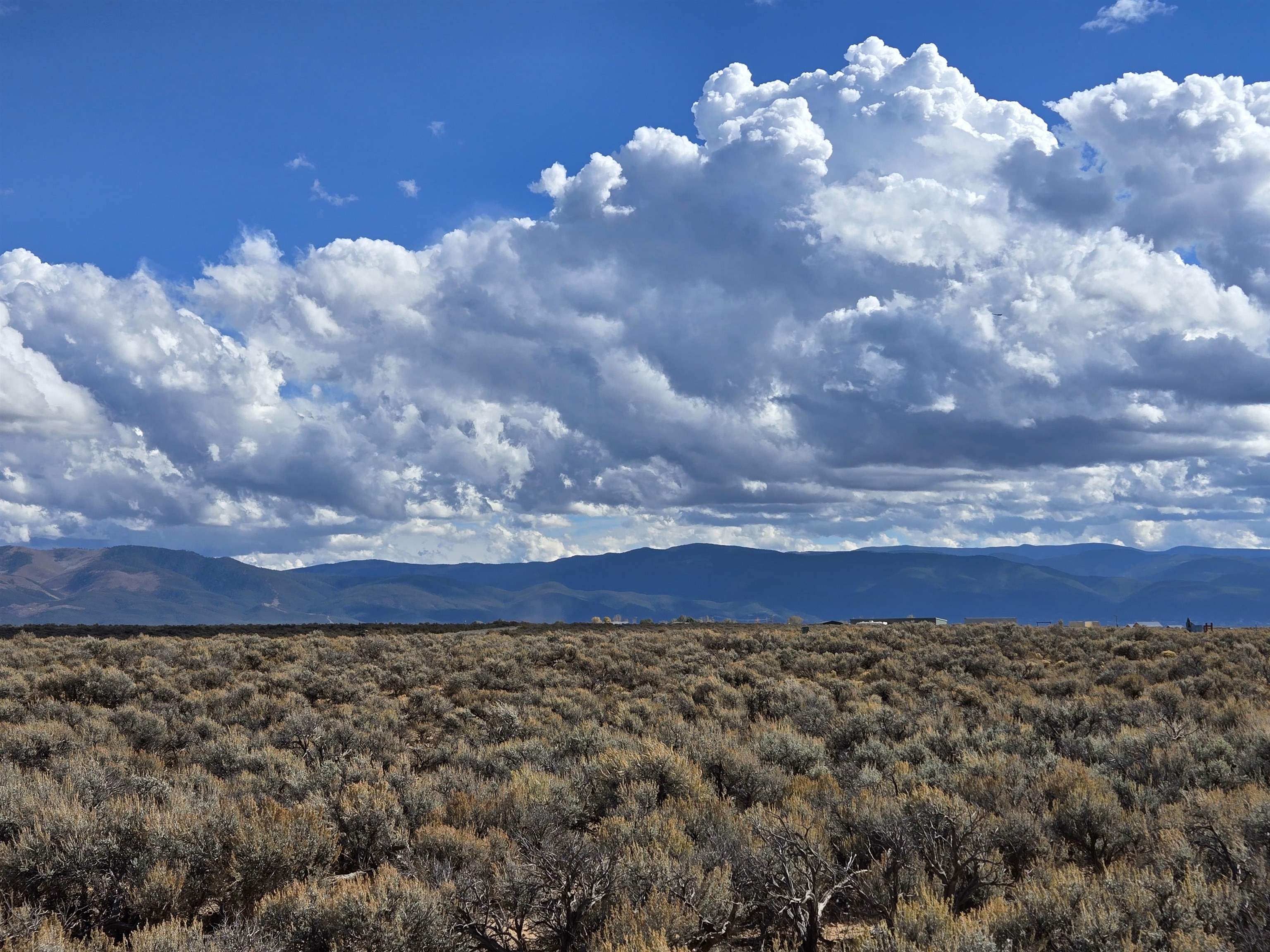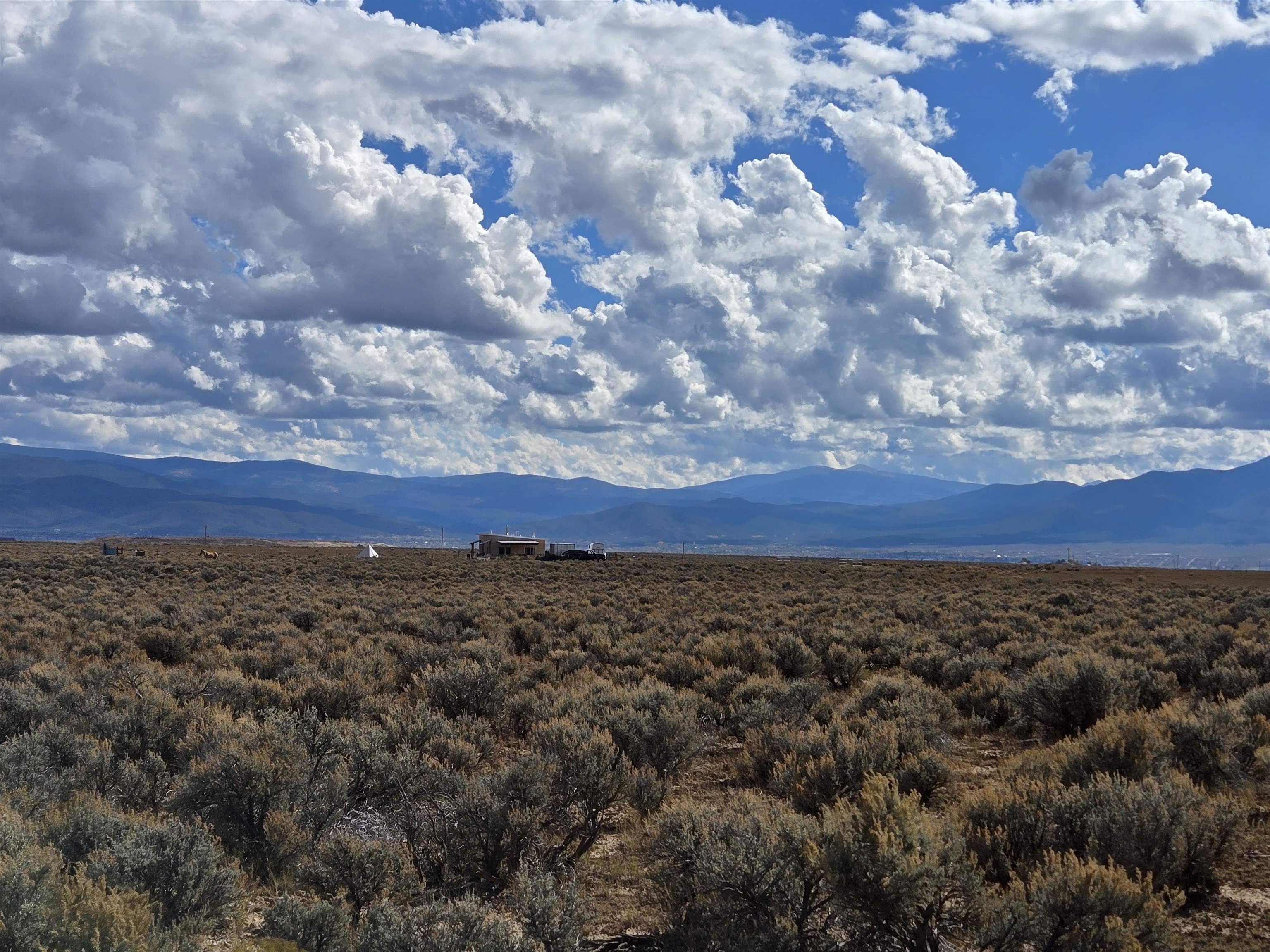 Every cloud is a painting from this spacious 4.3 acre lot North of Hwy 64 W of Taos in the Airport area. Electricity and high speed fiber optic internet are nearby, across the road from the lot north of this one. This property will be able to access the El Prado water well as they phase in connections. The water line is located on the north side paralleling Hwy 64, and Gravel Pit Road properties can connect, for a $5,000 meter fee. This well is part of the Abeyta settlement, and line construction will be phased in starting in about 2 years. Lines will be installed in the road, and coordinated by El Prado Water. Future fees are not currently known. This area only has County restrictions, and no zoning.