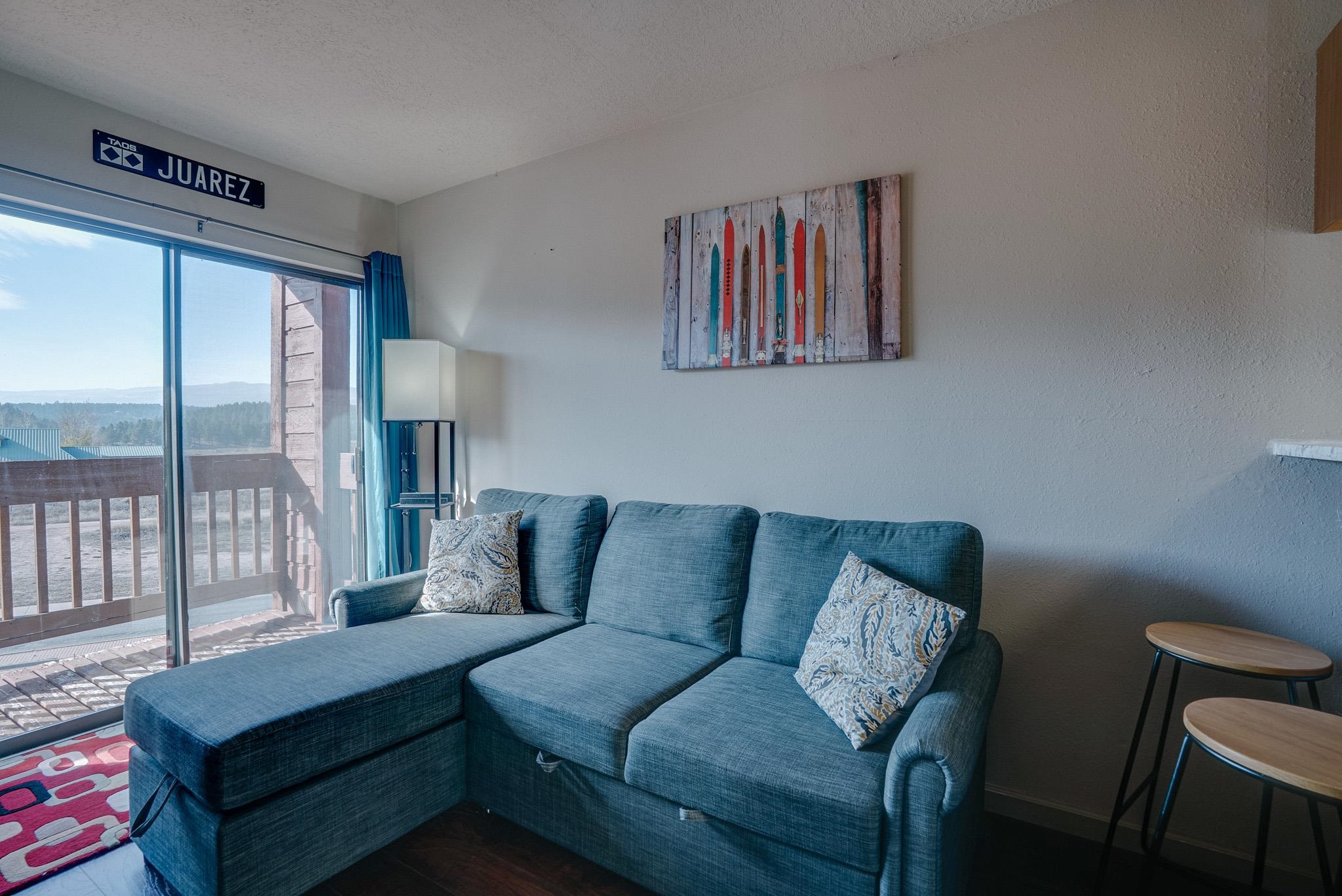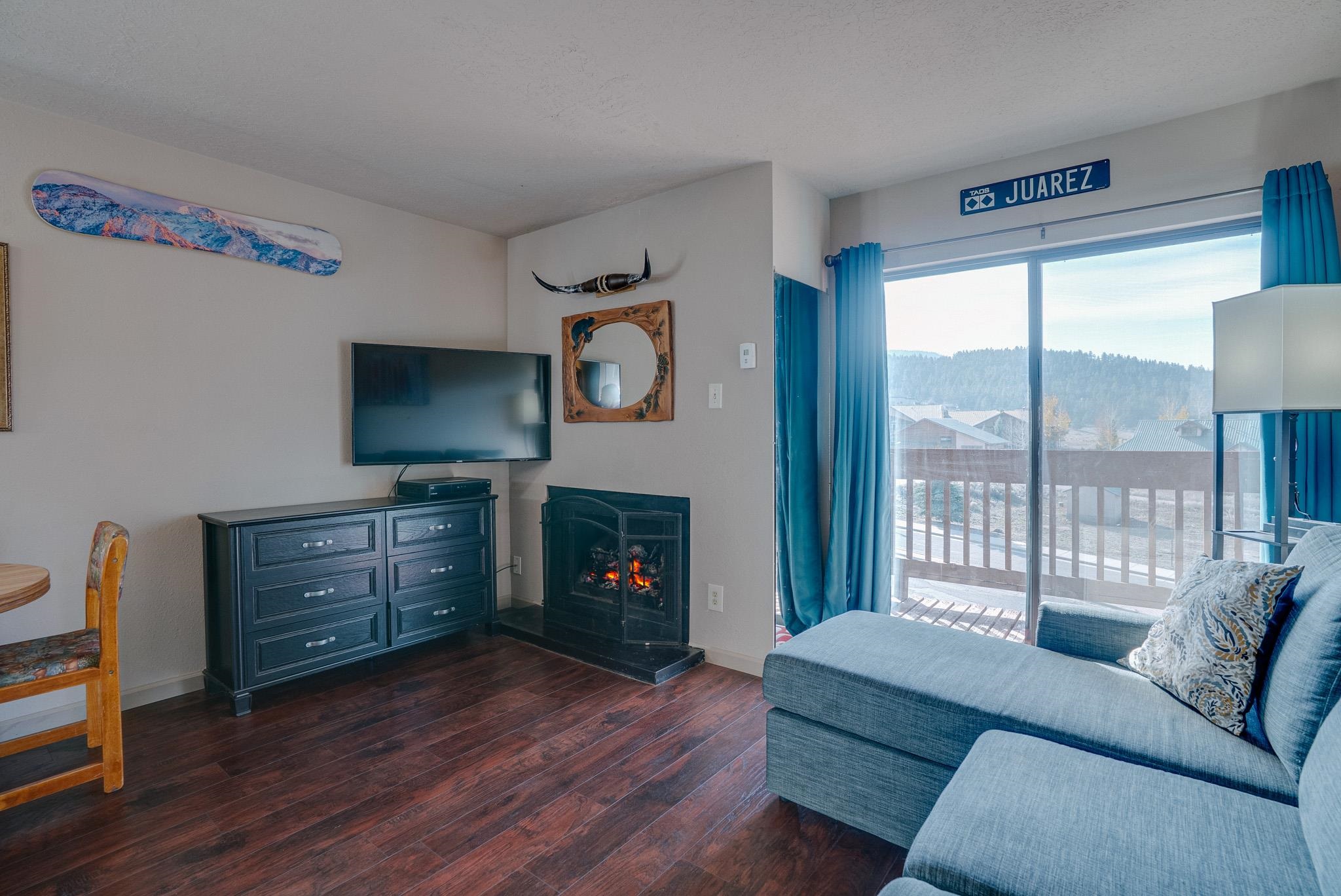 Check out the VIEWS from Christi Villa, Unit 212 ! Mountain valley and ski run views, great location and exceptional value - by far! Christi Villa Unit 212, is a cozy and nicely updated 1 Bedroom | 1 Bath| End- Unit that can comfortably sleep up to 6 people. The building complex is located just across the street from the popular Solar Loop Trail that accesses Liberty Square Park. It is also a short walking distance to Frontier Park - where both are major attractions that hosts Cool Summer Nights Live Concerts, Farmer's Market and year round family fun community events. Because Unit 212 is an end unit that is tucked away into its own private corner for added seclusion and privacy with no one above you - is a BONUS due to there being no walk-by traffic in front of your unit. In addition, there is a window in the dining area that brings in extra natural light and has a view of the "Headin' Home" ski run. There are only a couple of corner units in the building complex that have an extra window with views....this unit being one of them.... Now, that's a BONUS! Stepping inside the condo, is a hallway that leads you into the open living and dining area that has a log gas fireplace, brand new 55" Smart TV and a sleeper sofa. The deck extends your outdoor living space that overlooks the beautiful mountain valley. You'll also occasionally see deer roaming on the grounds. The kitchen features slab granite counter tops, a full size electric induction cooktop range w/ cookware and utensils, stainless steel appliances and modern fixtures, cabinets, wood floating shelf and bar seating. In the hallway, are two built in twin bunk beds for additional sleeping - this flexible space can easily by converted to a large storage closet or mudroom; if desired. The bedroom has a queen size bed and window that offers additional views for your enjoyment. The bathroom has a modern vanity and fixtures with a tub/shower combo, and a connecting door to the bedroom. Unit 212 comes fully furnished (no exclusions) - ready for you to enjoy immediately. Making this condo a great option for a primary residence or an amazing ski/summer retreat that comes with Resort Membership benefits. Additionally, the free "Eagle" shuttle stop is located right across the building complex to take you to and from the ski base during ski season. This exceptional condo combines convenience, location and lifestyle in one perfect cozy package. So, whether you're seeking a mountain escape for all four seasons, or an ideal investment property (STR permitted w/ no restrictions) or both... CV, Unit 212 may be the condo for you. Come see. *Seller is a licensed New Mexico real estate broker. Buyer to conduct all reasonable due diligence necessary to confirm all material facts relevant to purchase.