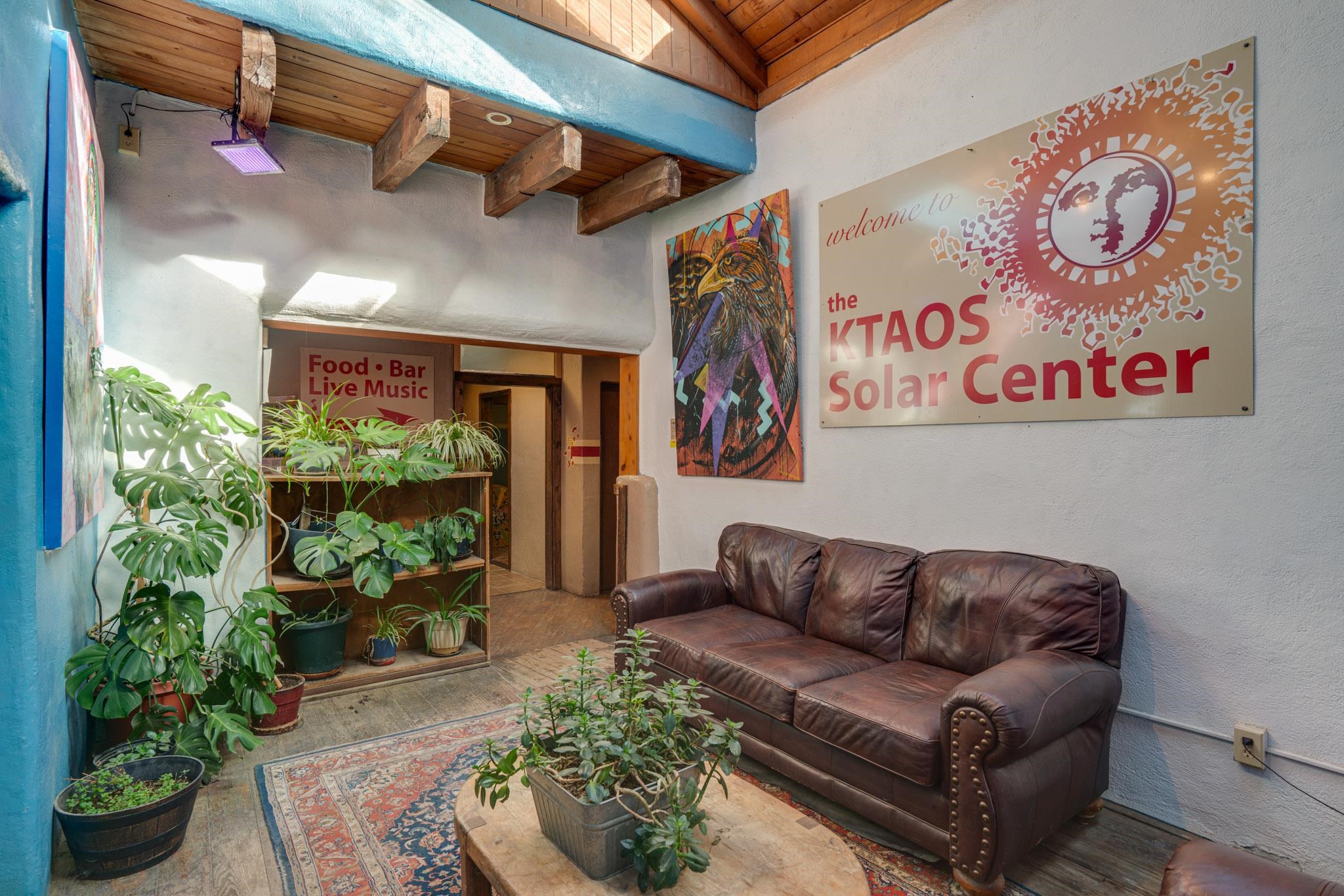 At the northern edge of Taos, where desert ligth meets alpine air, the KTAO Solar Center stands ready for its next chapter. Alive with concerts, community dinners, and hte hum of its solar-powered radio station, this 3.1 acre complex provides the perfect canvas for creativity, cuisine, and connection with a full liquor license, ample office space, indoor/outdoor dining and event space, and an additional 3200 sq. ft. Pavillion.