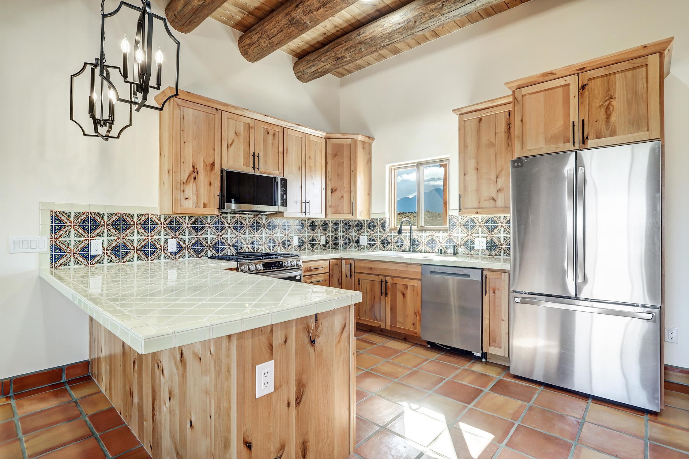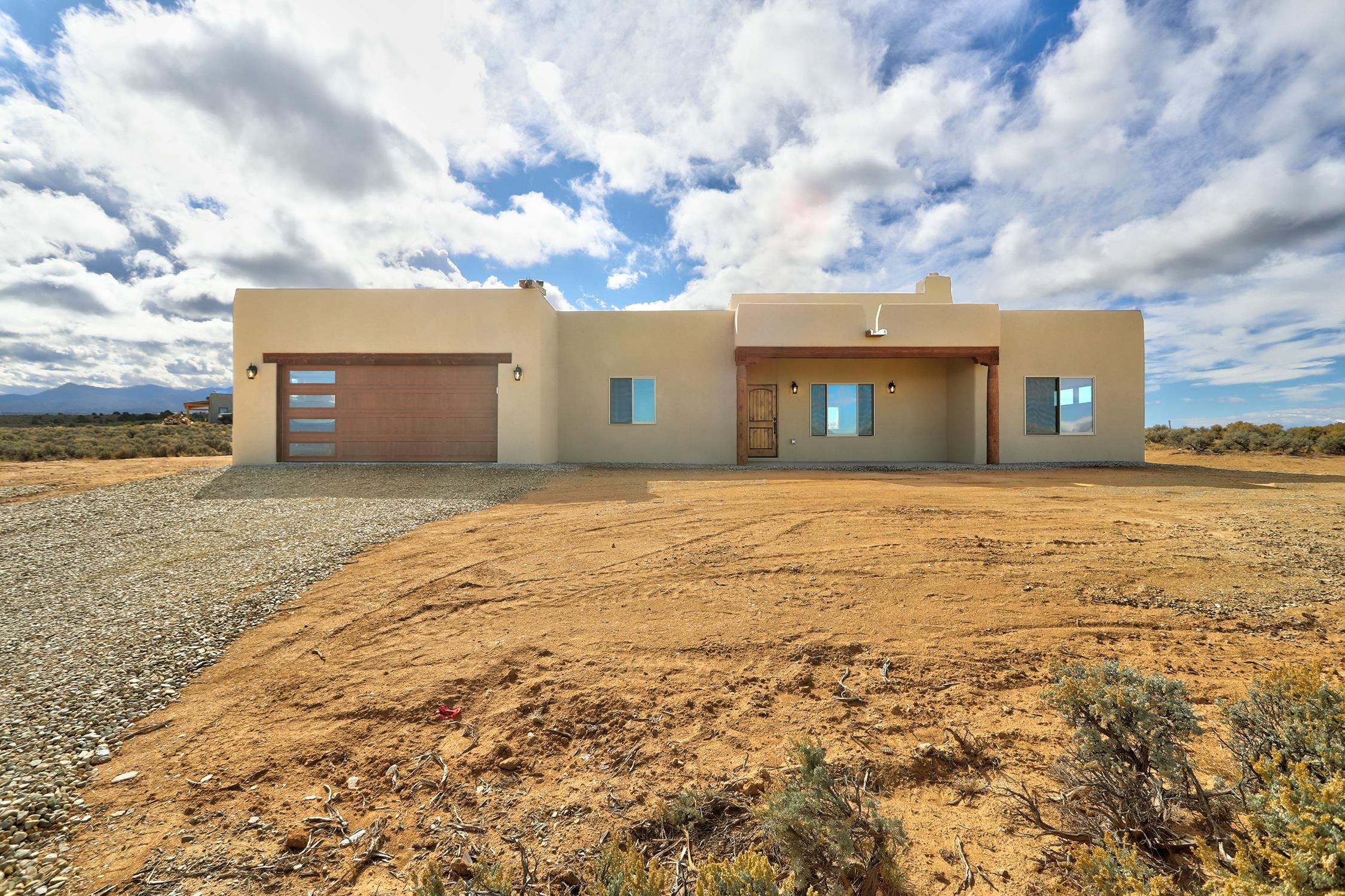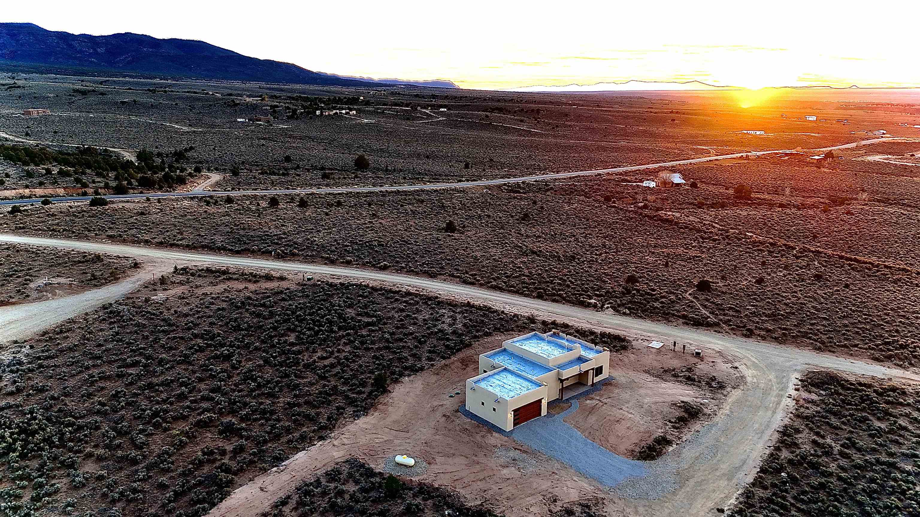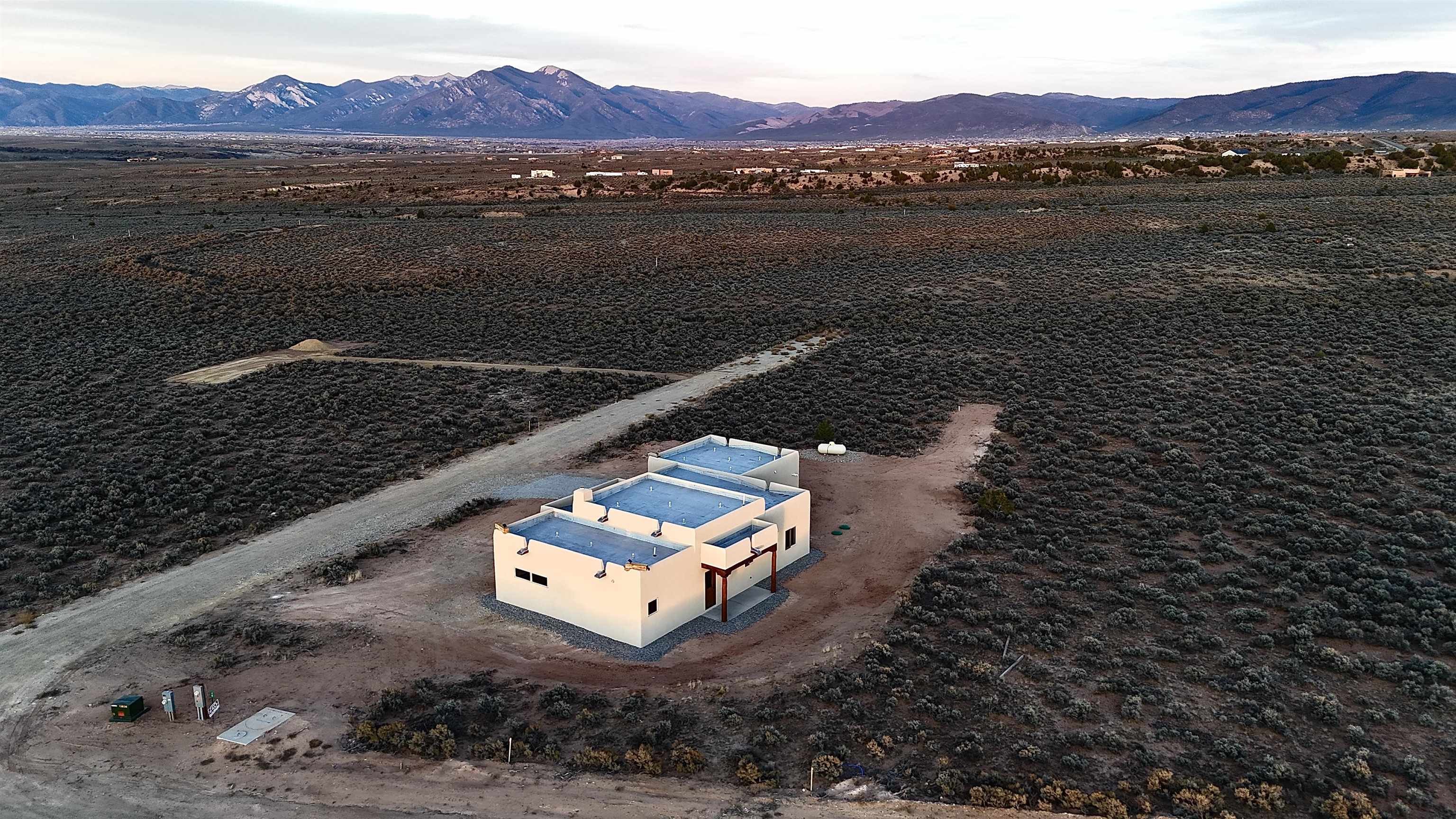 Tranquil, peaceful, and absolutely stunning 2025 Southwest Pueblo-style home for sale near the hiking trails at the end of town! Superb quality with an extra 4" of concrete footings and extra rebar to ensure a solid foundation and structural integrity of the home. The home is 1,517 square feet of heated living space with an extra 500 square feet of heated space in the garage. Can easily be converted to a studio with another garage added. Utilities include: a shared well (5 homes), septic, electric, and propane. Radiant heat throughout the home for warm floors on a snowy day. A southwest fireplace in the living room for ambiance and roasting marshmallows on those cold, blizzardy nights! Vigas in the main living space to complement the high ceilings. Custom details throughout - gorgeous handmade Talavera tiles used for the backsplash in the kitchen and bathroom, and accents in the showers and sinks. Matching mirrors above each sink for a well thought-out design flow throughout the home. Light green tiled countertops in the kitchen to forest green tiles in the bathrooms. Custom shower glass doors in each shower with no step but a gentle slope accommodating little ones, pups, elders, or those who may be easily clumsy! Handmade Saltillo tiles throughout. A well-balanced color palette with neutrals to bright reds, yellows, orange, dark blues and an overall green tone that feels refreshing and warm. RV hook-ups behind the home, an electric car plug-in added in the garage. Photos capture the elegance, while the virtual tour captures artistic touch. 3D walkthrough and floor plan are added as a bonus to the listing for you to experience the home if you're not able to see it right away. Last but not least, the expansive views in almost all directions will always remind you that the mountains are home! A simple yet heart-wrenching reminder of what makes Taos so special and why we all love it so much! *Four Pinon trees to be added to the property* See here for 3D rendering: https://tours.dragonfly360imaging.com/299473