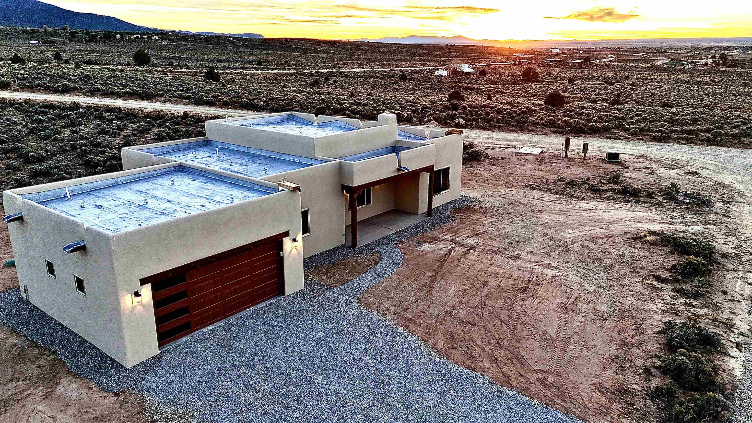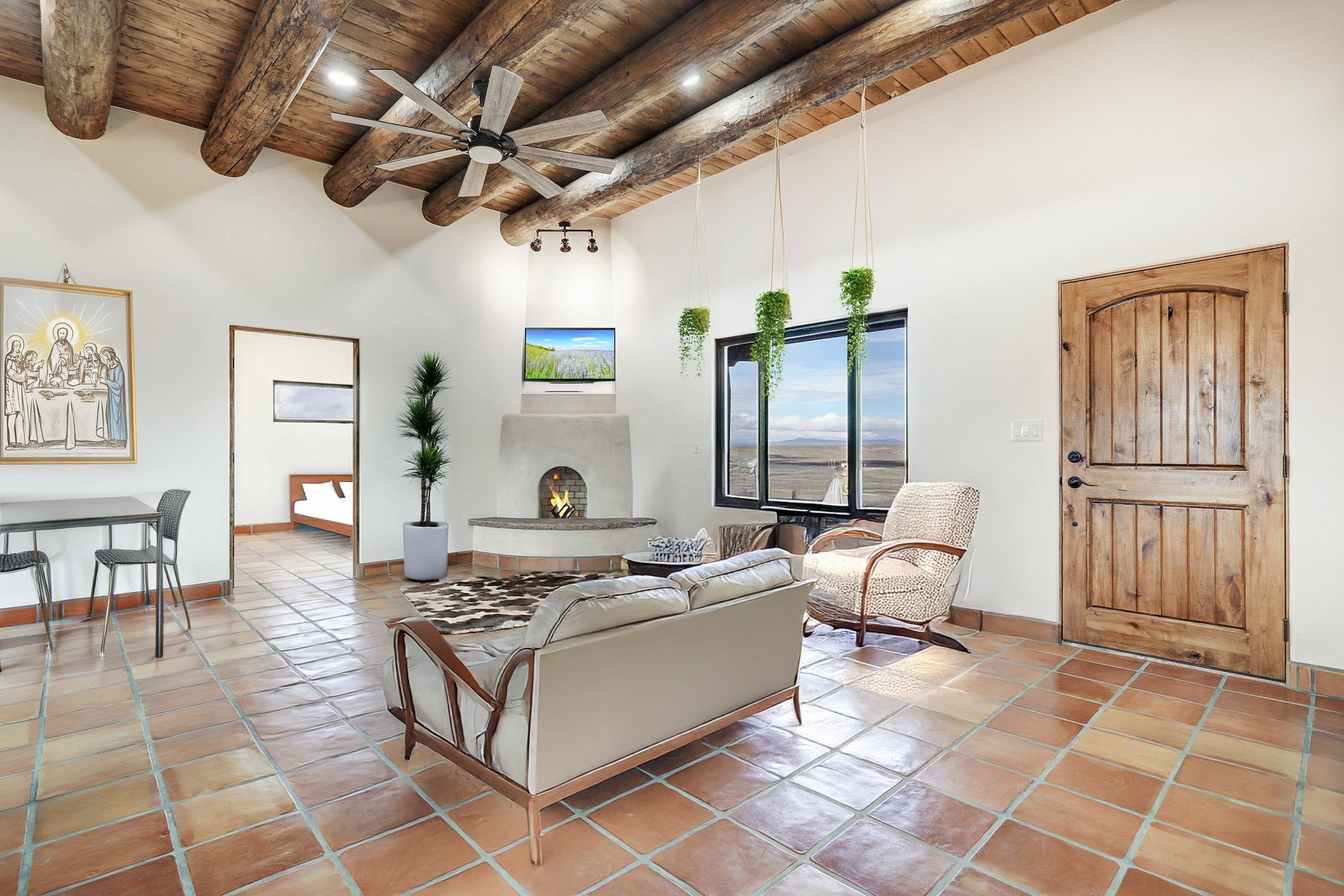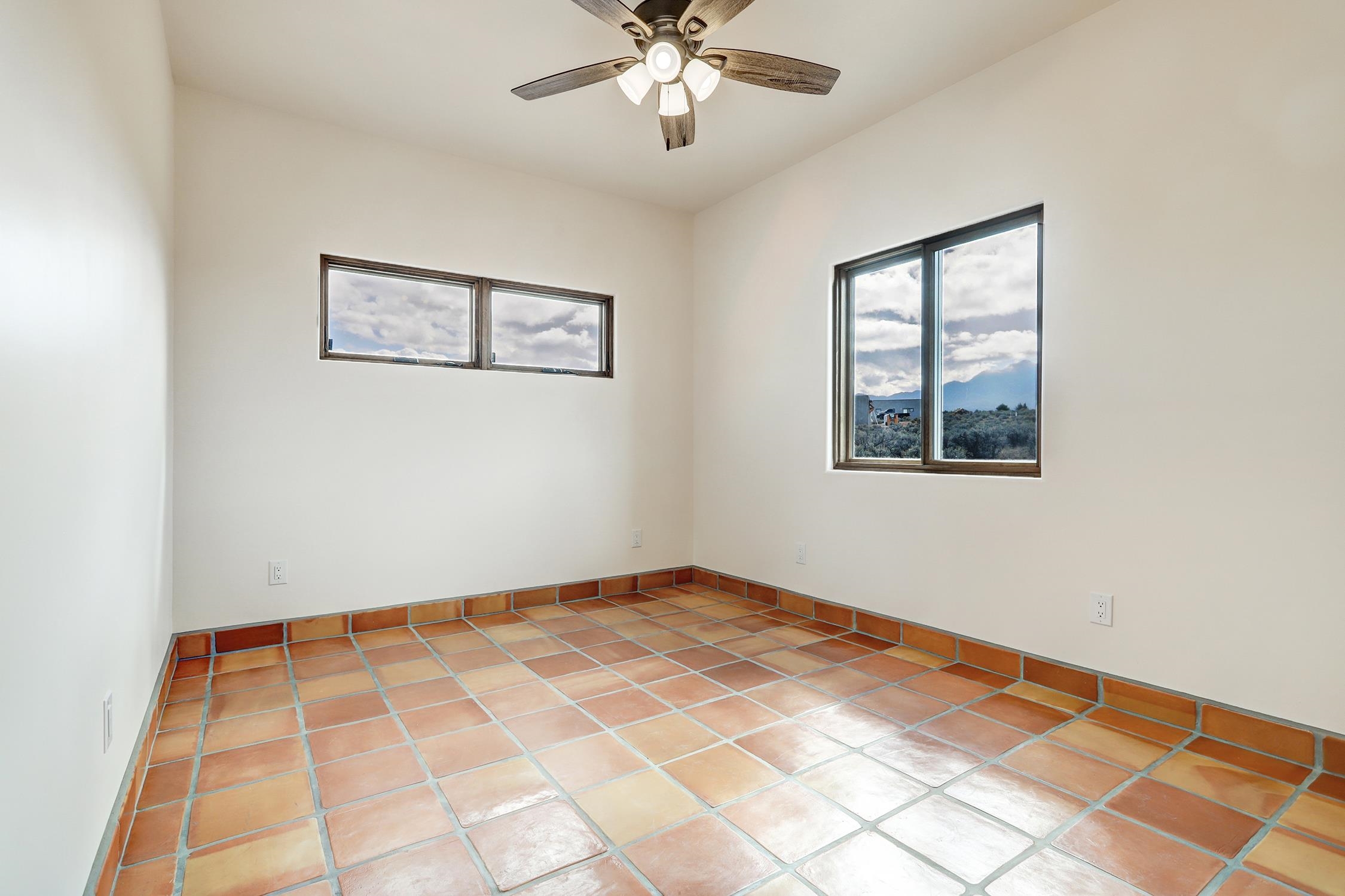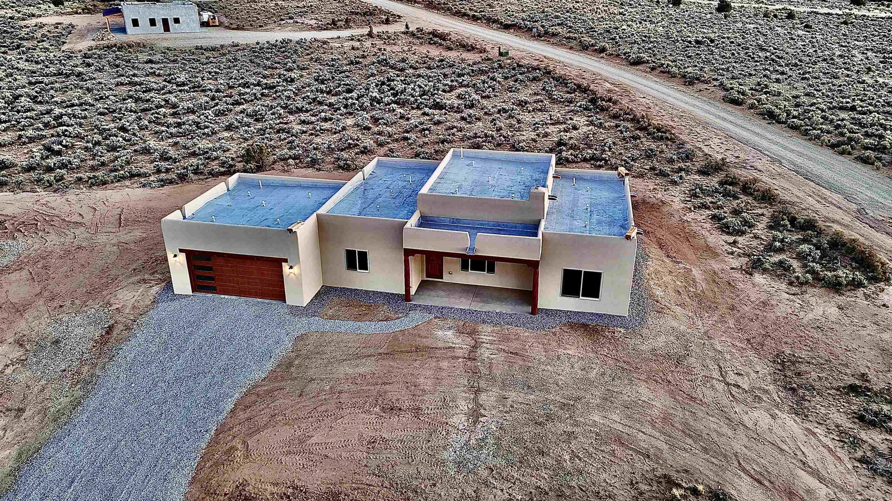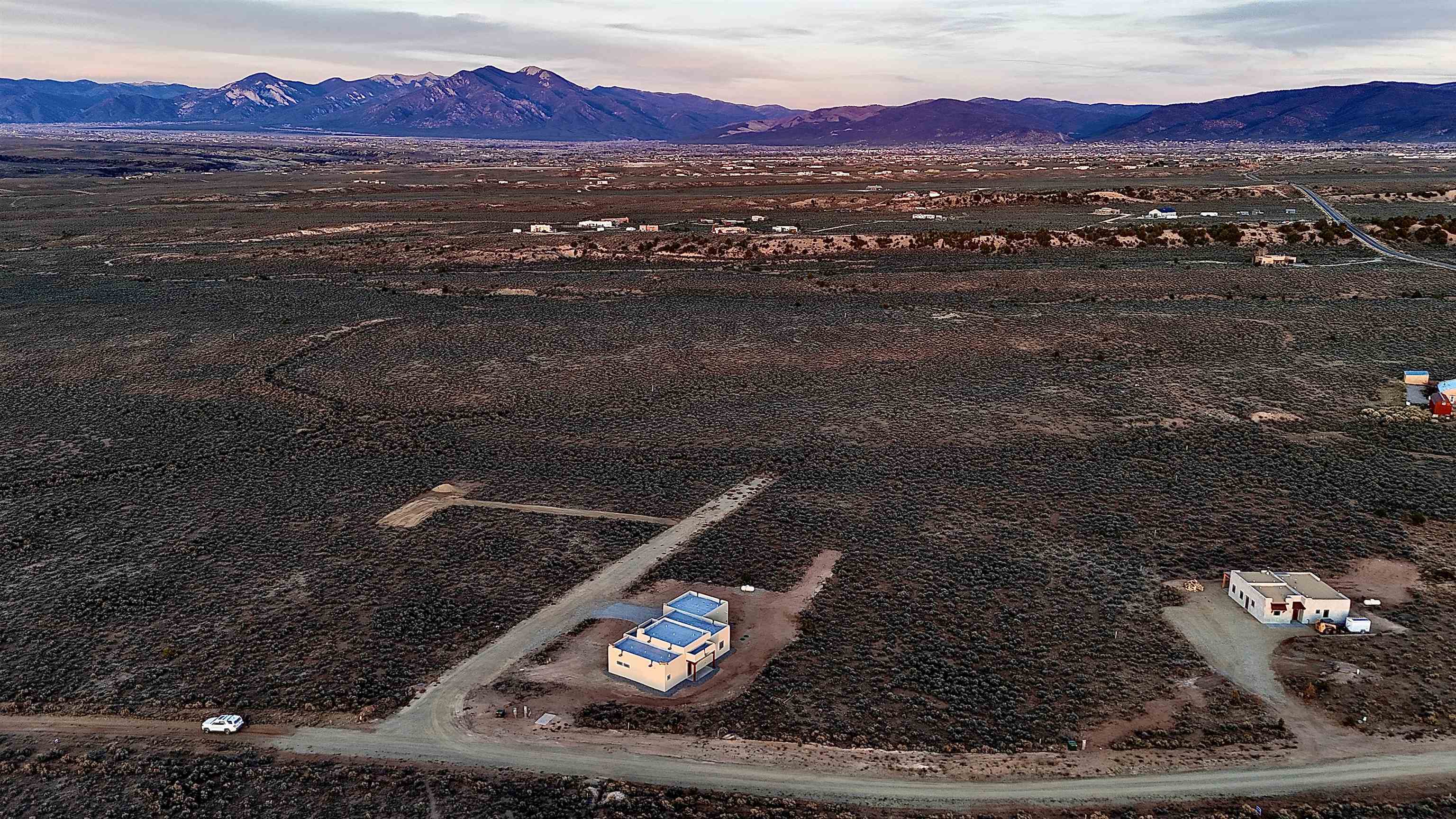 Tranquil, peaceful, and absolutely stunning 2025 Southwest Pueblo-style home for sale near the hiking trails at the end of town! Superb quality with an extra 4" of concrete footings and extra rebar to ensure a solid foundation and structural integrity of the home. The home is 1,517 square feet of heated living space with an extra 500 square feet of heated space in the garage. Can easily be converted to a studio with another garage added. Utilities include: a shared well (5 homes), septic, electric, and propane. Radiant heat throughout the home for warm floors on a snowy day. A southwest fireplace in the living room for ambiance and roasting marshmallows on those cold, blizzardy nights! Vigas in the main living space to complement the high ceilings. Custom details throughout - gorgeous handmade Talavera tiles used for the backsplash in the kitchen and bathroom, and accents in the showers and sinks. Matching mirrors above each sink for a well thought-out design flow throughout the home. Light green tiled countertops in the kitchen to forest green tiles in the bathrooms. Custom shower glass doors in each shower with no step but a gentle slope accommodating little ones, pups, elders, or those who may be easily clumsy! Handmade Saltillo tiles throughout. A well-balanced color palette with neutrals to bright reds, yellows, orange, dark blues and an overall green tone that feels refreshing and warm. RV hook-ups behind the home, an electric car plug-in added in the garage. Photos capture the elegance, while the virtual tour captures artistic touch. 3D walkthrough and floor plan are added as a bonus to the listing for you to experience the home if you're not able to see it right away. Last but not least, the expansive views in almost all directions will always remind you that the mountains are home! A simple yet heart-wrenching reminder of what makes Taos so special and why we all love it so much! *Four Pinon trees to be added to the property* See here for 3D rendering: https://tours.dragonfly360imaging.com/299473