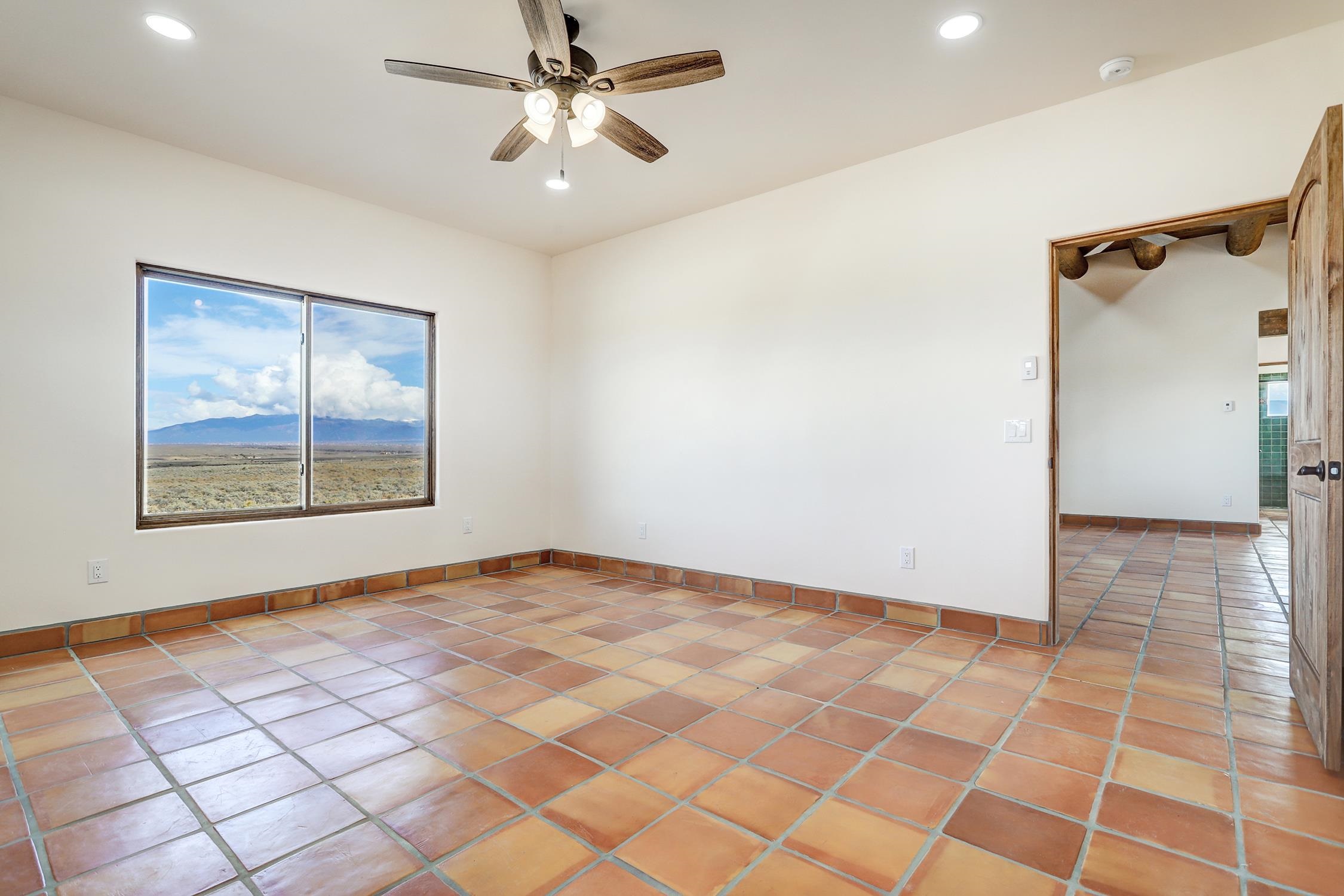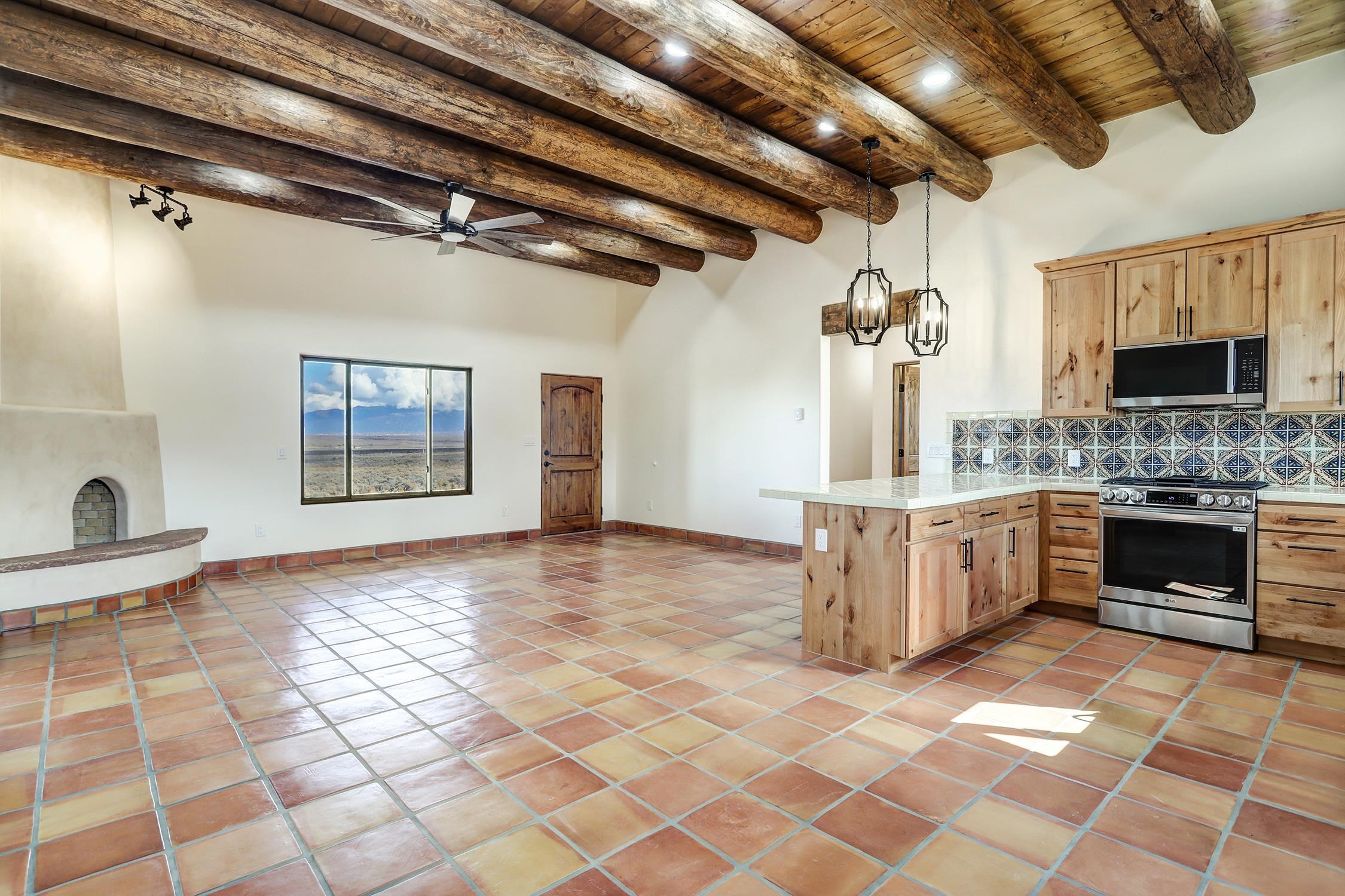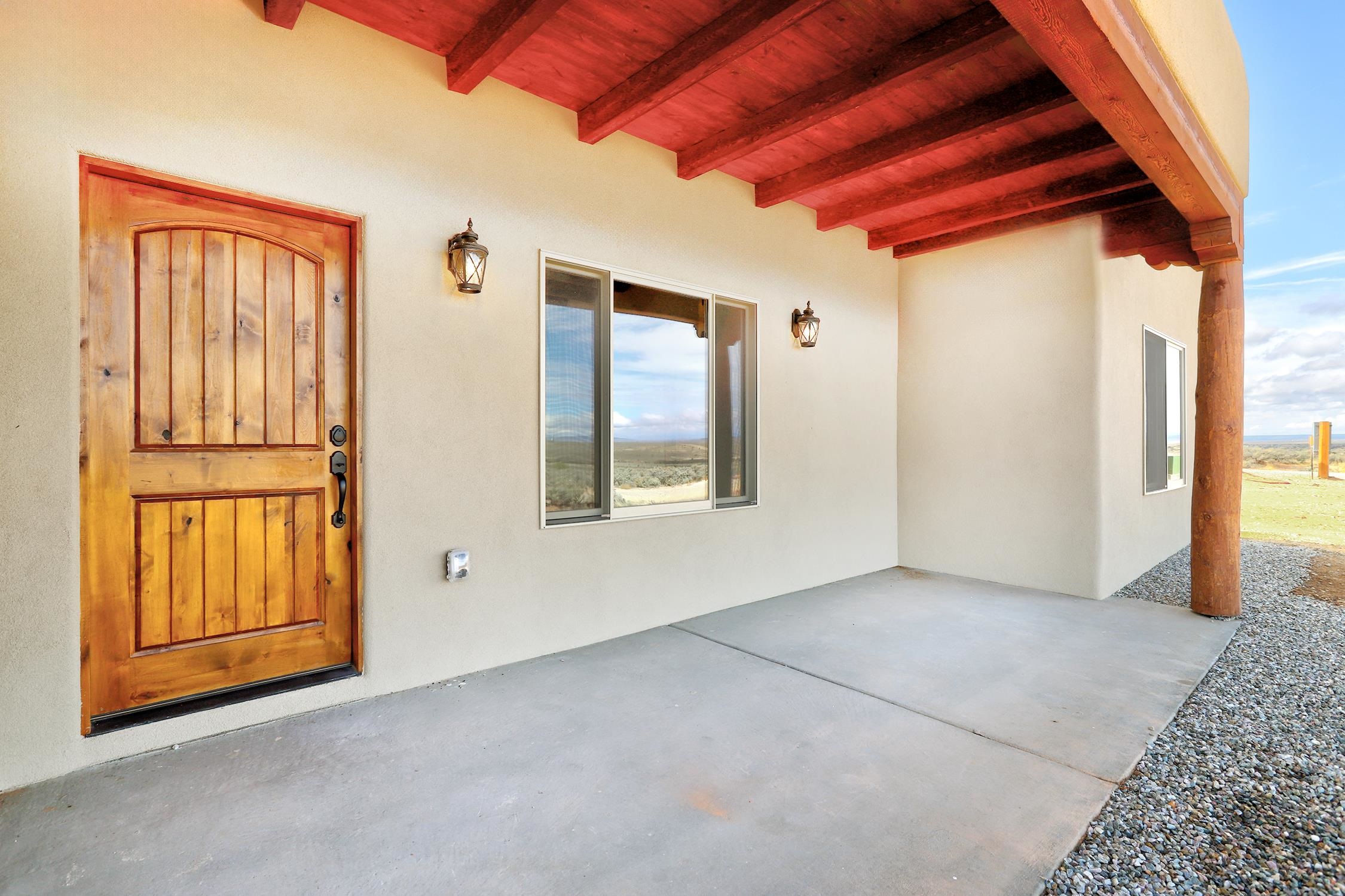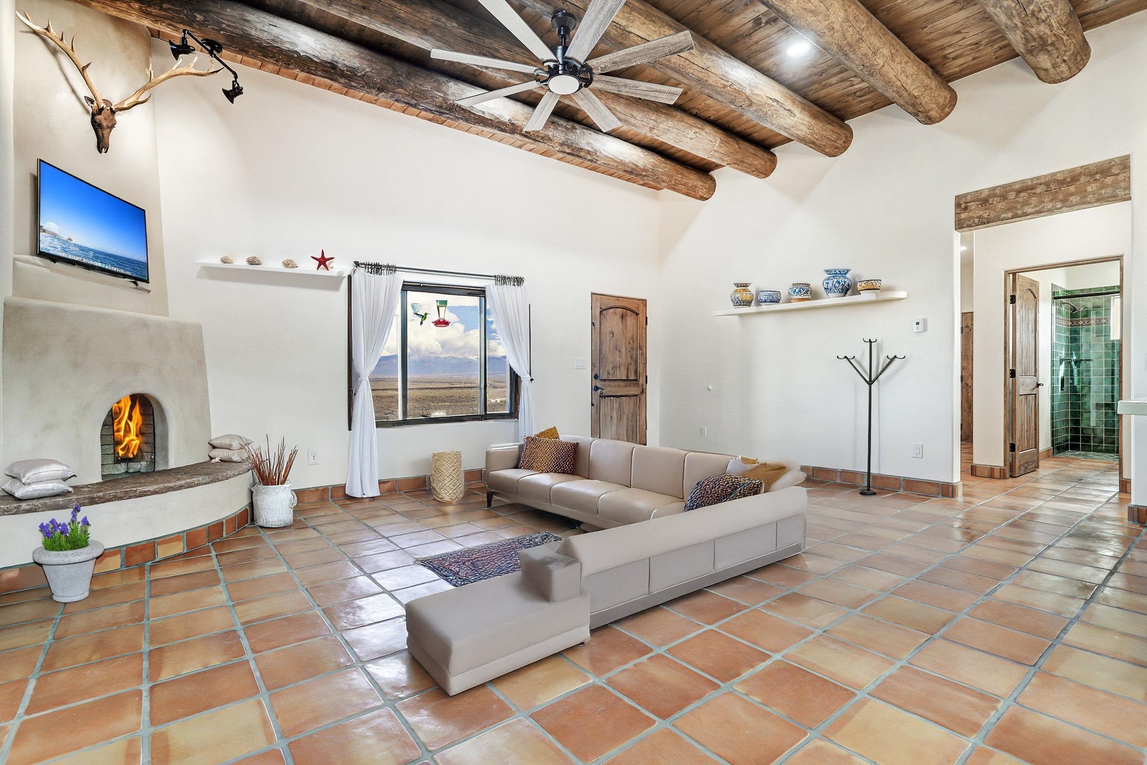 Tranquil, peaceful, and absolutely stunning 2025 Southwest Pueblo-style home for sale near the hiking trails at the end of town! Superb quality with an extra 4" of concrete footings and extra rebar to ensure a solid foundation and structural integrity of the home. The home is 1,517 square feet of heated living space with an extra 500 square feet of heated space in the garage. Can easily be converted to a studio with another garage added. Utilities include: a shared well (5 homes), septic, electric, and propane. Radiant heat throughout the home for warm floors on a snowy day. A southwest fireplace in the living room for ambiance and roasting marshmallows on those cold, blizzardy nights! Vigas in the main living space to complement the high ceilings. Custom details throughout - gorgeous handmade Talavera tiles used for the backsplash in the kitchen and bathroom, and accents in the showers and sinks. Matching mirrors above each sink for a well thought-out design flow throughout the home. Light green tiled countertops in the kitchen to forest green tiles in the bathrooms. Custom shower glass doors in each shower with no step but a gentle slope accommodating little ones, pups, elders, or those who may be easily clumsy! Handmade Saltillo tiles throughout. A well-balanced color palette with neutrals to bright reds, yellows, orange, dark blues and an overall green tone that feels refreshing and warm. RV hook-ups behind the home, an electric car plug-in added in the garage. Photos capture the elegance, while the virtual tour captures artistic touch. 3D walkthrough and floor plan are added as a bonus to the listing for you to experience the home if you're not able to see it right away. Last but not least, the expansive views in almost all directions will always remind you that the mountains are home! A simple yet heart-wrenching reminder of what makes Taos so special and why we all love it so much! *Four Pinon trees to be added to the property* See here for 3D rendering: https://tours.dragonfly360imaging.com/299473