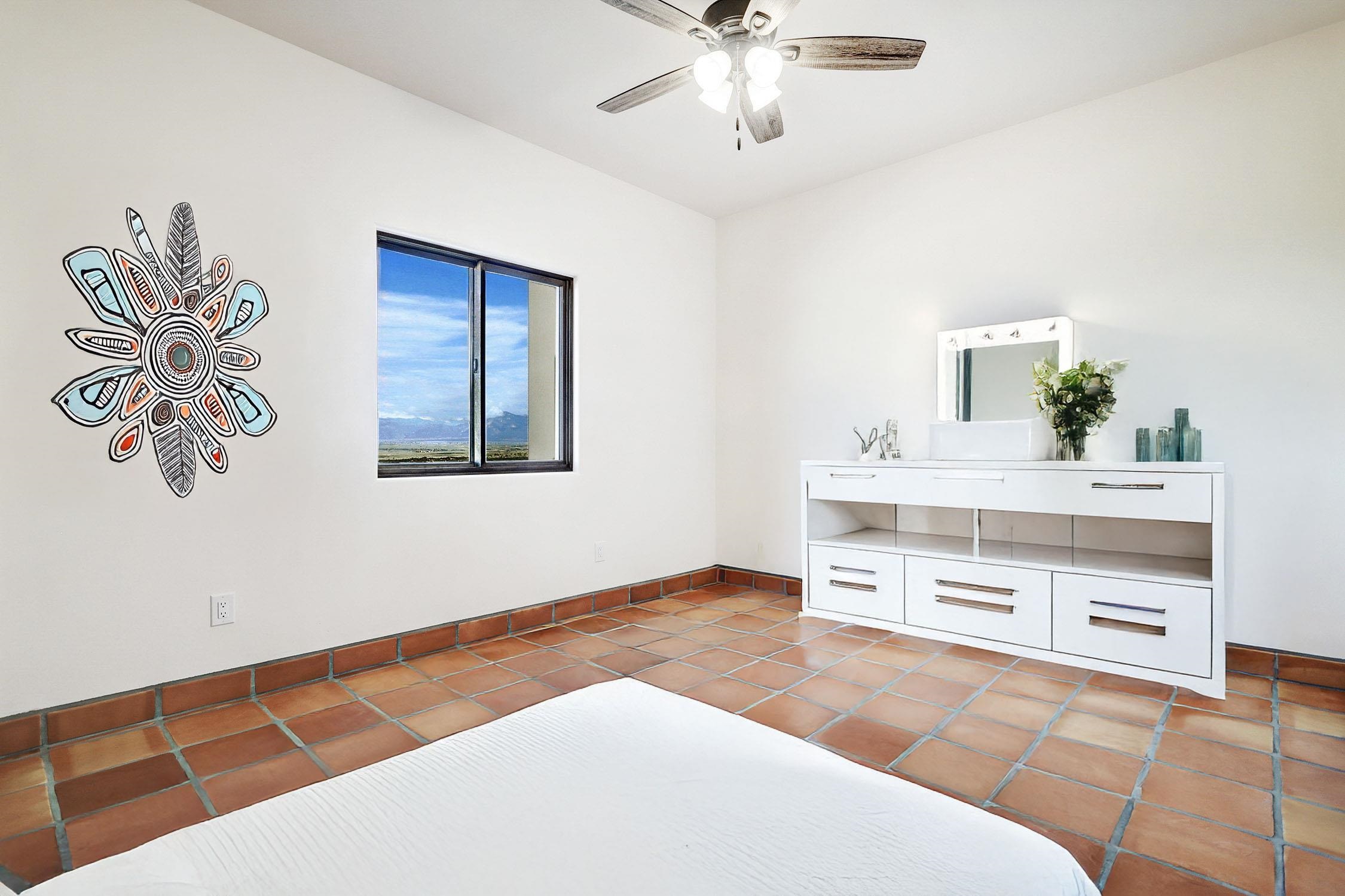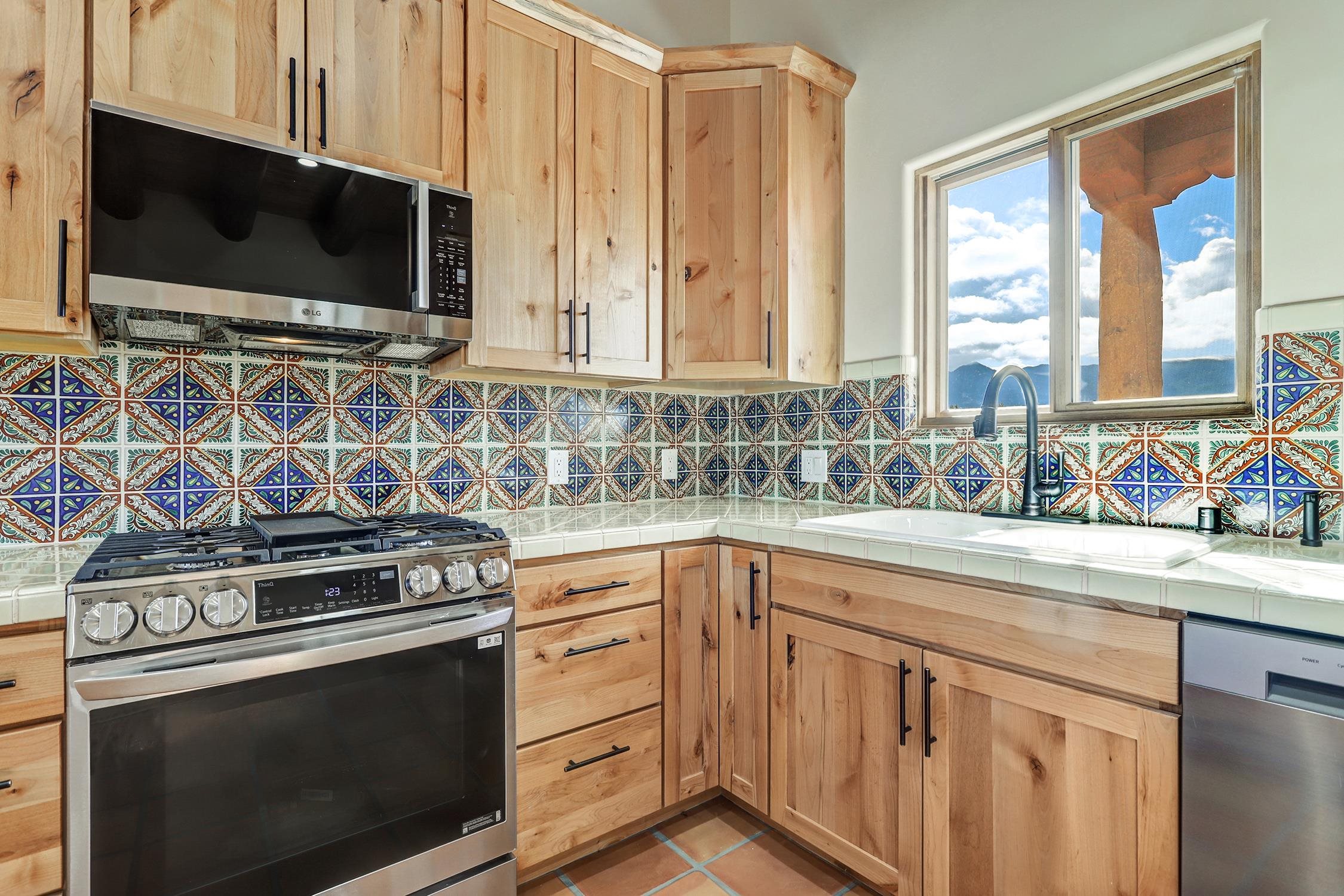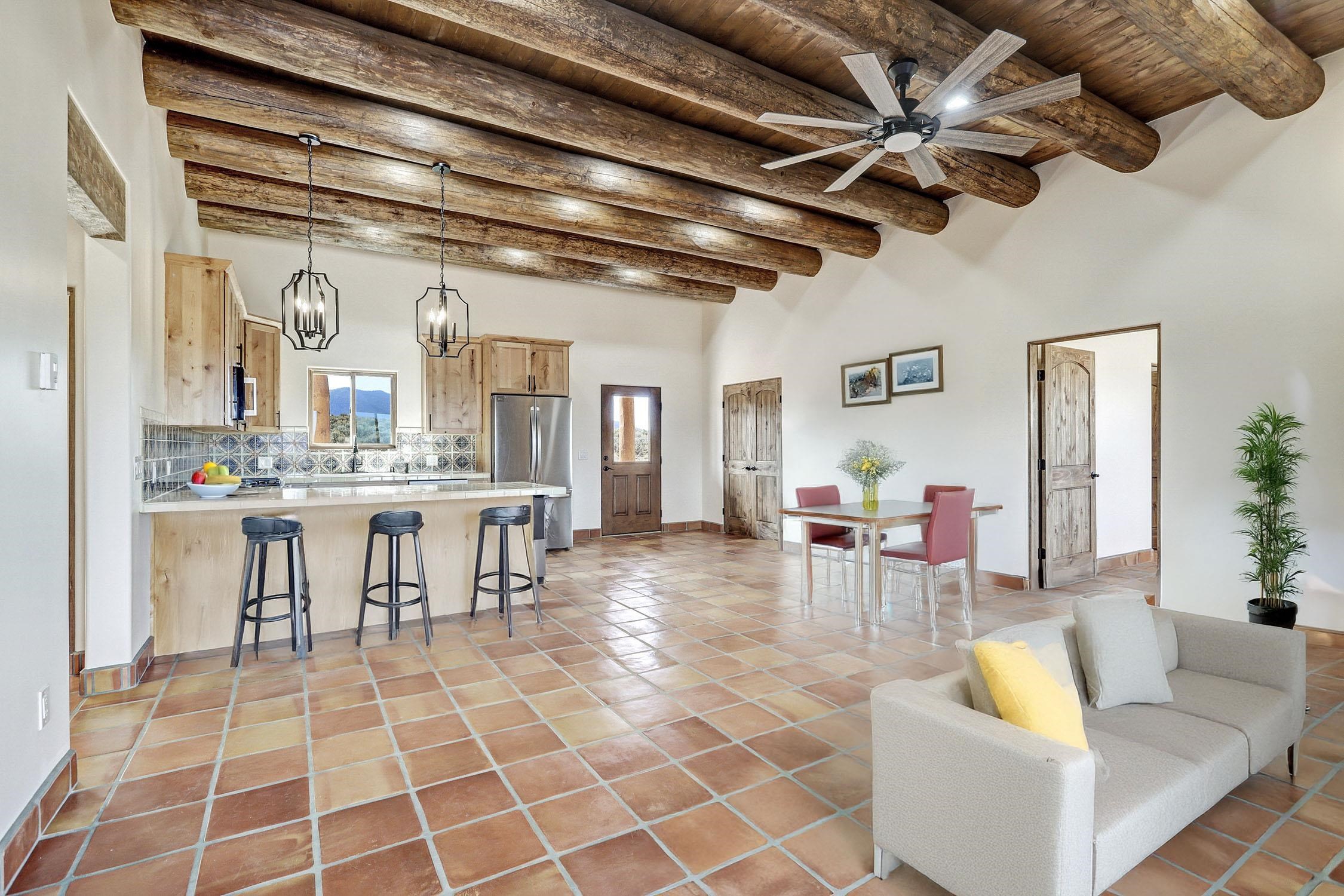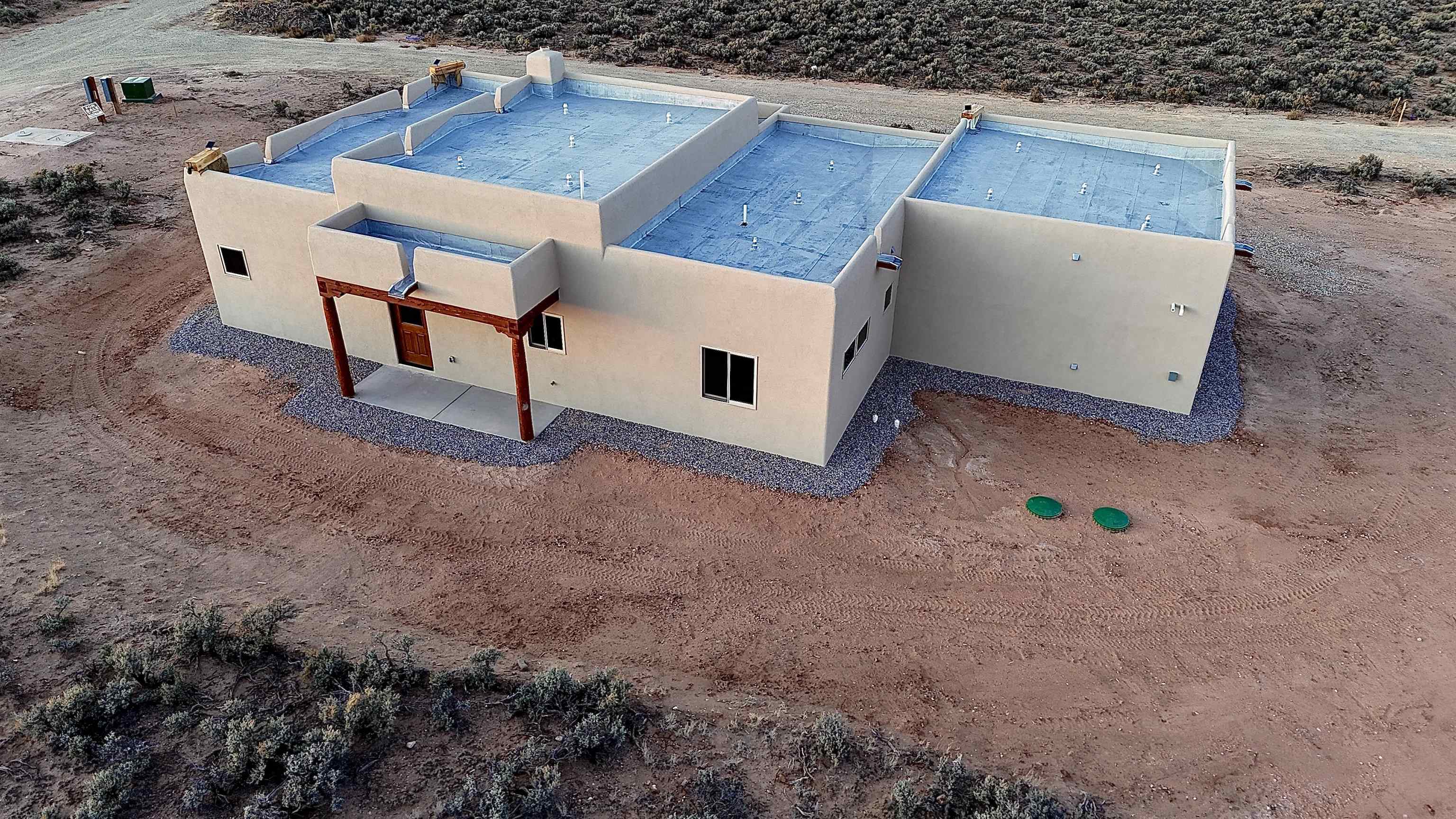 Tranquil, peaceful, and absolutely stunning 2025 Southwest Pueblo-style home for sale near the hiking trails at the end of town! Superb quality with an extra 4" of concrete footings and extra rebar to ensure a solid foundation and structural integrity of the home. The home is 1,517 square feet of heated living space with an extra 500 square feet of heated space in the garage. Can easily be converted to a studio with another garage added. Utilities include: a shared well (5 homes), septic, electric, and propane. Radiant heat throughout the home for warm floors on a snowy day. A southwest fireplace in the living room for ambiance and roasting marshmallows on those cold, blizzardy nights! Vigas in the main living space to complement the high ceilings. Custom details throughout - gorgeous handmade Talavera tiles used for the backsplash in the kitchen and bathroom, and accents in the showers and sinks. Matching mirrors above each sink for a well thought-out design flow throughout the home. Light green tiled countertops in the kitchen to forest green tiles in the bathrooms. Custom shower glass doors in each shower with no step but a gentle slope accommodating little ones, pups, elders, or those who may be easily clumsy! Handmade Saltillo tiles throughout. A well-balanced color palette with neutrals to bright reds, yellows, orange, dark blues and an overall green tone that feels refreshing and warm. RV hook-ups behind the home, an electric car plug-in added in the garage. Photos capture the elegance, while the virtual tour captures artistic touch. 3D walkthrough and floor plan are added as a bonus to the listing for you to experience the home if you're not able to see it right away. Last but not least, the expansive views in almost all directions will always remind you that the mountains are home! A simple yet heart-wrenching reminder of what makes Taos so special and why we all love it so much! *Four Pinon trees to be added to the property* See here for 3D rendering: https://tours.dragonfly360imaging.com/299473