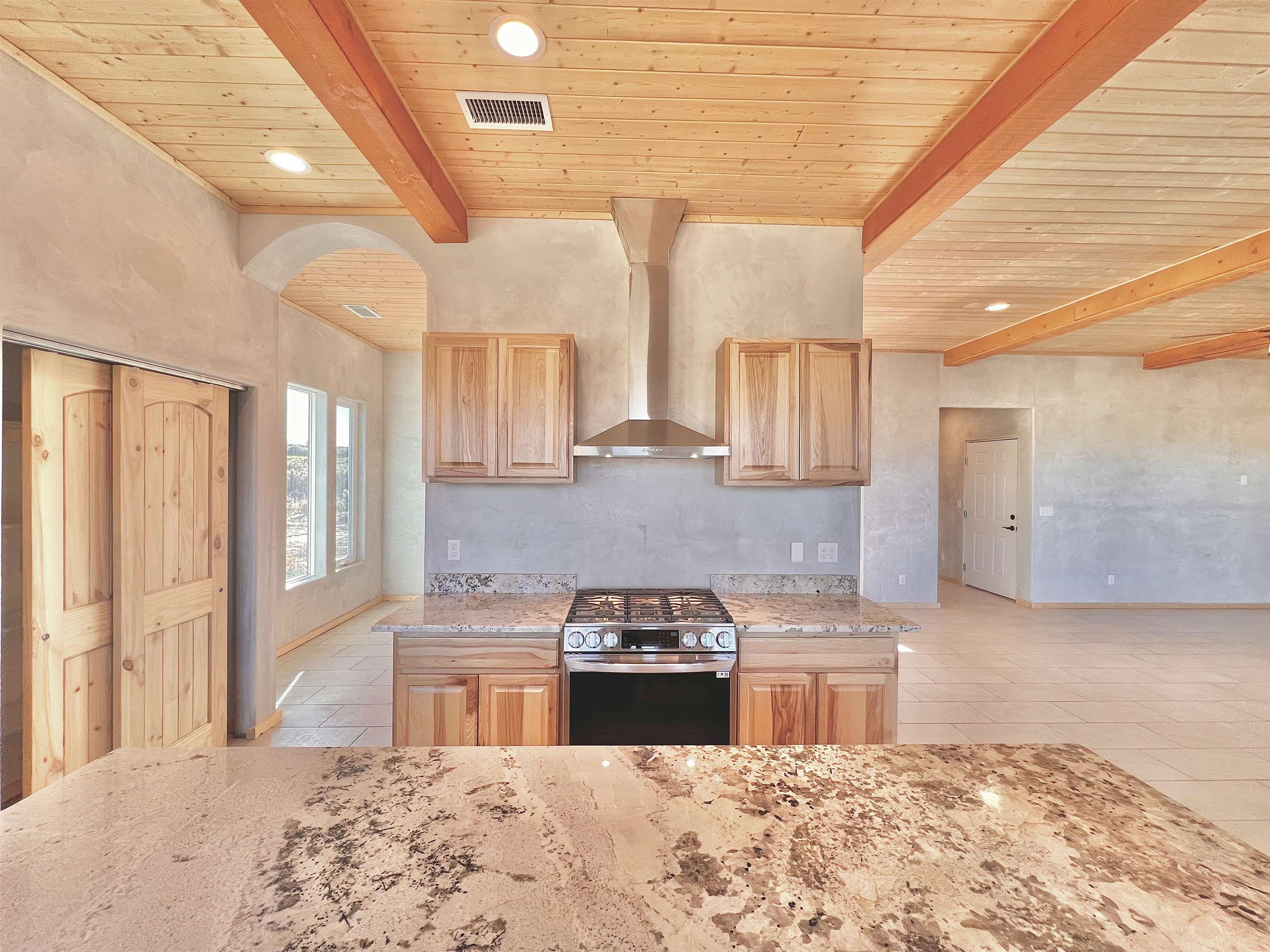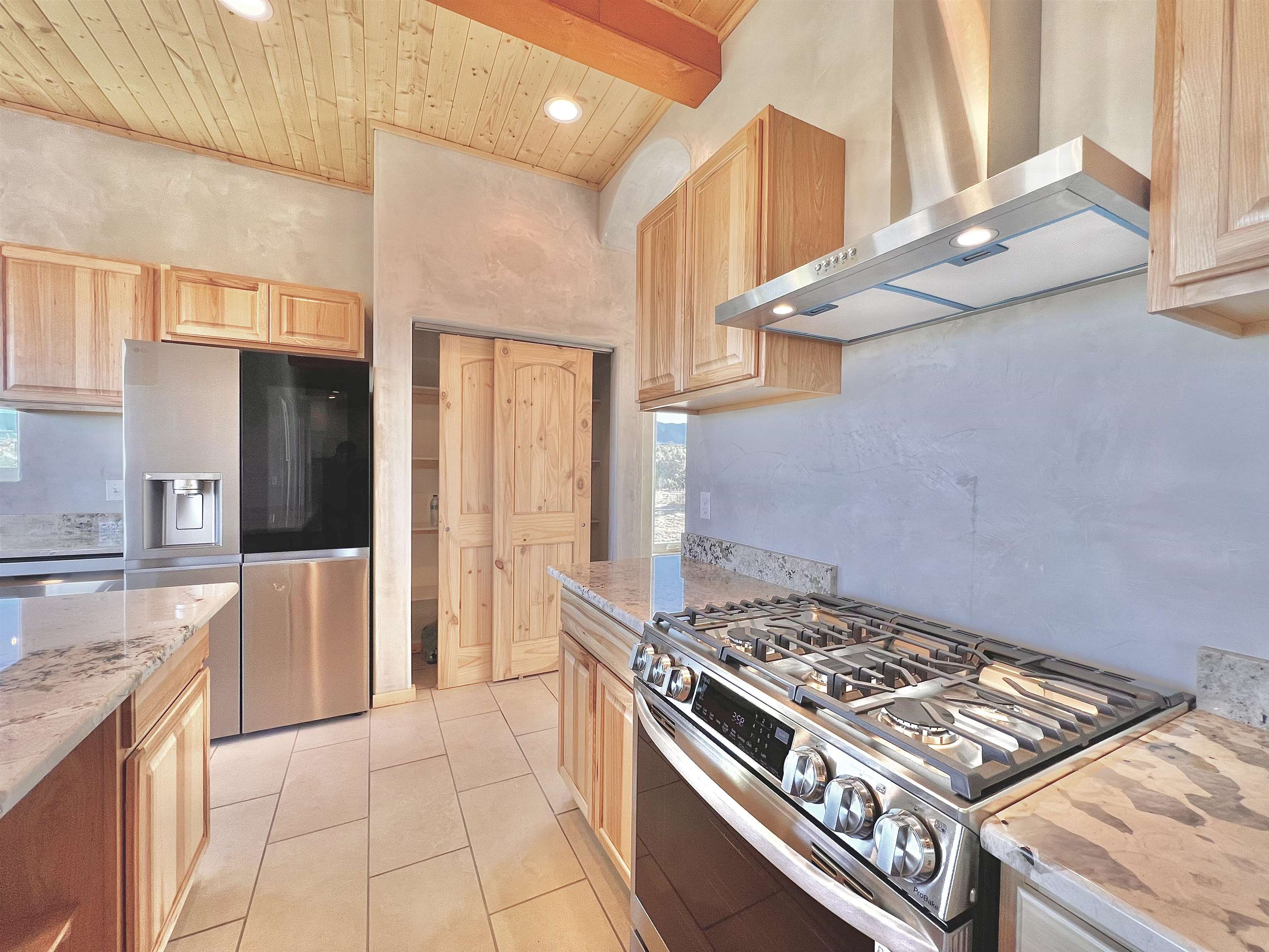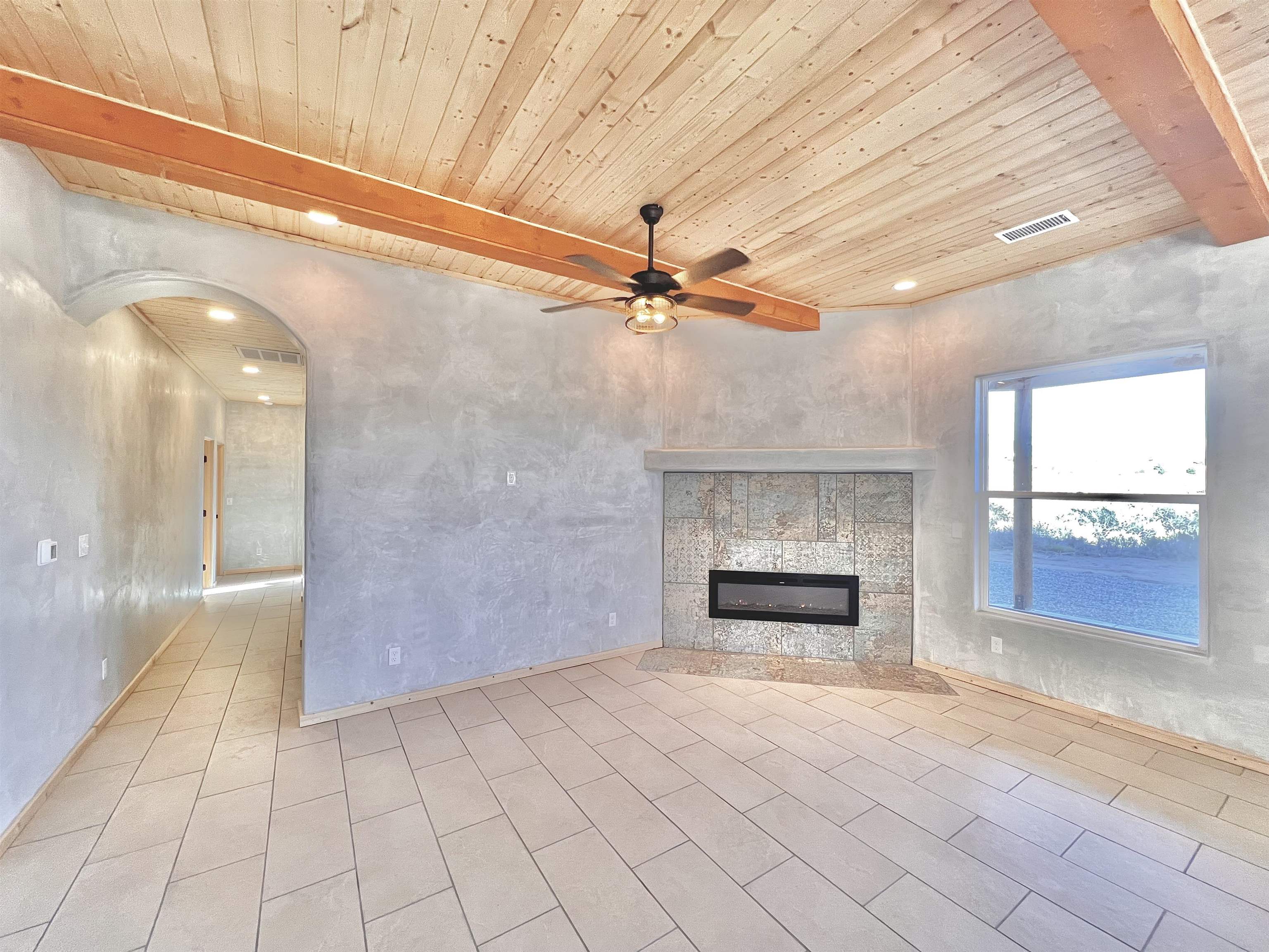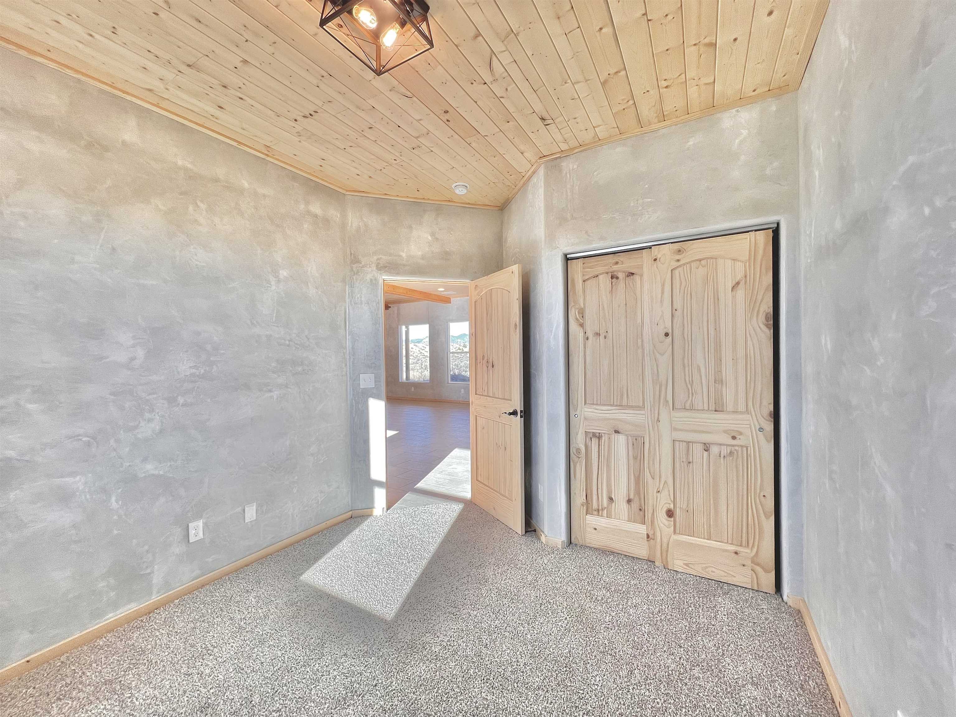 Discover a rare opportunity to enjoy golf-course living without the constraints of HOA dues or restrictive covenants. Positioned along the outskirts of the 3rd fairway at the renowned Taos Country Club Golf Course, this newly built custom residence captures the essence of upscale desert living--serene, sophisticated, and surrounded by breathtaking natural beauty. Set on 1.27 expansive acres, the home offers unobstructed panoramic views of the Sangre de Cristo Mountains, the dramatic Taos Valley, and the rugged Rio Pueblo Gorge. Outdoor enthusiasts will appreciate immediate access to world-class hiking, biking, and the nearby UNM Taos Klauer Campus--all while enjoying the ease of a quick southbound drive toward Santa Fe. Crafted in an elegant pueblo-inspired architectural style, the home showcases impeccable workmanship and timeless Southwestern design. Inside, 2,430 square feet of refined living space features hand-laid tile floors, tongue-and-groove and beam ceilings, Diamond Finish plaster walls, and select-pine custom cabinetry. High ceilings and strategically placed windows flood the interior with natural light, capturing sunrise, sunset, and mountain vistas from multiple rooms. The gourmet kitchen serves as the heart of the home, appointed with granite countertops, a high-tech gas range with built-in air-fryer, and large picture windows framing unforgettable views. The living room is equally inviting, anchored by a beautifully designed fireplace that adds warmth and ambiance to the space. With four bedrooms and two and a half baths, the home thoughtfully balances luxury with functionality. The primary suite features privacy and comfort, while the additional bedrooms, elegantly carpeted, provide versatility for family or guests. The residence is engineered for year-round comfort with central heating, refrigerated air, a TPO roof with attic insulation, and a tankless water heater for efficiency. Modern convenience continues with smart-home technology that allows remote control of the garage doors, climate systems, and water heater. An oversized two-car garage with an insulated 8' x 16' door ensures vehicles and gear are protected from the elements, completing this exceptional property. Experience luxury, privacy, and panoramic beauty--without compromise. Schedule your private viewing and discover a home that stands apart in one of Taos's most coveted settings.