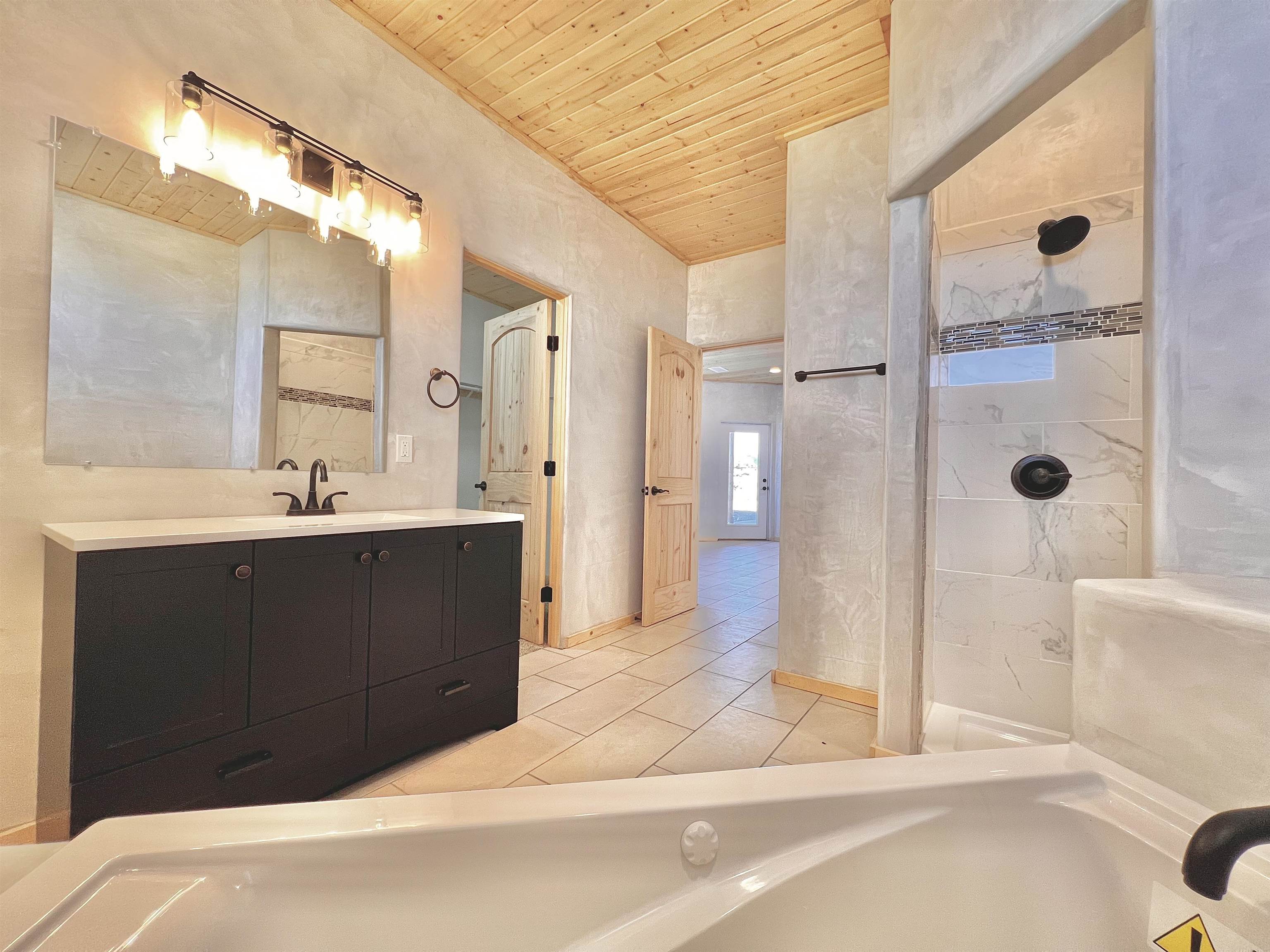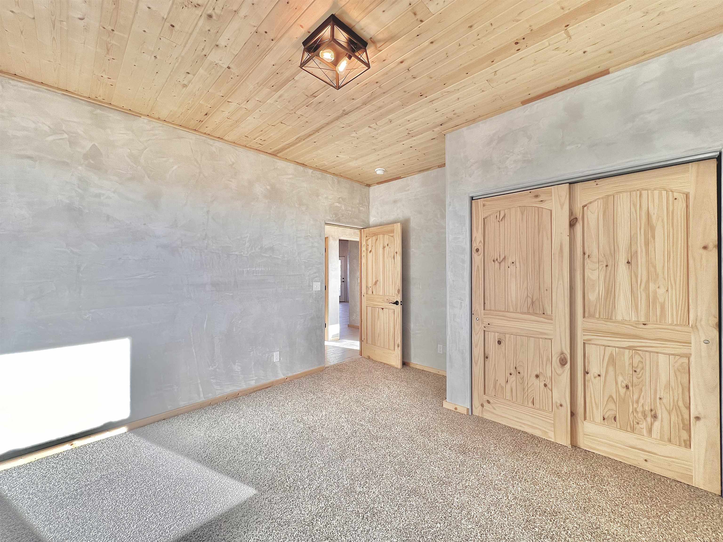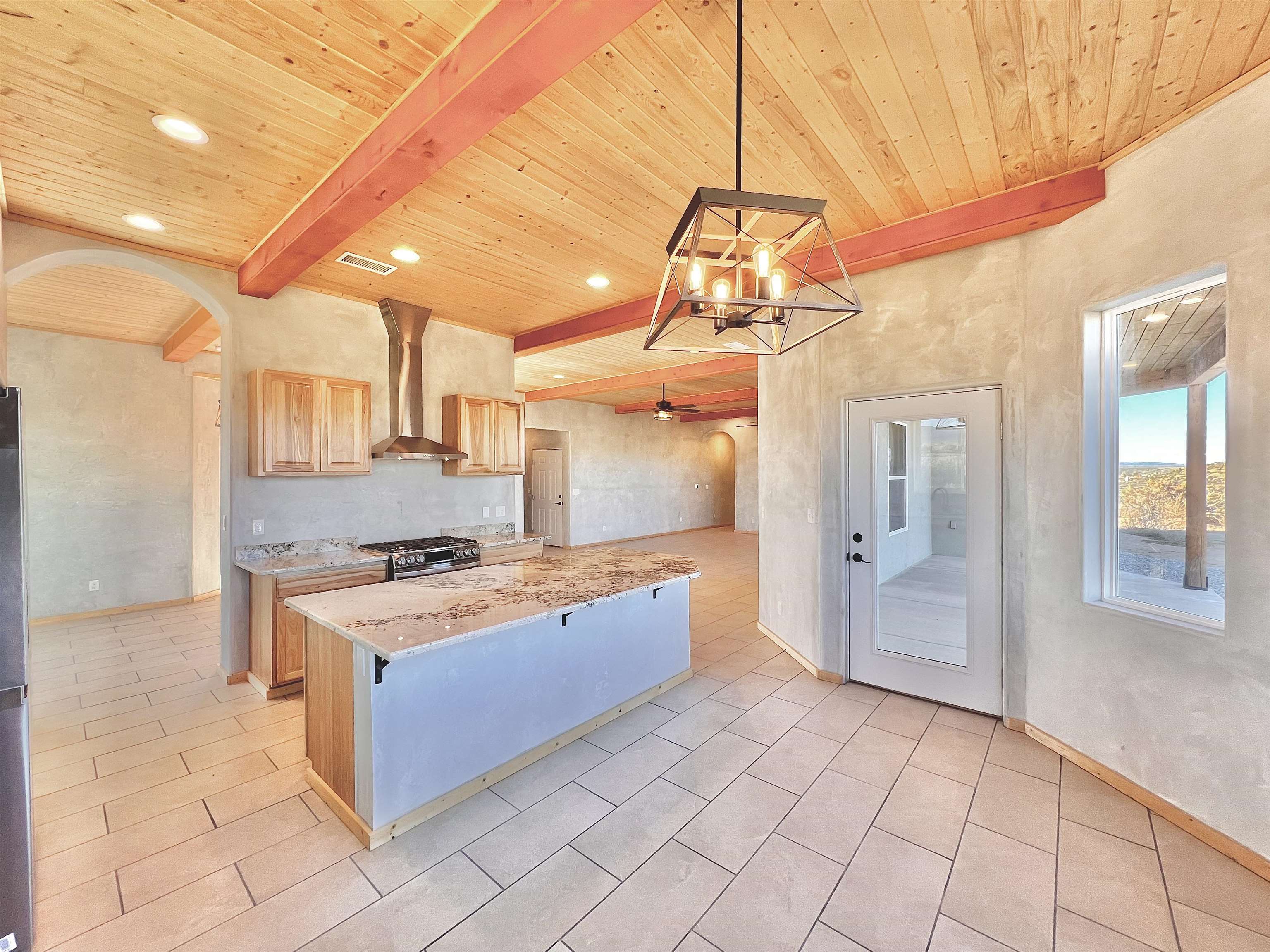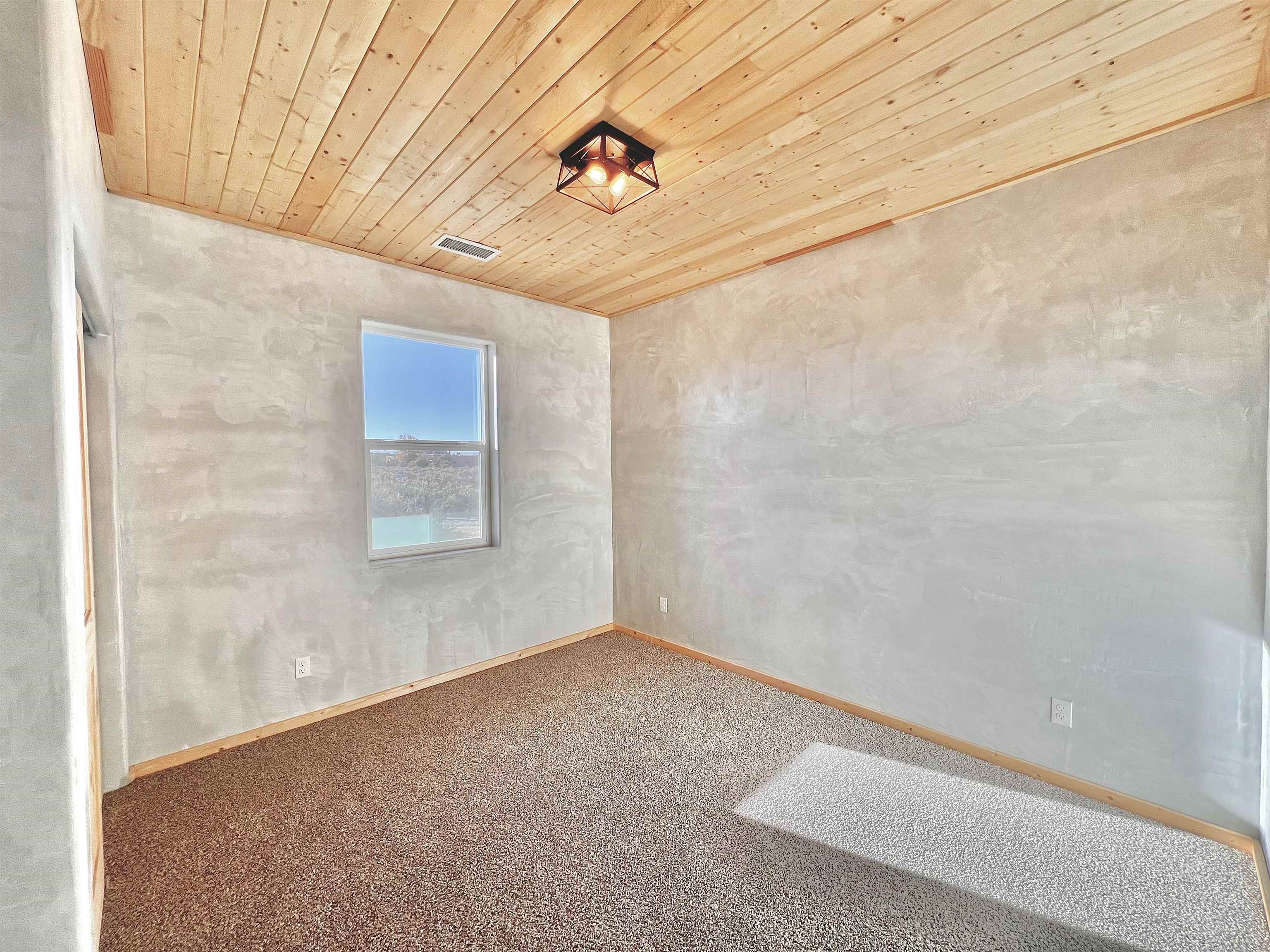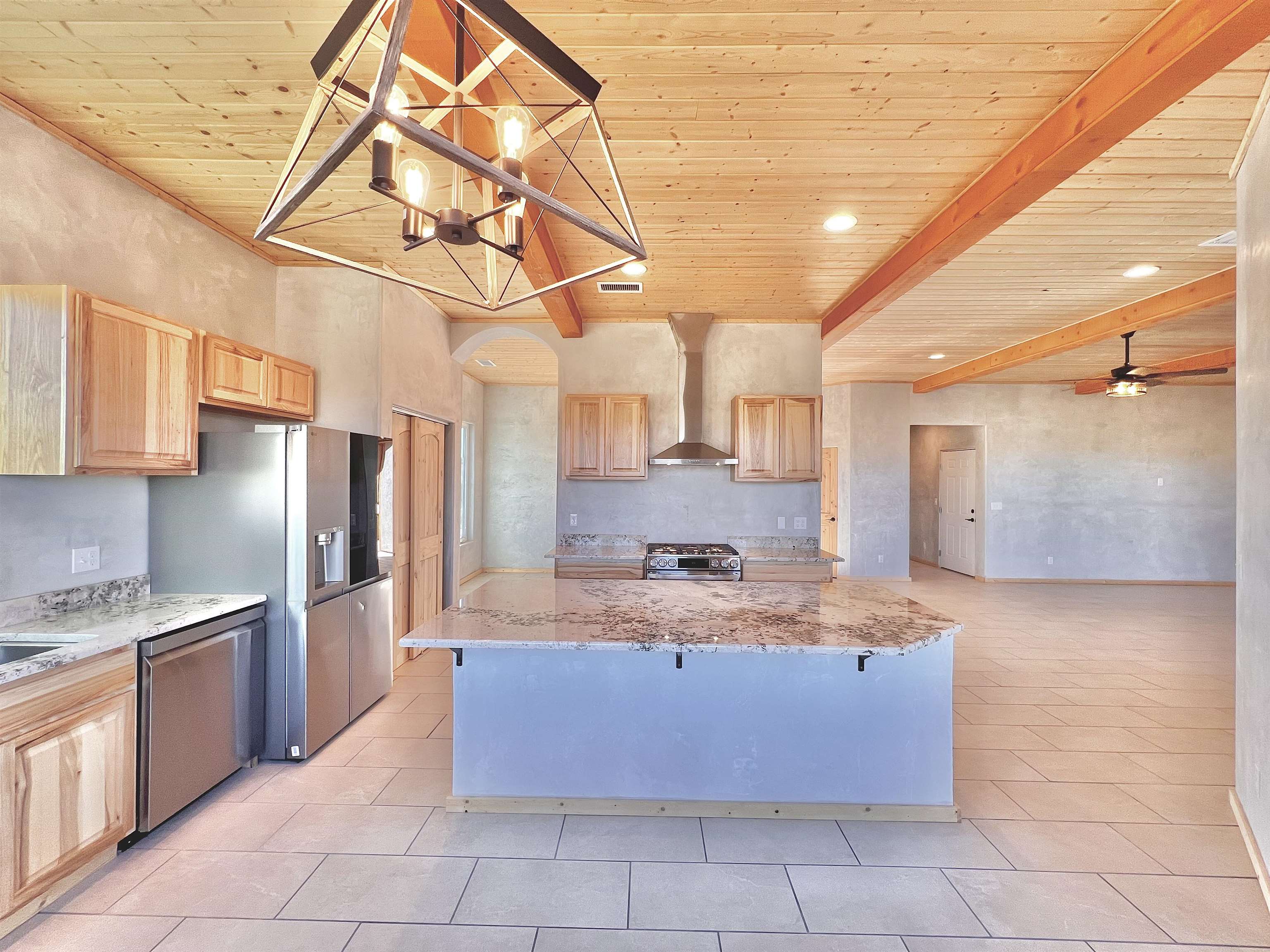 Discover a rare opportunity to enjoy golf-course living without the constraints of HOA dues or restrictive covenants. Positioned along the outskirts of the 3rd fairway at the renowned Taos Country Club Golf Course, this newly built custom residence captures the essence of upscale desert living--serene, sophisticated, and surrounded by breathtaking natural beauty. Set on 1.27 expansive acres, the home offers unobstructed panoramic views of the Sangre de Cristo Mountains, the dramatic Taos Valley, and the rugged Rio Pueblo Gorge. Outdoor enthusiasts will appreciate immediate access to world-class hiking, biking, and the nearby UNM Taos Klauer Campus--all while enjoying the ease of a quick southbound drive toward Santa Fe. Crafted in an elegant pueblo-inspired architectural style, the home showcases impeccable workmanship and timeless Southwestern design. Inside, 2,430 square feet of refined living space features hand-laid tile floors, tongue-and-groove and beam ceilings, Diamond Finish plaster walls, and select-pine custom cabinetry. High ceilings and strategically placed windows flood the interior with natural light, capturing sunrise, sunset, and mountain vistas from multiple rooms. The gourmet kitchen serves as the heart of the home, appointed with granite countertops, a high-tech gas range with built-in air-fryer, and large picture windows framing unforgettable views. The living room is equally inviting, anchored by a beautifully designed fireplace that adds warmth and ambiance to the space. With four bedrooms and two and a half baths, the home thoughtfully balances luxury with functionality. The primary suite features privacy and comfort, while the additional bedrooms, elegantly carpeted, provide versatility for family or guests. The residence is engineered for year-round comfort with central heating, refrigerated air, a TPO roof with attic insulation, and a tankless water heater for efficiency. Modern convenience continues with smart-home technology that allows remote control of the garage doors, climate systems, and water heater. An oversized two-car garage with an insulated 8' x 16' door ensures vehicles and gear are protected from the elements, completing this exceptional property. Experience luxury, privacy, and panoramic beauty--without compromise. Schedule your private viewing and discover a home that stands apart in one of Taos's most coveted settings.