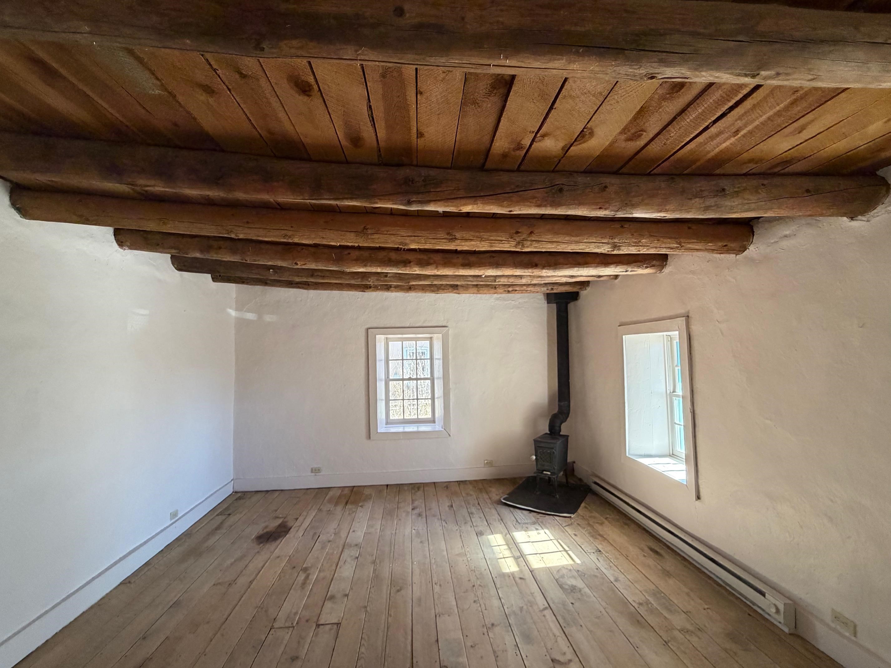 The Real Deal! A rare chance to own a true piece of Taos history. This 100-year-old, 2 bed/1 bath adobe home blends original mud-brick construction with glowing wood stoves, Viga ceiling beams, wood floors, thick walls, shade trees and a long covered portal. Located off the coveted Valdez Rim Rd at the gateway to Taos Ski Valley and snuggled into historic agricultural land, this little retreat will take you back in time. To simpler times in a setting that feels worlds away. The bath has been remodeled and features a tiled shower/tub, built-in shelves and a washer/dryer. There is a combination of baseboard heat and two woodstoves- one in the primary bedroom and a large one in the kitchen. This house is attached to the Upper Des Montes MDWCA Community water system and has a holding tank septic. If patina'd wood floors, thick adobe walls, wood framed windows, gracefully bowing vigas and crackling woodstoves are your thing, you have found it here. Weekend ski cabin or forever home, you decide. Classic. Authentic. Traditional. Timeless.