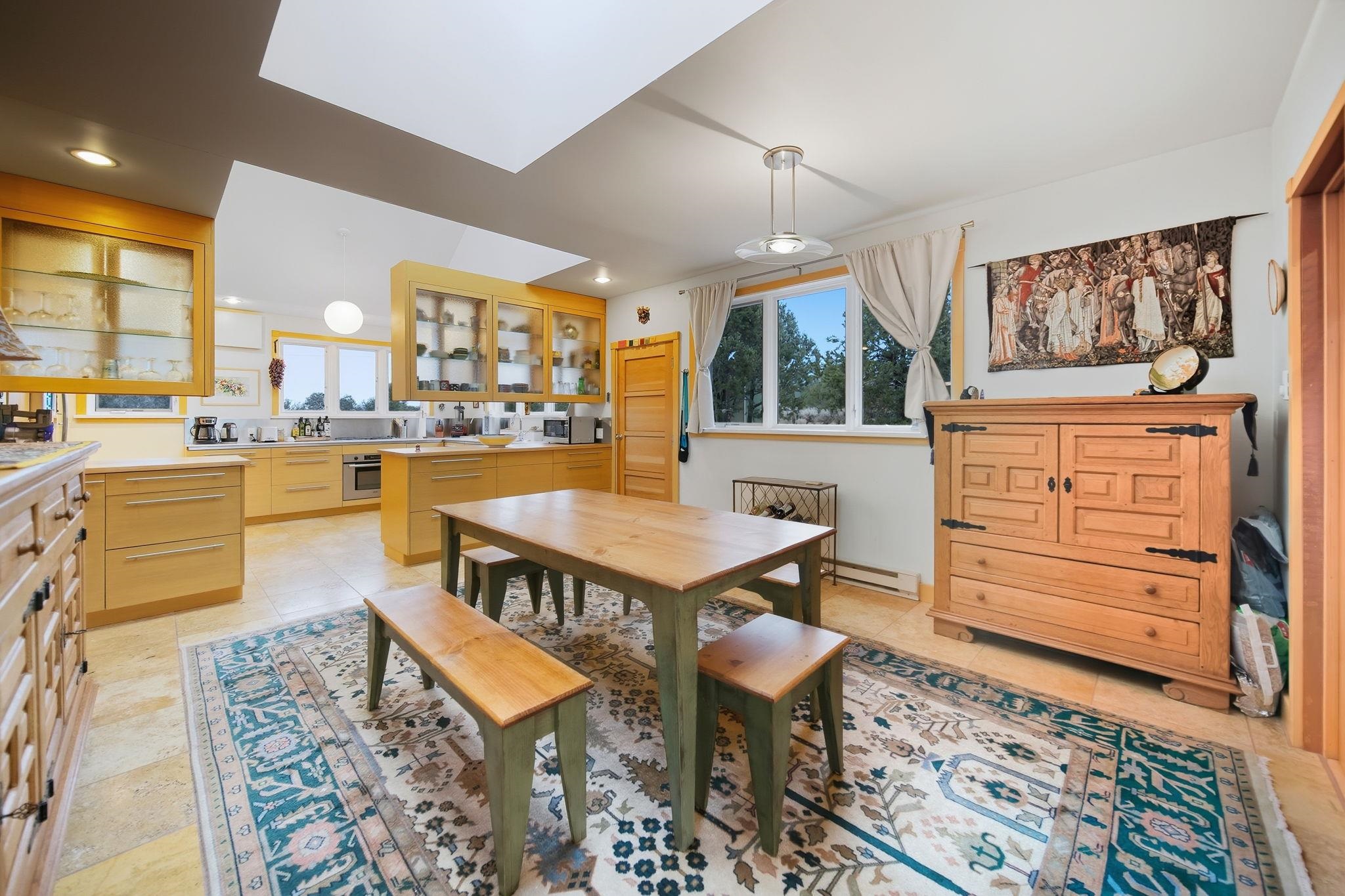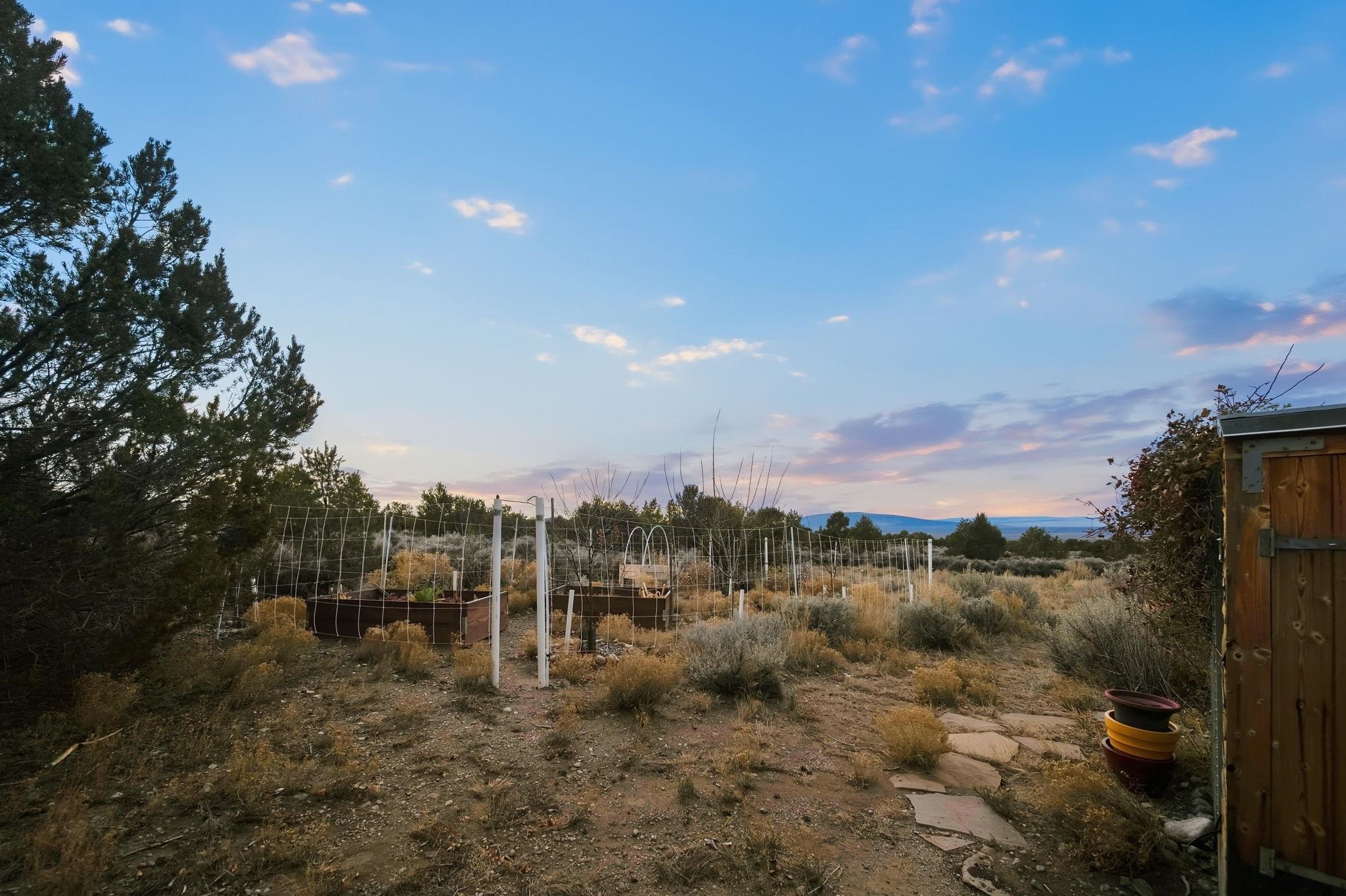 Light-Filled High Desert Sanctuary in El Rito/Latir ~ A true masterpiece of high desert architecture awaits at this stunning sanctuary, privately tucked at the end of a gated road on 5.78 acres in El Rito/Latir. Nestled in the foothills of the Sangre de Cristo Mountains, the vista encompasses the Northern Rio Grand National Heritage Area, Ute Mountain, San Antonio Mountain, Mt. Blanca in Colorado, and more ranges that offer the finest views Northern New Mexico has to offer. This architect-designed, custom 2-bedroom, 2-bath residence (2006) is defined by superior 2x6 construction and a focus on views and light. The sunroom and greenhouse provide exceptional passive solar gain while offering a space for winter food and summer flowers. Enjoy sunsets from the living room, and light from the twelve incredible skylights throughout the home that ensure every vaulted interior space is bathed in natural light. Impeccable craftsmanship and thoughtful care are evident inside, from the classy see-through living room fireplace and sophisticated recessed lighting to the fossil-filled travertine tile and artistic contemporary Southwestern finishes. The gourmet kitchen boasts handmade, German-inspired cabinetry, ample counter space, and top-tier energy-efficient stainless steel appliances, seamlessly integrating function and artistry. Thoughtful luxuries include extensive built-in bookcases, wool carpet, a Japanese soaking tub, and a dedicated, sun-drenched office. The practical features continue with an automatic-door one-car garage and a dual-fuel generator for reliable backup. Outside, a maintenance-free composite deck wraps half the home, ideal for sipping sunrise coffee or evening patio entertaining. The pristine, low-maintenance landscaping features local sculptures, perennials, an automatic sprinkler system, and an orchard protected by electric fencing. A handsome custom metal dog kennel accessible via the laundry room doggy door is perfect for your furry friends to play while you relax and absorb world-class sunsets and big, starry night skies near the Latir Peak Wilderness. This unique property is minutes from world-class skiing at Taos Ski Valley and Red River, the Rio Grande Wild Rivers Recreation Area, and the RCCLA Rio Costilla Park and Campground for superb hiking, fishing, and camping. The Kagyu Mila Guru Stupa is just around the corner for meditation and prayer, downtown Taos is a lovely drive South for shopping and gourmet dining, and Colorado nature or Denver amenities are an easy outlet North. This is your chance to own a piece of New Mexico magic at your very own high desert mountain sanctuary.