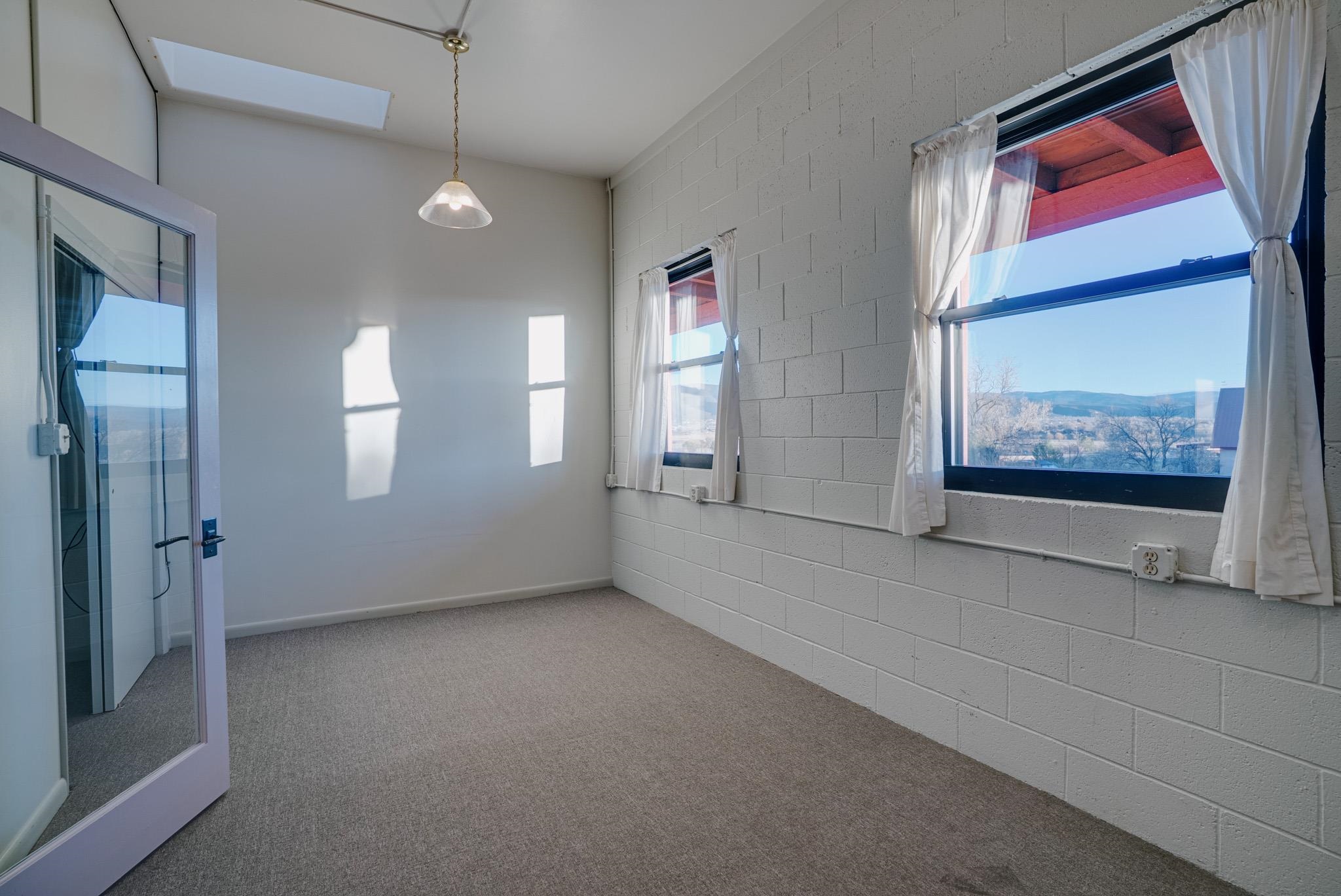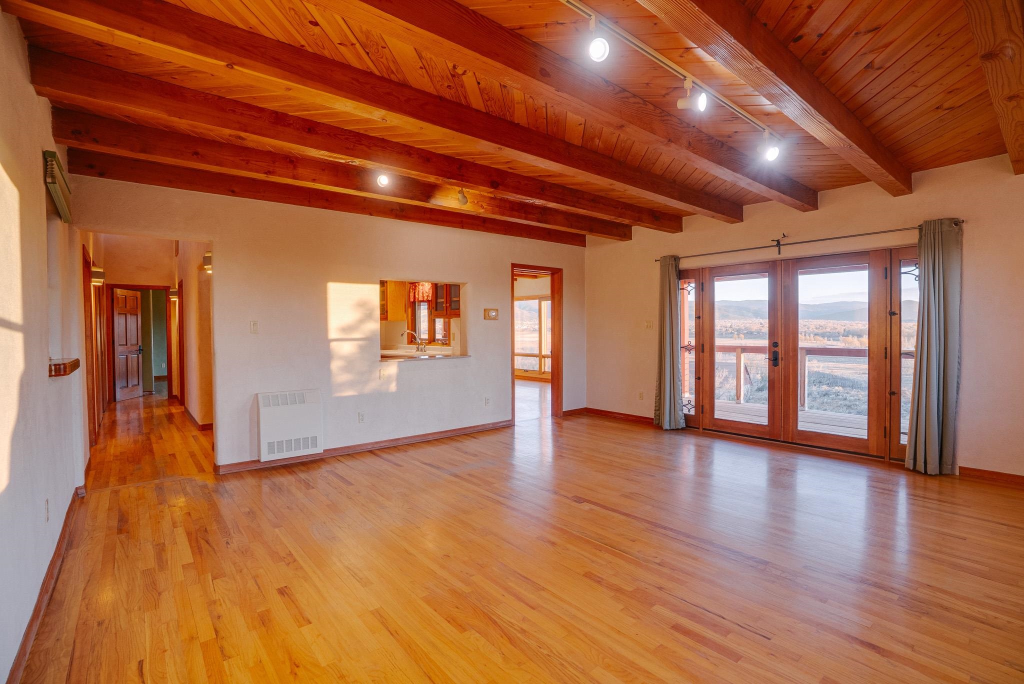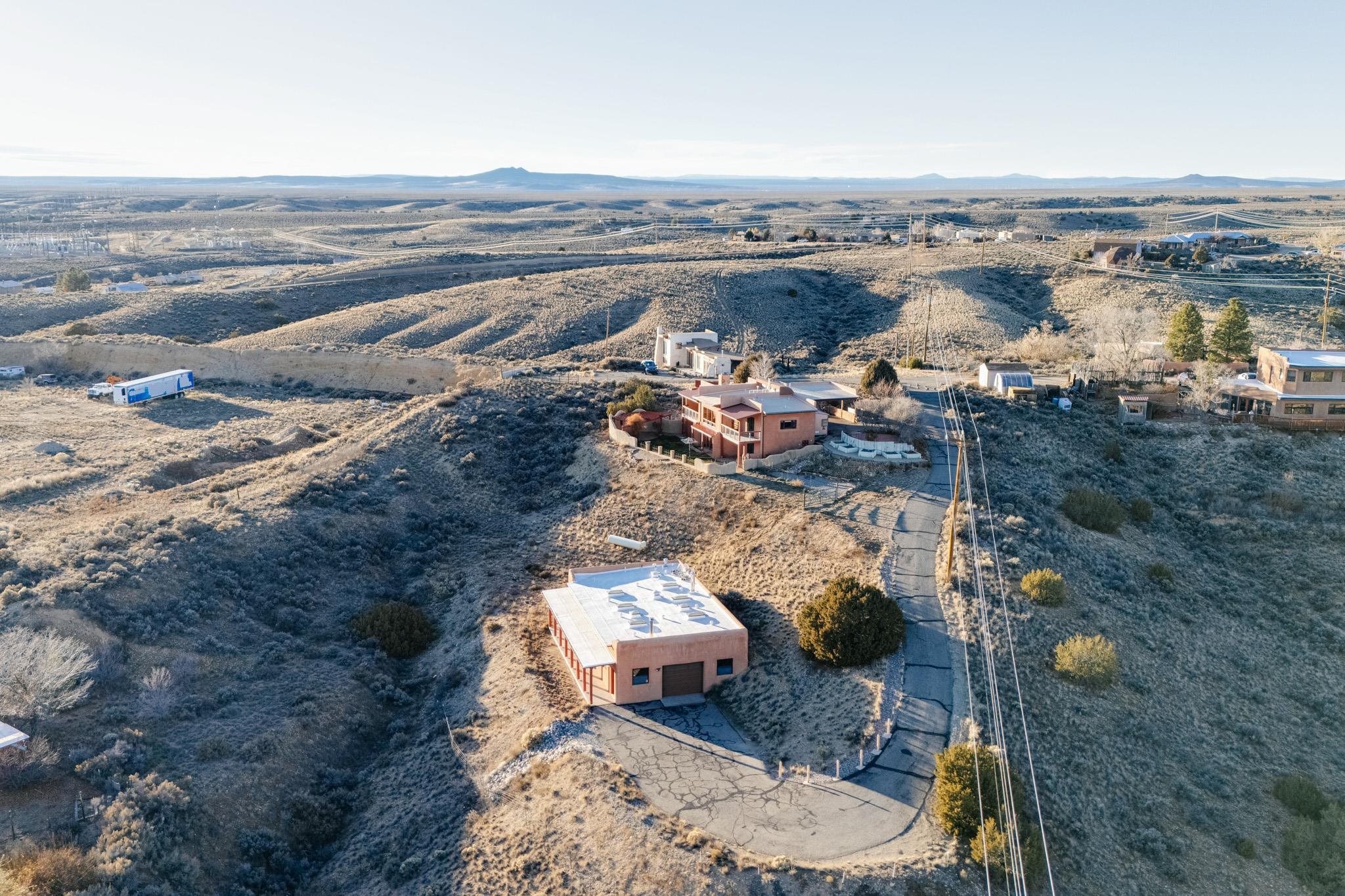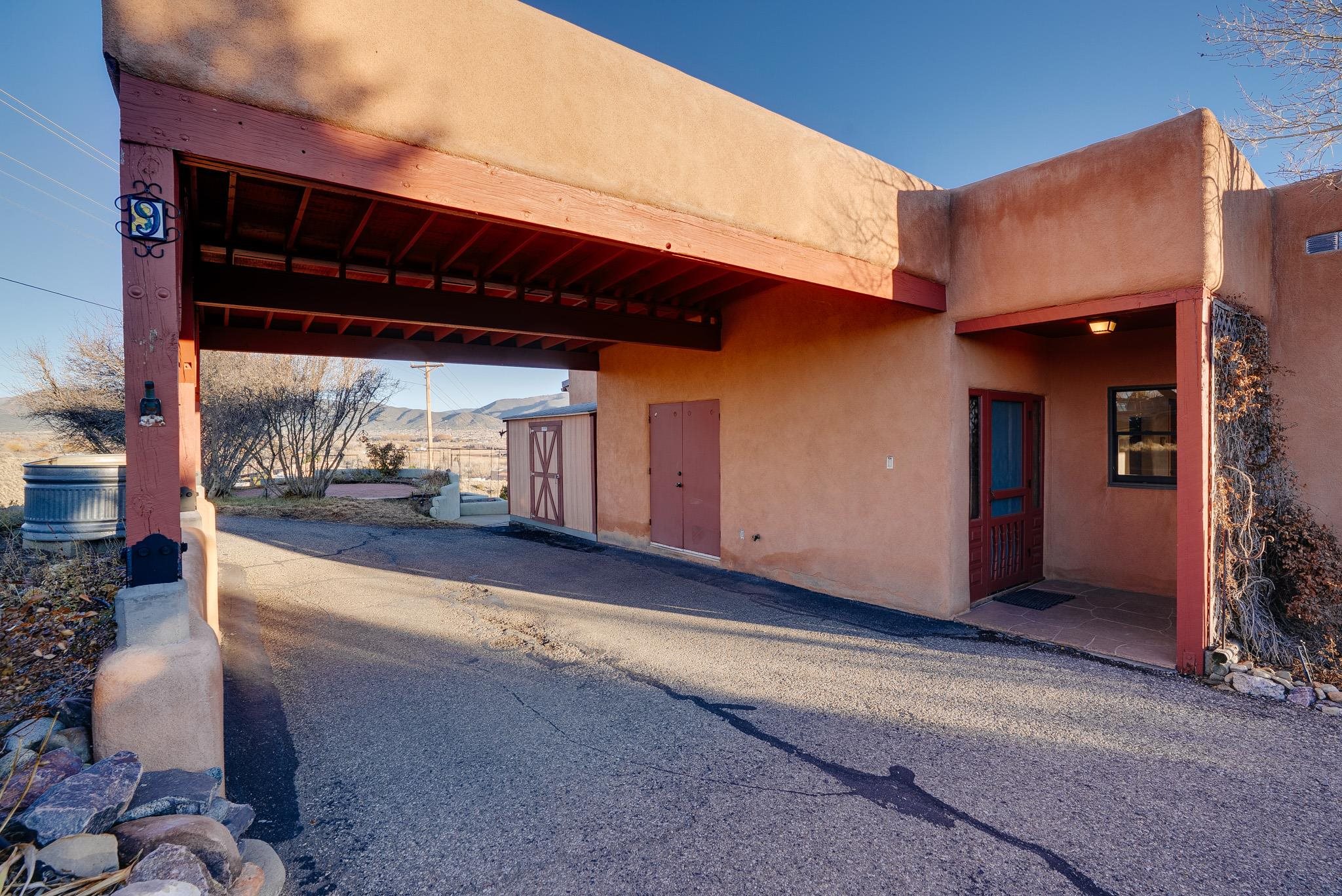 Views, Location, and Space, this property has it all! Perched on 1.67 acres along a ridge top, 9 Cerro Ventoso offers sweeping panoramas of the Taos Valley and the Sangre de Cristo Mountains, along with beautifully maintained living spaces and exceptional versatility. The main home spans two levels with 3 bedrooms, 2 bathrooms, and 2,228 sq ft of heated living space. Large window walls in the dining area frame ever-changing mountain views, creating a stunning backdrop for every meal. The living room features a cozy wood-burning fireplace with a custom heatilator for added warmth and efficiency. Thoughtful craftsmanship is found throughout, including hand-forged iron hardware, gates, and artistic details. Two spacious balconies capture the landscape from above, while the lower level opens directly onto a lush green lawn. A charming pergola provides the perfect space for sunset gatherings, alfresco dining, or peaceful sunrise coffee. A short walk down the paved driveway leads to the workshop and guest apartment. The 819 sq ft workshop is a dream for creatives or hobbyists, equipped with a wood stove, gas heat, two 220 outlets, an industrial exhaust fan, built-in racks, an electric door, and near-soundproof walls. Attached, yet with its own private entrance, is the 849 sq. ft. apartment, offering a full kitchen, bathroom, and two large rooms (each with generous closets). Its industrial aesthetic reflects its origins as part of the workshop, making it an ideal rental, studio, or guest space. Utilities include natural gas to the main home, with propane serving the workshop and apartment. The property is on a shared well with 10 Cerro Ventoso and features two 2,500-gallon cisterns for water catchment, used to irrigate the lawn, plants, and landscaping. Priced well below a recent appraisal, this property is an exceptional value. Schedule a showing to experience the views and versatility of 9 Cerro Ventoso in person.