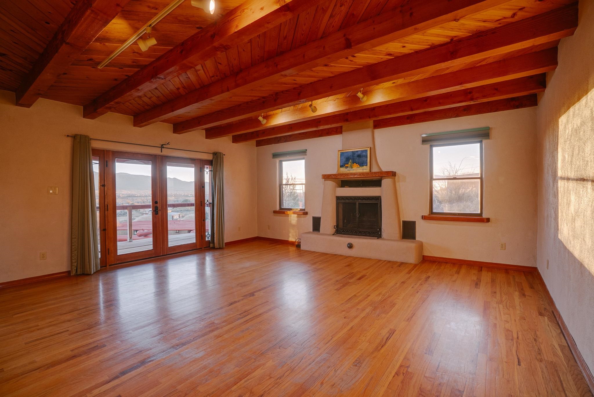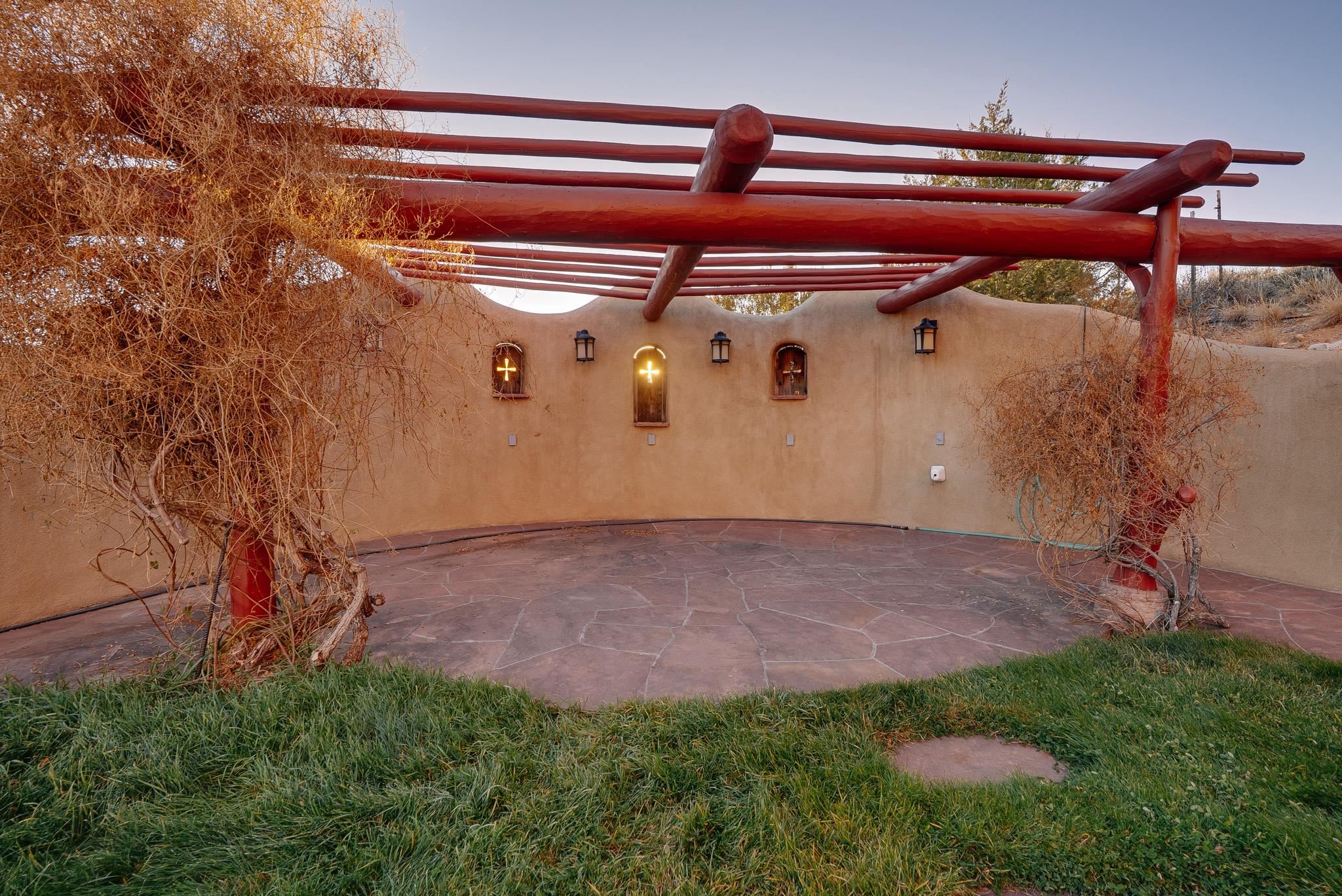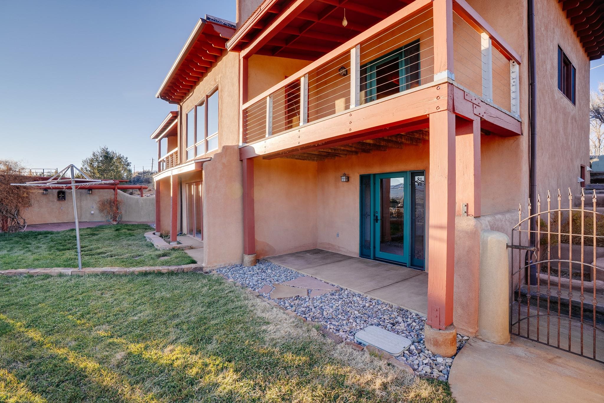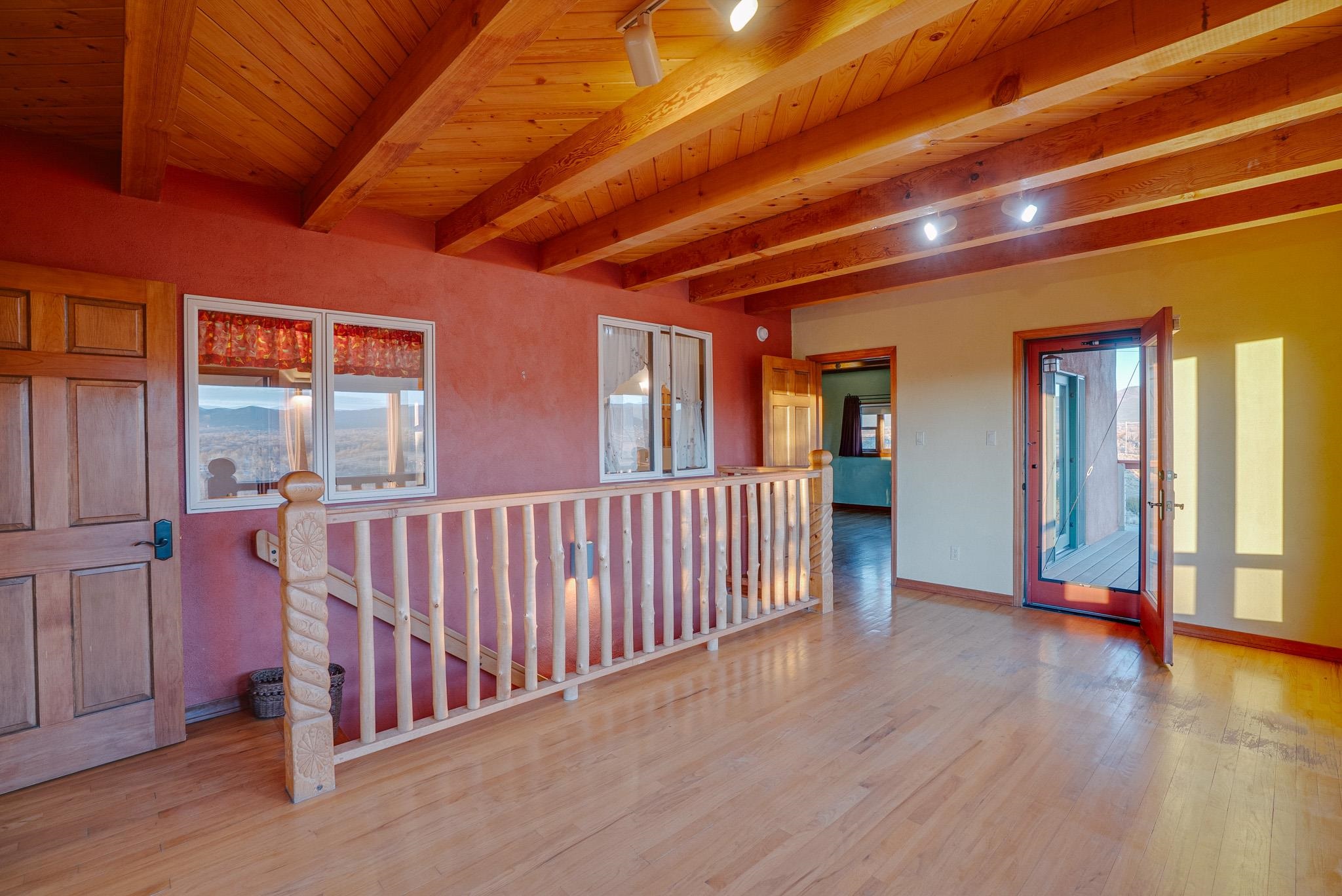 Views, Location, and Space, this property has it all! Perched on 1.67 acres along a ridge top, 9 Cerro Ventoso offers sweeping panoramas of the Taos Valley and the Sangre de Cristo Mountains, along with beautifully maintained living spaces and exceptional versatility. The main home spans two levels with 3 bedrooms, 2 bathrooms, and 2,228 sq ft of heated living space. Large window walls in the dining area frame ever-changing mountain views, creating a stunning backdrop for every meal. The living room features a cozy wood-burning fireplace with a custom heatilator for added warmth and efficiency. Thoughtful craftsmanship is found throughout, including hand-forged iron hardware, gates, and artistic details. Two spacious balconies capture the landscape from above, while the lower level opens directly onto a lush green lawn. A charming pergola provides the perfect space for sunset gatherings, alfresco dining, or peaceful sunrise coffee. A short walk down the paved driveway leads to the workshop and guest apartment. The 819 sq ft workshop is a dream for creatives or hobbyists, equipped with a wood stove, gas heat, two 220 outlets, an industrial exhaust fan, built-in racks, an electric door, and near-soundproof walls. Attached, yet with its own private entrance, is the 849 sq. ft. apartment, offering a full kitchen, bathroom, and two large rooms (each with generous closets). Its industrial aesthetic reflects its origins as part of the workshop, making it an ideal rental, studio, or guest space. Utilities include natural gas to the main home, with propane serving the workshop and apartment. The property is on a shared well with 10 Cerro Ventoso and features two 2,500-gallon cisterns for water catchment, used to irrigate the lawn, plants, and landscaping. Priced well below a recent appraisal, this property is an exceptional value. Schedule a showing to experience the views and versatility of 9 Cerro Ventoso in person.