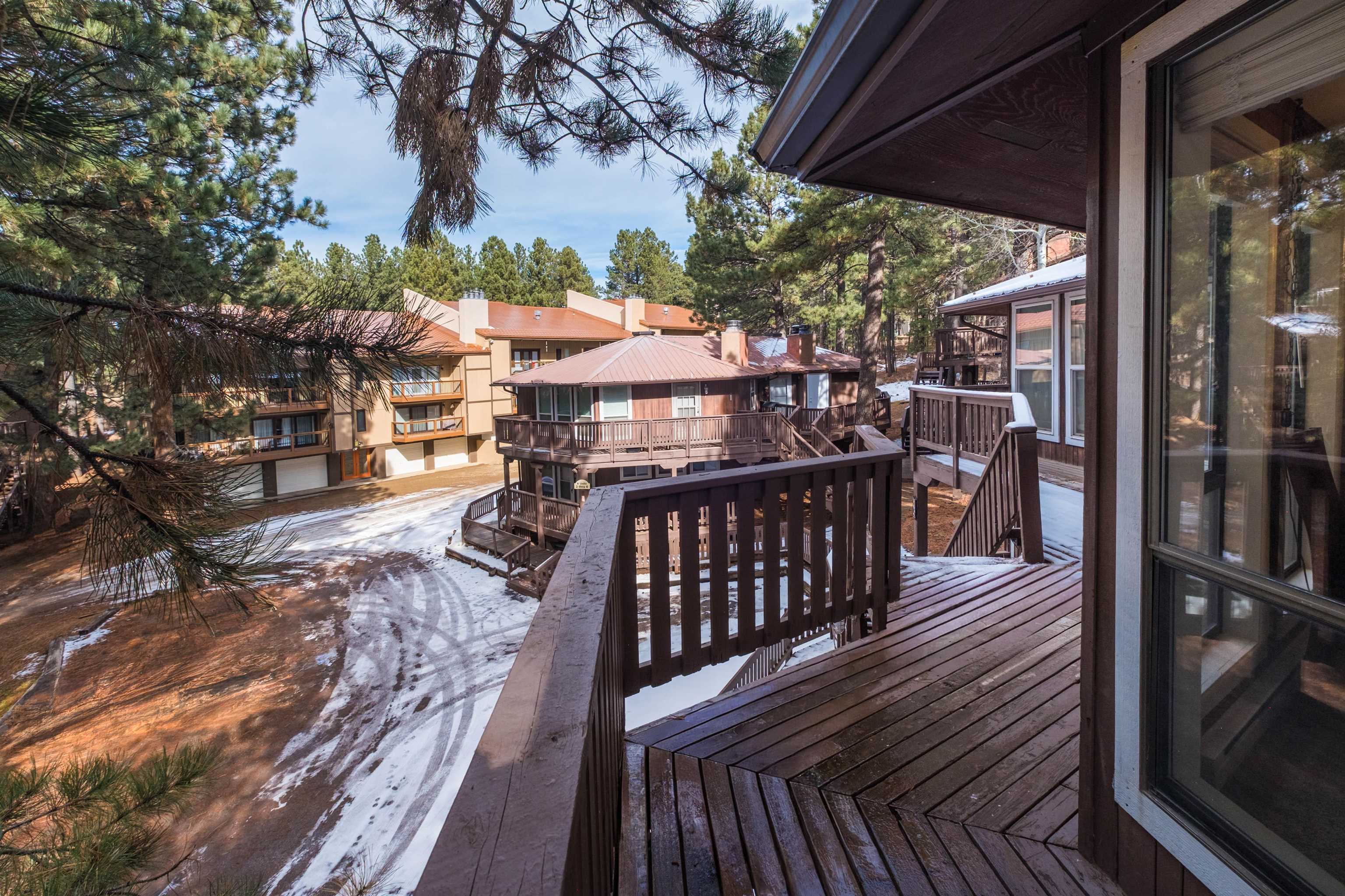 This warm and welcoming 2-bedroom, 1-bath condo at 20 Jackson Hole Rd offers a true mountain escape from its upper-level perch, surrounded by tall pines. The setting feels like a private treehouse. A generous deck opens to sunset views and crystal-clear night skies. Inside, the condo comes fully furnished and well-appointed, anchored by a beautiful stone fireplace that creates a cozy gathering space. Recent improvements include new windows in the primary bedroom, a new water heater, a vented gas heater, and a Bosch dishwasher. A convenient ski locker provides easy storage for all your gear. Getting to the slopes is simple--take the shuttle to the lift or enjoy a short five-minute walk in your boots. This unit blends comfort, smart upgrades, and the quiet charm of Angel Fire. It's ideal as a personal retreat or a rental-ready investment in a highly desirable location!