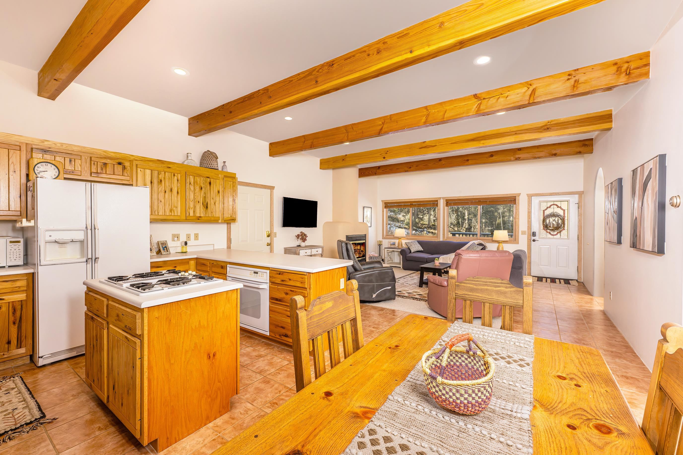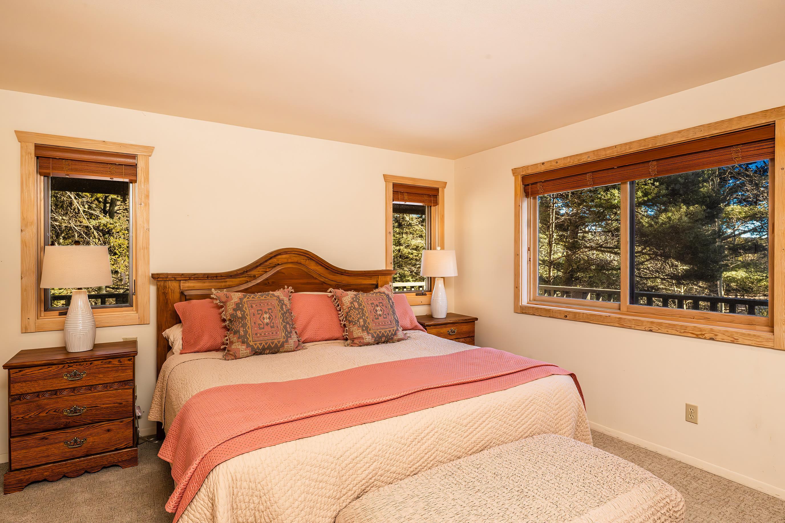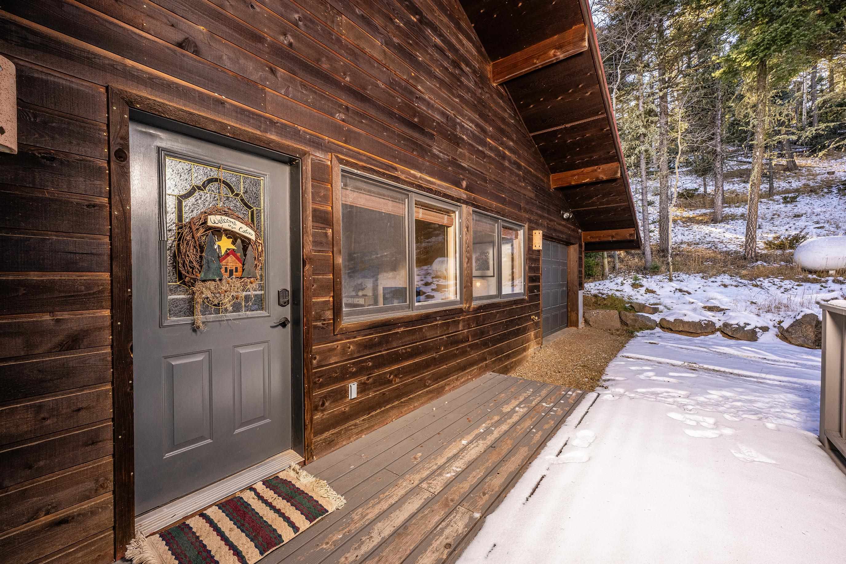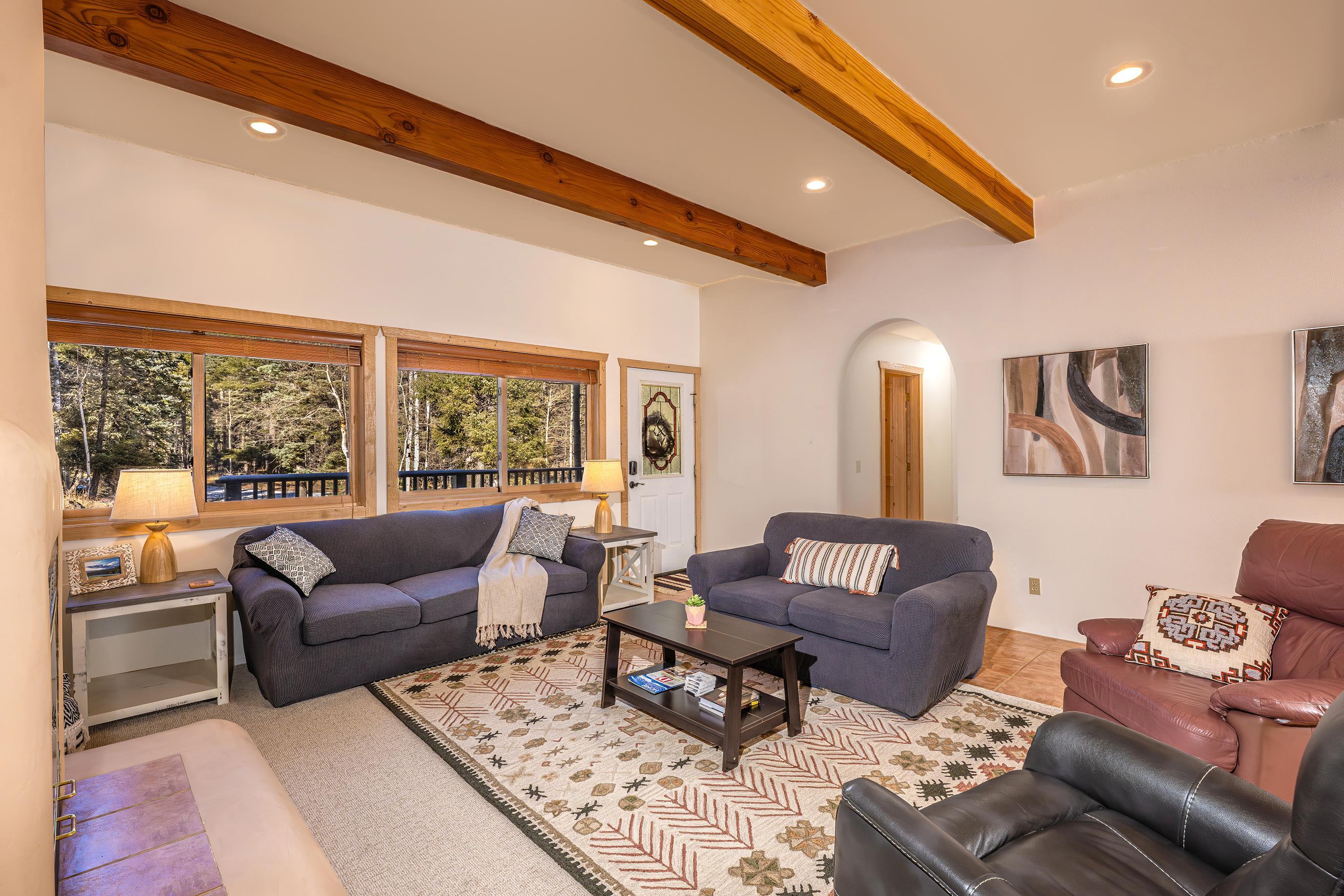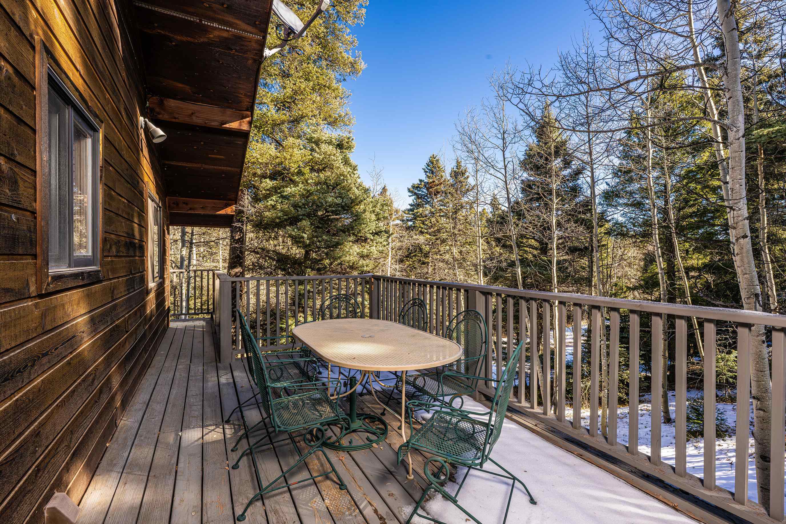 Charming 3-bedroom, 3-bathroom cabin located just minutes from the Angel Fire Resort ski area, mountain bike park, and Country Club. Enjoy easy access to tennis, pickleball, and trout fishing--all within a 5-minute drive. The main level features an inviting open-concept kitchen, dining, and living area perfect for gathering with family and friends. You'll also find the primary suite, a guest bedroom, and a full bath on this level, along with a cozy fireplace in the upper living area. Downstairs offers a second spacious living area complete with a wet bar, plus an additional bedroom and bathroom--an ideal setup for guests or multi-generational living. You'll enjoy outdoor gatherings from any of the 3 decks! A wonderful mountain retreat or short-term rental opportunity in the heart of Angel Fire!
