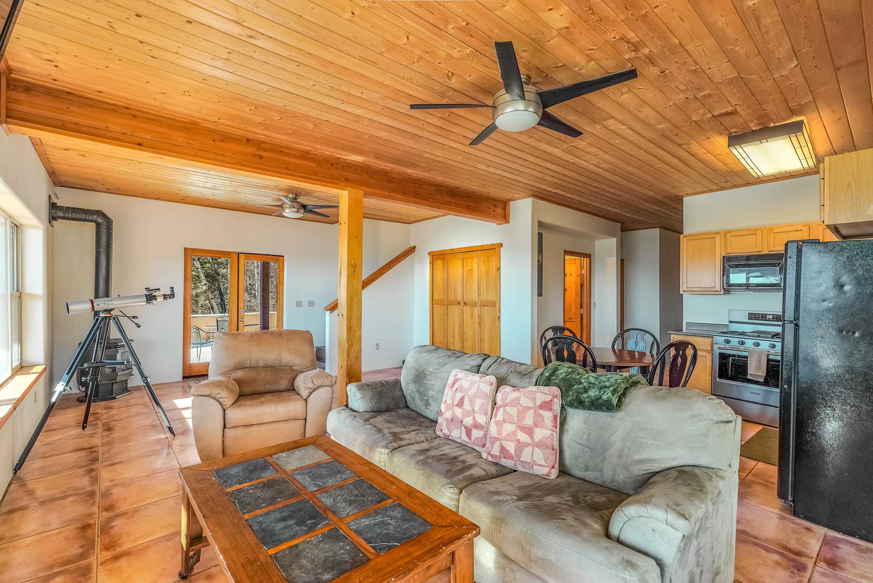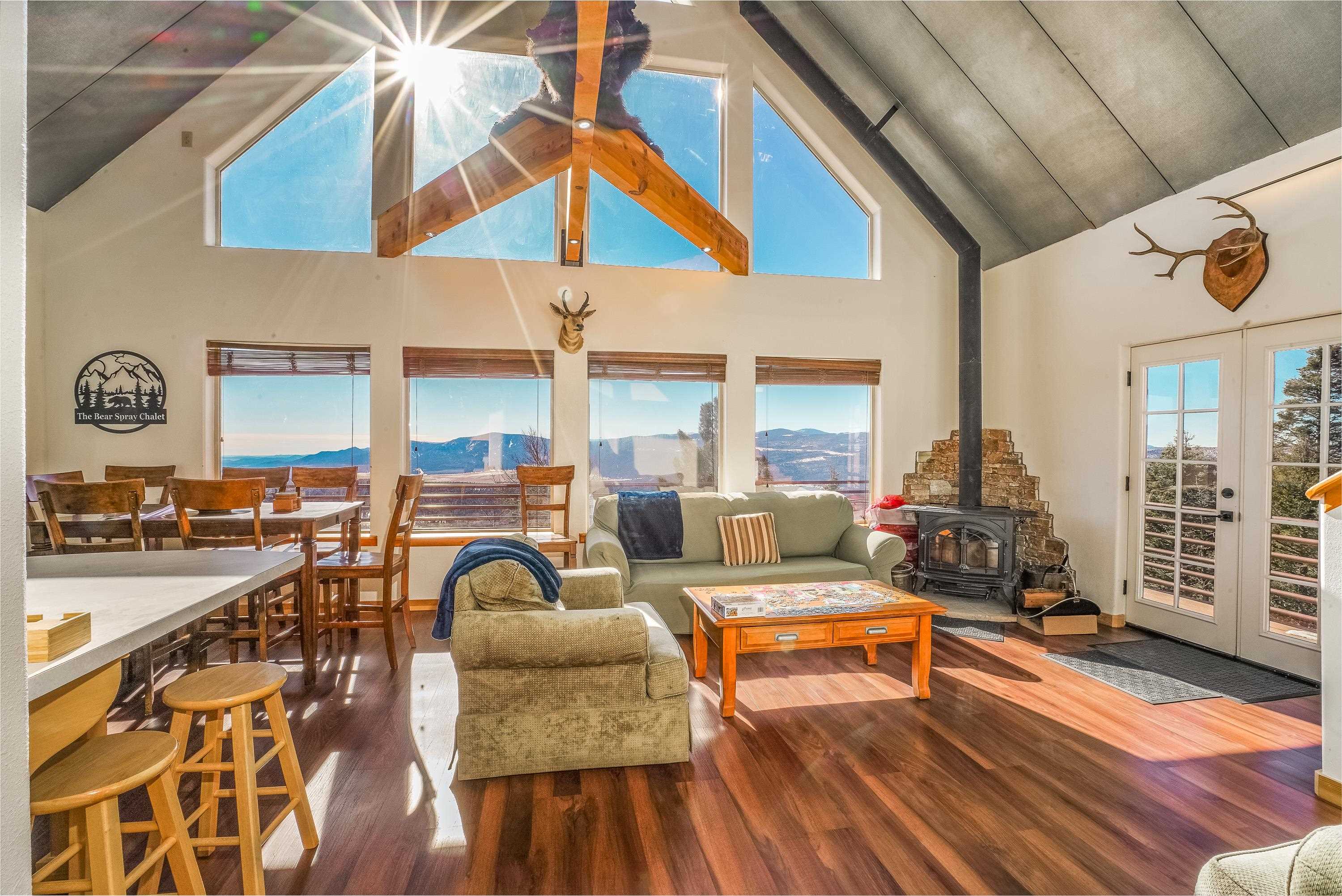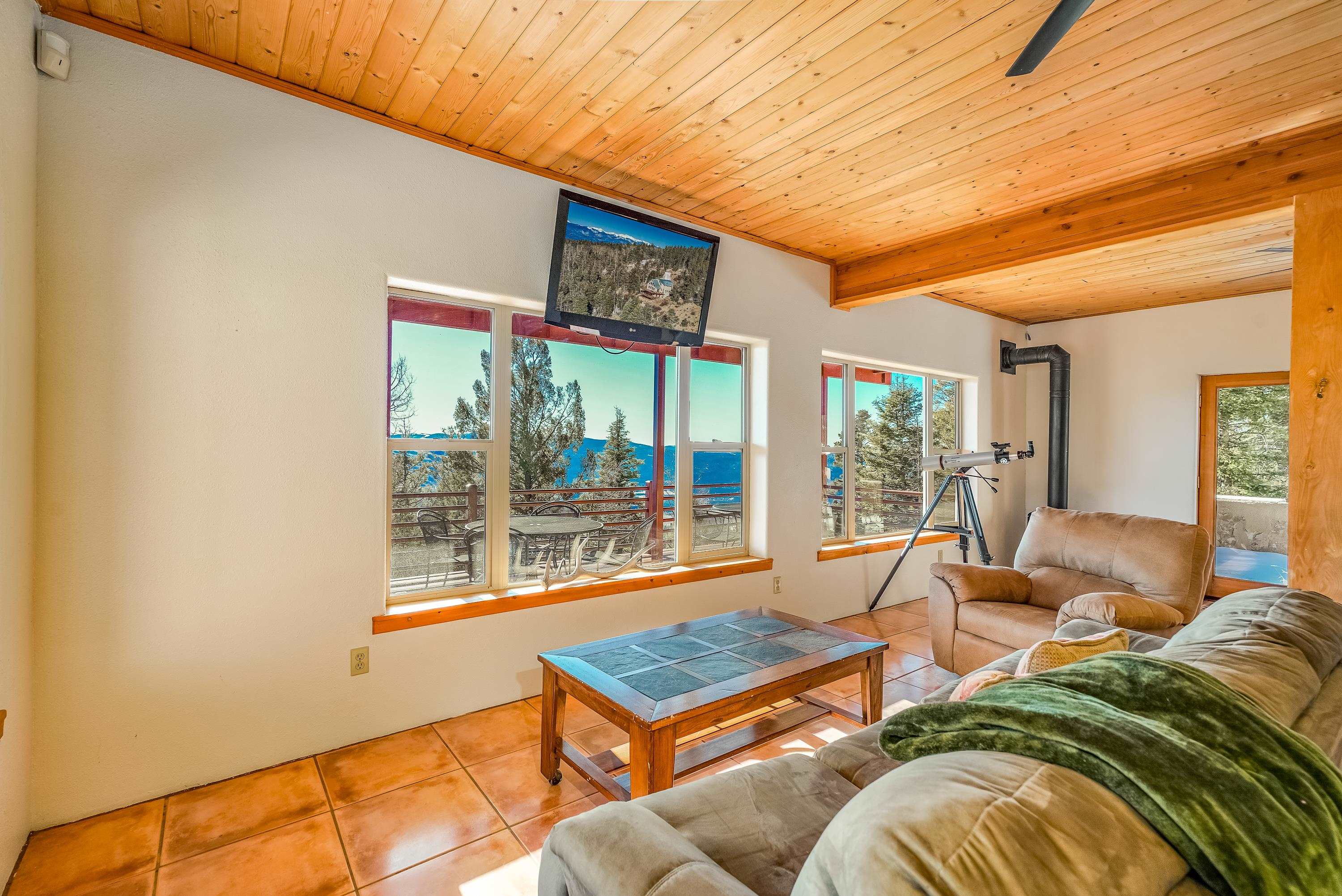 There's living in the mountains... and then there's living above them. That's what 598 El Camino Real feels like, a ridge-top perch where the world opens up in every direction. The first thing you notice are the views. They're not "pretty" views... they're the kind that stop you mid-sentence because your brain needs a second to catch up. Eagles glide past the deck like they own the place, and sunsets spill across the peaks in colors that never look the same twice. The home itself has this easy, comfortable mountain energy, nothing fussy, nothing trying too hard. Just light, space, warmth, and that feeling of, yeah... I could stay here awhile. With three levels, vaulted ceilings, and windows that frame the landscape like giant art pieces, it's built for people who want room to gather but also room to wander off and breathe. One of the best parts? Two separate living areas, each with its own kitchen. It's perfect for extended family, guests who love to linger, or days when everyone needs their own rhythm. There's even a loft with a half bath that feels like the perfect retreat for reading, working, or hiding with a blanket when the weather turns dramatic. Outside, the wooded lot gives you that classic Angel Fire feeling, tucked into the trees, surrounded by quiet, yet close enough to town to keep life easy. It's the kind of property where morning coffee happens on the deck because the clouds literally drift below you. And evenings? They're for slowing down, watching the sky catch fire, and reminding yourself that yes... you really do live here now. Life on this mountain top moves at a different pace. A better one. There's space to breathe, space to reset, space to remember what matters. Whether you're hosting a crowd for ski weekends or sneaking away for peaceful summers, this home stretches to fit whatever season of life you're in. If you've been craving a mountain escape that feels both elevated and deeply grounding, a place with perspective, privacy, and that "wow" moment every time you step outside, this chalet on El Camino Real is ready to welcome you in. Come stand on that deck. The mountain will do the rest.
