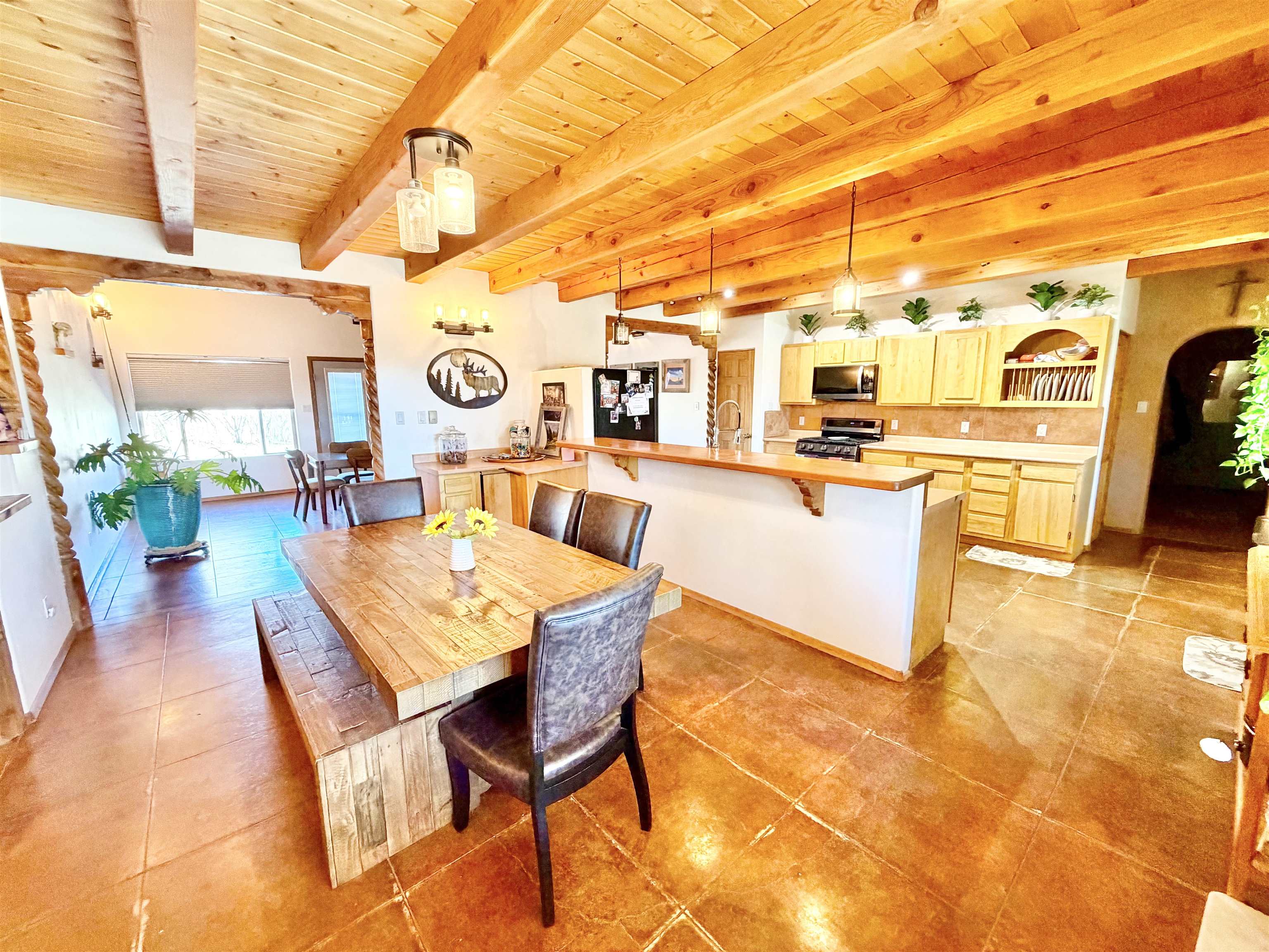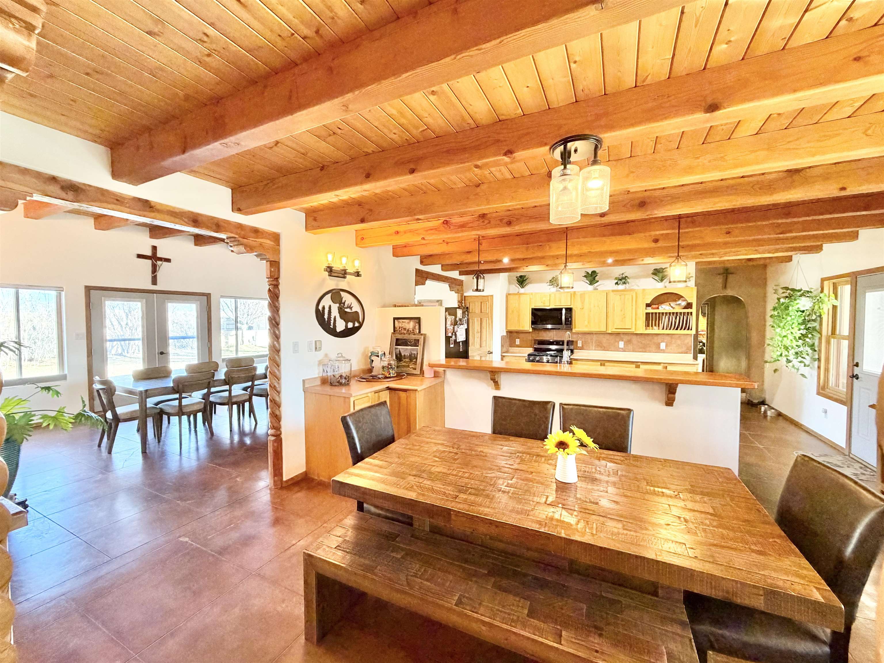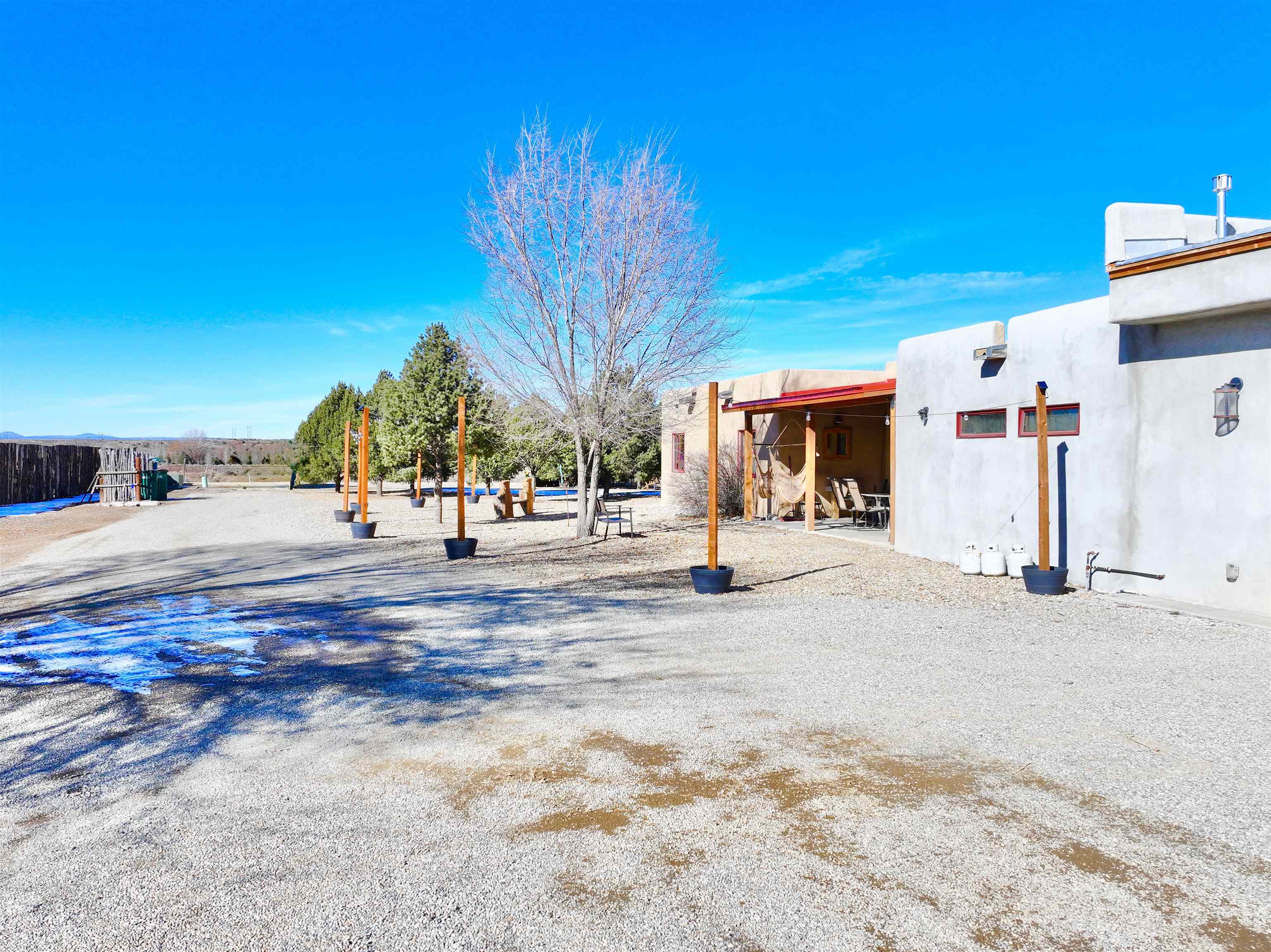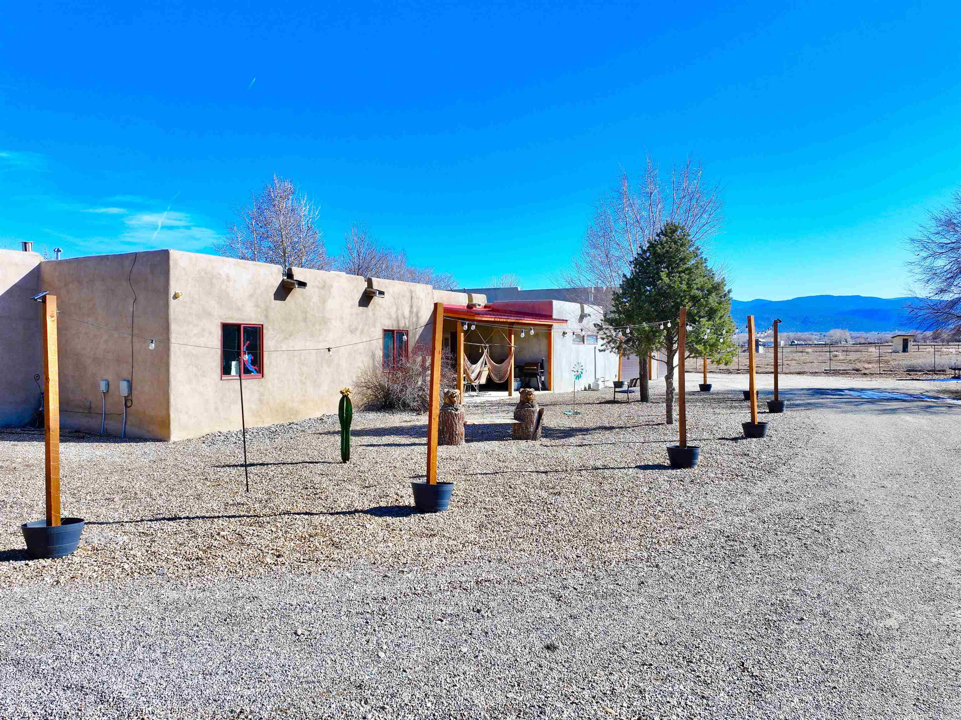 Discover Your Dream Home in the Los Cordovas Valley. Immerse yourself in the epitome of luxury at this exquisite residence nestled in the heart of the Los Cordovas Valley. With an expansive footprint of approximately 2,908 square feet, this four-bedroom, two-bathroom home boasts ample space to accommodate your cherished lifestyle. Encompassing an expansive 1.75 acres of land, the property features an attached three-car garage and a detached two-car garage, providing ample parking for your vehicles. The surrounding landscape is a harmonious blend of beautiful landscaping, enclosed by fencing and stucco walls, creating an unobstructed vista of Taos Mountain and Pueblo Peak. Indulge in moments of tranquility under the covered porches adorning the North, South, and West sides of the home. The property's entertainment areas are meticulously designed to cater to your discerning tastes, featuring mature trees, lush greenery, a fire pit, and an array of additional amenities. Upon entering the home, you will be enveloped in a luxurious ambiance. Heated radiant cement slab floors, tongue-and-groove wood ceilings, decorated with vigas, plaster walls, and updated appliances contribute to the refined atmosphere. The spacious and well-appointed rooms exude a cozy and inviting atmosphere, perfect for a wide-open yet intimate living experience. Schedule an appointment with us today to experience this magnificent home firsthand, whether through an in-person visit or a virtual tour.