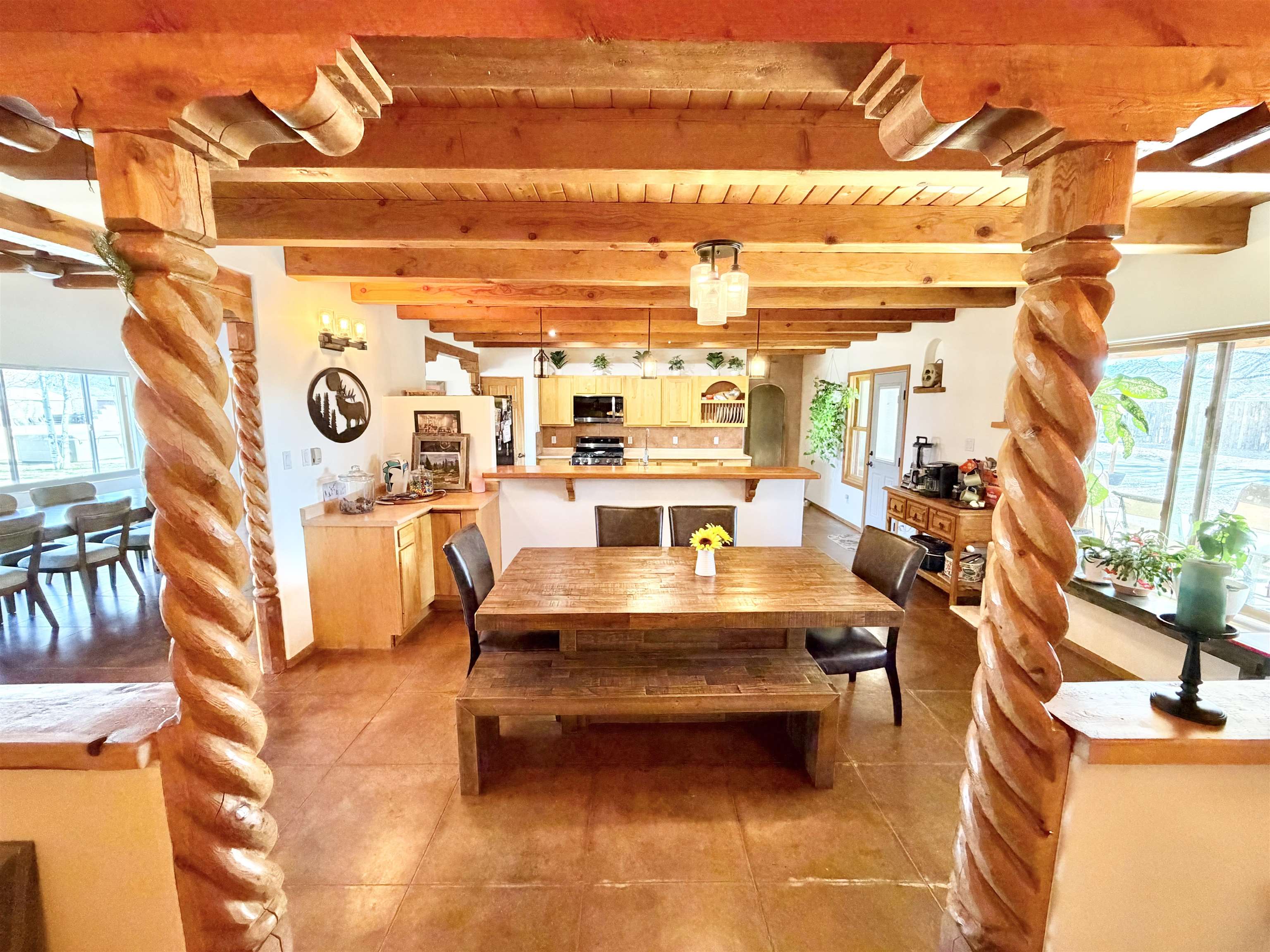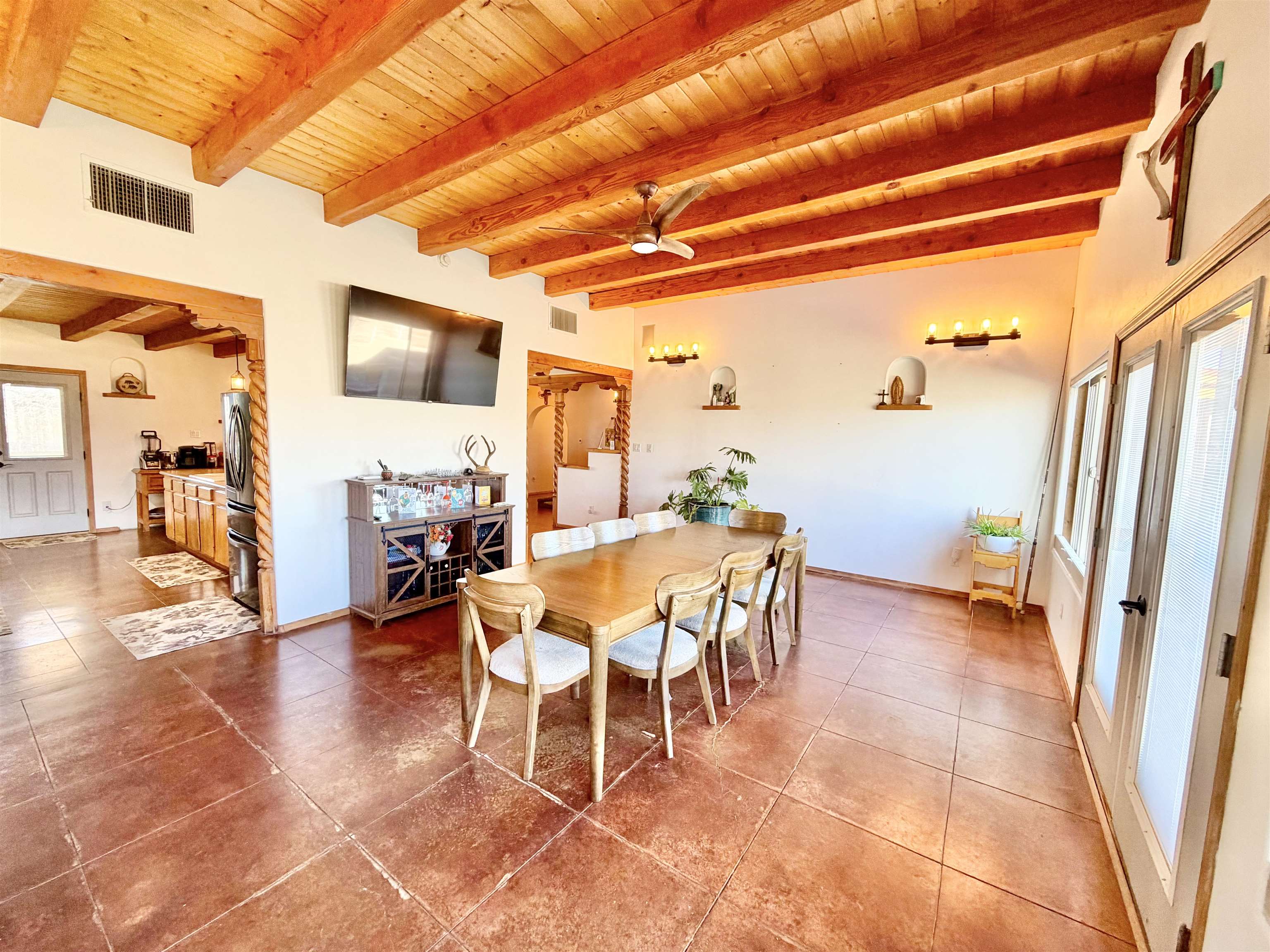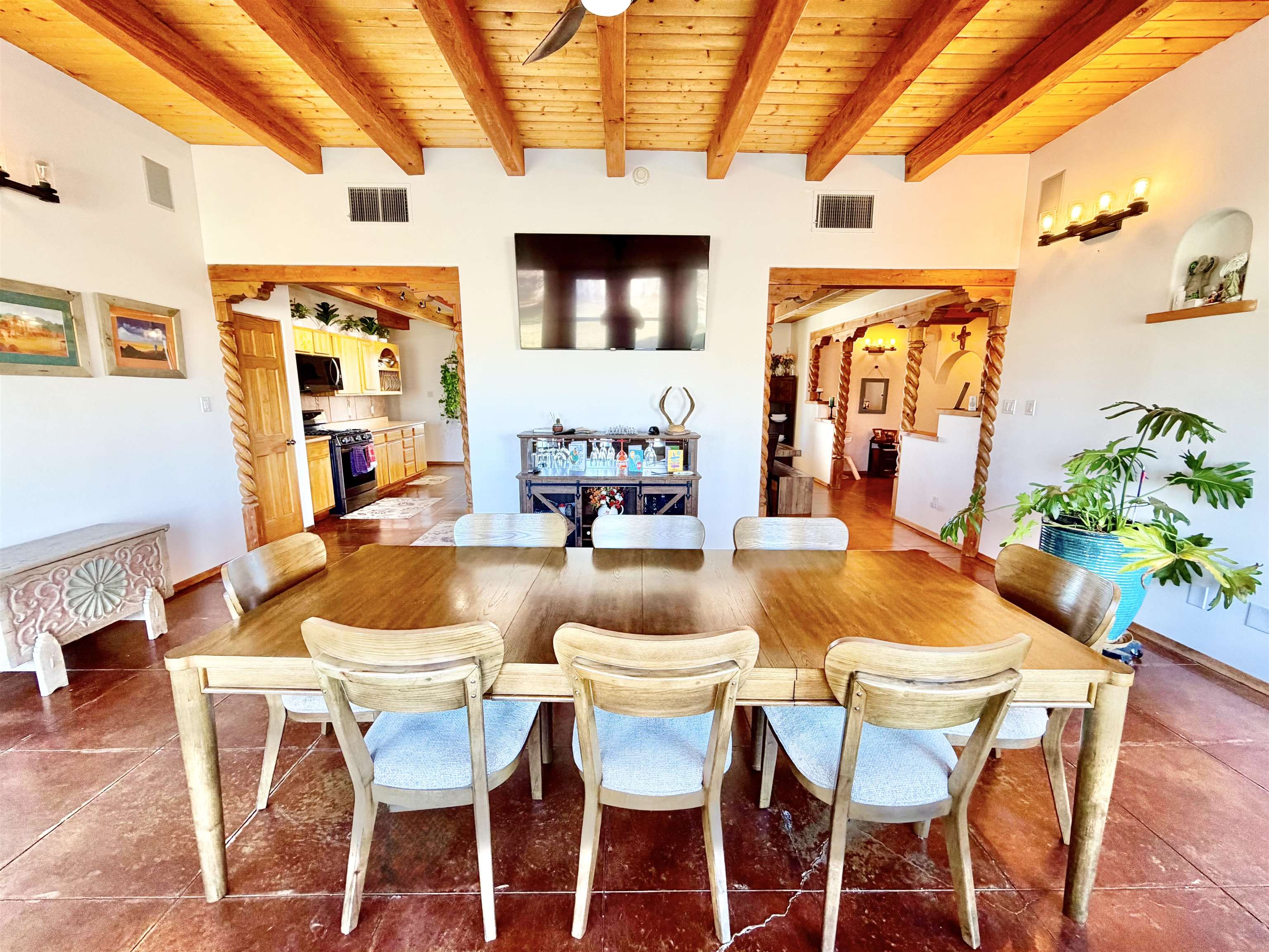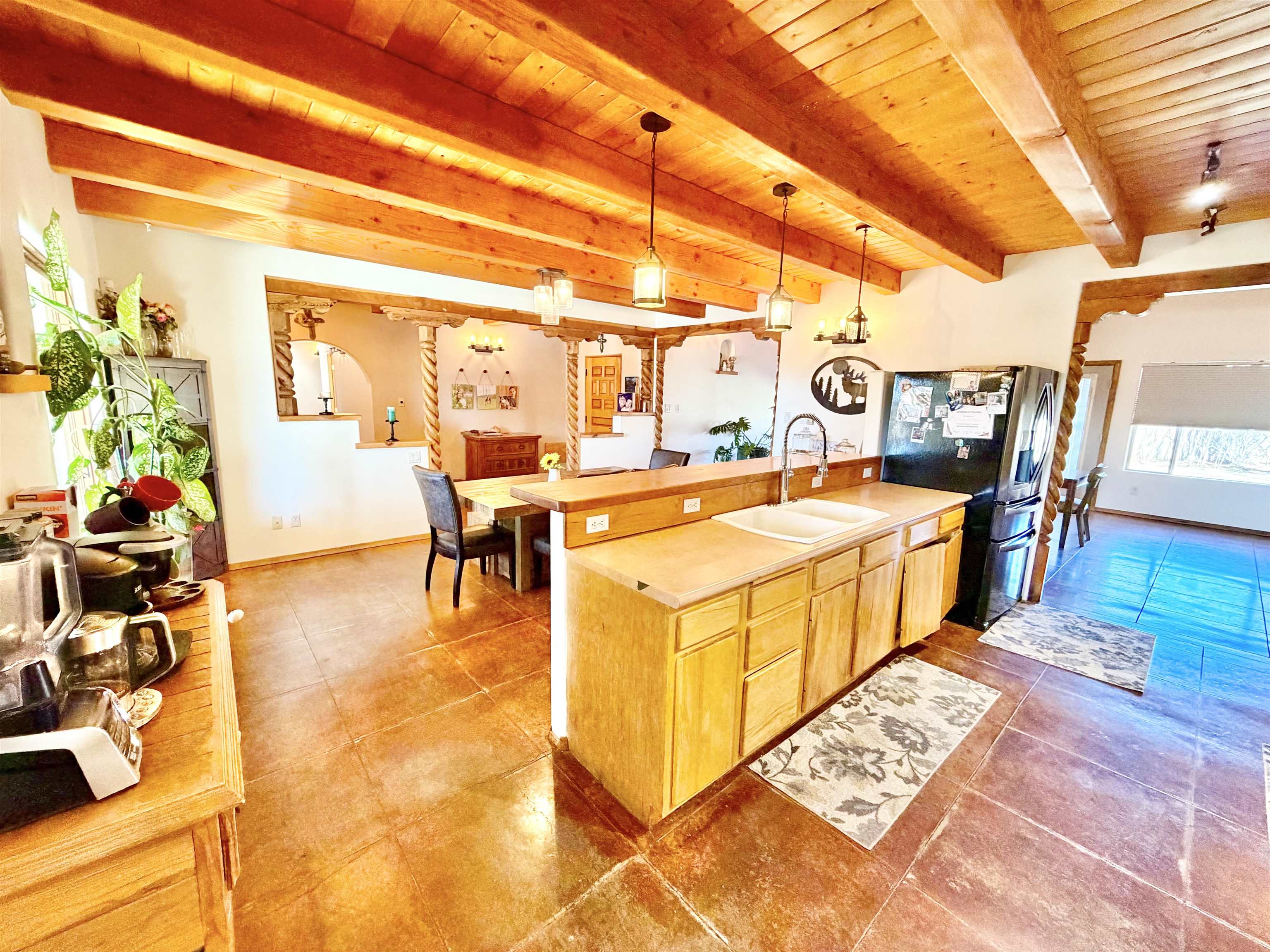 Discover Your Dream Home in the Los Cordovas Valley. Immerse yourself in the epitome of luxury at this exquisite residence nestled in the heart of the Los Cordovas Valley. With an expansive footprint of approximately 2,908 square feet, this four-bedroom, two-bathroom home boasts ample space to accommodate your cherished lifestyle. Encompassing an expansive 1.75 acres of land, the property features an attached three-car garage and a detached two-car garage, providing ample parking for your vehicles. The surrounding landscape is a harmonious blend of beautiful landscaping, enclosed by fencing and stucco walls, creating an unobstructed vista of Taos Mountain and Pueblo Peak. Indulge in moments of tranquility under the covered porches adorning the North, South, and West sides of the home. The property's entertainment areas are meticulously designed to cater to your discerning tastes, featuring mature trees, lush greenery, a fire pit, and an array of additional amenities. Upon entering the home, you will be enveloped in a luxurious ambiance. Heated radiant cement slab floors, tongue-and-groove wood ceilings, decorated with vigas, plaster walls, and updated appliances contribute to the refined atmosphere. The spacious and well-appointed rooms exude a cozy and inviting atmosphere, perfect for a wide-open yet intimate living experience. Schedule an appointment with us today to experience this magnificent home firsthand, whether through an in-person visit or a virtual tour.