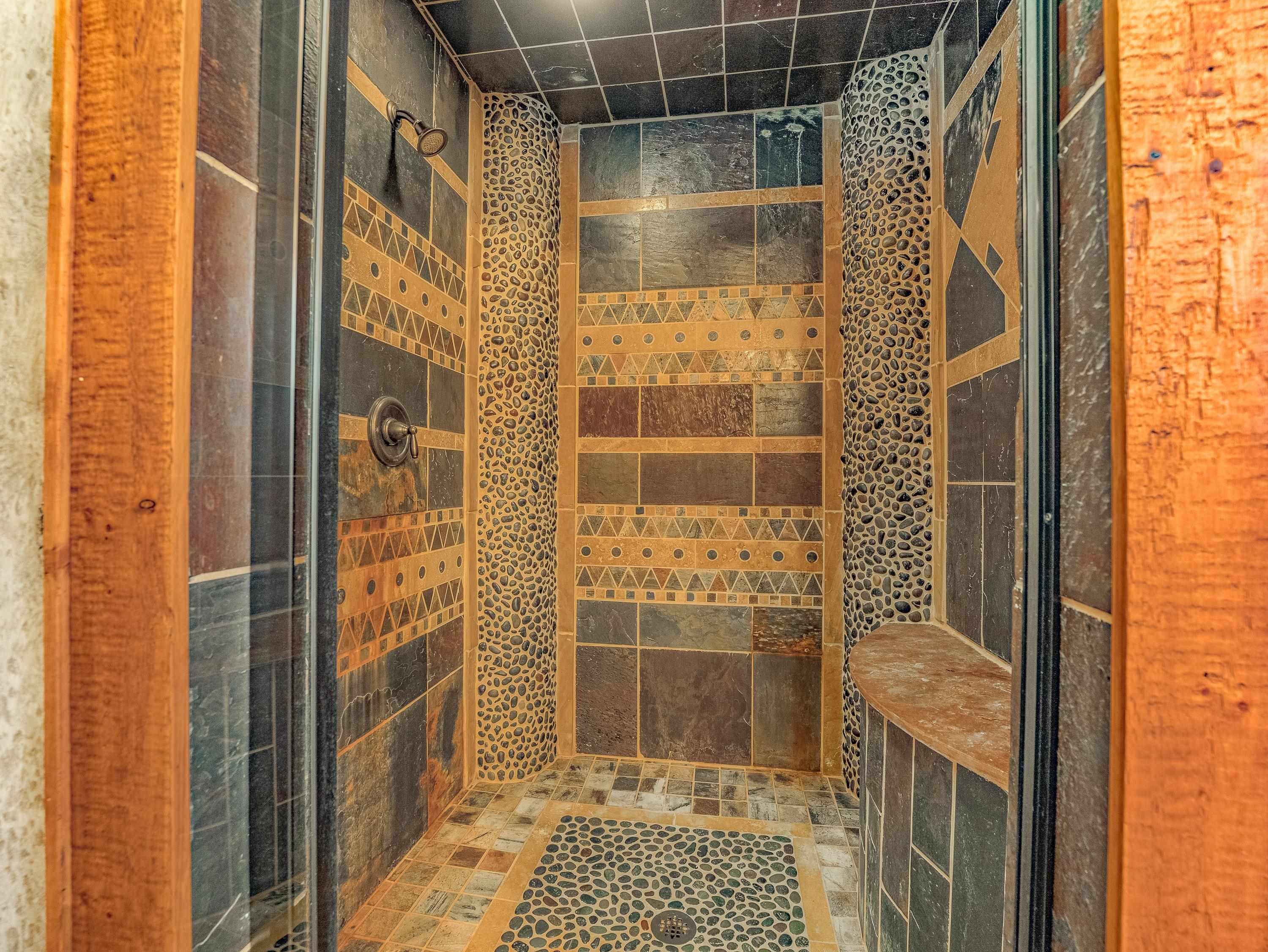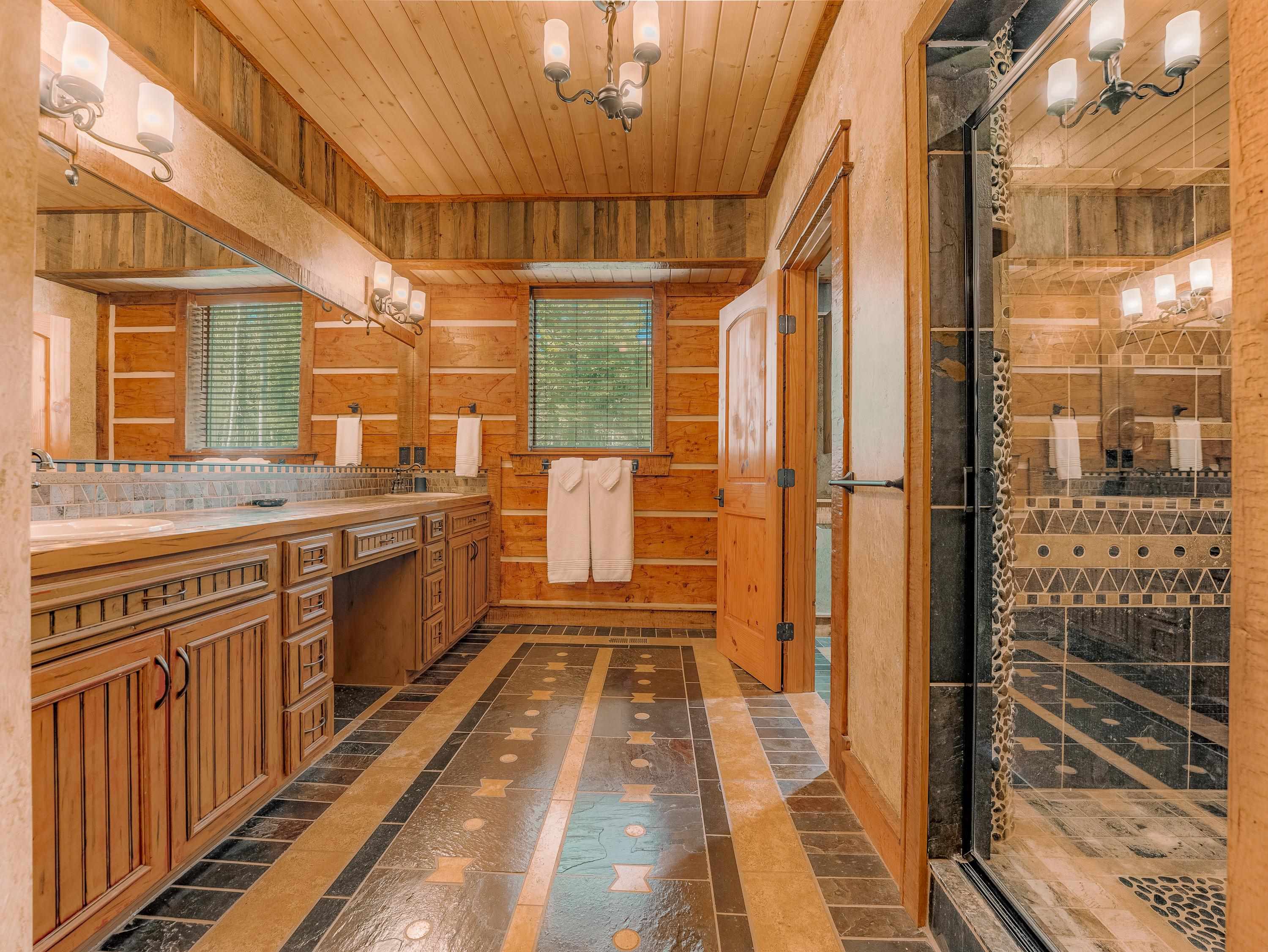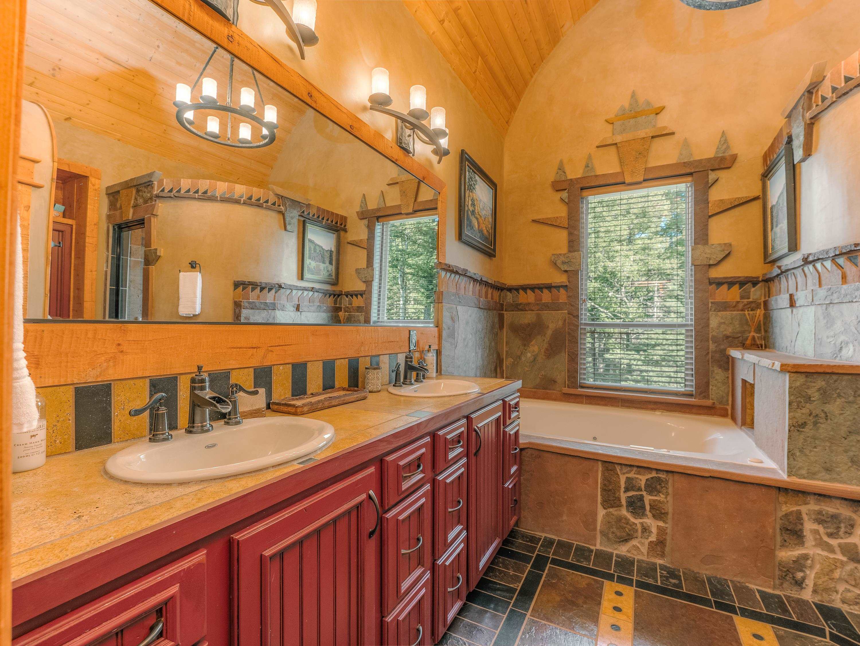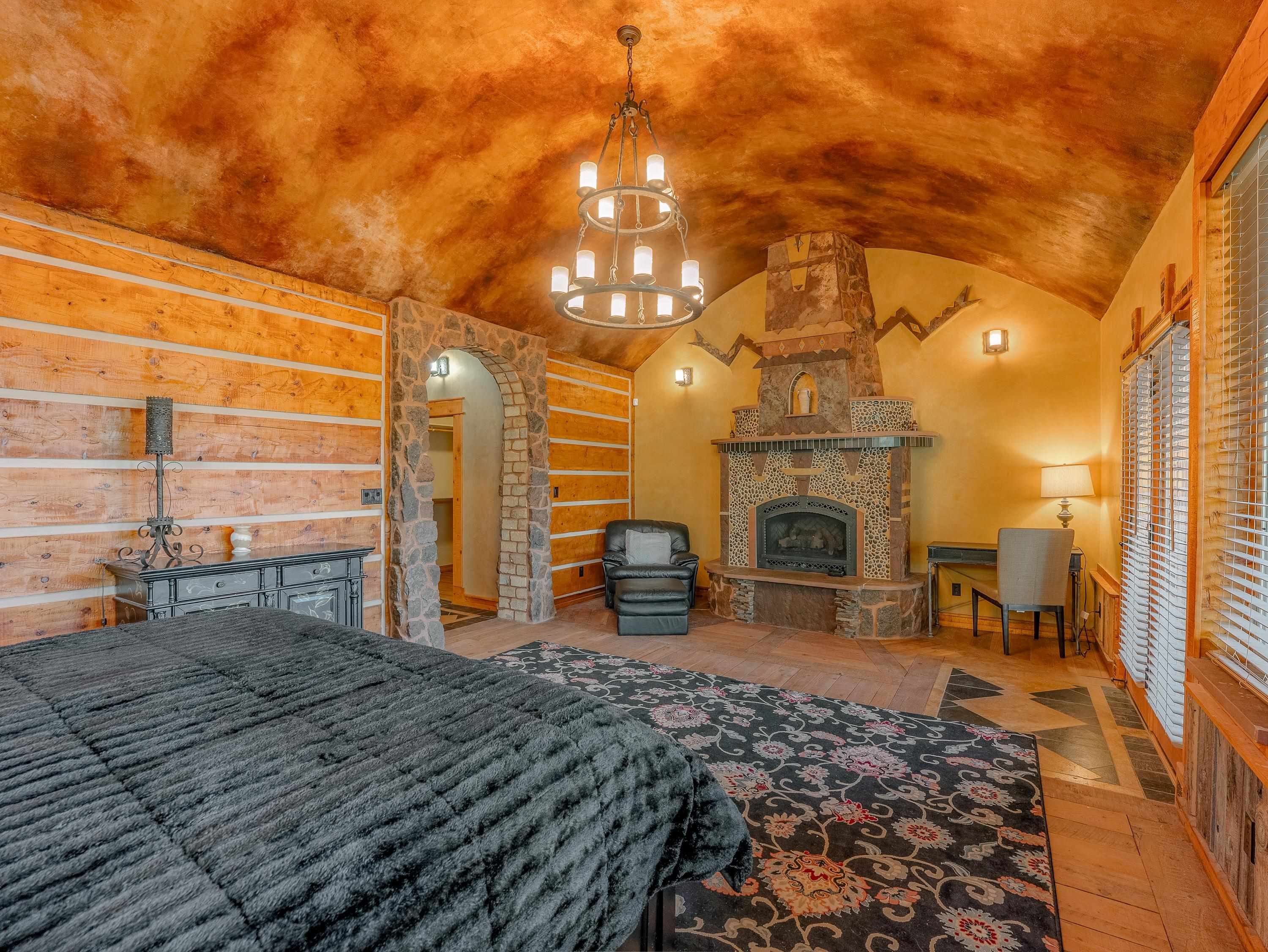 Known as Woodland Castle, this one-of-a-kind architectural masterpiece was designed and built by renowned artist Ray Renfro. Featuring over 7,000 sq. ft. of intricate artistry with a style all its own, the unbelievable level of custom detail defies description and must be seen to be truly appreciated. The home sits on over 2.5 acres of beautiful woodland and backs up to greenbelt space. The tallest peaks in New Mexico are framed like a picture from the back deck. The property is in a perfect location with the privacy and feel you're looking for in a mountain home but also just across the street from Monte Verde Lake, three minutes from the golf course, five minutes from the grocery store, and seven minutes from the ski lifts. There are four separate living areas; the main floor living room, a walkout living room downstairs, a spacious loft, and 'the pub.' The main floor living room features majestic vaulted ceilings, a towering fireplace, and a fantastic view of the mountains through the floor-to-ceiling window wall. The pub has a wet bar, an ice-maker, fireplace, and is set up for parlor games, arcade games, card games, or just catching the game on T.V. The kitchen has a standard oven and a steam oven, plenty of countertop space, tons of cabinets, and a large walk-in pantry. A highlight of the home is the four primary suites, three of which offer direct access to the decks. There is also a large bedroom/bunkroom downstairs, and an office that can be utilized as a bedroom, fitness room, crafting room... you name it! The fully furnished decks include two propane fire pit tables. There are plentiful covered areas and ample space to get some sun. The upper deck has a direct line-of-sight view of Wheeler Peak; the lower deck features an extra large hot tub. There are a lot of incredible homes but there is only one Woodland Castle, truly a marvel of creative architecture.
