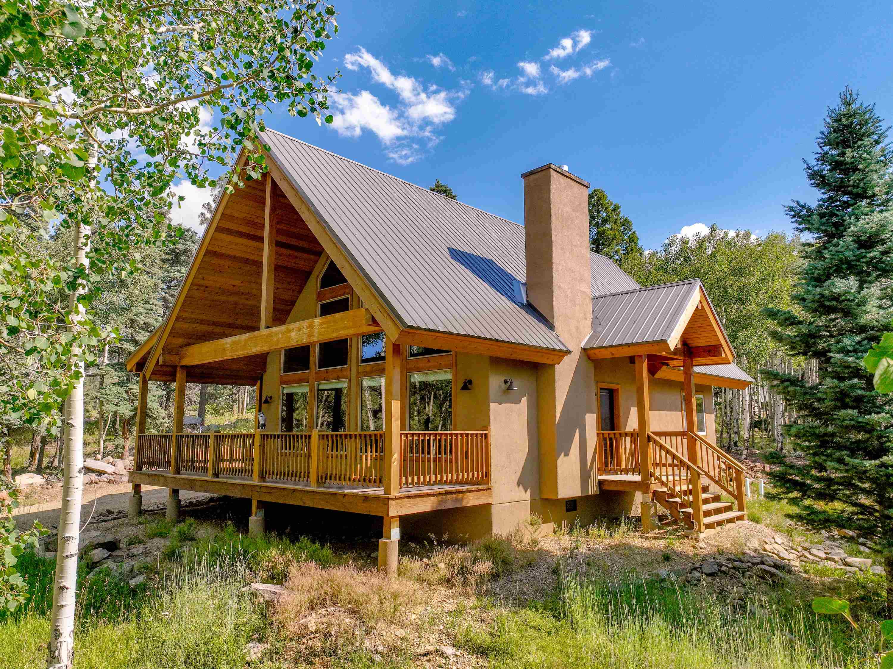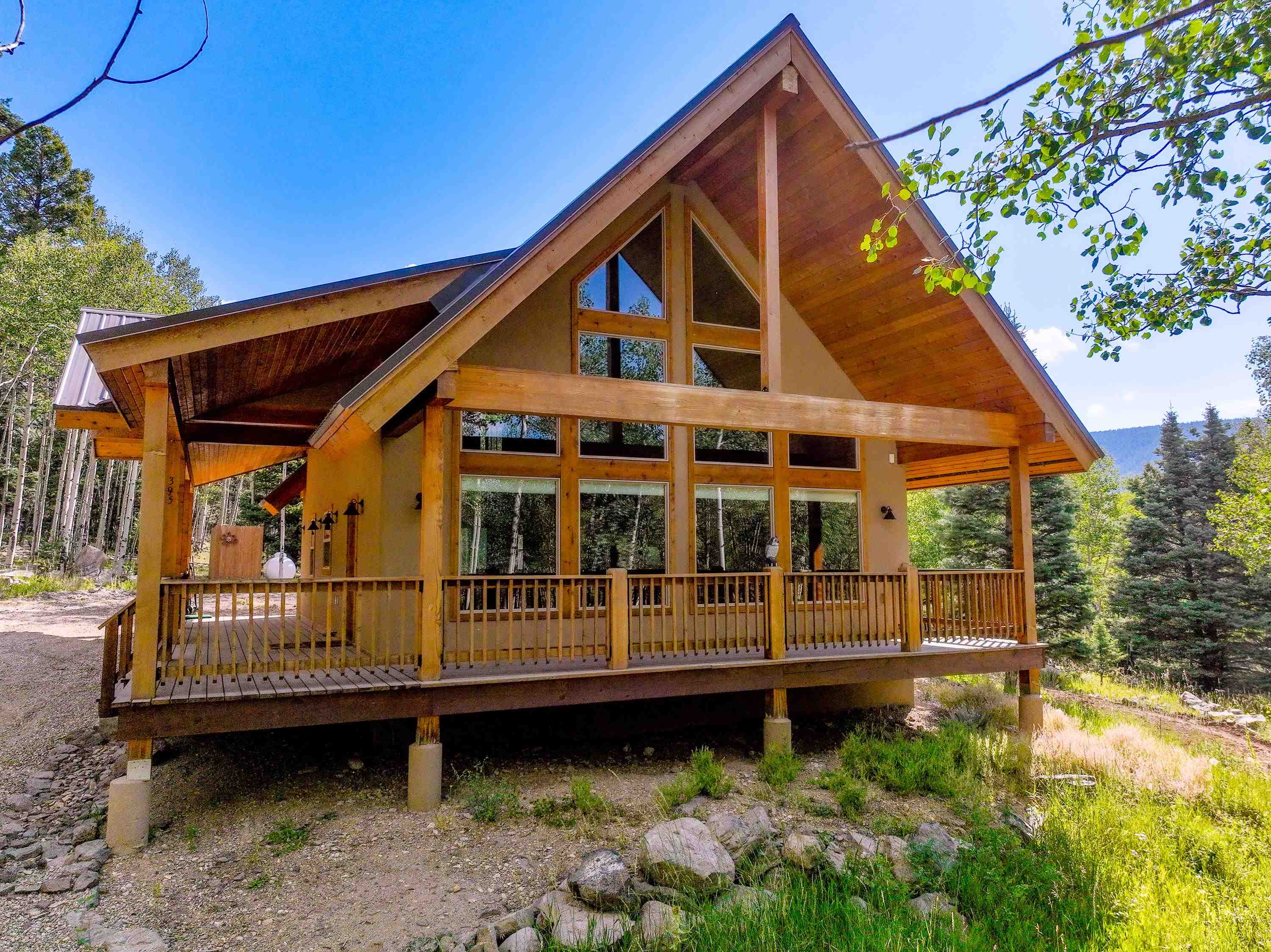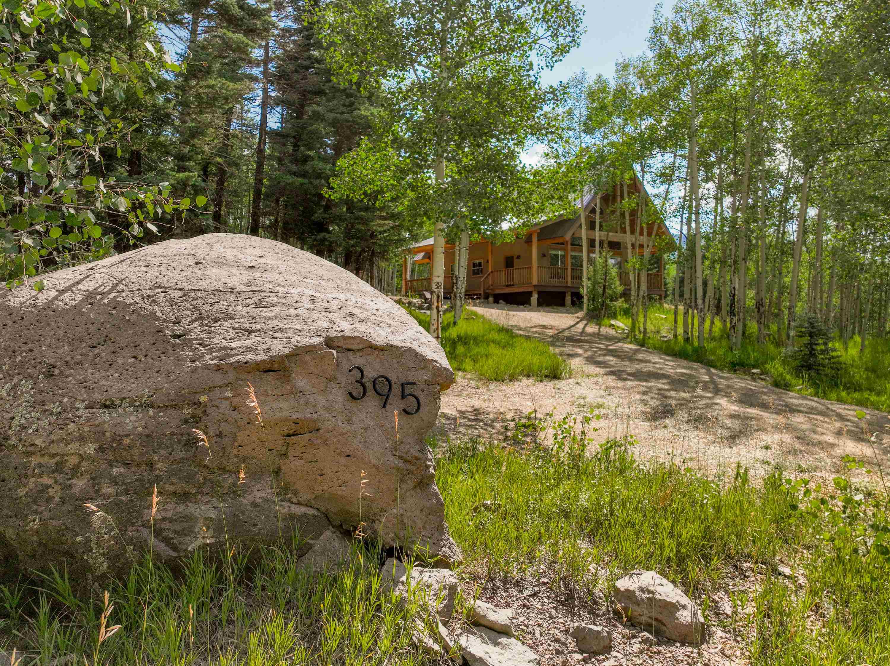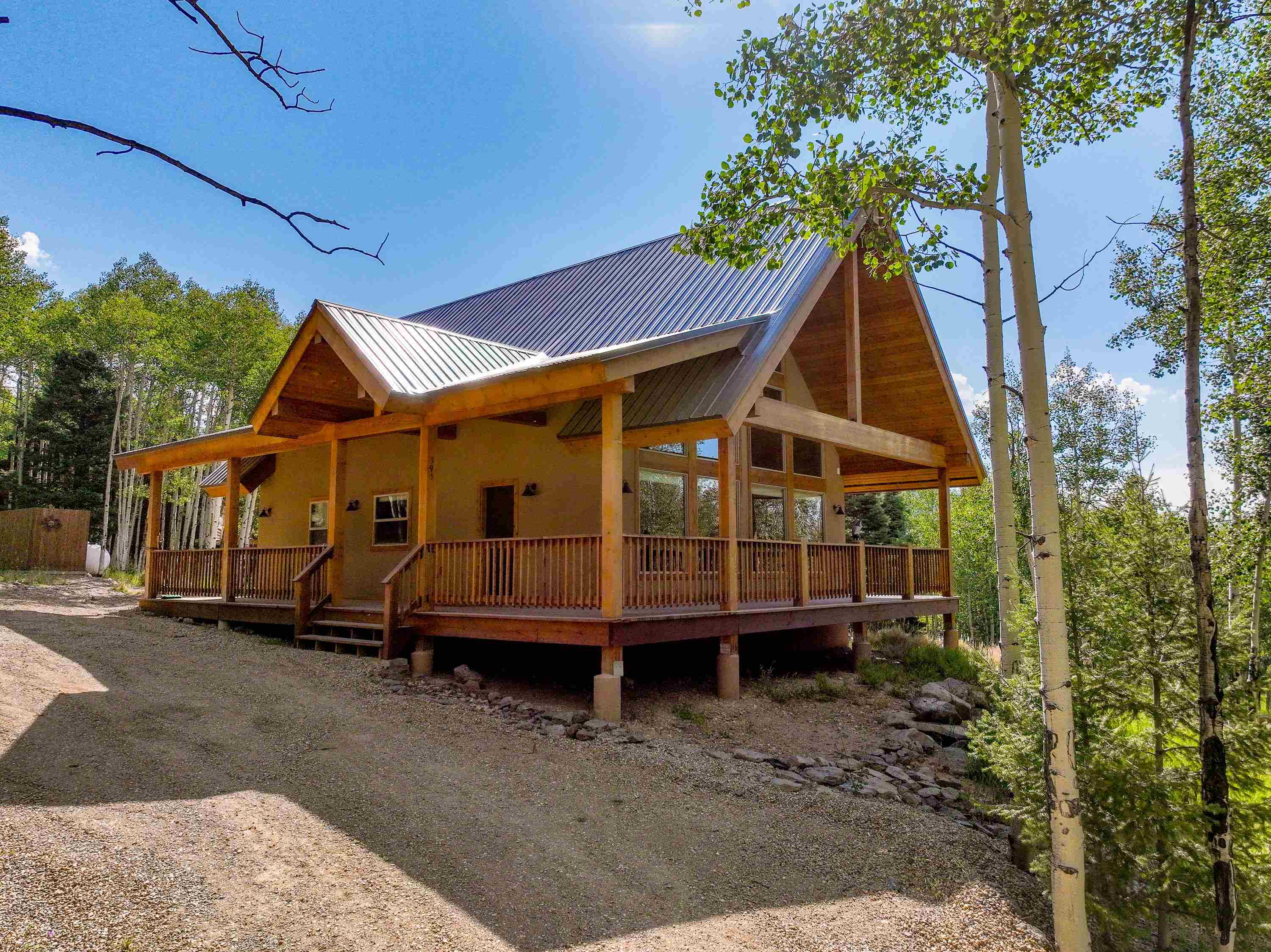 Nestled among a grove of quaking aspens, this charming home is ready to be your haven of tranquility. Built for effortless living, thisrecently completed retreat offers a serene and stylish escape with modern comforts throughout. Be wowed by breathtaking viewsthrough the expansive window wall from the moment you step inside, and let your worries melt away in the inviting atmosphere of thevaulted ceiling and spacious, open layout. Cozy up by the low-maintenance propane fireplace, prepare meals in the well-appointedkitchen--featuring premium, space-conscious appliances designed for smart and efficient living--while friends and family gather aroundthe large dining table. The main-floor primary suite features a lovely walk-in shower and a rustic vanity in the ensuite bathroom. If youseek a bit more privacy, the second bedroom is tucked above the living area, offering its own full bathroom and a cozy lofted sitting areaoverlooking the great room and stunning window wall. A roomy laundry area and a convenient half-bath complete the home's thoughtfulinterior. Enjoy cool summer nights and sunny winter days from the expansive covered deck, and experience mountain adventures just ashort, scenic drive away at Angel Fire Resort. Leave your troubles behind and embrace mountain living at 395 El Camino Real in AngelFire, NM.