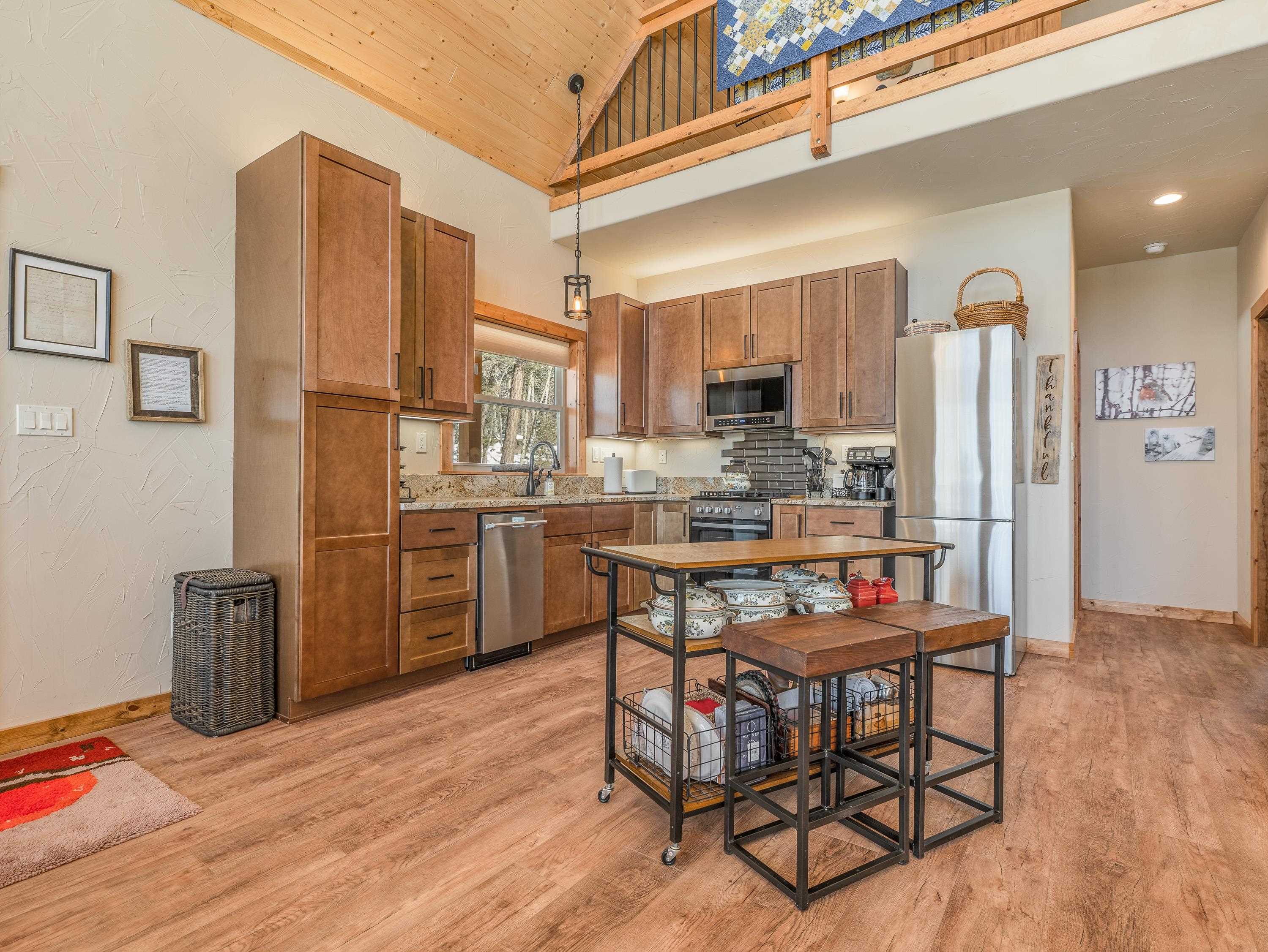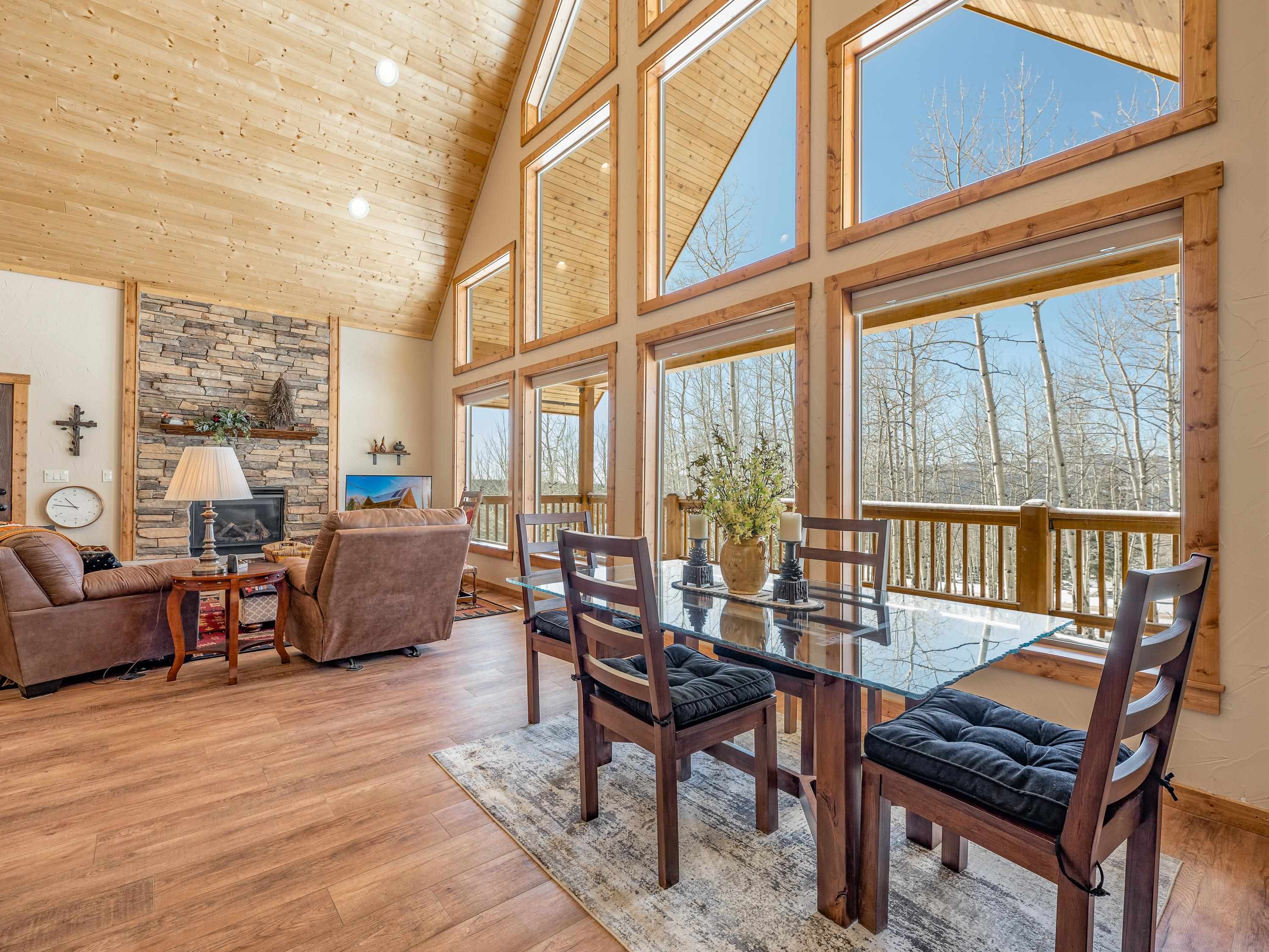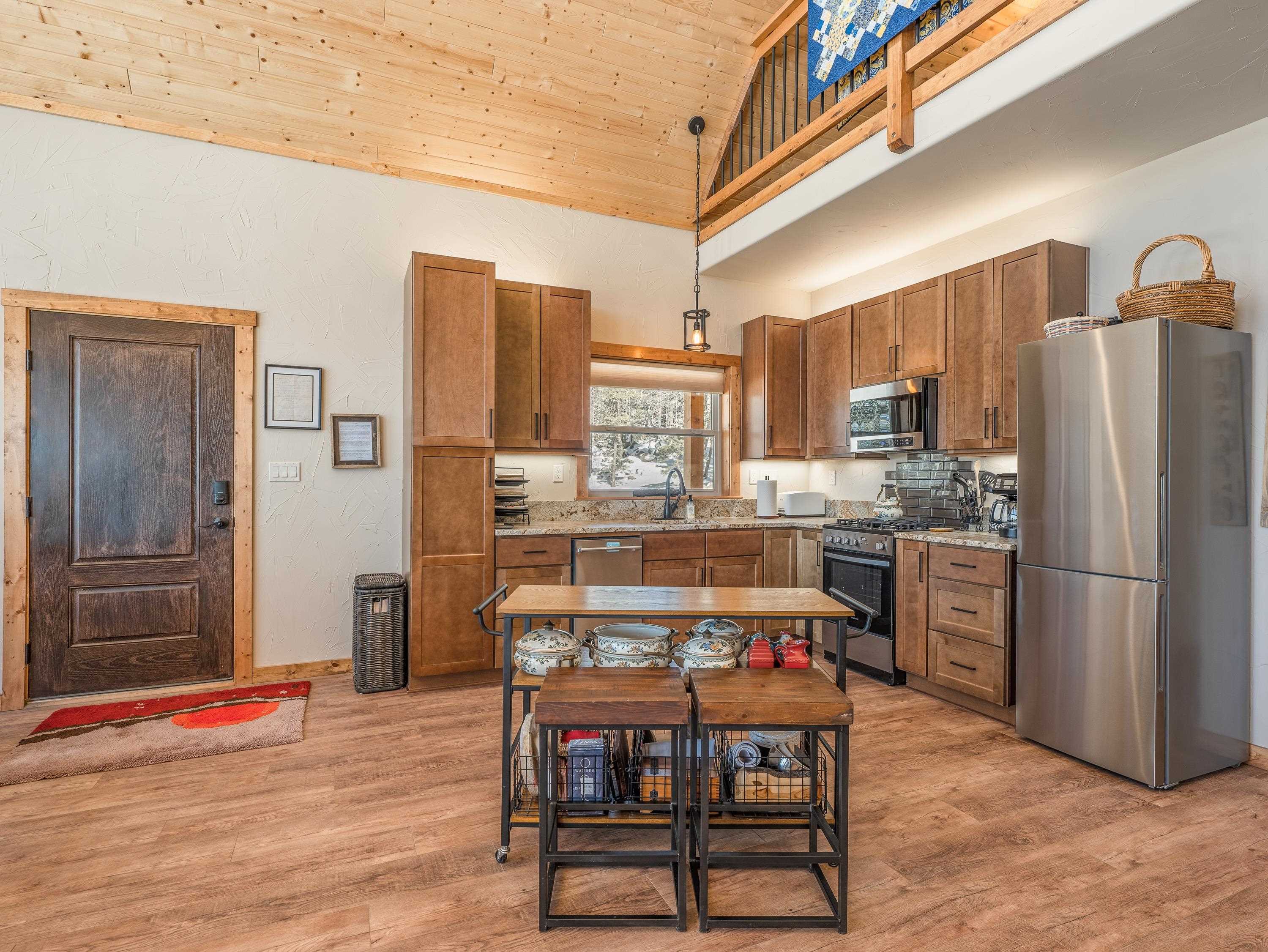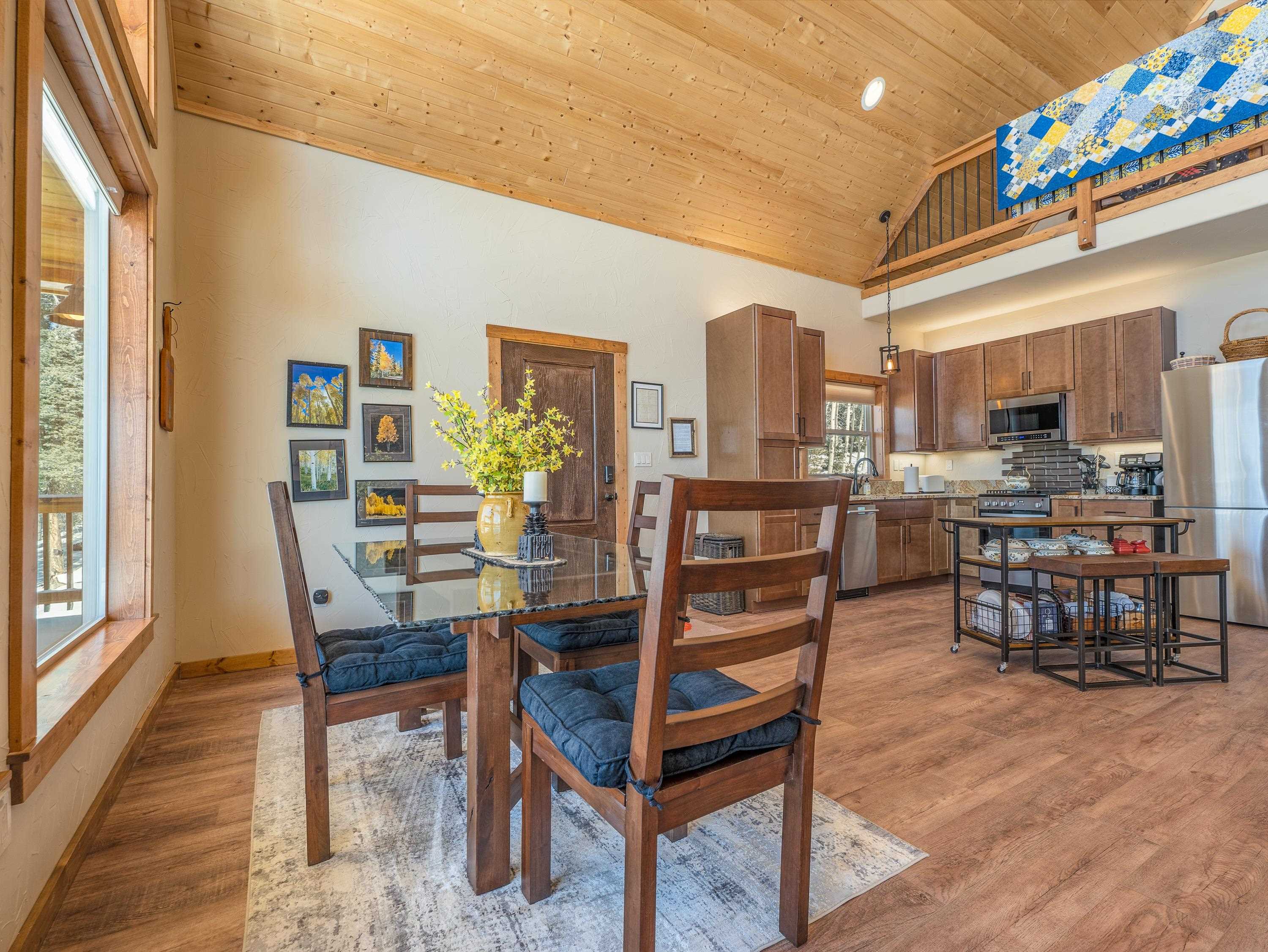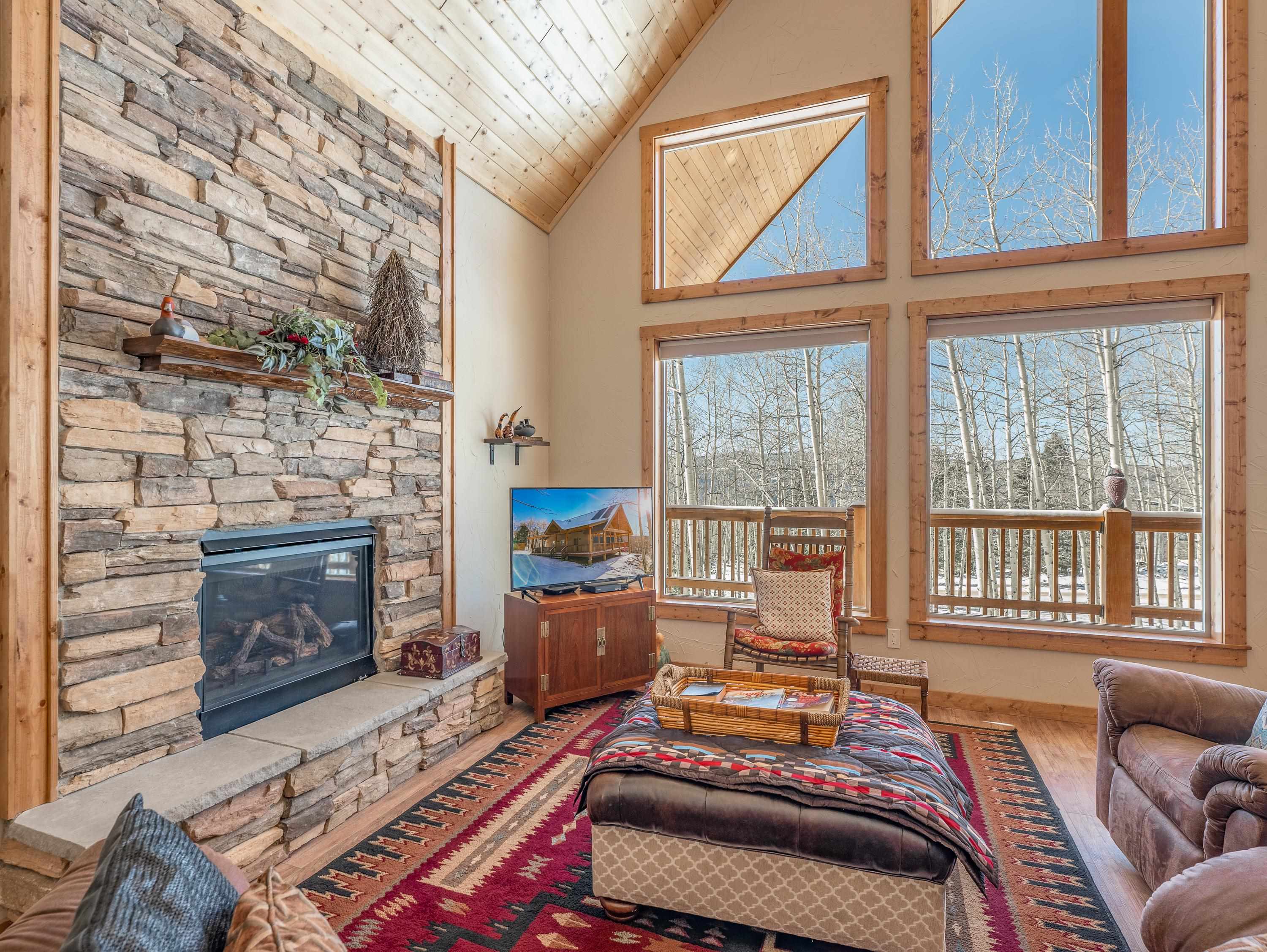 Nestled among a grove of quaking aspens, this charming home is ready to be your haven of tranquility. Built for effortless living, thisrecently completed retreat offers a serene and stylish escape with modern comforts throughout. Be wowed by breathtaking viewsthrough the expansive window wall from the moment you step inside, and let your worries melt away in the inviting atmosphere of thevaulted ceiling and spacious, open layout. Cozy up by the low-maintenance propane fireplace, prepare meals in the well-appointedkitchen--featuring premium, space-conscious appliances designed for smart and efficient living--while friends and family gather aroundthe large dining table. The main-floor primary suite features a lovely walk-in shower and a rustic vanity in the ensuite bathroom. If youseek a bit more privacy, the second bedroom is tucked above the living area, offering its own full bathroom and a cozy lofted sitting areaoverlooking the great room and stunning window wall. A roomy laundry area and a convenient half-bath complete the home's thoughtfulinterior. Enjoy cool summer nights and sunny winter days from the expansive covered deck, and experience mountain adventures just ashort, scenic drive away at Angel Fire Resort. Leave your troubles behind and embrace mountain living at 395 El Camino Real in AngelFire, NM.
