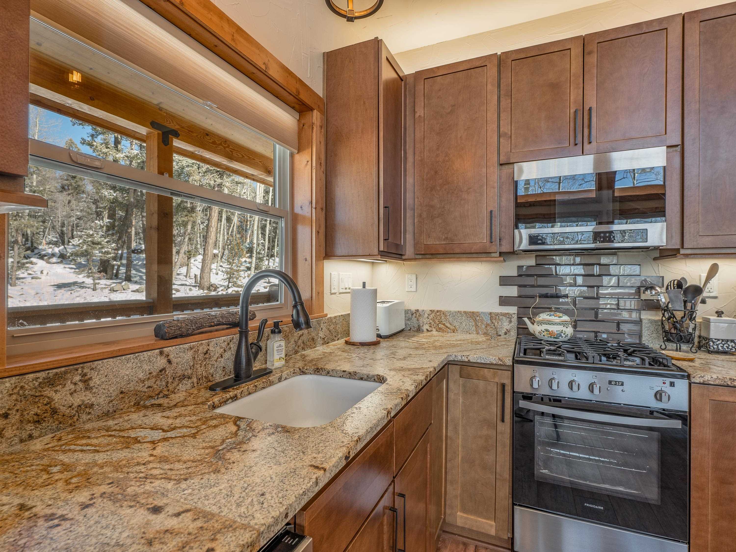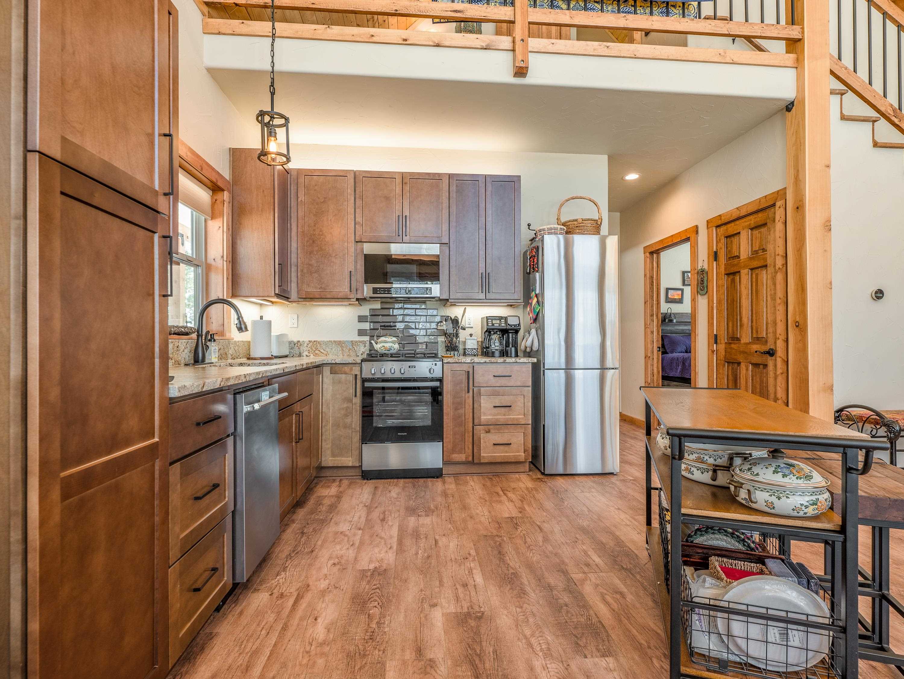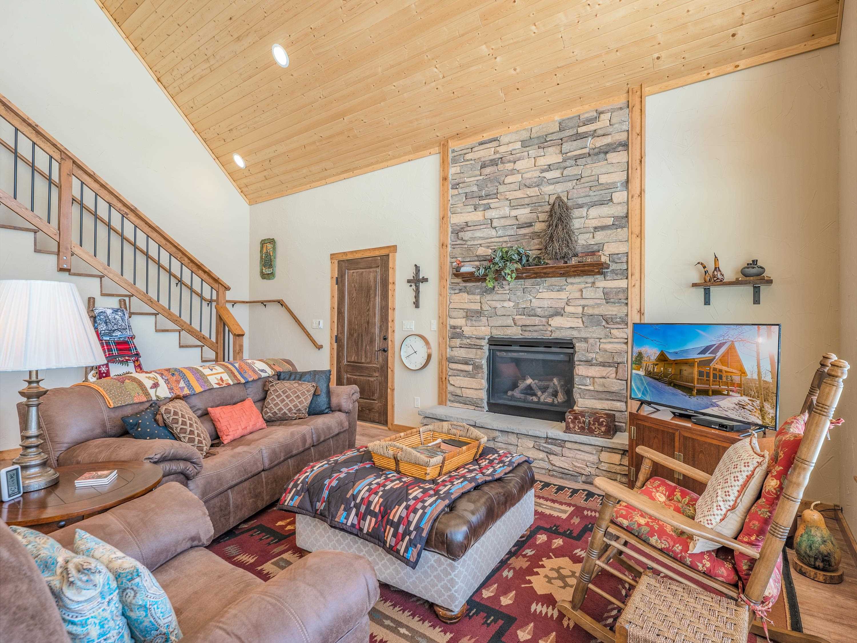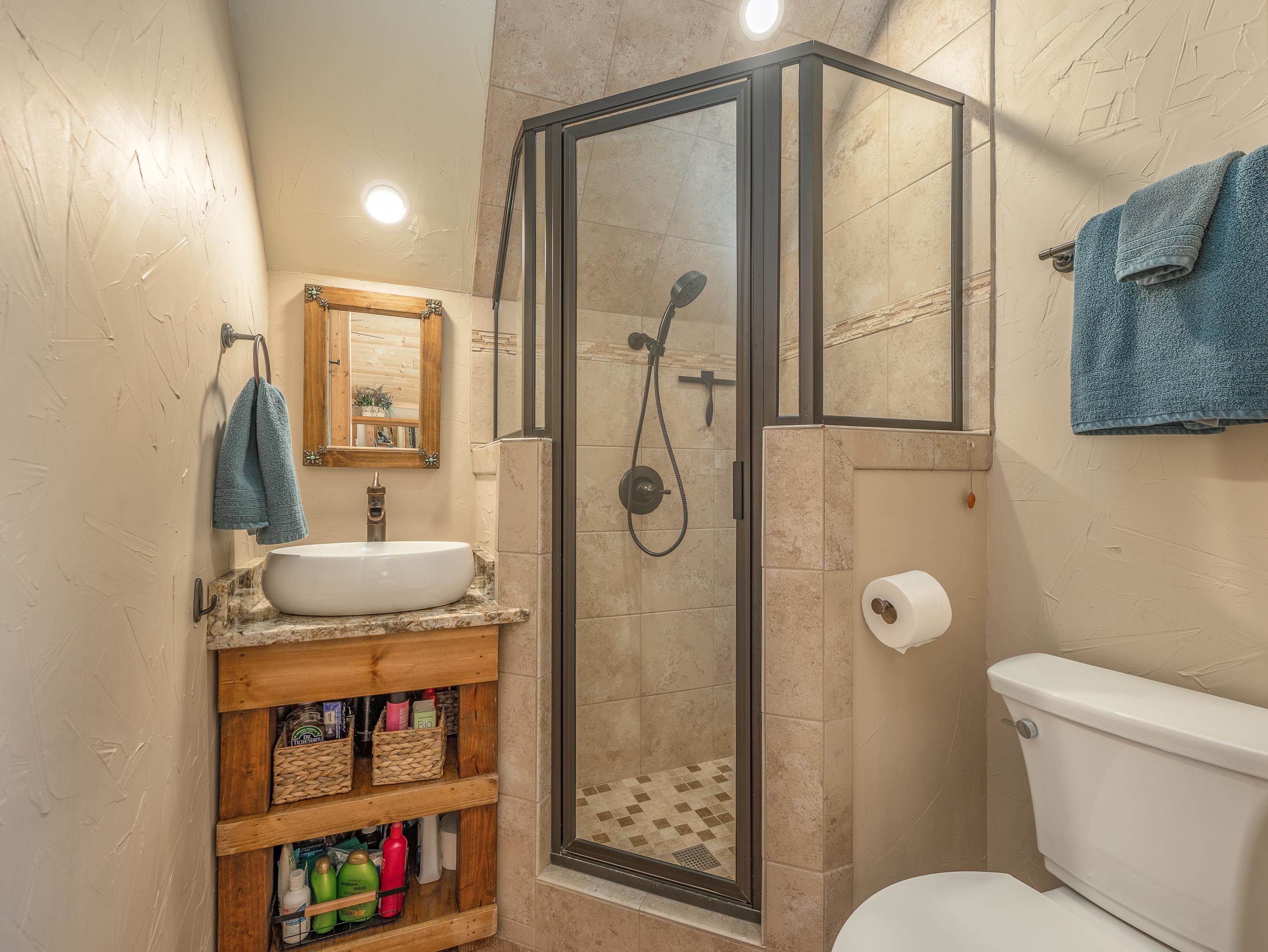 Nestled among a grove of quaking aspens, this charming home is ready to be your haven of tranquility. Built for effortless living, thisrecently completed retreat offers a serene and stylish escape with modern comforts throughout. Be wowed by breathtaking viewsthrough the expansive window wall from the moment you step inside, and let your worries melt away in the inviting atmosphere of thevaulted ceiling and spacious, open layout. Cozy up by the low-maintenance propane fireplace, prepare meals in the well-appointedkitchen--featuring premium, space-conscious appliances designed for smart and efficient living--while friends and family gather aroundthe large dining table. The main-floor primary suite features a lovely walk-in shower and a rustic vanity in the ensuite bathroom. If youseek a bit more privacy, the second bedroom is tucked above the living area, offering its own full bathroom and a cozy lofted sitting areaoverlooking the great room and stunning window wall. A roomy laundry area and a convenient half-bath complete the home's thoughtfulinterior. Enjoy cool summer nights and sunny winter days from the expansive covered deck, and experience mountain adventures just ashort, scenic drive away at Angel Fire Resort. Leave your troubles behind and embrace mountain living at 395 El Camino Real in AngelFire, NM.