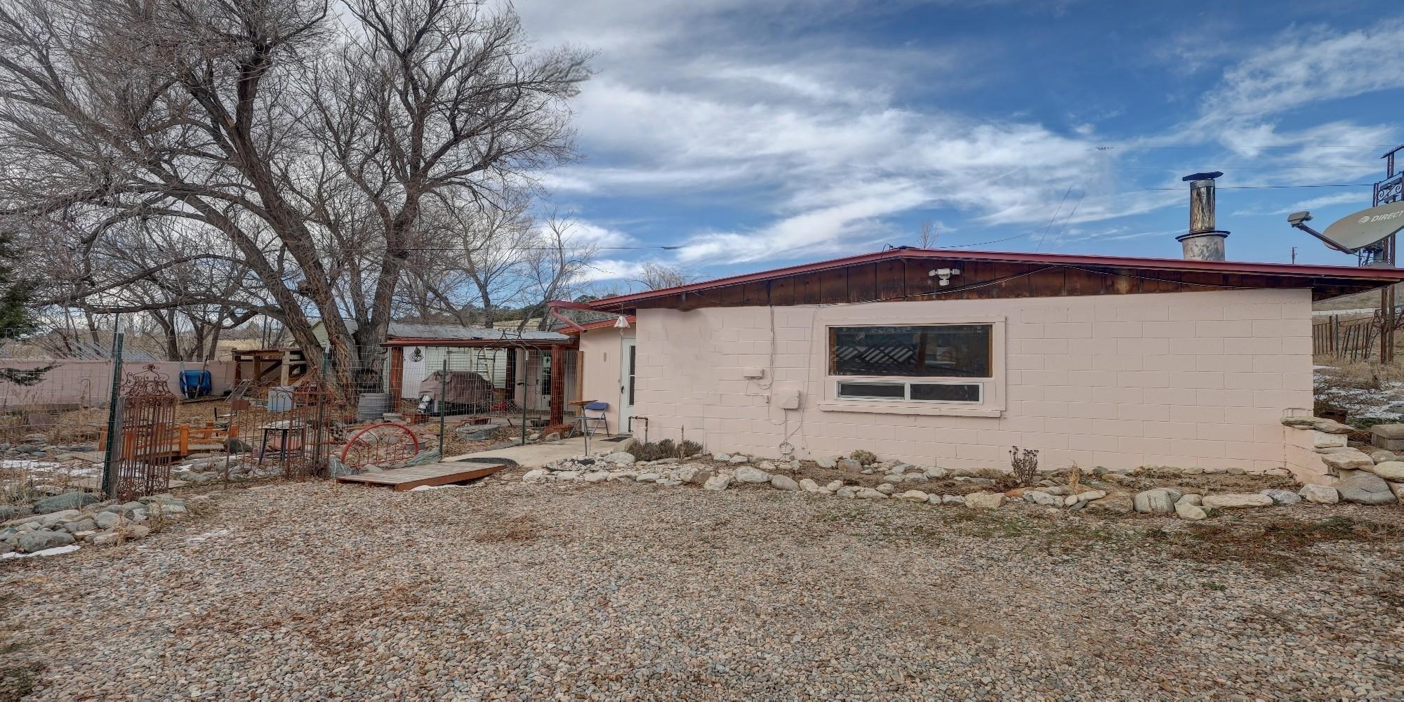 This charming 2 bedroom, 1.5 bath home is perfectly situated in the heart of downtown Questa, NM. Offering classic Southwestern character, the home features thick walls that provide warmth and durability. This property is ideal for a primary residence, rental, or small business conversion. The large, detached metal shed has full electricity and would make a great workshop or studio! Enjoy the convenience of being within walking distance to local shops, restaurants, and community amenities, with quick access to schools and Highway 522. This great central location makes daily living easy while keeping you close to everything Questa has to offer. A wonderful opportunity to own a site built home in a prime downtown setting.