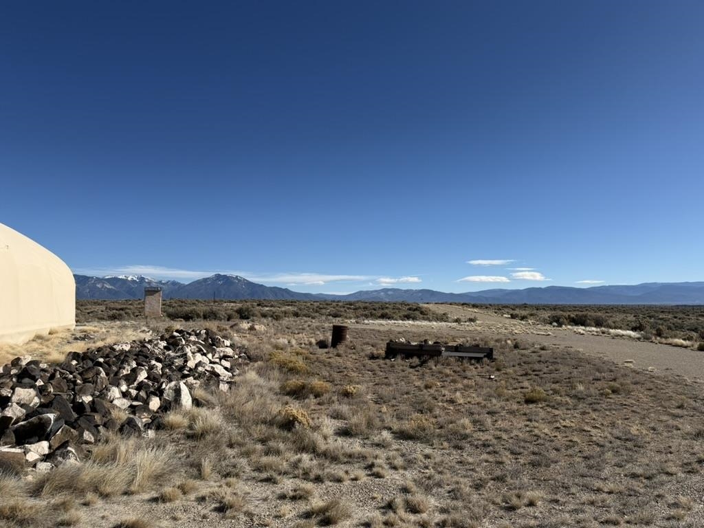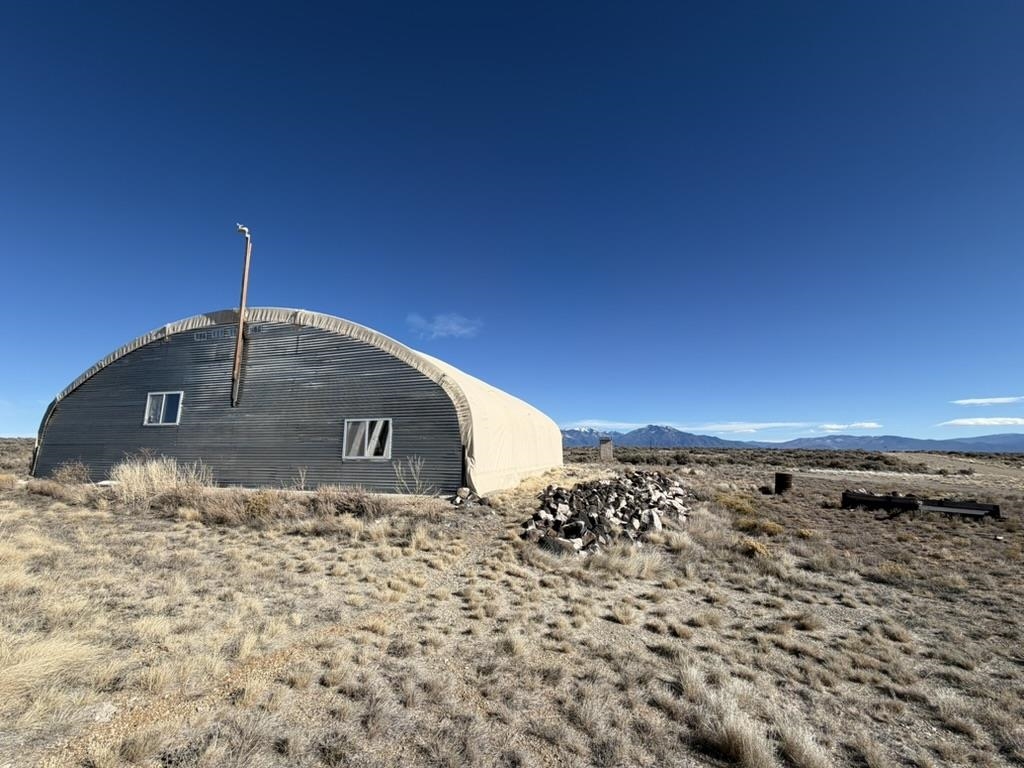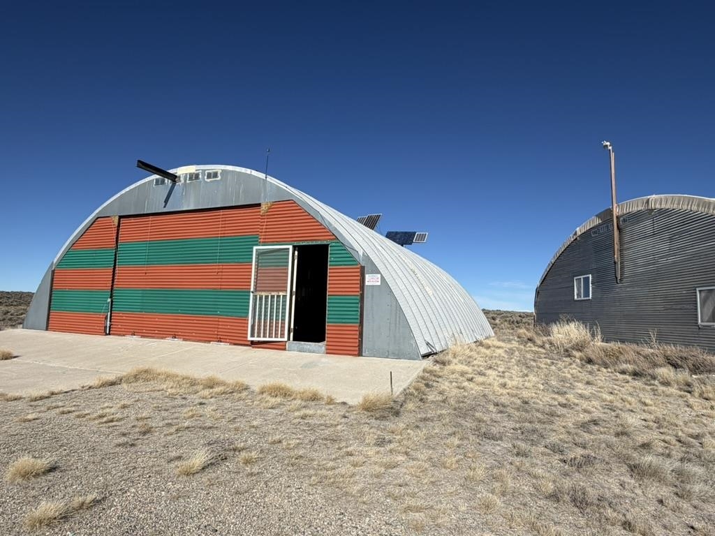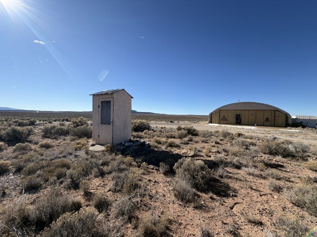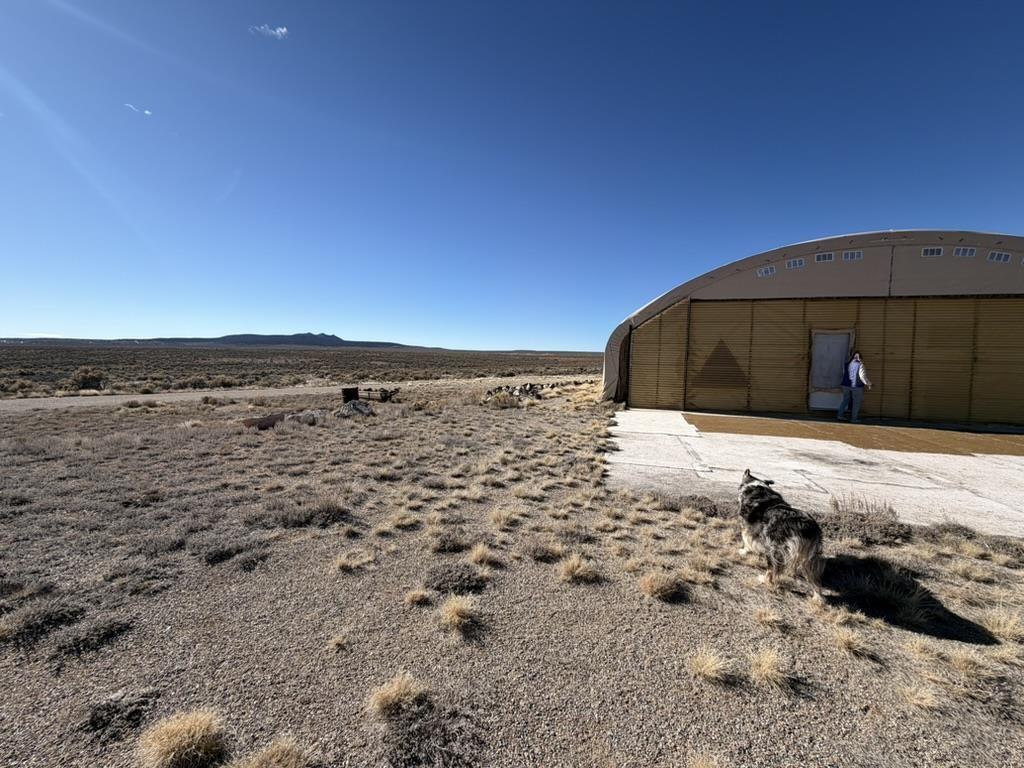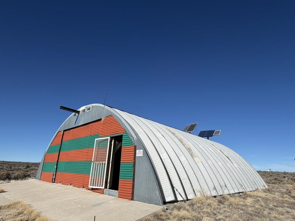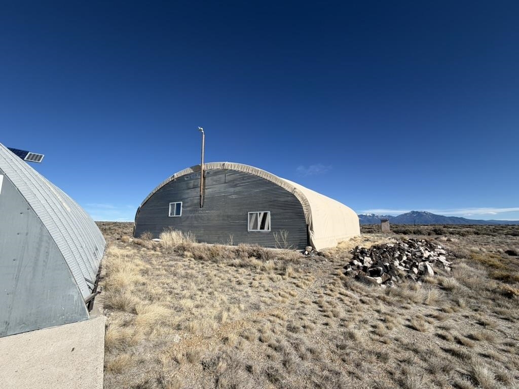 Dream work space/shop: ever wanted to build a plane? This could be the place to do it. 17 Acres of Land with two runways : One North/South and one East/West. Two Quonset huts/airplane hangers with concrete slabs, solar power, wind generator, and storage shed. These shops were the work space of a builder/engineer/pilot. 360 degree views. Less than 20 minutes to Taos Plaza.