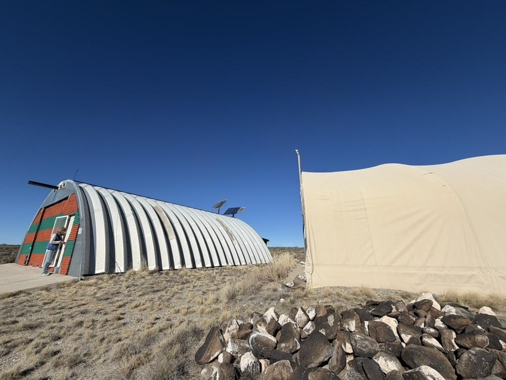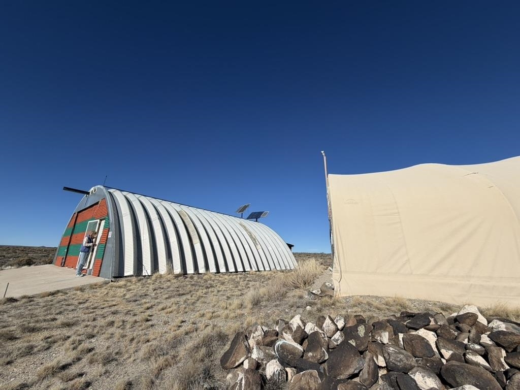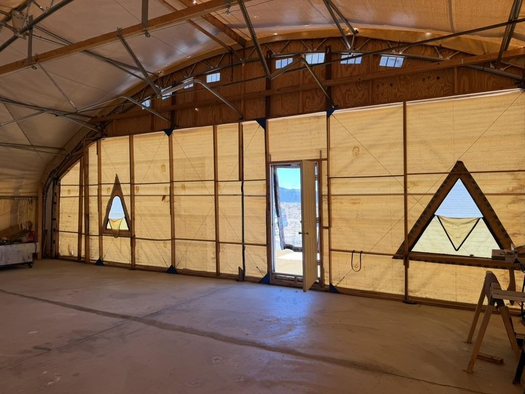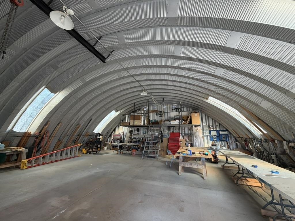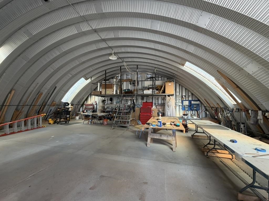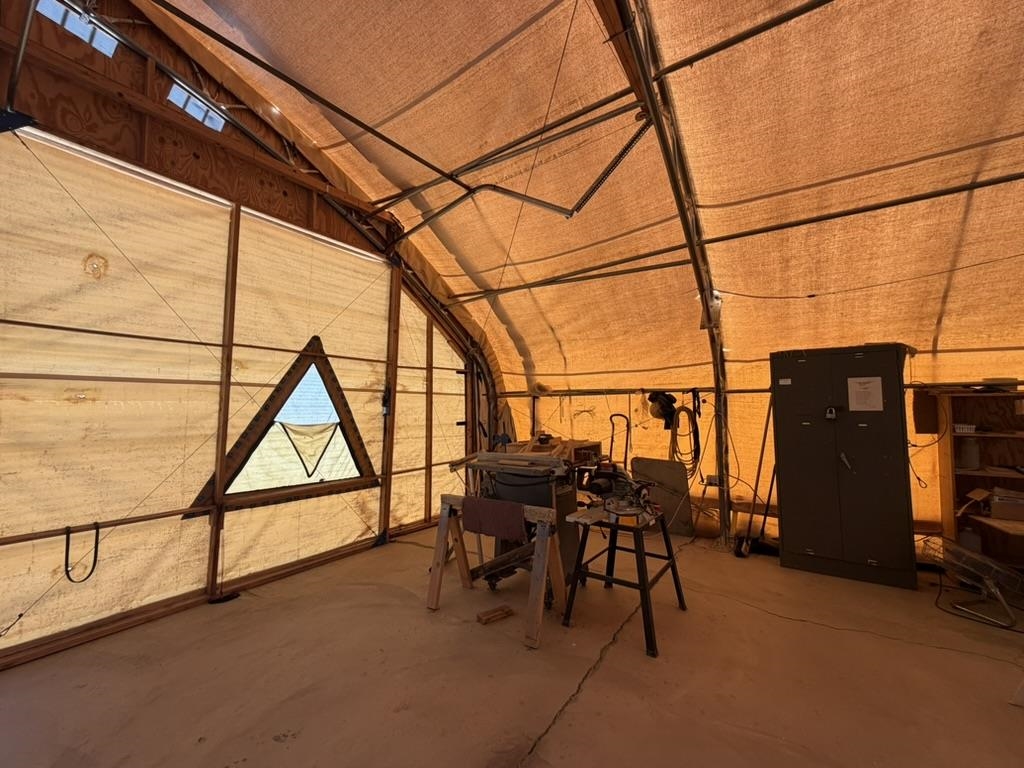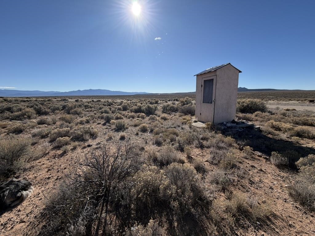 Dream work space/shop: ever wanted to build a plane? This could be the place to do it. 17 Acres of Land with two runways : One North/South and one East/West. Two Quonset huts/airplane hangers with concrete slabs, solar power, wind generator, and storage shed. These shops were the work space of a builder/engineer/pilot. 360 degree views. Less than 20 minutes to Taos Plaza.