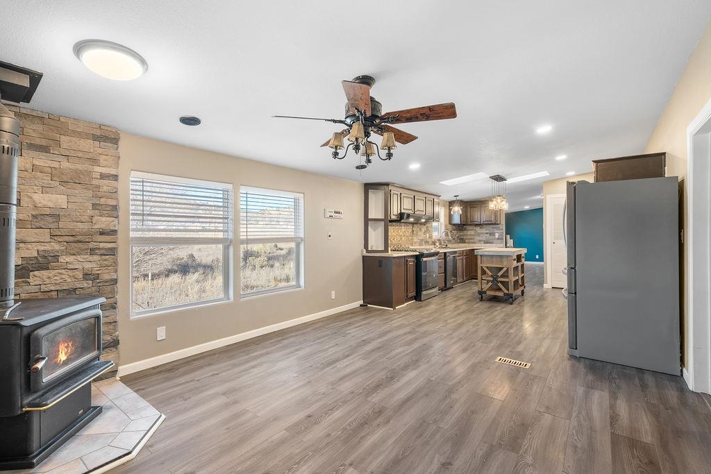 This unique Questa property offers an exceptional opportunity for the right buyer. Tucked behind solar-powered gates, the setting opens to a lush oasis with mature trees and the Red River flowing below the property. Trout fish provide excellent fishing, while deer and local wildlife are frequent visitors, creating a special connection to creation. Set on 1.62 acres, the home offers 2,240 square feet of living space with four bedrooms, three bathrooms, a large kitchen, and generous living areas. A wraparound deck invites seamless indoor-outdoor living, making entertaining effortless and enjoyable. The grounds are thoughtfully improved with a hot tub, koi pond, lush green lawn, garden shed, barn, basketball court, and children's playset. Not to forget irrigation rights. Covered parking is included, along with up to three RV hookups--ideal for guests, extended family, or potential investment use. A whole-house backup generator adds peace of mind and functionality. Take in breathtaking Sangre de Cristo Mountain views, enjoy trout fishing, and experience a property perfectly suited for raising a family or hosting unforgettable gatherings. This rare multifamily homestead offers space to farm, gather, and create a peaceful country retreat that feels like a fairytale escape away from the hustle and bustle of everyday life. Schedule your showing today!