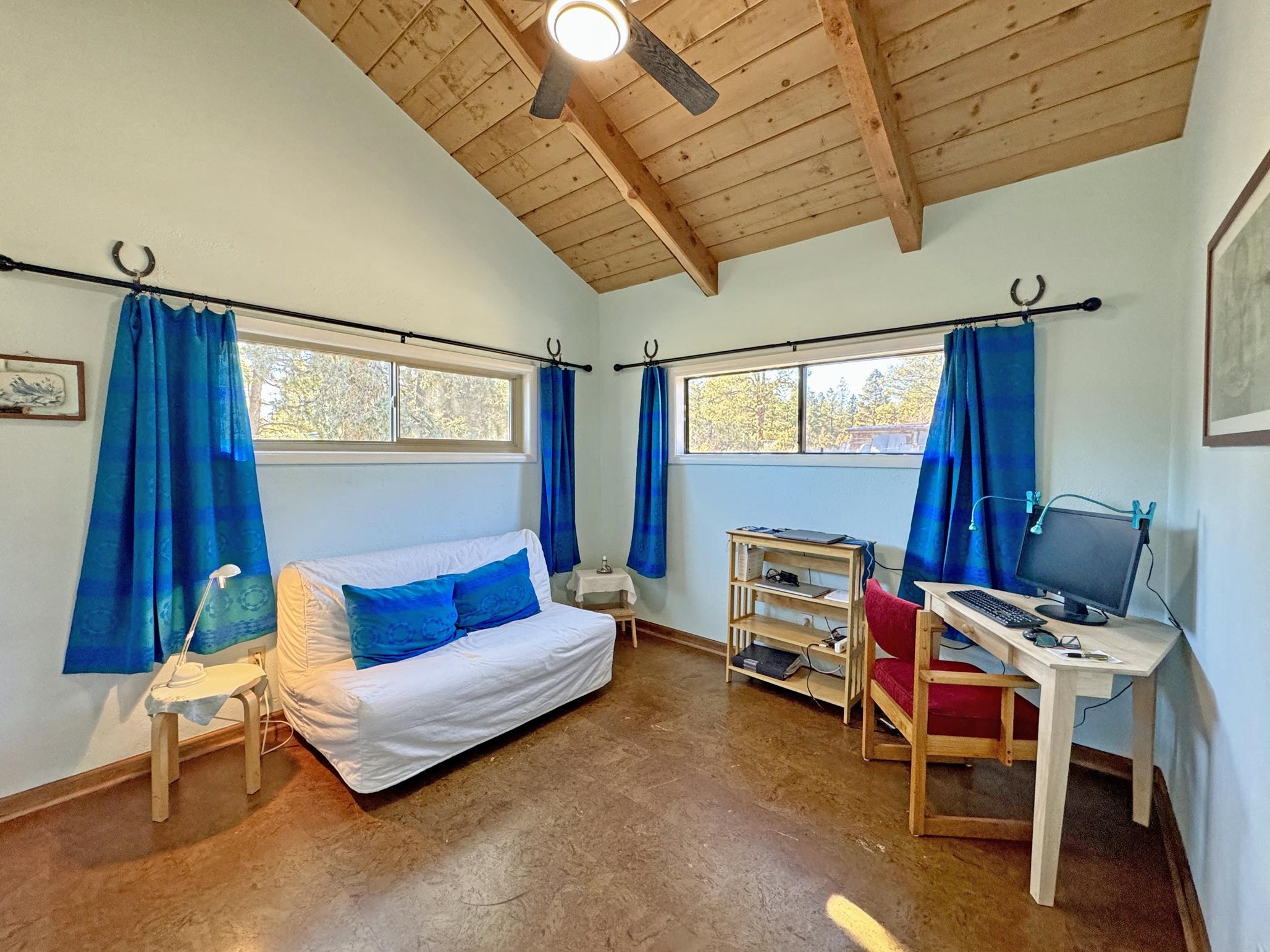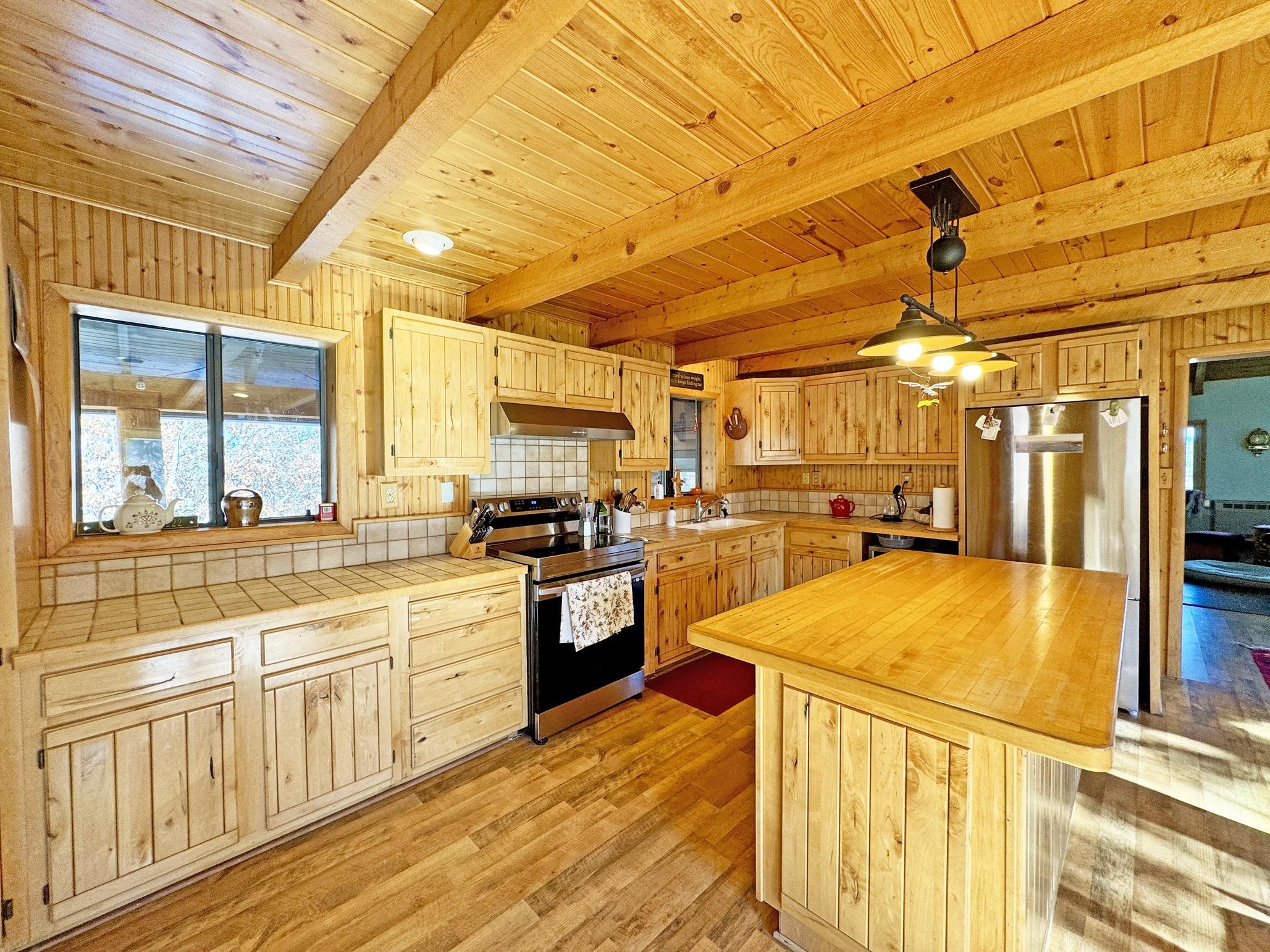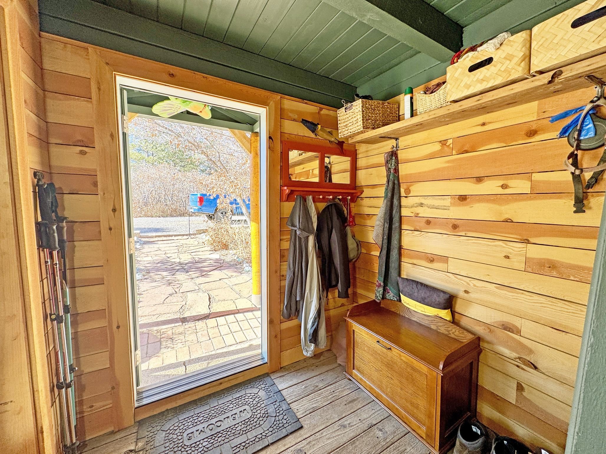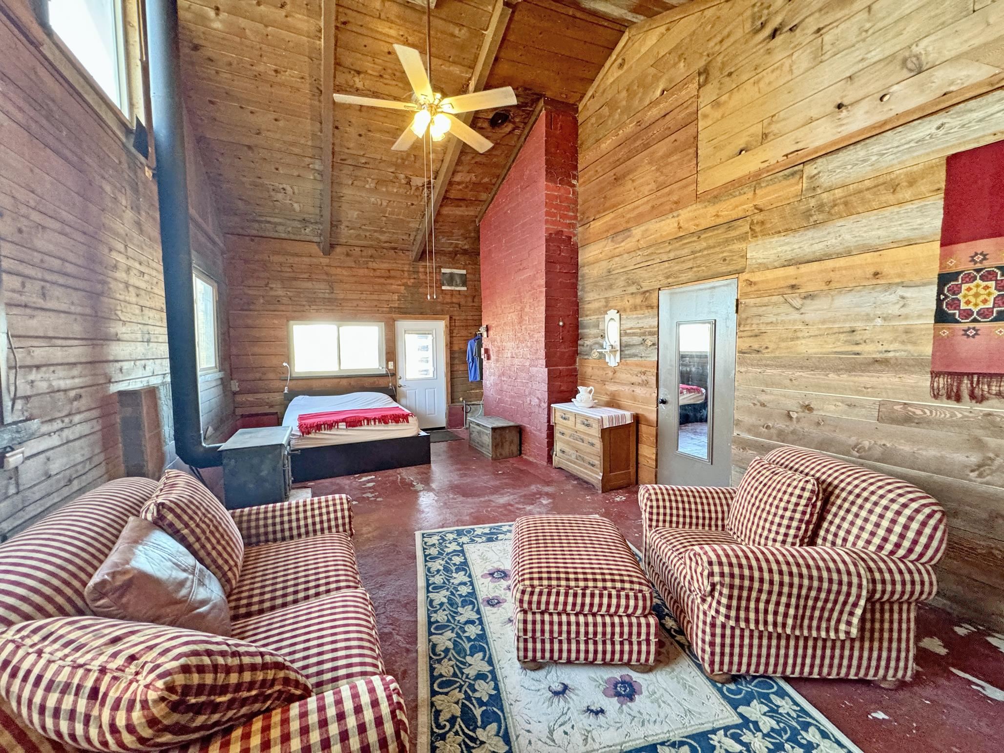 Escape to your own piece of Northern New Mexico paradise! This beautifully maintained split-level premium log cabin in the peaceful Highland Estates subdivision of Tres Piedras offers the perfect blend of rustic charm and modern updates. Surrounded by stunning mountain views, wide-open spaces, and starry night skies, this property is ideal for those seeking privacy and outdoor adventure such as hiking, skiing, rafting and the Rio Grande Gorge. This cabin in the woods is located in the beautiful Tusas Mountains half an hour west of Taos, half an hour north of Ojo Caliente Mineral Hot Springs, and an hour and a half away from Santa Fe. Step inside to vaulted ceilings, warm wood accents, and multiple heating sources for cozy year-round comfort: wood stoves in the kitchen, living room, and expansive primary suite (converted from the original garage), wall heaters in the living room and primary, plus luxurious in-floor radiant heat in the main bathroom. The main level features an open kitchen with hardwood floors and brand-new stainless-steel refrigerator and range, an inviting living room, dining room (currently used as a home office) with authentic Saltillo tiles, a primary suite with cement floors and private wood stove, two guest bedrooms with cork flooring and ceiling fans, and the main bathroom. The fully finished basement adds versatile living space with tile floors throughout, an additional bedroom, 3/4 bathroom, and plenty of room for a family room, guest quarters, or recreation area. Enjoy outdoor living at its finest with two covered porches--one east-facing for morning coffee and one west-facing for spectacular sunsets. The 2-acre property is fully fenced with chain-link for privacy and security, and includes a storage shed, garden shed, and wood shed. Recent upgrades include all-new rain gutters, a new mudroom, a one year old on demand electric water heater, a French drain where water from graveled driveway drains off from and electric heating cables on the roof to effortlessly melt winter snow. Practical features abound: propane tank for gas heating/cooking, septic system, community water, reliable cell service and high-speed fiber optic internet already on the property. This turnkey mountain retreat is ready for you to move in and start living the serene Tres Piedras lifestyle.