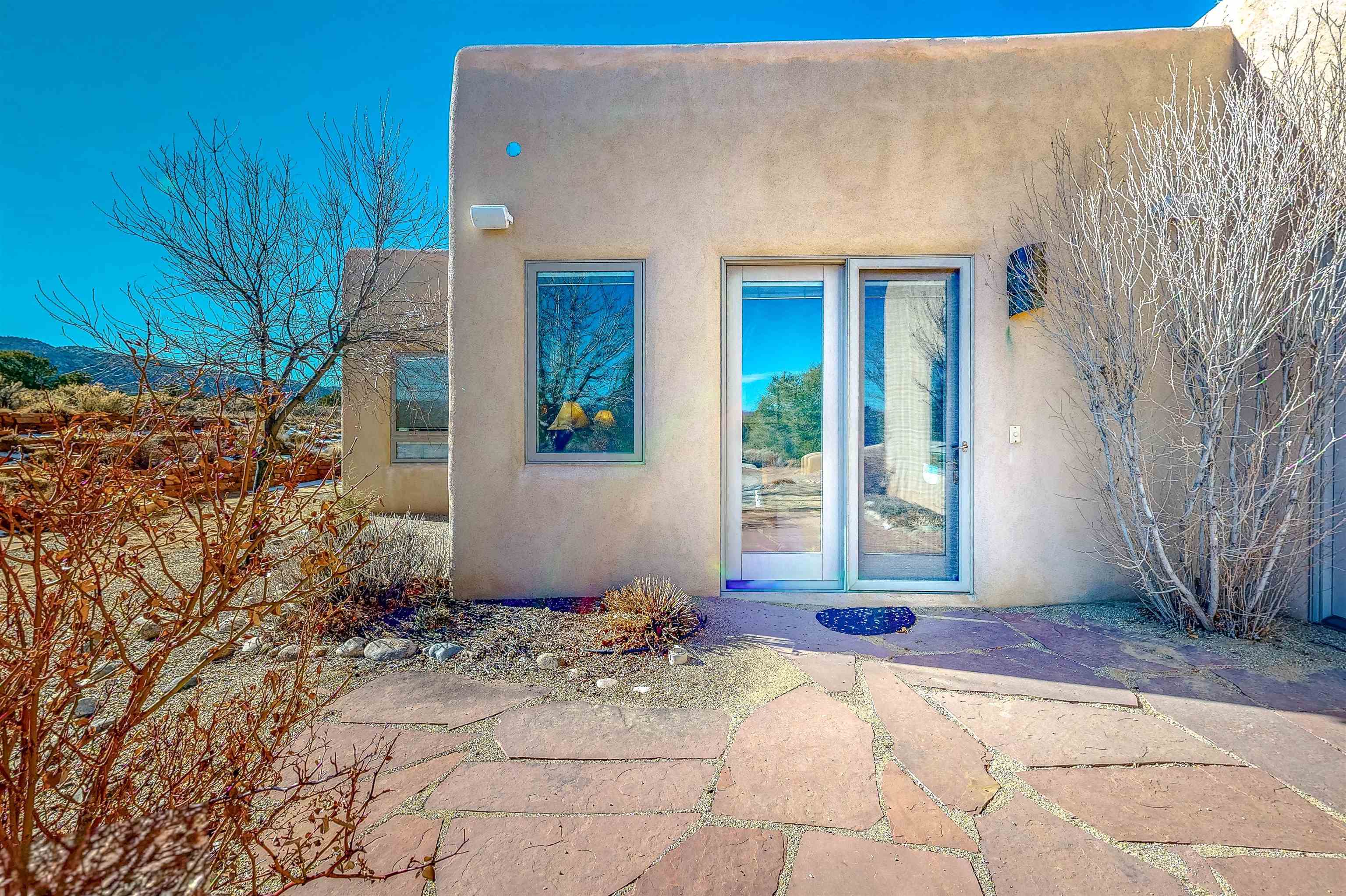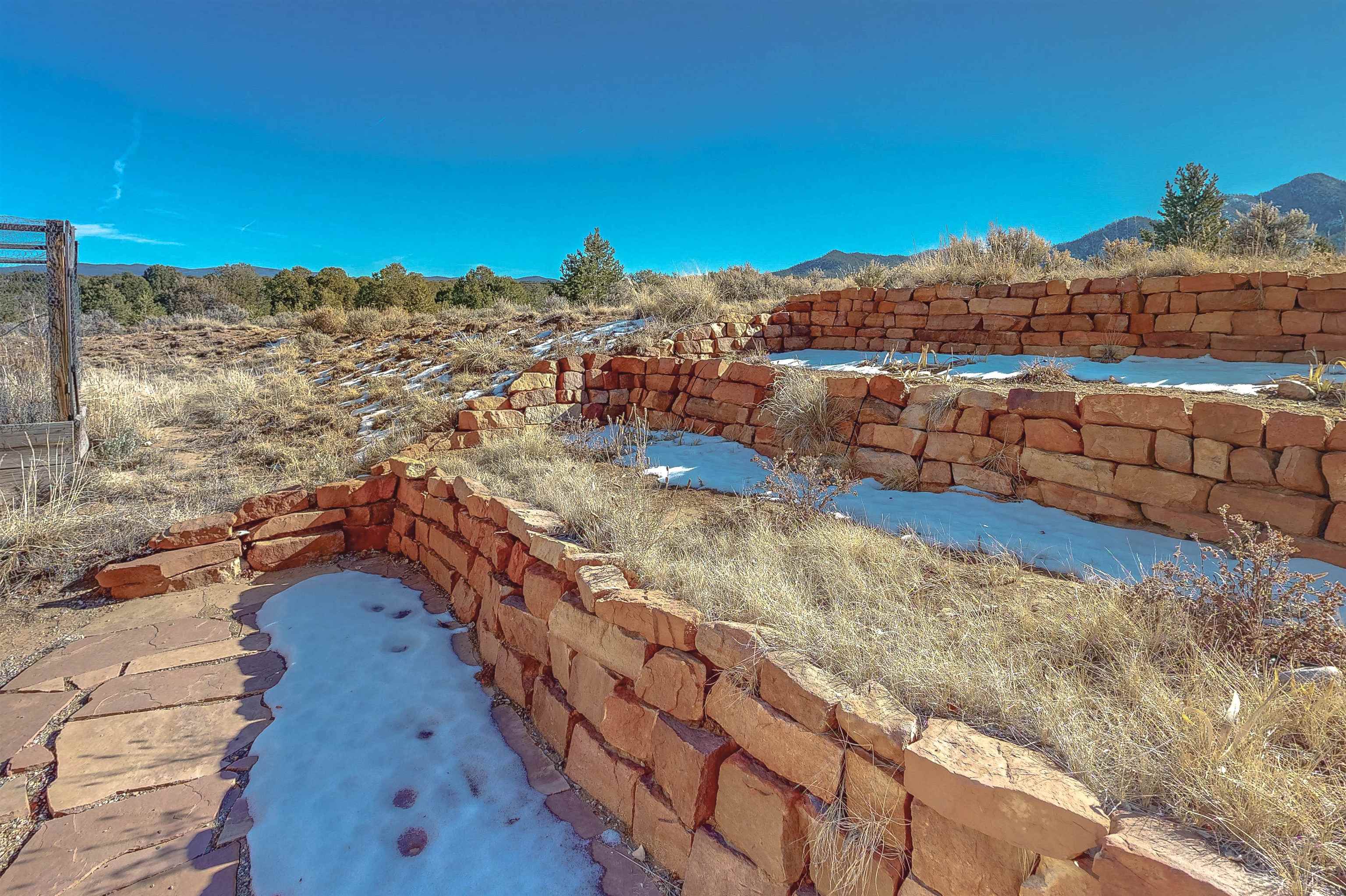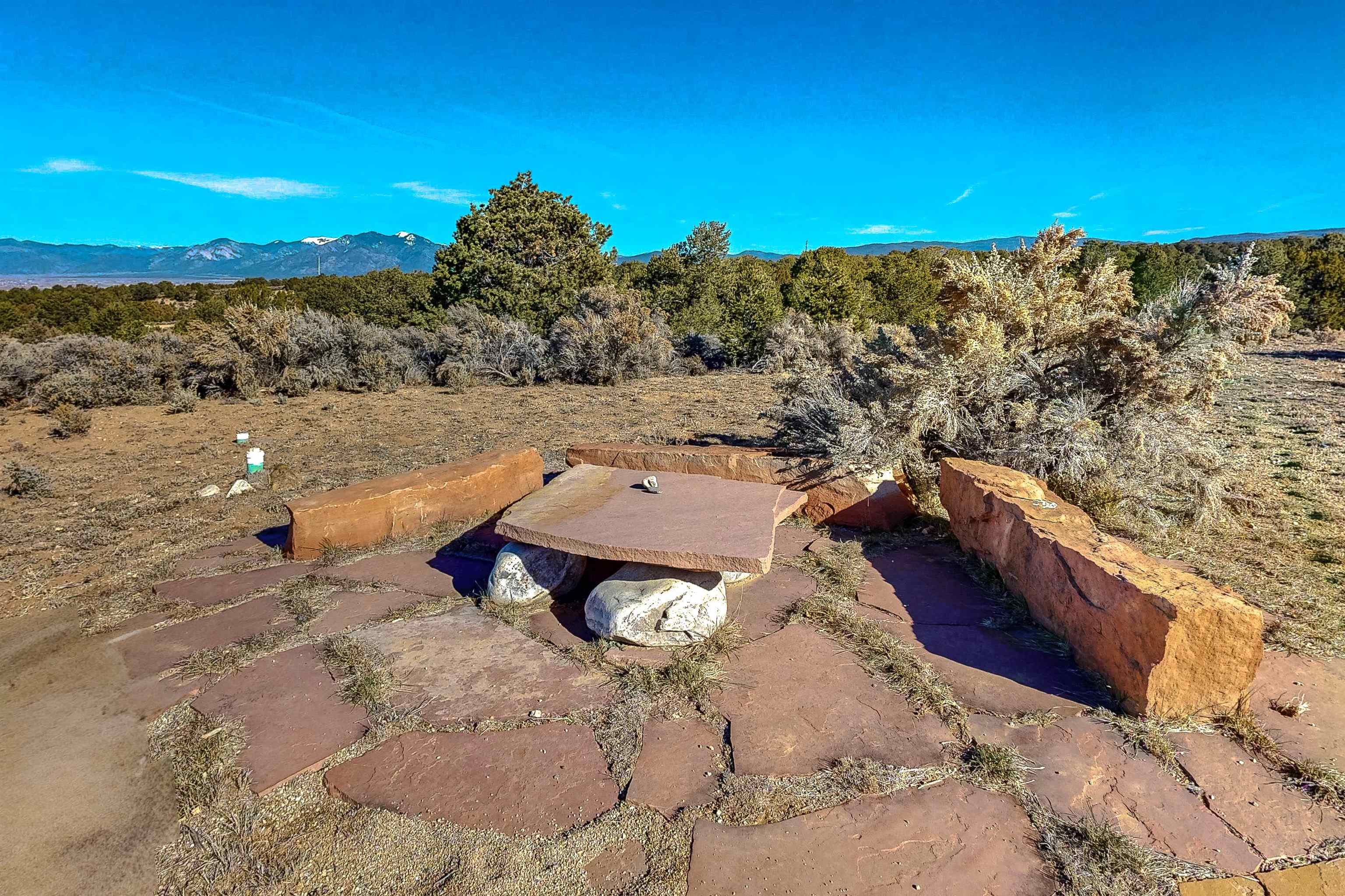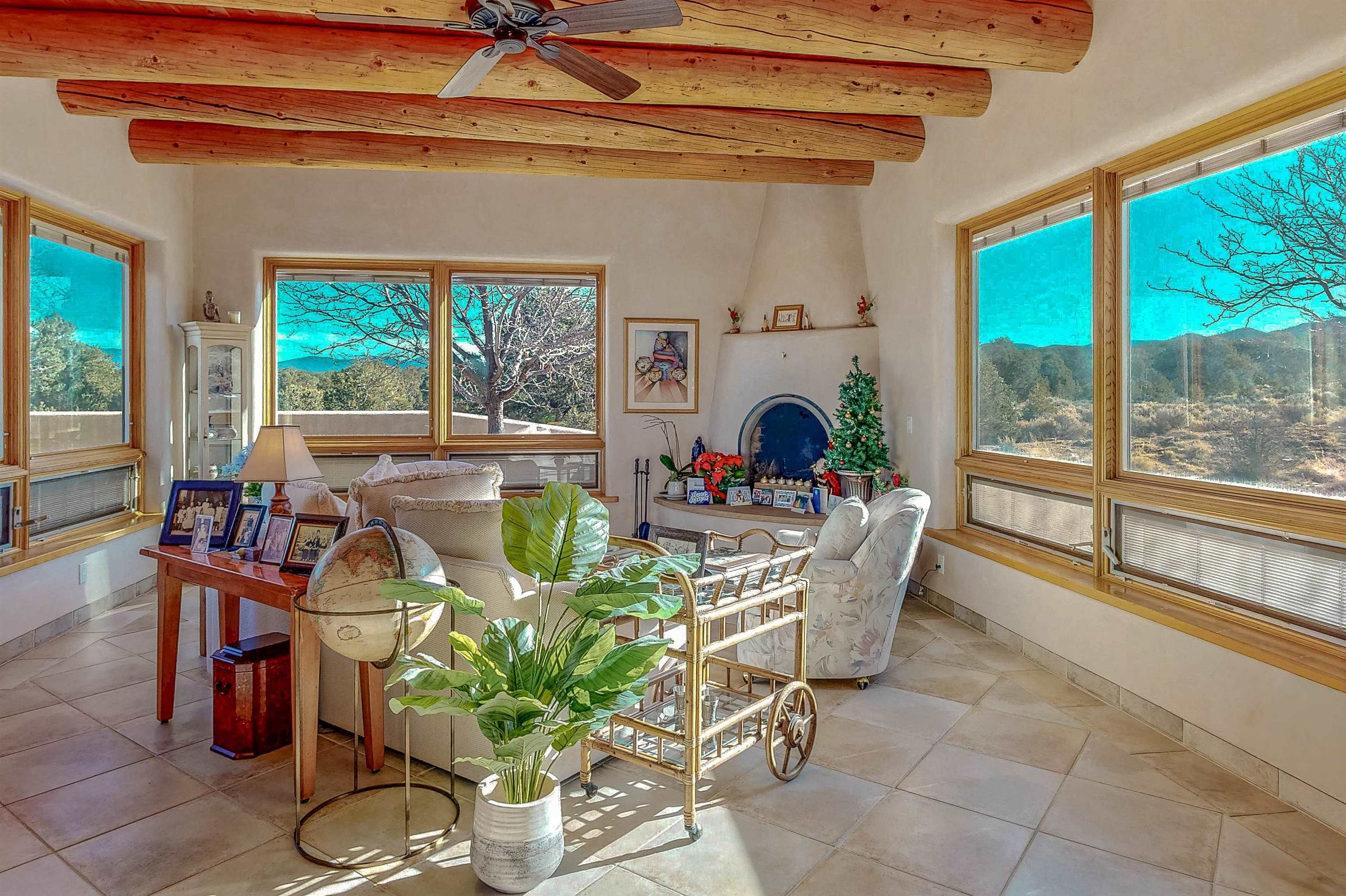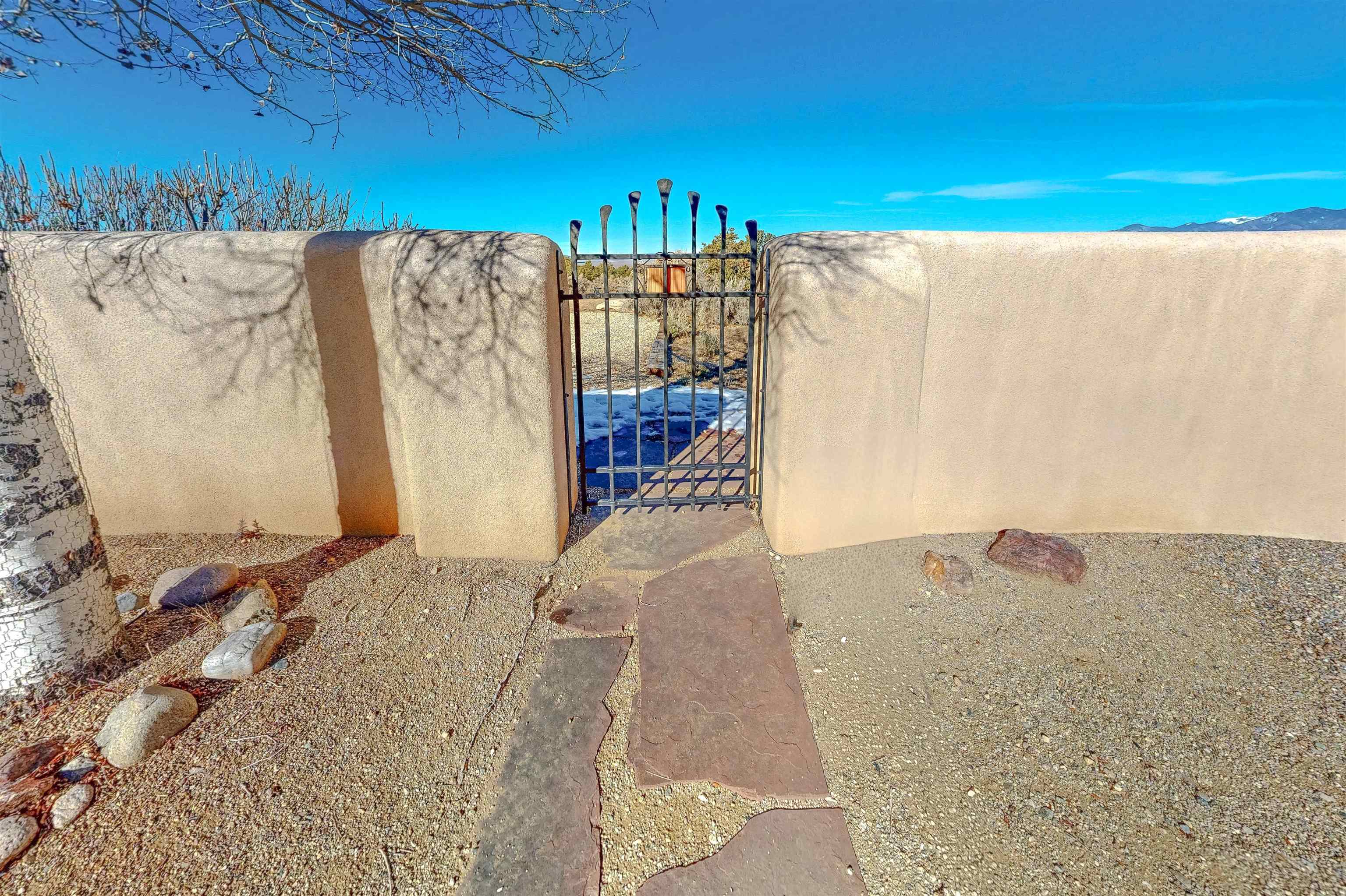 Introducing La Esencia de El Mirador, a home designed for the essence of entertaining: sharing life, good food, and spectacular views. Located in the peaceful county setting of Ranchos de Taos in the exclusive El Mirador subdivision, La Esencia de El Mirador is an exceptional single-level residence offering approximately 2,600 square feet of refined living space, masterfully crafted by respected builder Ken Wolosin - known for his quality construction and meticulous attention to detail. A private security gate welcomes you onto the property, immediately setting the tone for the thoughtful design, elevated finishes, and enduring craftsmanship found throughout. Inside, the open-concept floor plan lives effortlessly with no interior steps, elegant porcelain stone floors, and radiant in-floor heating that extends into the expansive 779 sq ft heated garage with storage areas. The inviting living room is anchored by a cozy fireplace and framed by Pella triple-pane R-4 windows, filling the home with natural light while delivering outstanding energy efficiency and serene comfort. Pella doors and windows are featured throughout, with enclosed blinds for additional insulation, and reinforcing the home's commitment to quality and performance. The chef's kitchen is a true gathering space, thoughtfully designed for both daily living and entertaining. Viking appliances - including a gas cooktop with hood and double electric wall ovens - are complemented by stone countertops, a dedicated coffee counter, and a well-planned pantry area complete with a wine fridge and microwave. A separate wine closet adds an extra layer of sophistication and convenience rarely found at this level. The primary suite offers a private retreat, featuring a custom California walk-in closet and a luxurious spa-inspired bathroom with an oversized soaking tub and bidet. Two additional bedrooms and a beautifully appointed full guest bath provide comfort and flexibility for family and guests alike. Additional upgrades enhance both form and function, including a Bry fire-resistant roof, ceiling fans in every room, and a security system installed during construction. The spacious utility room includes a deep sink, cabinetry, ample storage, and a gas dryer. The radiant-heated garage is fully finished and exceptionally well-equipped, offering a workbench, wall organizers, a storage room, and a dedicated mechanical room - ideal for projects, hobbies, or outdoor gear. The roof is a flat roof with a 1/2" per every foot slope instead of the standard 1/4" per foot slope, allowing for the rain to spew out of the canales feeding all the Aspen trees and wildflowers. The home was also built with 2" of foil faced styrofoam insulation on the exterior and beneath the plaster creating an R40 insulation thickness value. The current owner is the original owner of this home and was heavily involved in its construction and has kept meticulous maintenance records for the entire 18 years. The home is also being sold mostly furnished. Set on 11.93 quiet, open acres, La Esencia de El Mirador offers remarkable privacy, sweeping views, and space to savor the surrounding landscape - an increasingly rare opportunity in today's market. With superior craftsmanship, a thoughtfully designed layout, and high-end finishes throughout, this is a home created to be experienced, shared, and enjoyed. This listing has very detailed exterior and interior videos for your viewing pleasure.