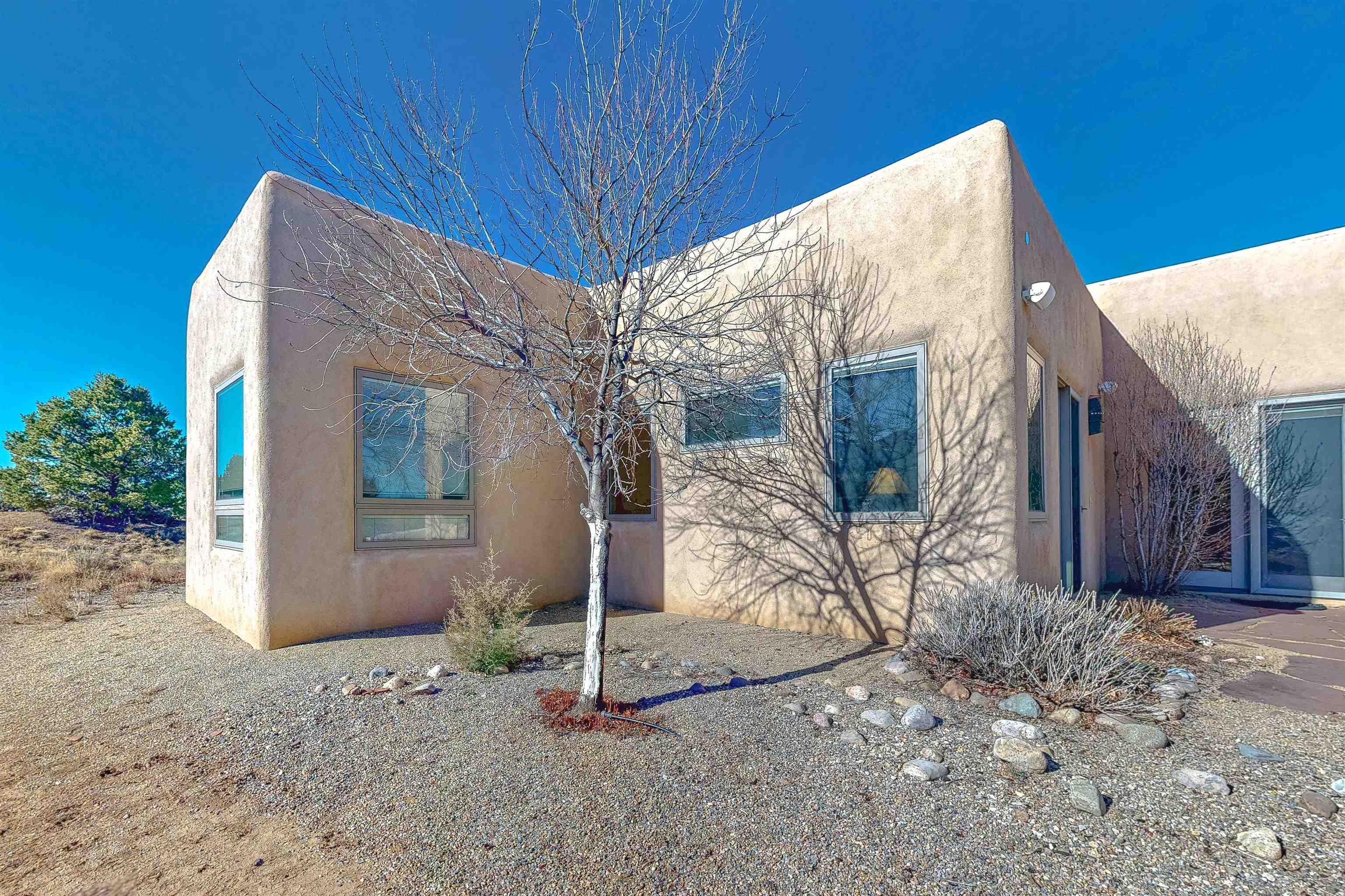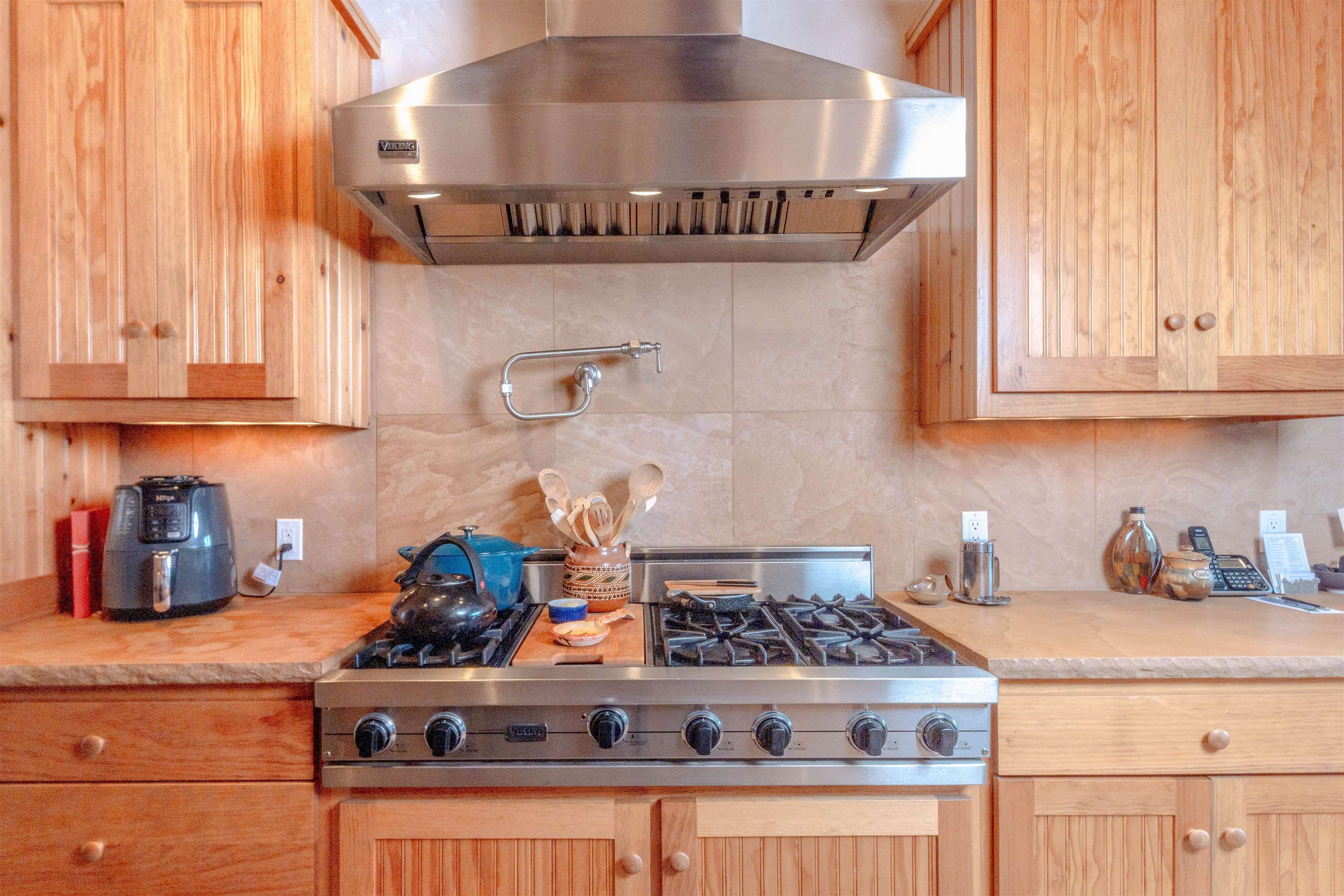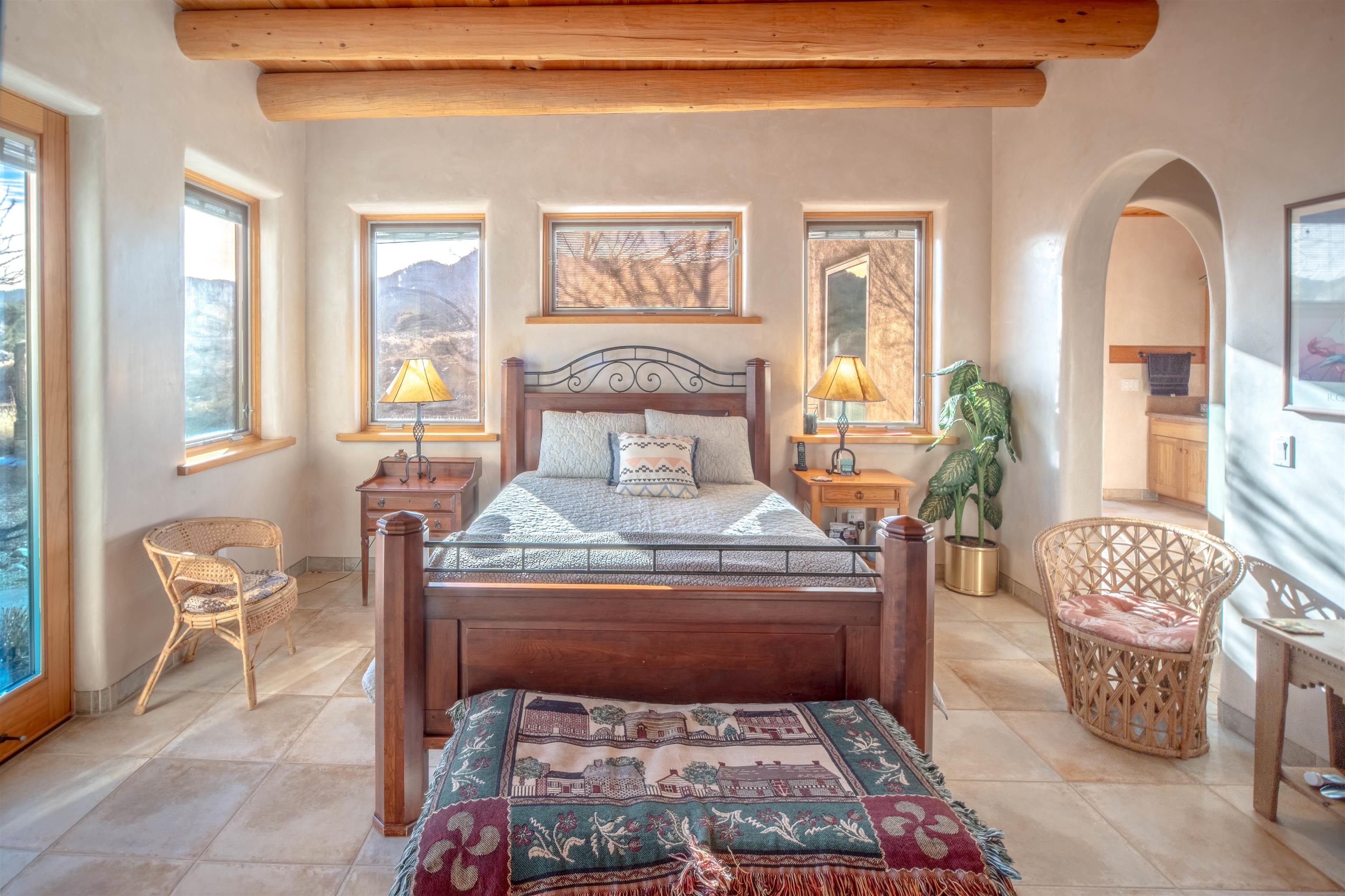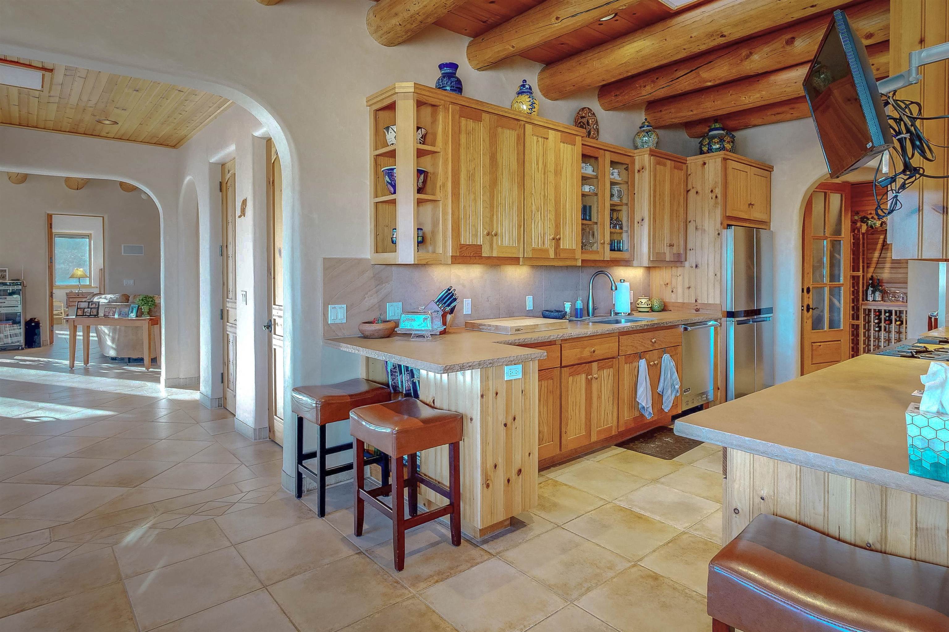 Introducing La Esencia de El Mirador, a home designed for the essence of entertaining: sharing life, good food, and spectacular views. Located in the peaceful county setting of Ranchos de Taos in the exclusive El Mirador subdivision, La Esencia de El Mirador is an exceptional single-level residence offering approximately 2,600 square feet of refined living space, masterfully crafted by respected builder Ken Wolosin - known for his quality construction and meticulous attention to detail. A private security gate welcomes you onto the property, immediately setting the tone for the thoughtful design, elevated finishes, and enduring craftsmanship found throughout. Inside, the open-concept floor plan lives effortlessly with no interior steps, elegant porcelain stone floors, and radiant in-floor heating that extends into the expansive 779 sq ft heated garage with storage areas. The inviting living room is anchored by a cozy fireplace and framed by Pella triple-pane R-4 windows, filling the home with natural light while delivering outstanding energy efficiency and serene comfort. Pella doors and windows are featured throughout, with enclosed blinds for additional insulation, and reinforcing the home's commitment to quality and performance. The chef's kitchen is a true gathering space, thoughtfully designed for both daily living and entertaining. Viking appliances - including a gas cooktop with hood and double electric wall ovens - are complemented by stone countertops, a dedicated coffee counter, and a well-planned pantry area complete with a wine fridge and microwave. A separate wine closet adds an extra layer of sophistication and convenience rarely found at this level. The primary suite offers a private retreat, featuring a custom California walk-in closet and a luxurious spa-inspired bathroom with an oversized soaking tub and bidet. Two additional bedrooms and a beautifully appointed full guest bath provide comfort and flexibility for family and guests alike. Additional upgrades enhance both form and function, including a Bry fire-resistant roof, ceiling fans in every room, and a security system installed during construction. The spacious utility room includes a deep sink, cabinetry, ample storage, and a gas dryer. The radiant-heated garage is fully finished and exceptionally well-equipped, offering a workbench, wall organizers, a storage room, and a dedicated mechanical room - ideal for projects, hobbies, or outdoor gear. The roof is a flat roof with a 1/2" per every foot slope instead of the standard 1/4" per foot slope, allowing for the rain to spew out of the canales feeding all the Aspen trees and wildflowers. The home was also built with 2" of foil faced styrofoam insulation on the exterior and beneath the plaster creating an R40 insulation thickness value. The current owner is the original owner of this home and was heavily involved in its construction and has kept meticulous maintenance records for the entire 18 years. The home is also being sold mostly furnished. Set on 11.93 quiet, open acres, La Esencia de El Mirador offers remarkable privacy, sweeping views, and space to savor the surrounding landscape - an increasingly rare opportunity in today's market. With superior craftsmanship, a thoughtfully designed layout, and high-end finishes throughout, this is a home created to be experienced, shared, and enjoyed. This listing has very detailed exterior and interior videos for your viewing pleasure.