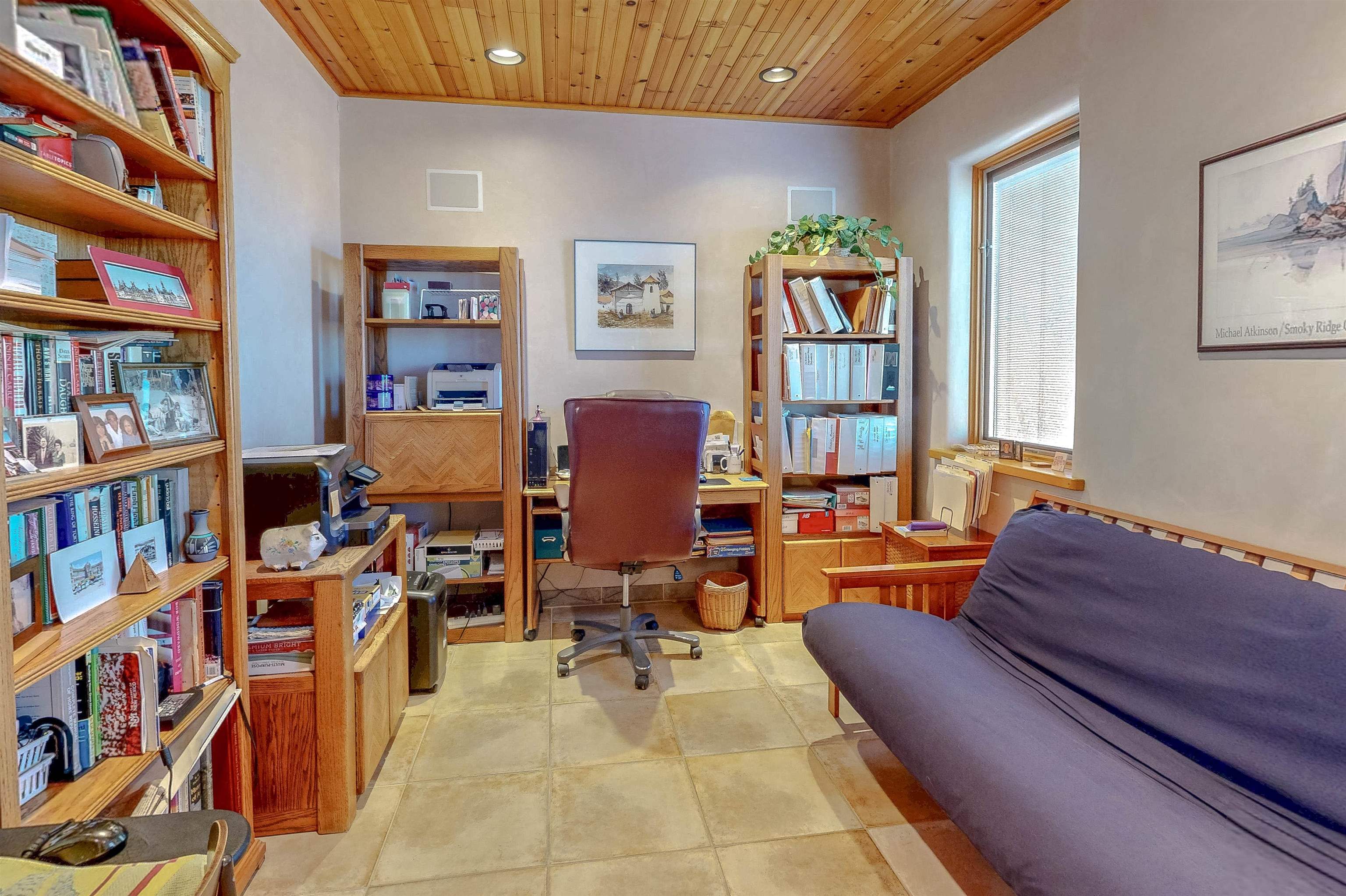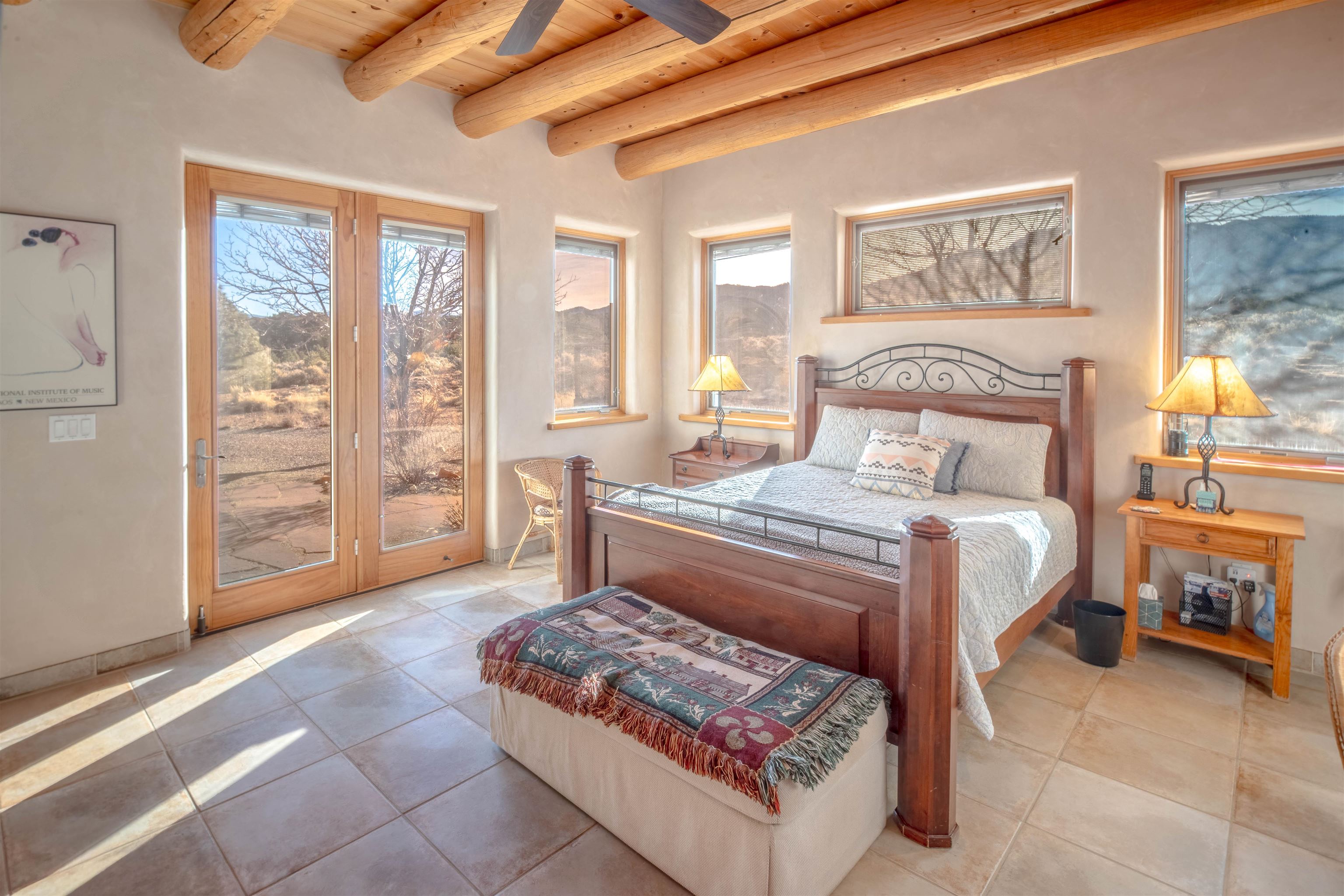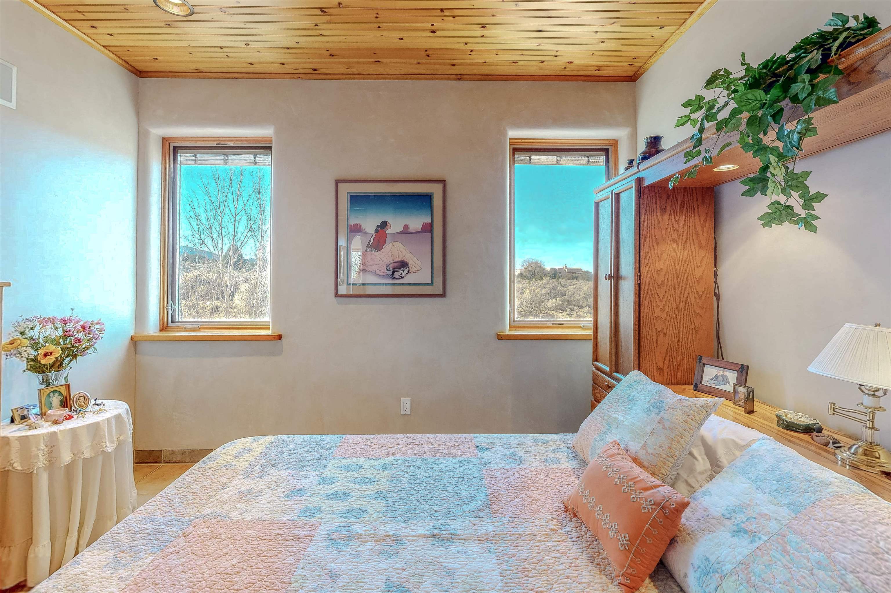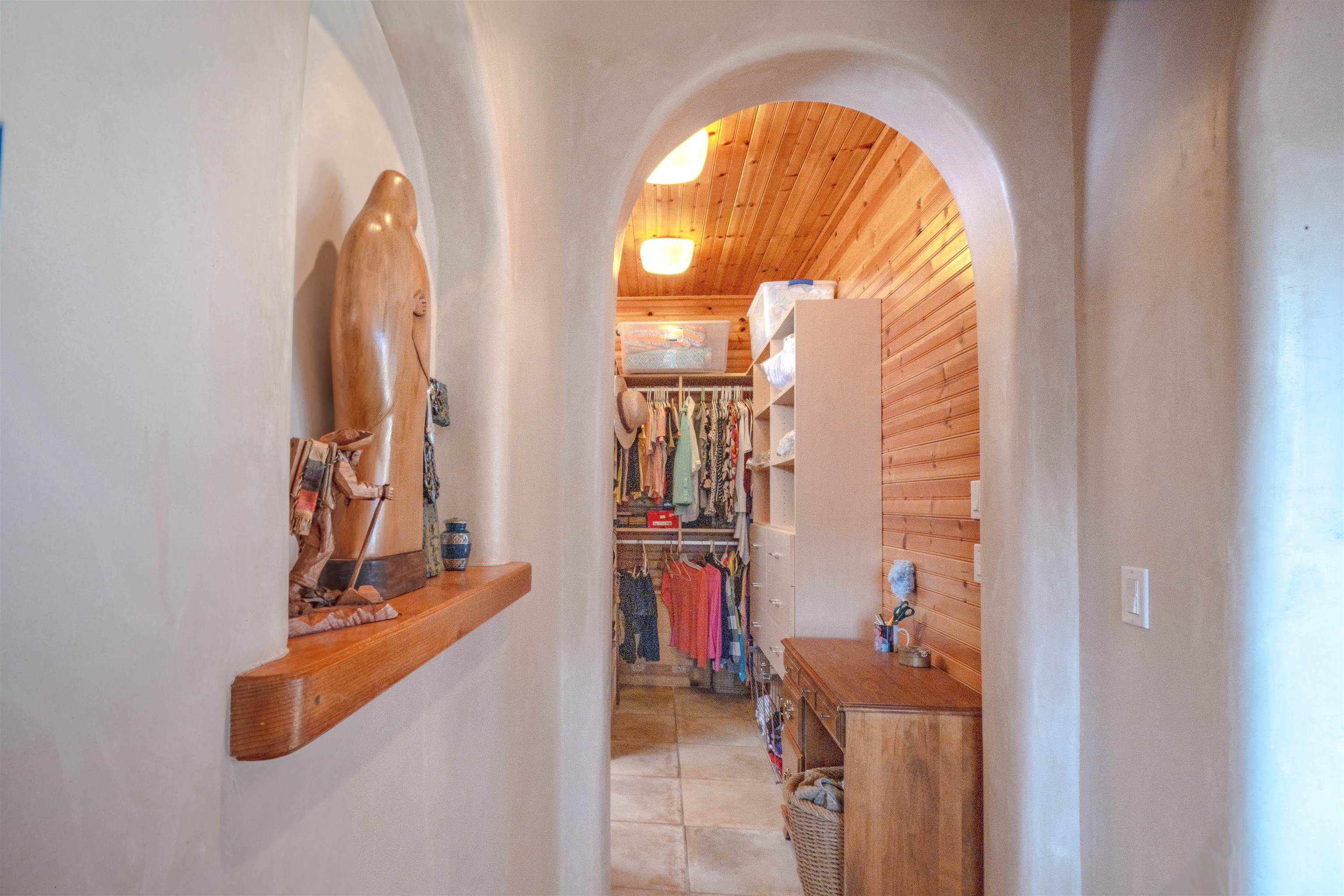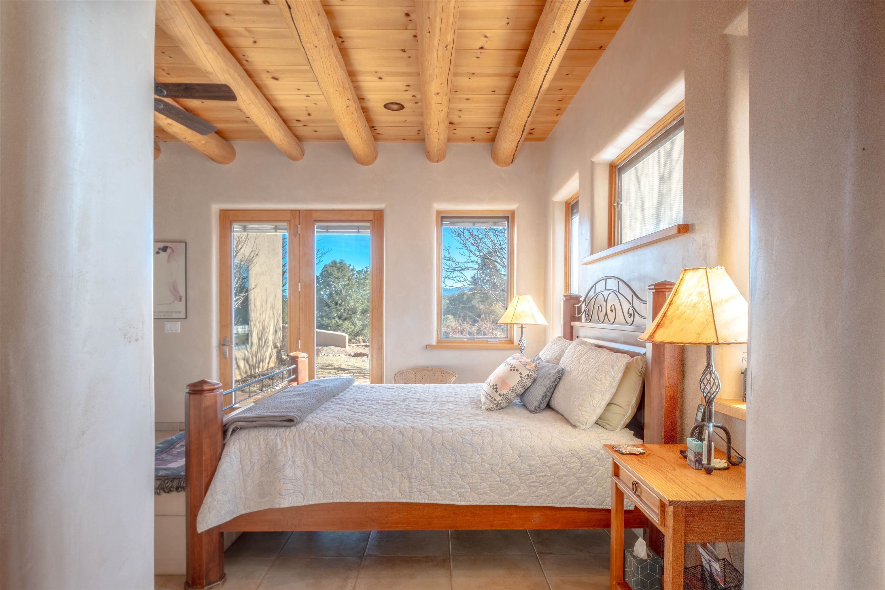 Introducing La Esencia de El Mirador, a home designed for the essence of entertaining: sharing life, good food, and spectacular views. Located in the peaceful county setting of Ranchos de Taos in the exclusive El Mirador subdivision, La Esencia de El Mirador is an exceptional single-level residence offering approximately 2,600 square feet of refined living space, masterfully crafted by respected builder Ken Wolosin - known for his quality construction and meticulous attention to detail. A private security gate welcomes you onto the property, immediately setting the tone for the thoughtful design, elevated finishes, and enduring craftsmanship found throughout. Inside, the open-concept floor plan lives effortlessly with no interior steps, elegant porcelain stone floors, and radiant in-floor heating that extends into the expansive 779 sq ft heated garage with storage areas. The inviting living room is anchored by a cozy fireplace and framed by Pella triple-pane R-4 windows, filling the home with natural light while delivering outstanding energy efficiency and serene comfort. Pella doors and windows are featured throughout, with enclosed blinds for additional insulation, and reinforcing the home's commitment to quality and performance. The chef's kitchen is a true gathering space, thoughtfully designed for both daily living and entertaining. Viking appliances - including a gas cooktop with hood and double electric wall ovens - are complemented by stone countertops, a dedicated coffee counter, and a well-planned pantry area complete with a wine fridge and microwave. A separate wine closet adds an extra layer of sophistication and convenience rarely found at this level. The primary suite offers a private retreat, featuring a custom California walk-in closet and a luxurious spa-inspired bathroom with an oversized soaking tub and bidet. Two additional bedrooms and a beautifully appointed full guest bath provide comfort and flexibility for family and guests alike. Additional upgrades enhance both form and function, including a Bry fire-resistant roof, ceiling fans in every room, and a security system installed during construction. The spacious utility room includes a deep sink, cabinetry, ample storage, and a gas dryer. The radiant-heated garage is fully finished and exceptionally well-equipped, offering a workbench, wall organizers, a storage room, and a dedicated mechanical room - ideal for projects, hobbies, or outdoor gear. The roof is a flat roof with a 1/2" per every foot slope instead of the standard 1/4" per foot slope, allowing for the rain to spew out of the canales feeding all the Aspen trees and wildflowers. The home was also built with 2" of foil faced styrofoam insulation on the exterior and beneath the plaster creating an R40 insulation thickness value. The current owner is the original owner of this home and was heavily involved in its construction and has kept meticulous maintenance records for the entire 18 years. The home is also being sold mostly furnished. Set on 11.93 quiet, open acres, La Esencia de El Mirador offers remarkable privacy, sweeping views, and space to savor the surrounding landscape - an increasingly rare opportunity in today's market. With superior craftsmanship, a thoughtfully designed layout, and high-end finishes throughout, this is a home created to be experienced, shared, and enjoyed. This listing has very detailed exterior and interior videos for your viewing pleasure.