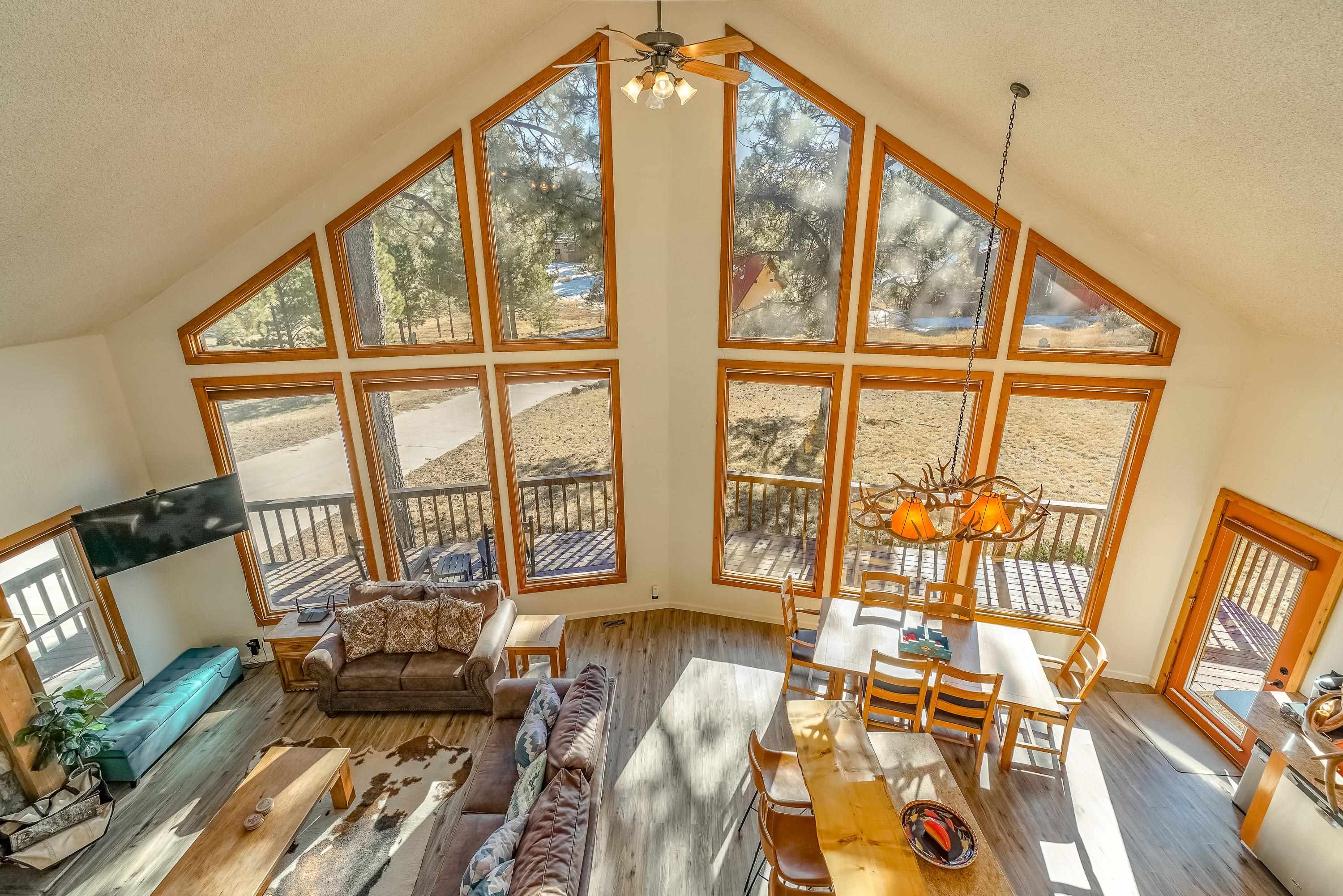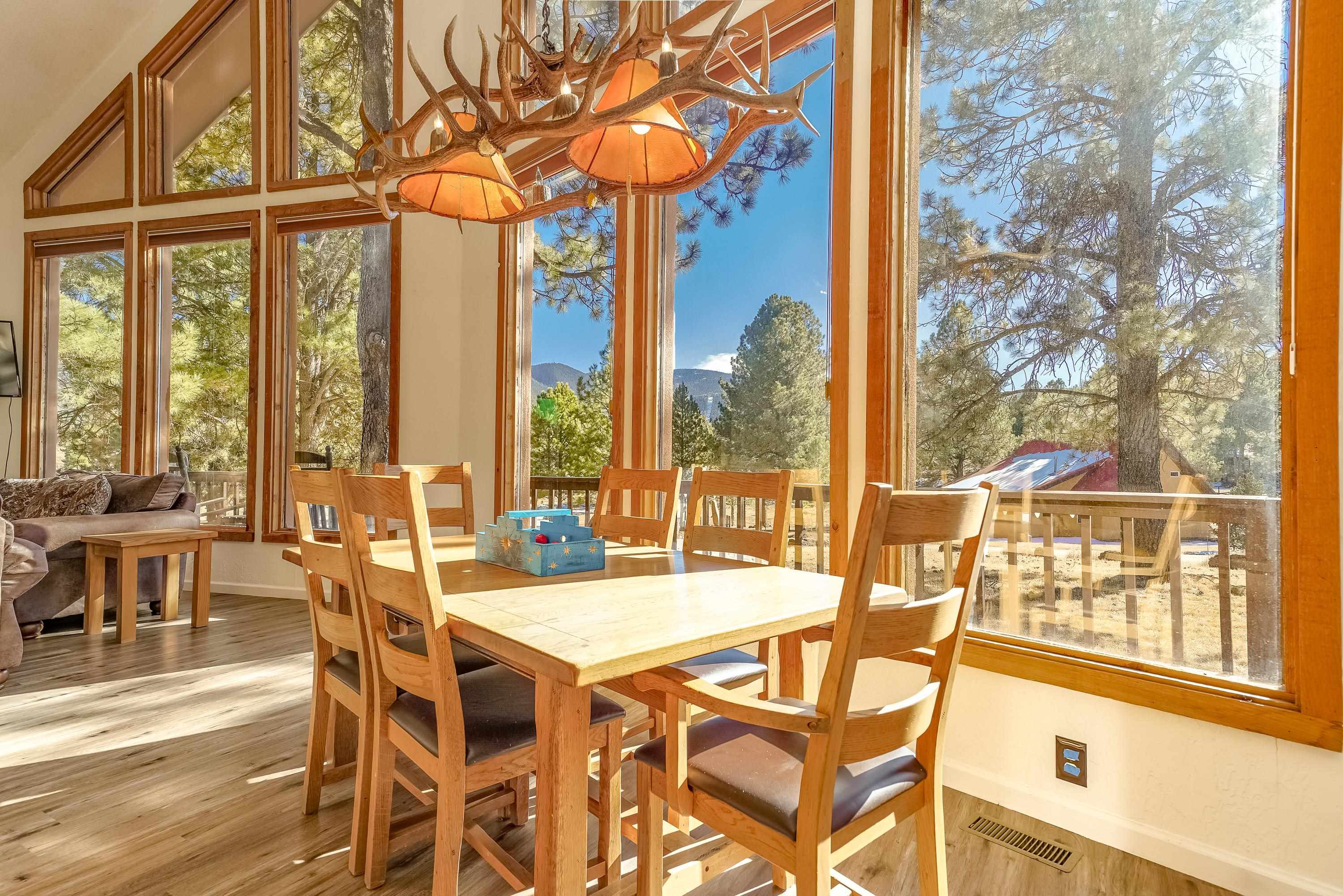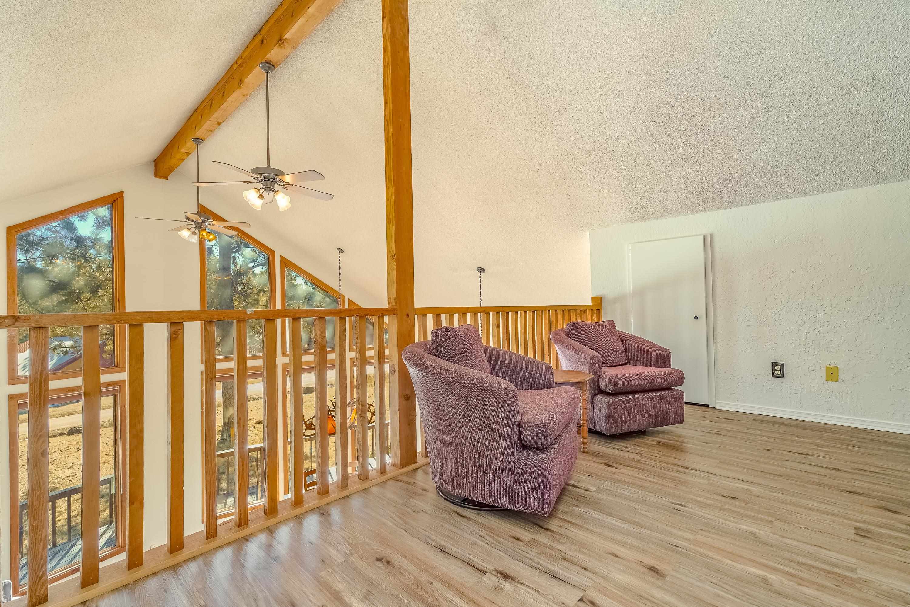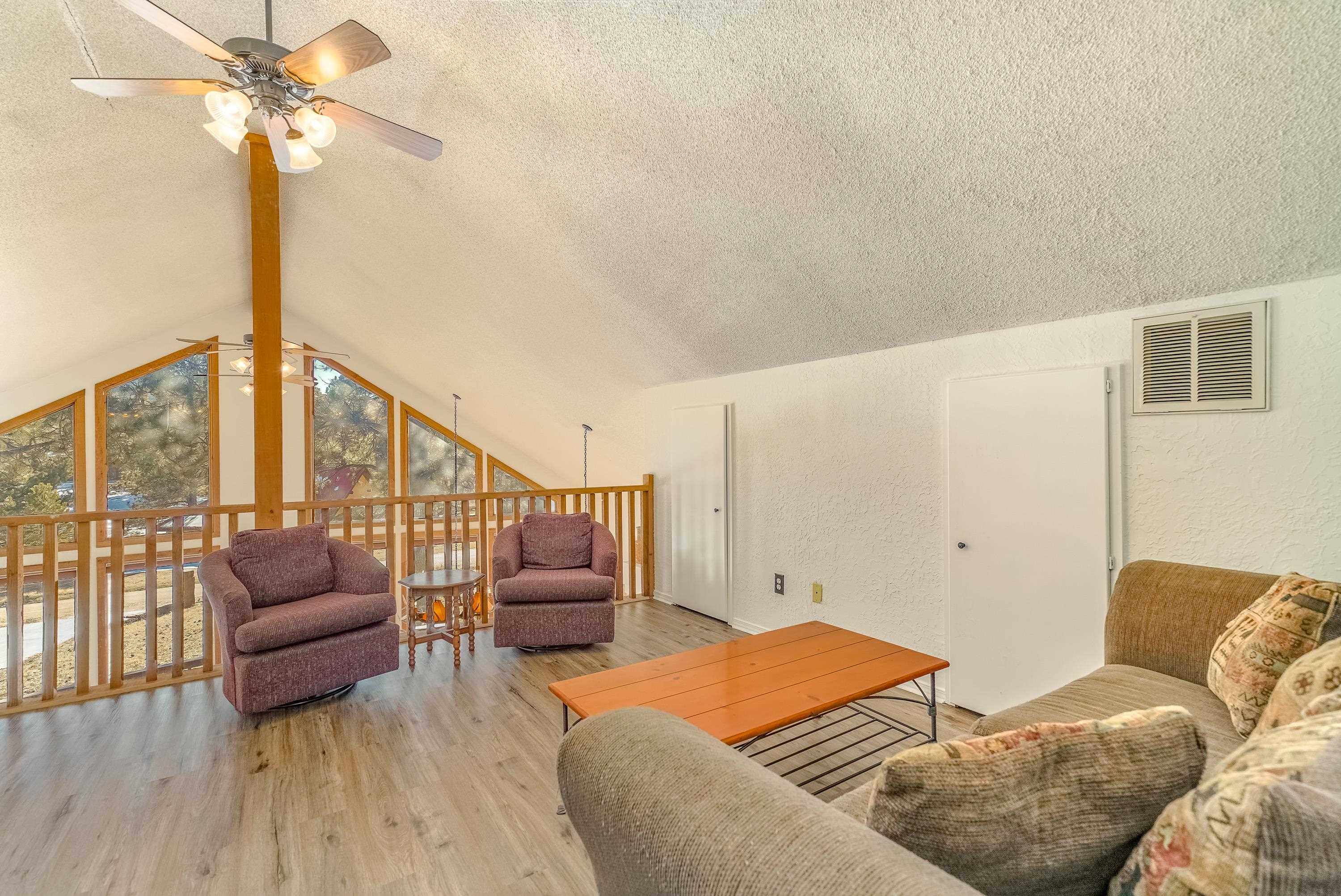Welcome to 20 Armijo Drive, an Angel Fire chalet in an unbeatable location, just minutes from the grocery store, coffee shop, and local hiking trails. Set on a lovely 0.55-acre lot, this inviting mountain home offers ski area views, a functional layout, and plenty of space for family and friends to spread out comfortably. Step inside to a large mudroom entry, perfect for dropping coats and gear after a day on the slopes. The main living area features vaulted ceilings and oversized windows that bring in beautiful natural light, flowing into an open kitchen and dining space ideal for gatherings. Expansive deck space gives you plenty of space to relax outside - whether you're chasing sunshine or cooling off in the shade, there's a spot for every mood. The main-level primary suite makes for easy living, along with an additional guest bedroom, full guest bath, and laundry on the same floor. Upstairs, you'll find a spacious loft (great for extra sleeping space or a cozy hangout area), plus another bedroom and bath. A private back deck adds the perfect place for quiet morning coffee or winding down after a day of adventure. With an attached 2-car garage, concrete driveway, and easy year-round access, this home is a fantastic fit as a full-time residence, vacation getaway, or potential rental in the heart of Angel Fire.