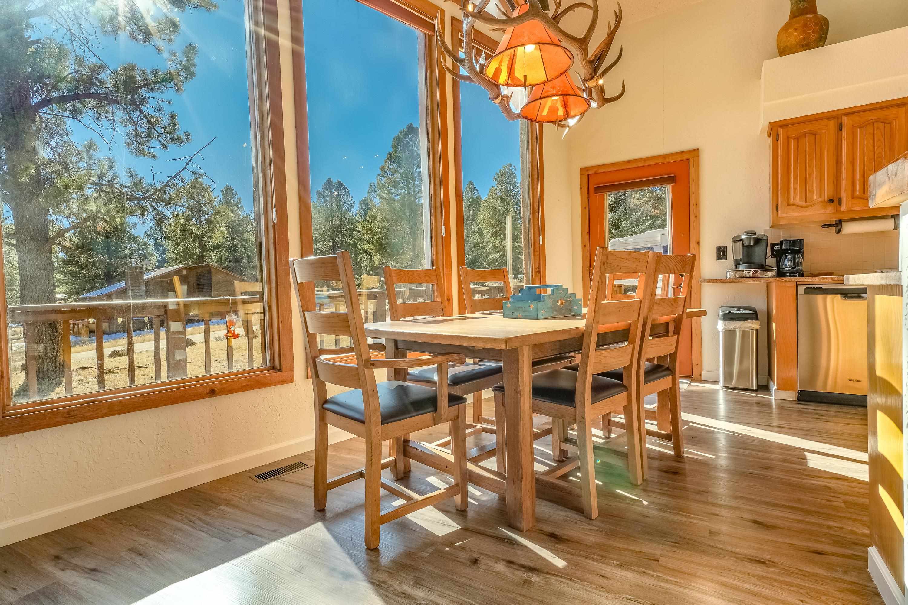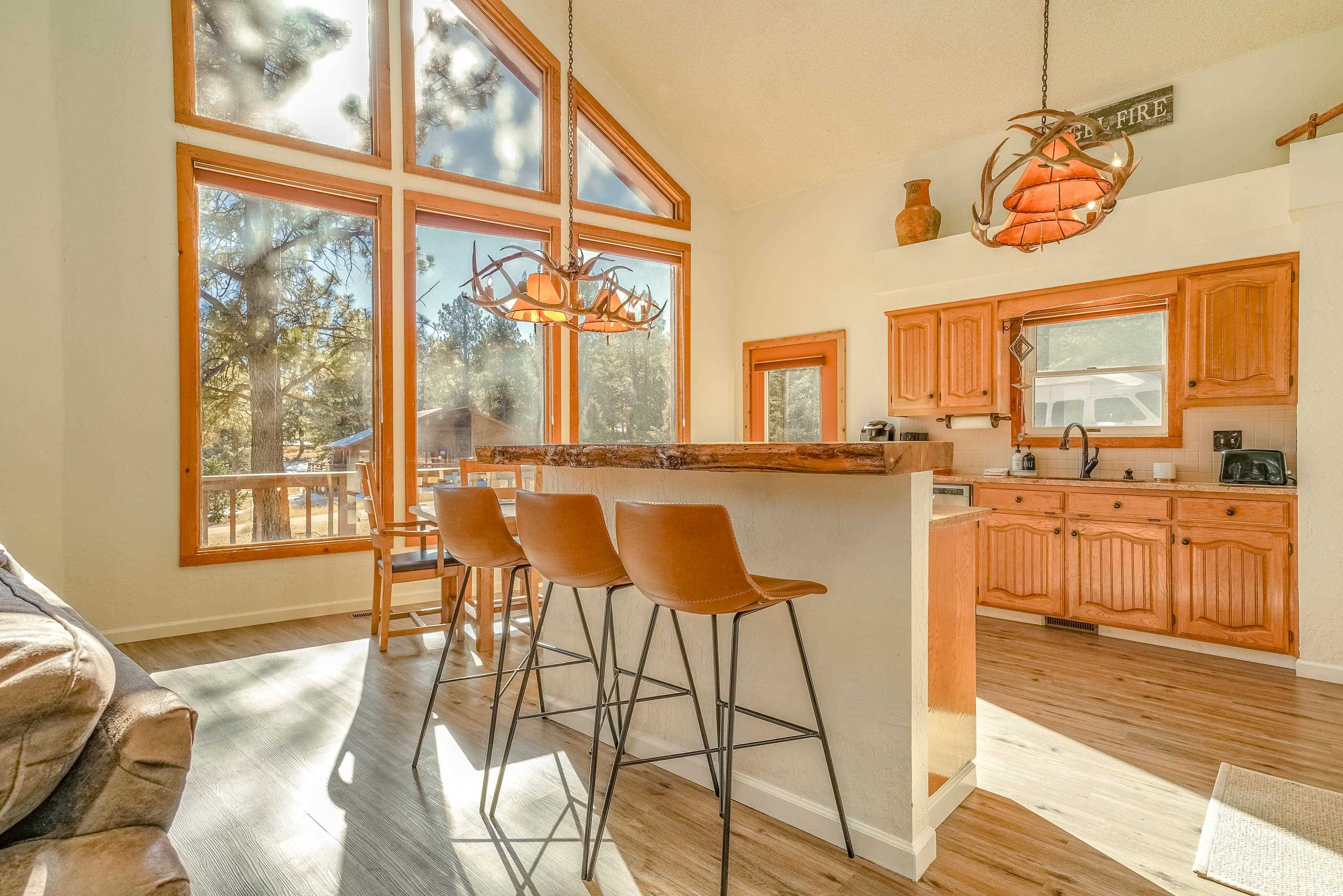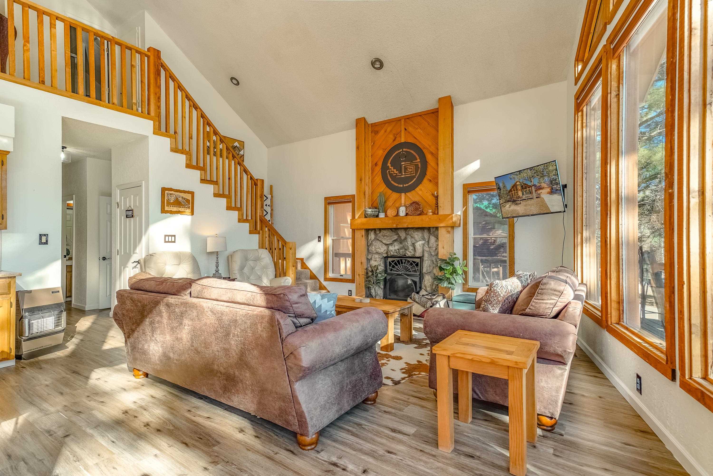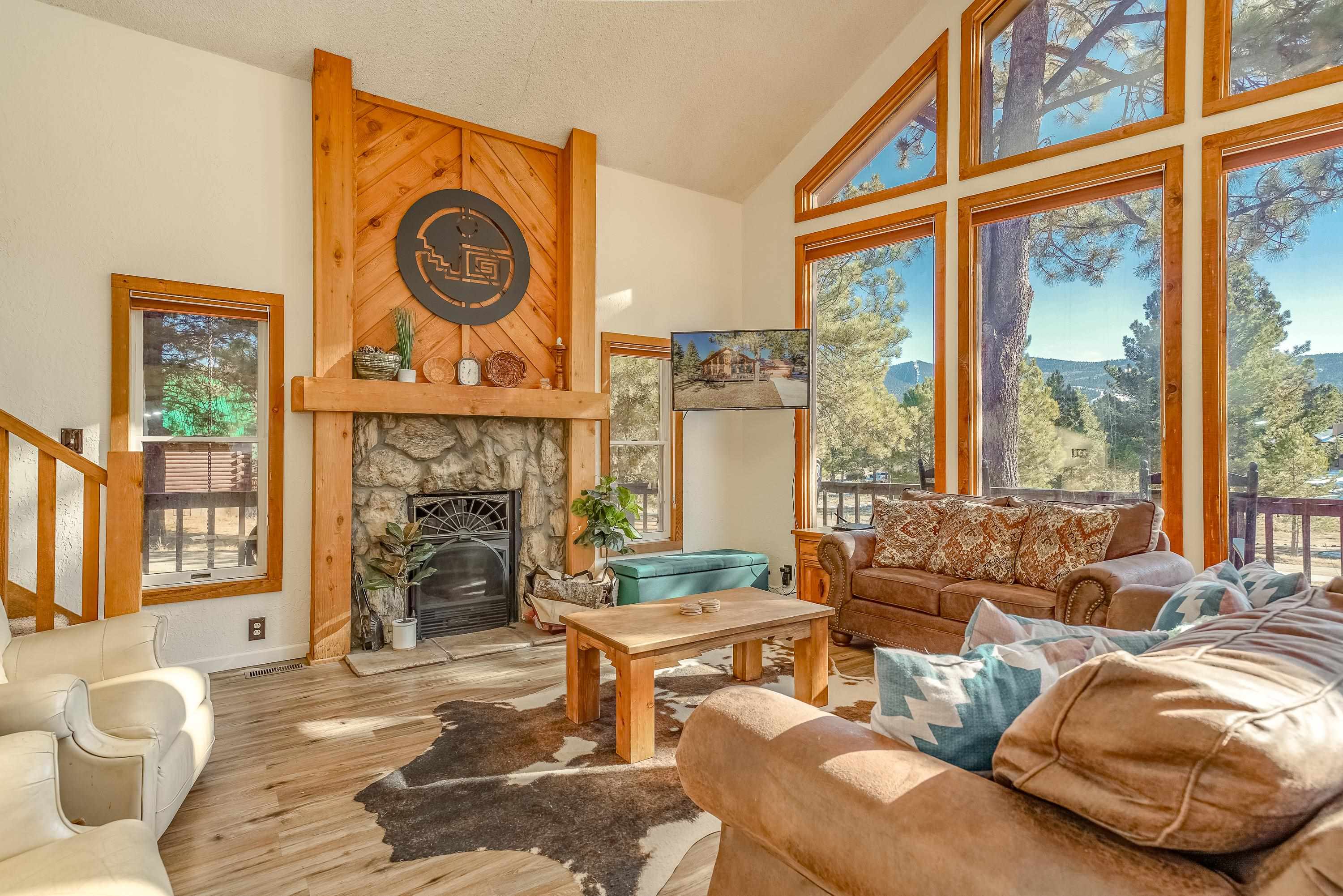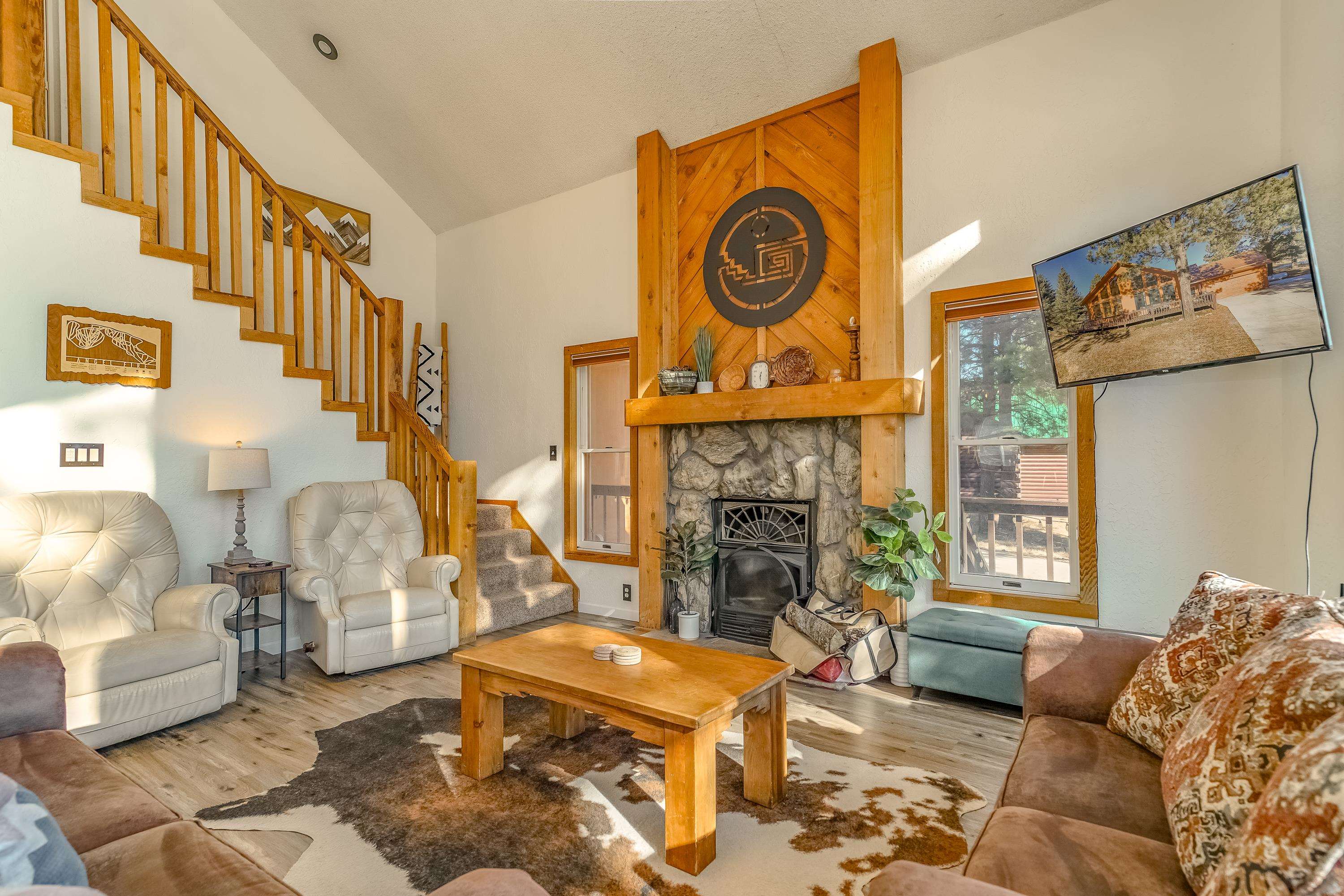 Welcome to 20 Armijo Drive, an Angel Fire chalet in an unbeatable location, just minutes from the grocery store, coffee shop, and local hiking trails. Set on a lovely 0.55-acre lot, this inviting mountain home offers ski area views, a functional layout, and plenty of space for family and friends to spread out comfortably. Step inside to a large mudroom entry, perfect for dropping coats and gear after a day on the slopes. The main living area features vaulted ceilings and oversized windows that bring in beautiful natural light, flowing into an open kitchen and dining space ideal for gatherings. Expansive deck space gives you plenty of space to relax outside - whether you're chasing sunshine or cooling off in the shade, there's a spot for every mood. The main-level primary suite makes for easy living, along with an additional guest bedroom, full guest bath, and laundry on the same floor. Upstairs, you'll find a spacious loft (great for extra sleeping space or a cozy hangout area), plus another bedroom and bath. A private back deck adds the perfect place for quiet morning coffee or winding down after a day of adventure. With an attached 2-car garage, concrete driveway, and easy year-round access, this home is a fantastic fit as a full-time residence, vacation getaway, or potential rental in the heart of Angel Fire.