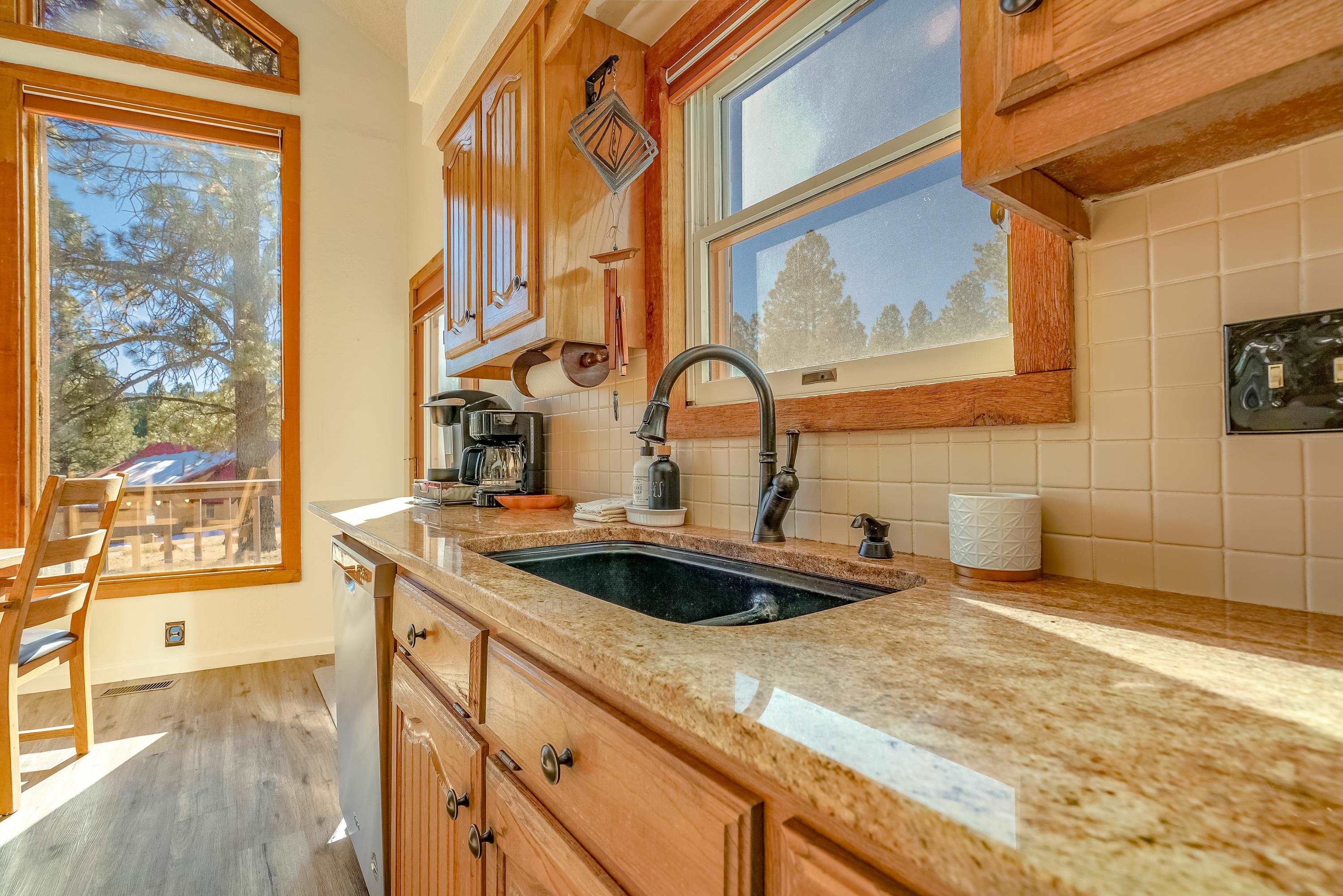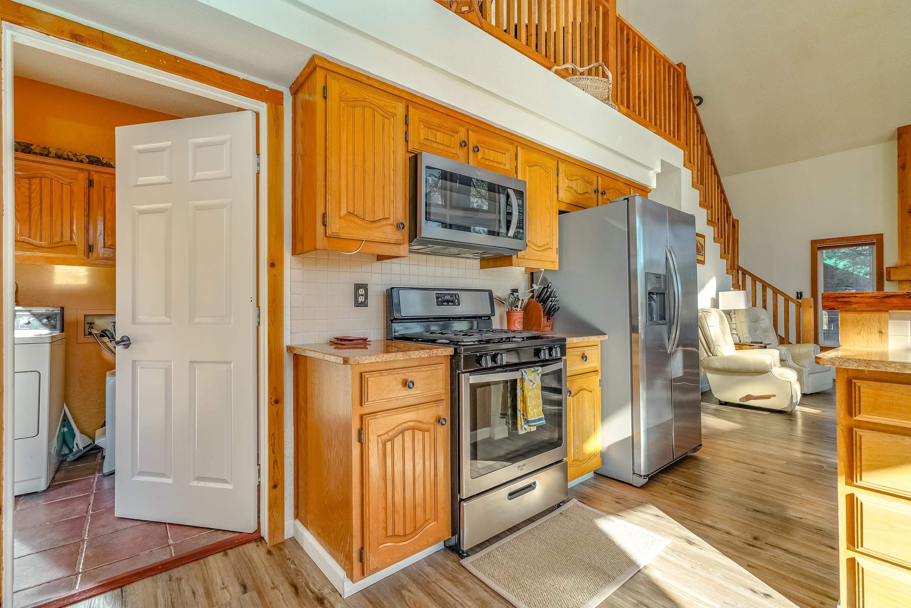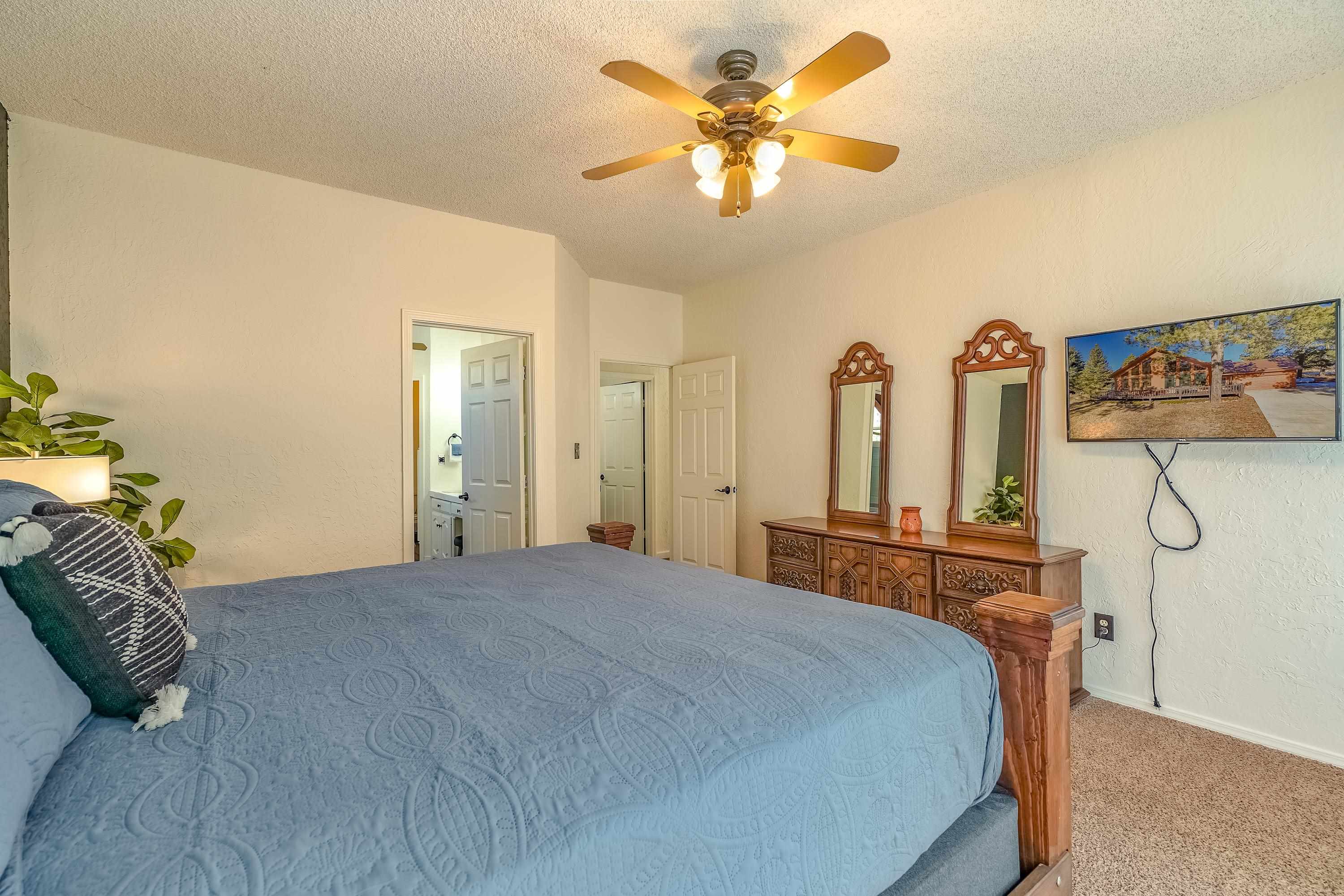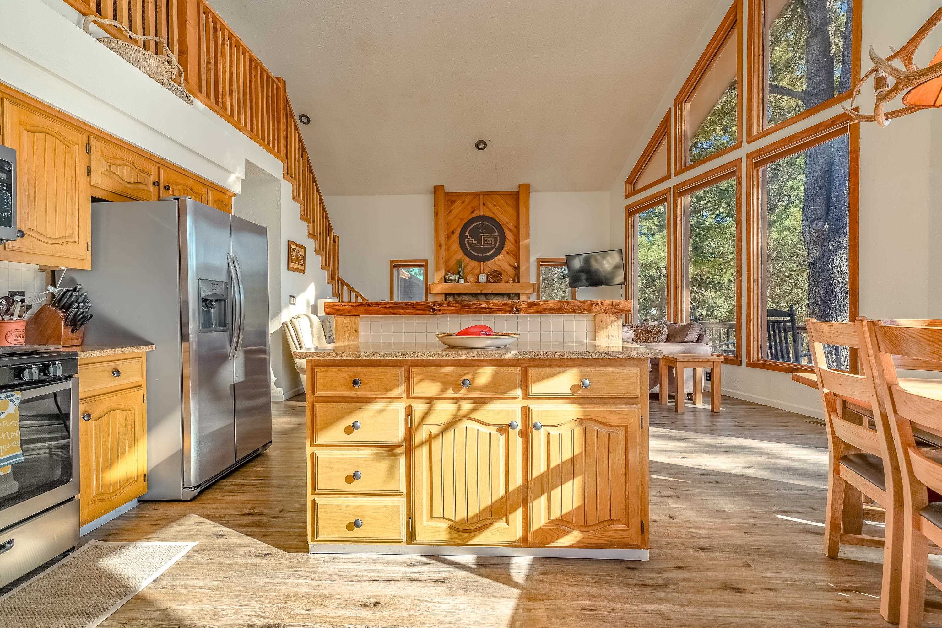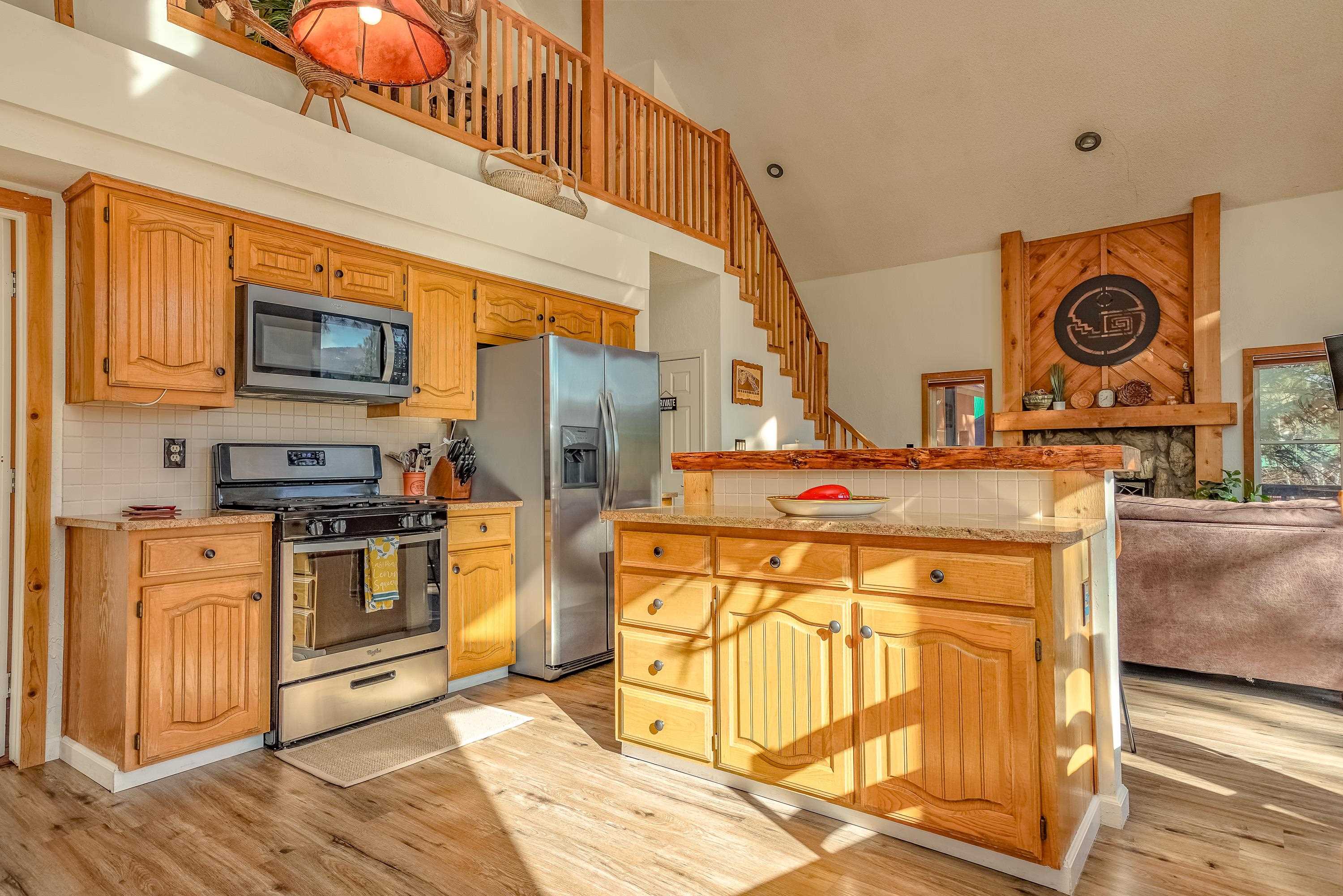 Welcome to 20 Armijo Drive, an Angel Fire chalet in an unbeatable location, just minutes from the grocery store, coffee shop, and local hiking trails. Set on a lovely 0.55-acre lot, this inviting mountain home offers ski area views, a functional layout, and plenty of space for family and friends to spread out comfortably. Step inside to a large mudroom entry, perfect for dropping coats and gear after a day on the slopes. The main living area features vaulted ceilings and oversized windows that bring in beautiful natural light, flowing into an open kitchen and dining space ideal for gatherings. Expansive deck space gives you plenty of space to relax outside - whether you're chasing sunshine or cooling off in the shade, there's a spot for every mood. The main-level primary suite makes for easy living, along with an additional guest bedroom, full guest bath, and laundry on the same floor. Upstairs, you'll find a spacious loft (great for extra sleeping space or a cozy hangout area), plus another bedroom and bath. A private back deck adds the perfect place for quiet morning coffee or winding down after a day of adventure. With an attached 2-car garage, concrete driveway, and easy year-round access, this home is a fantastic fit as a full-time residence, vacation getaway, or potential rental in the heart of Angel Fire.