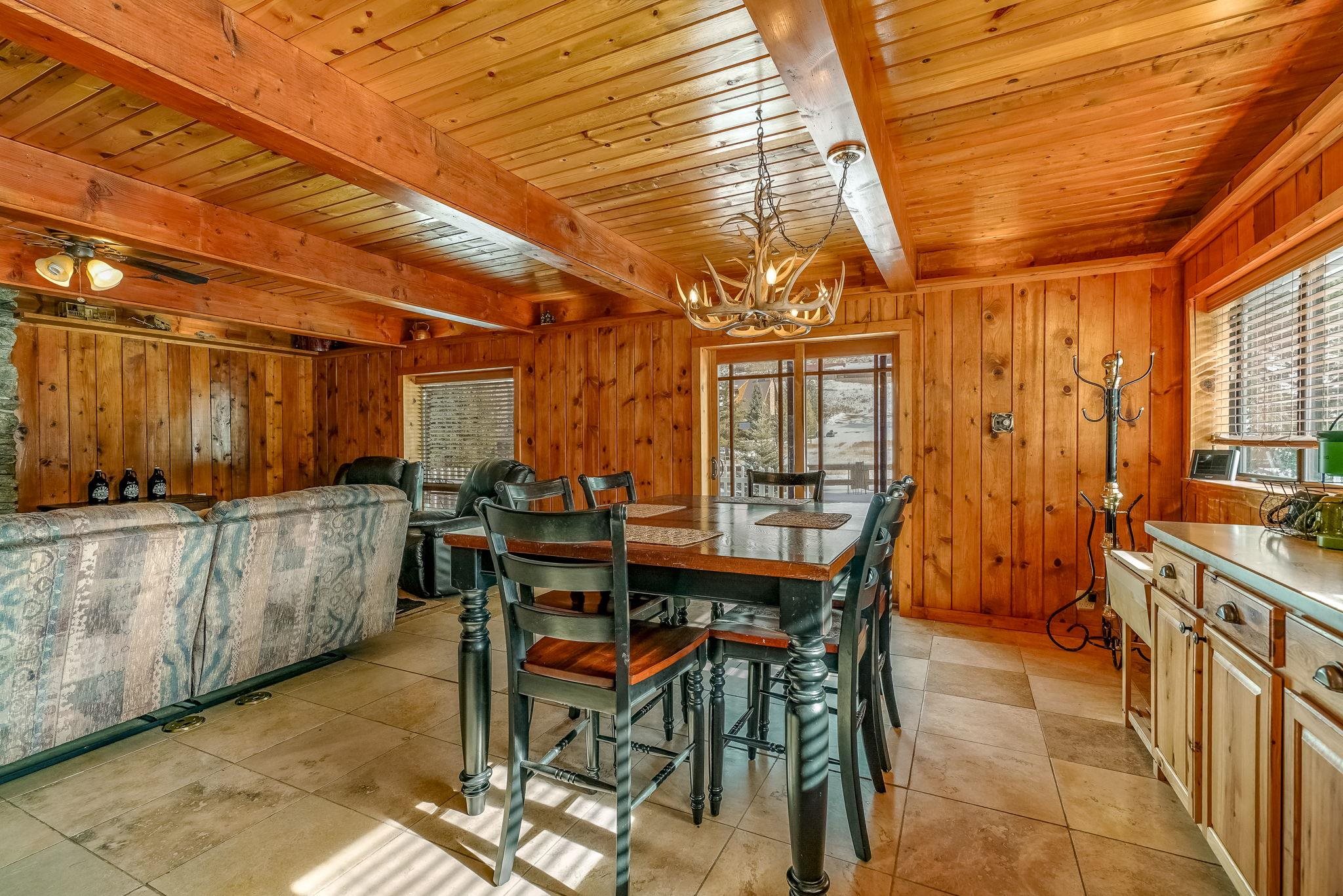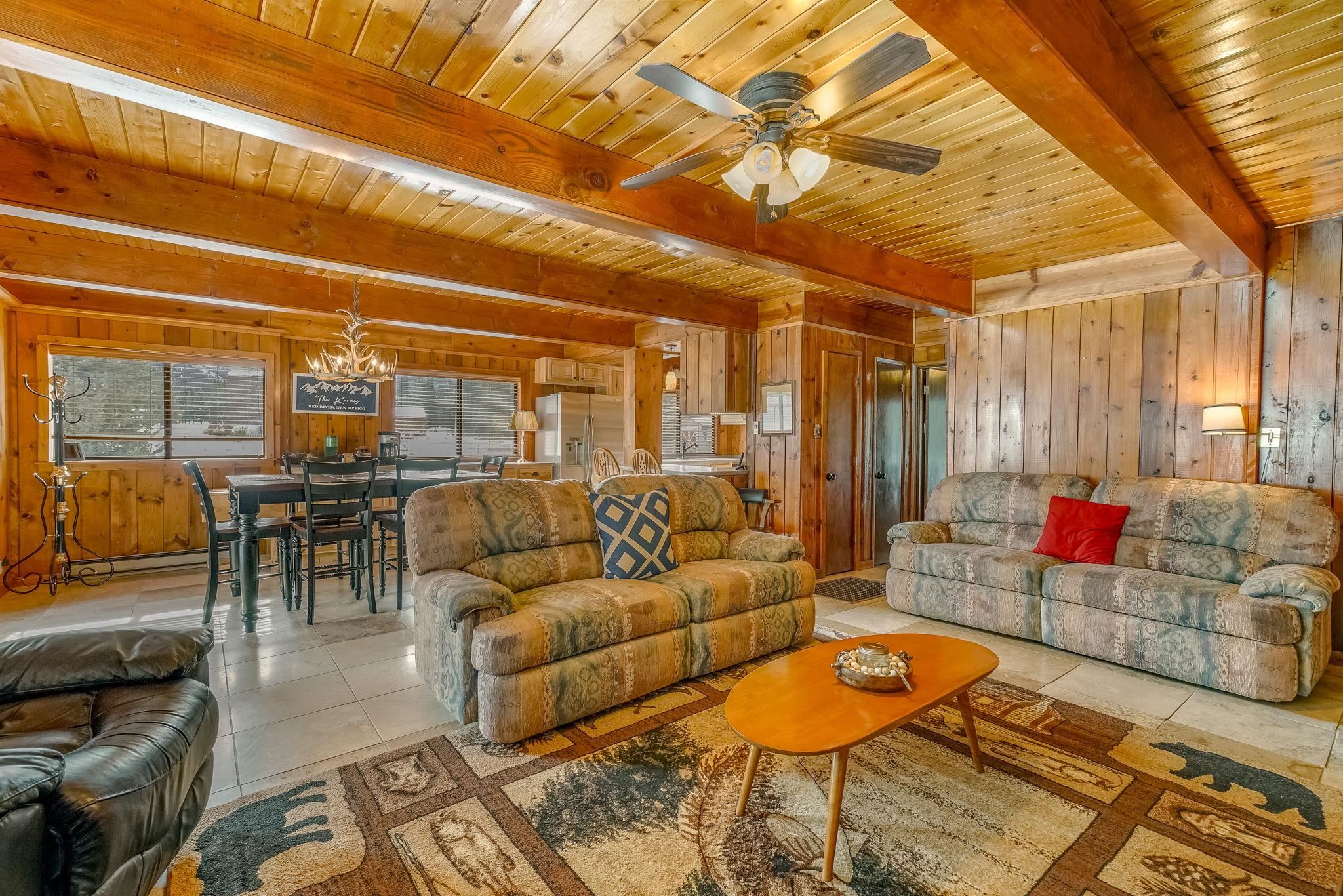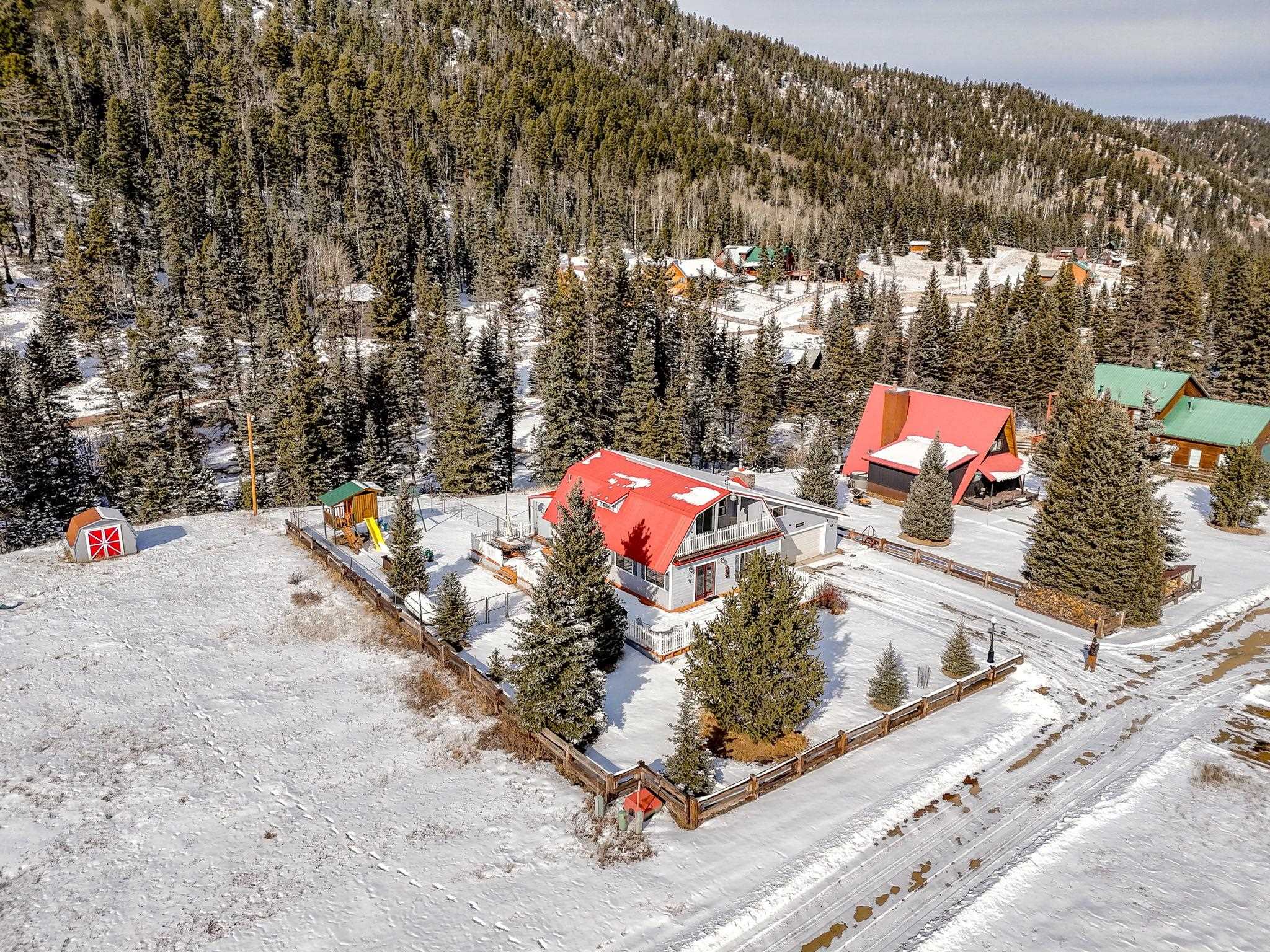 Riverfront living in Red River's Upper Valley is a rare find, and this home offers a setting that is genuinely special. Situated directly along the Red River, the property is shaped by its surroundings. The home spans two largely flat lots, offering rare outdoor usability and flexibility for future expansion. Covered porches, a wraparound deck, and fenced outdoor areas extend the living space and invite time outside. From the upper grounds, wooden steps lead down to the river, where towering evergreens and a riverside firepit create a distinctly different setting for time spent in nature. The home features warm wood interiors, exposed beams, and a comfortable, well-proportioned layout designed for connection and ease. A fireplace anchors the living space, creating a natural gathering place after a day outdoors. The kitchen and dining areas are open and functional. The four bedrooms plus a bonus room are thoughtfully arranged for privacy and flexibility. Located a short drive from town, this property offers a rural setting without sacrificing convenience for skiing, dining, shopping, and year-round recreation. Short-term rentals are permitted in this area. 14 Canyon Valley Rd is offered mostly furnished and equipped.