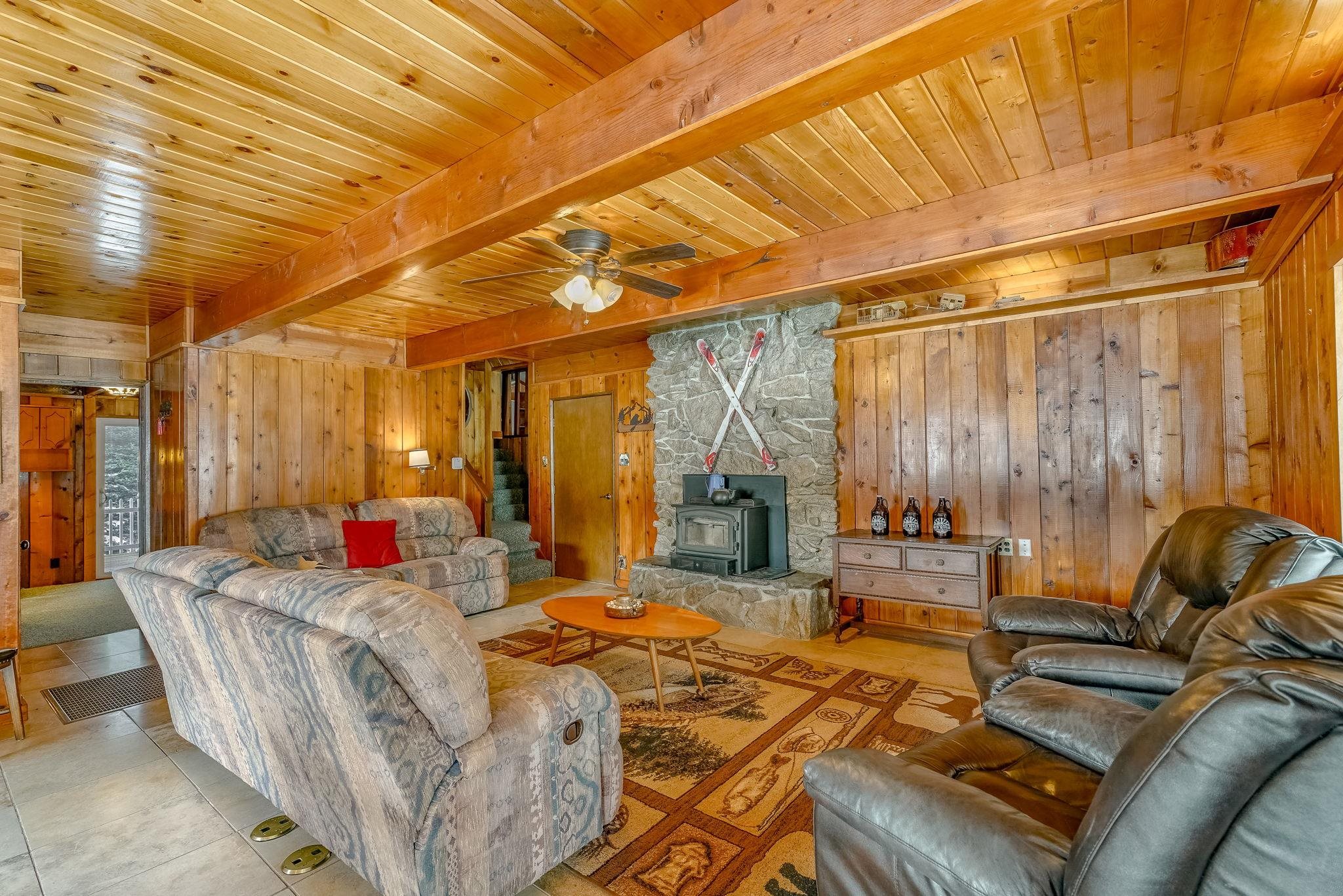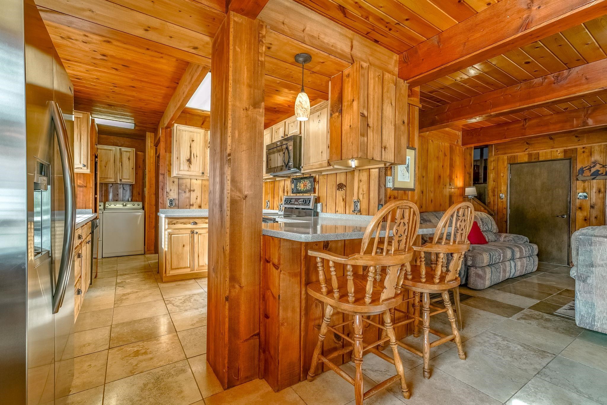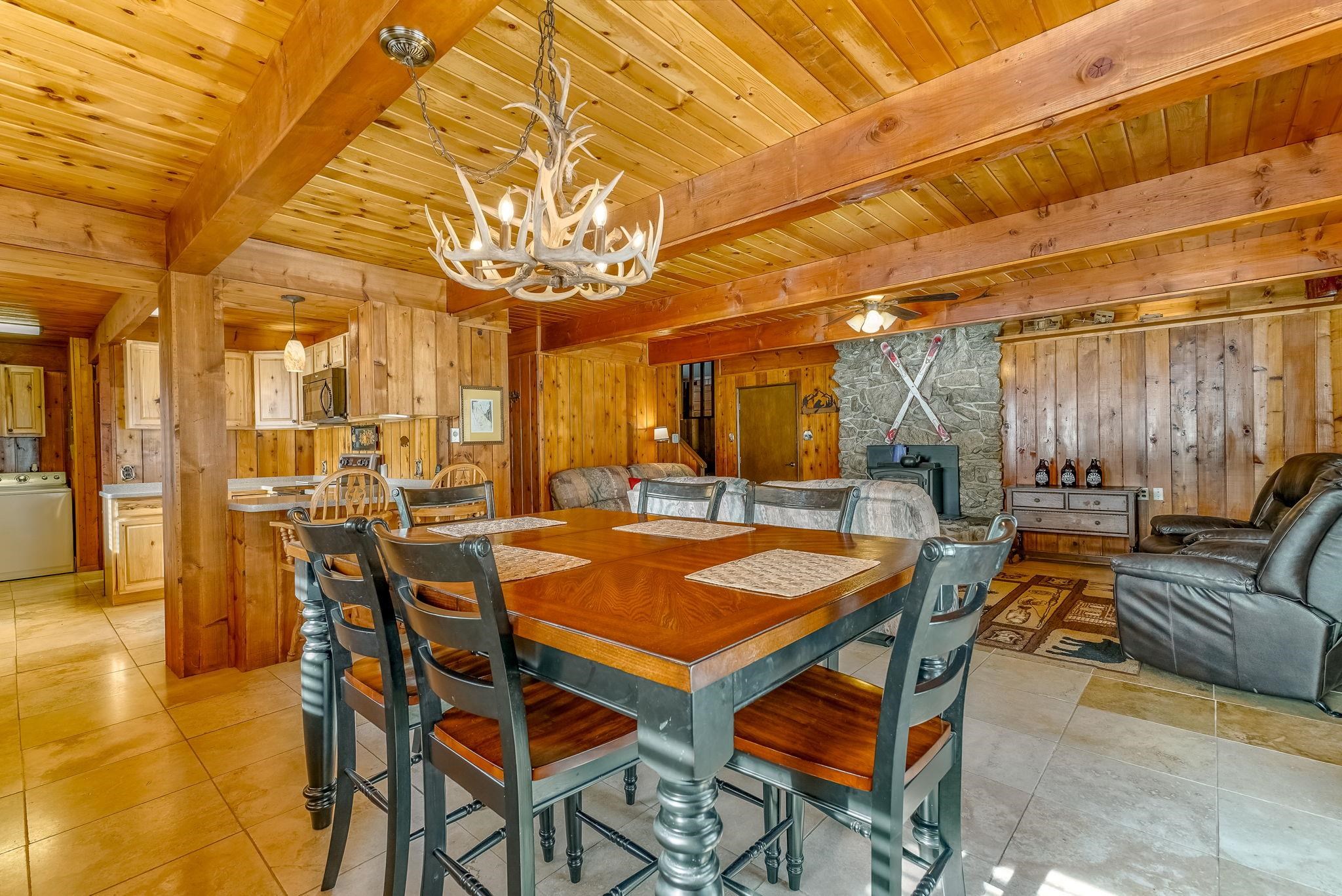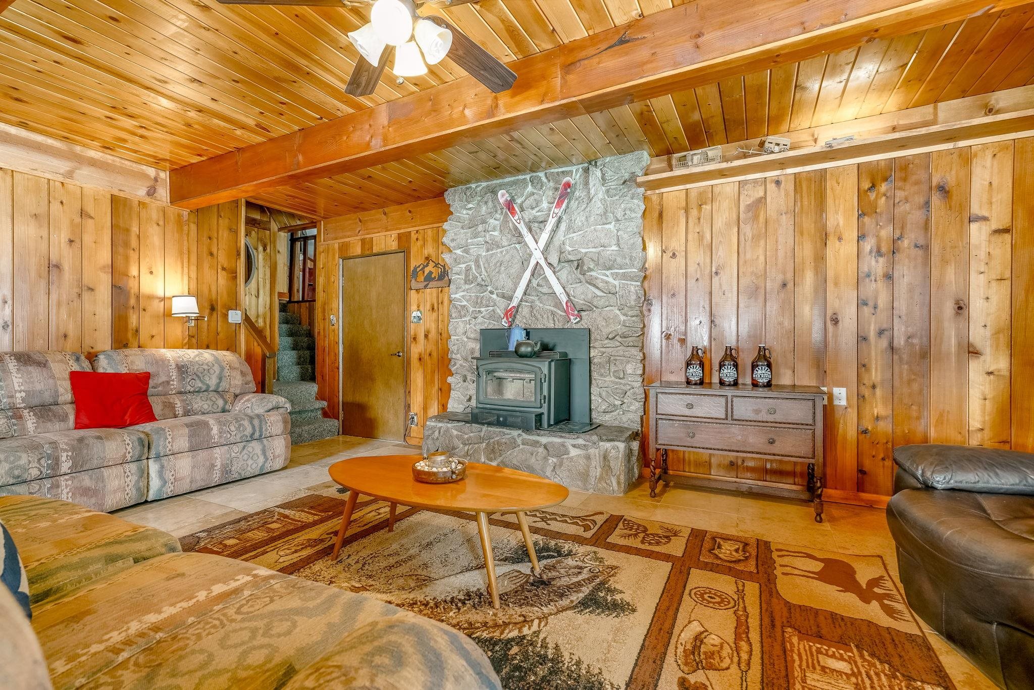 Riverfront living in Red River's Upper Valley is a rare find, and this home offers a setting that is genuinely special. Situated directly along the Red River, the property is shaped by its surroundings. The home spans two largely flat lots, offering rare outdoor usability and flexibility for future expansion. Covered porches, a wraparound deck, and fenced outdoor areas extend the living space and invite time outside. From the upper grounds, wooden steps lead down to the river, where towering evergreens and a riverside firepit create a distinctly different setting for time spent in nature. The home features warm wood interiors, exposed beams, and a comfortable, well-proportioned layout designed for connection and ease. A fireplace anchors the living space, creating a natural gathering place after a day outdoors. The kitchen and dining areas are open and functional. The four bedrooms plus a bonus room are thoughtfully arranged for privacy and flexibility. Located a short drive from town, this property offers a rural setting without sacrificing convenience for skiing, dining, shopping, and year-round recreation. Short-term rentals are permitted in this area. 14 Canyon Valley Rd is offered mostly furnished and equipped.