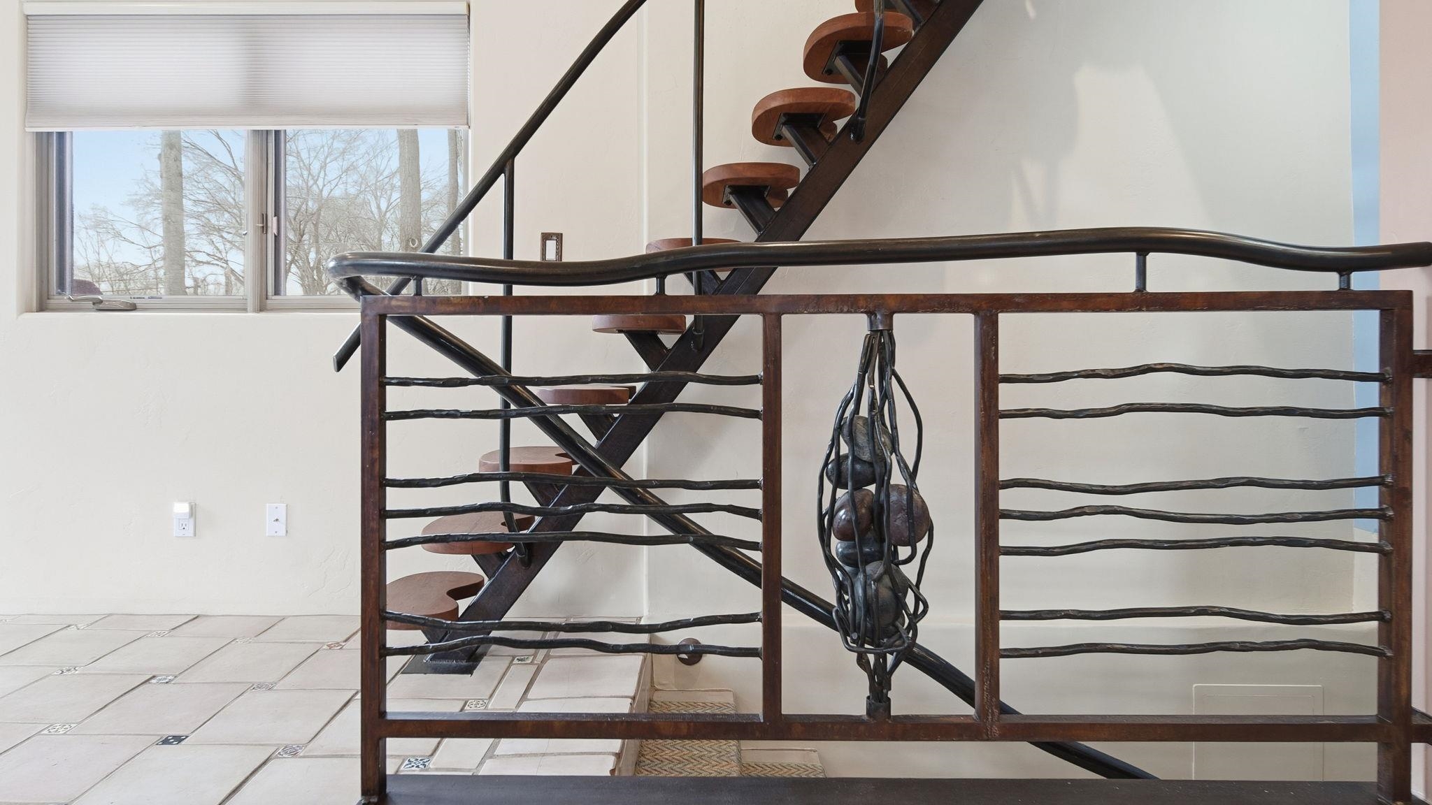 Custom Artistry and Living Water on Historic Burch~This 1,400-square-foot residence separates itself from the standard market through deep customization and intentional detail, functioning as a curated home rather than a typical condo. A vaulted great room with tile floors leads into a kitchen anchored by custom cabinetry, stainless steel appliances, and a striking copper-topped breakfast bar. The finishes are specific and tactile throughout: elaborate hand-carved window shutters control the light in the dining area, while the bathrooms serve as visual centerpieces featuring repurposed antique cabinetry, custom glass sinks, and extensive ceramic tile murals that envelop the shower and oversized tub areas. Beyond the wood-floored bedrooms, the floor plan maximizes utility, rising to a sunlit loft perfect for a workspace or yoga practice, and descending to a fully finished basement with a guest den, a lighted workshop, and massive storage capacity. This interior richness spills out onto a private raised deck and an adjacent lower flagstone courtyard, both cantilevered over the complex's signature pond and soothing fountain for a serene waterfront atmosphere. All of this is tucked away on tree-lined Historic Burch Street, just a half-mile stroll past historic adobe homes to the galleries and dining of Taos Plaza, with the world-class runs of Taos Ski Valley a scenic drive away. Don't let this one get away from you, and your dreams.