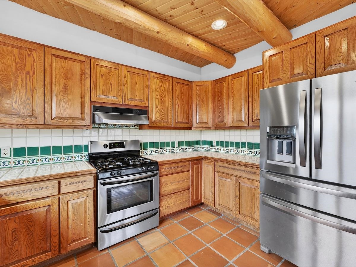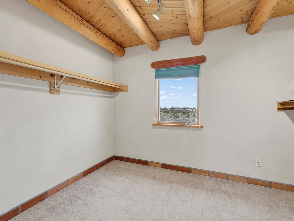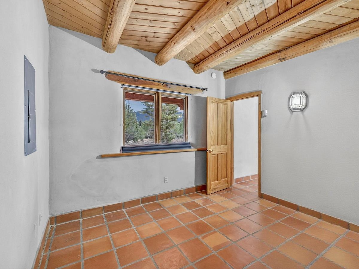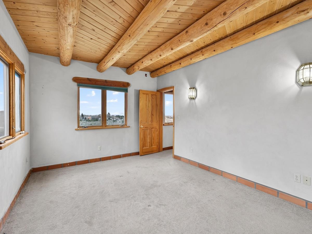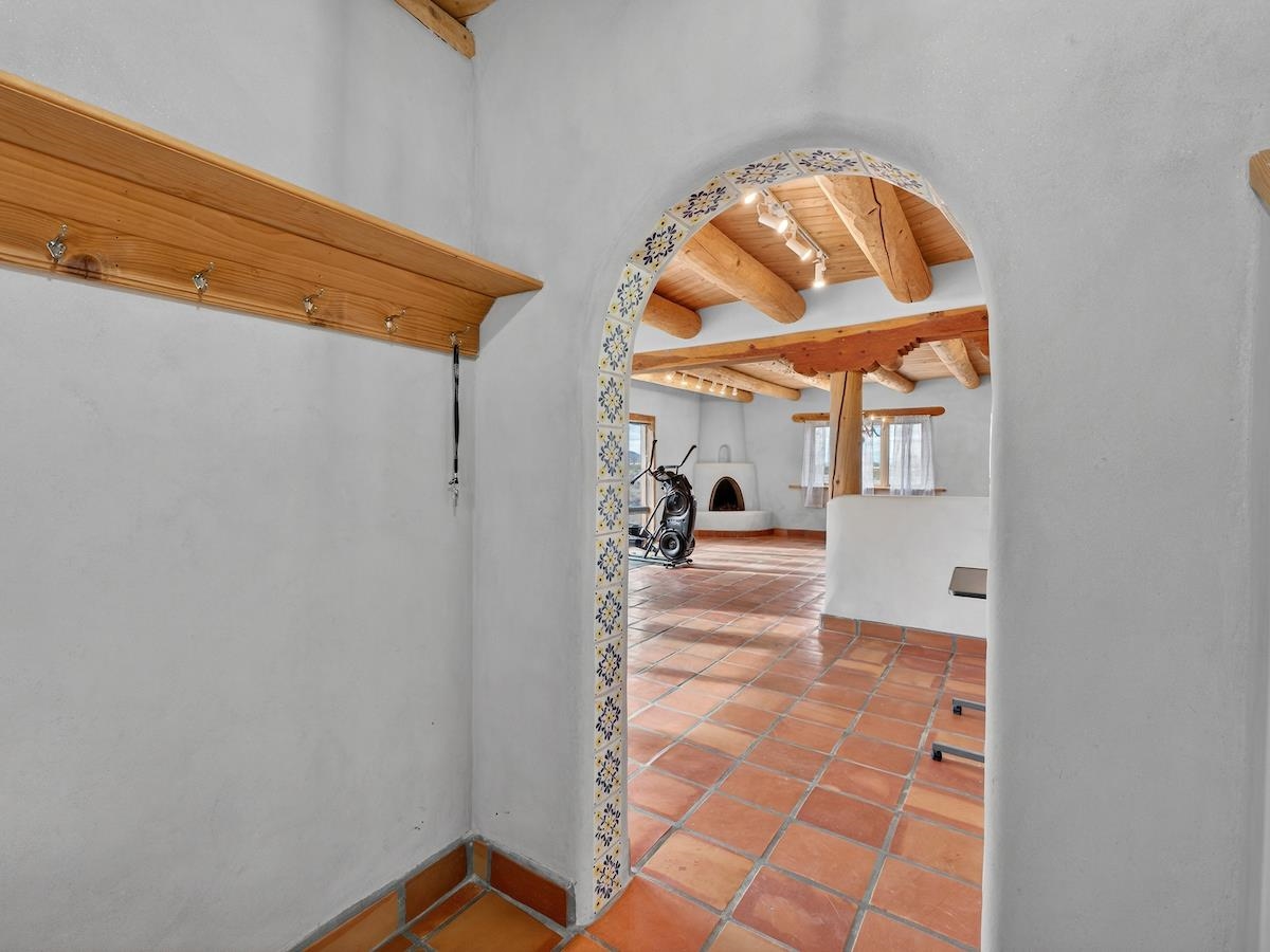 This Lovely two-story home in a truly exceptional Taos location. Just minutes from the historic town of Taos, with easy access to shopping, restaurants, museums, and culture--yet remarkably private, set on 3 peaceful acres with wonderful mountain views. This adobe and frame home blends classic Southwest character with modern comfort. Recent updates include new stucco and some new appliances. The property features a private well and El Valle sewer. A welcoming entryway opens into a bright, open floor plan filled with natural light from abundant windows that frame the surrounding landscape. The gourmet kitchen is ideal for cooking and entertaining, offering generous counter space, plentiful oak cabinetry, and a functional layout. Tile floors with in-floor radiant heating provide warmth and comfort throughout the main level. A nice downstairs bedroom adds flexibility for guests or office space. Upstairs, the primary bedroom is a private retreat with a large bath with a generous walk-in closet, lots of light, and access to a private deck--perfect for enjoying morning coffee or sunset views. A big front portal extends the living space outdoors and invites relaxation in every season. The property also includes a detached, well-built three-car garage with electricity, ideal for vehicles, storage, or workshop space. The combination of sweeping views, proximity to town, and a rare sense of privacy makes this a special home. An easy drive to world-famous Taos Ski Valley completes the appeal of this outstanding Taos property. Come and see this wonderful home soon.