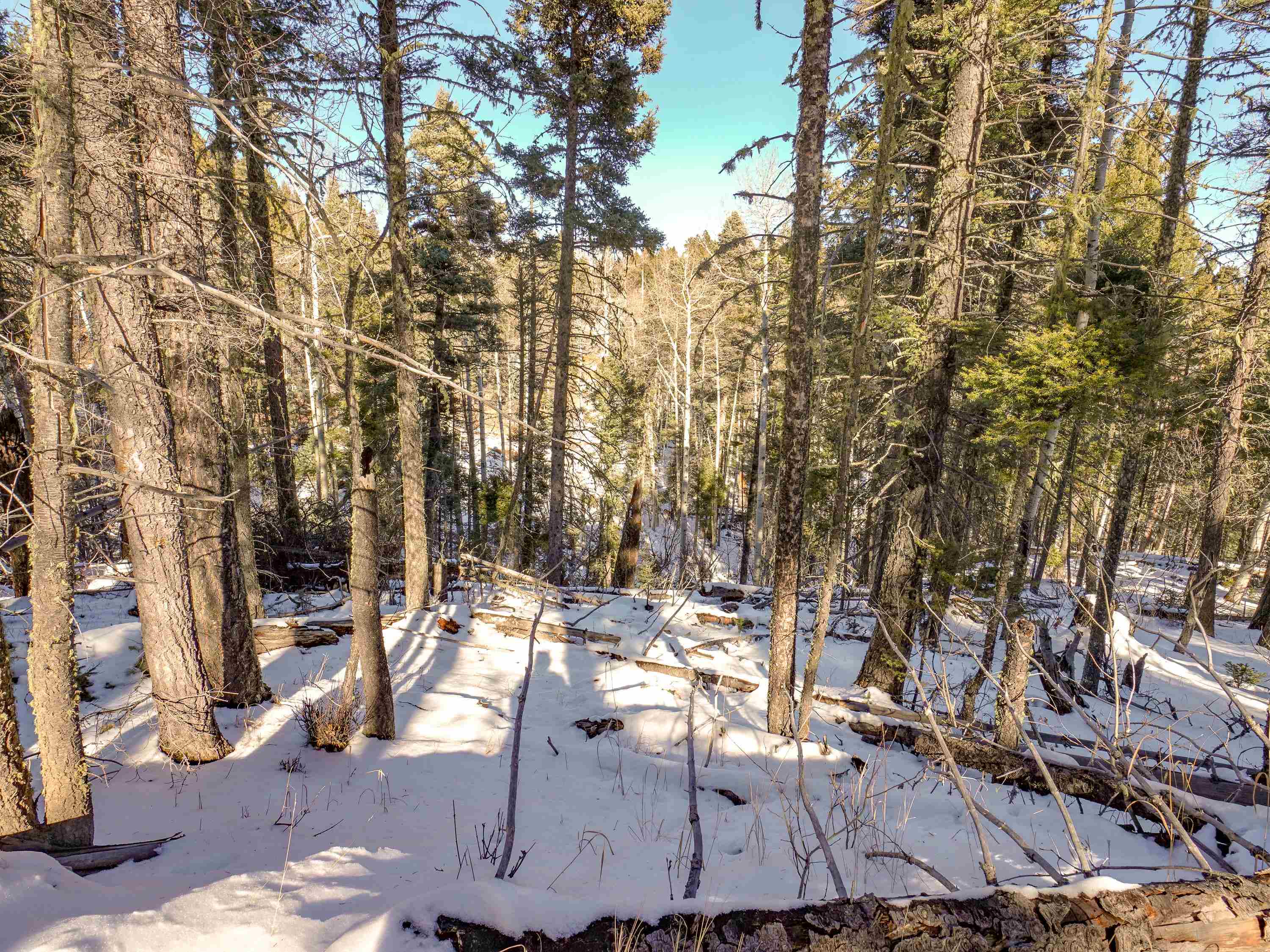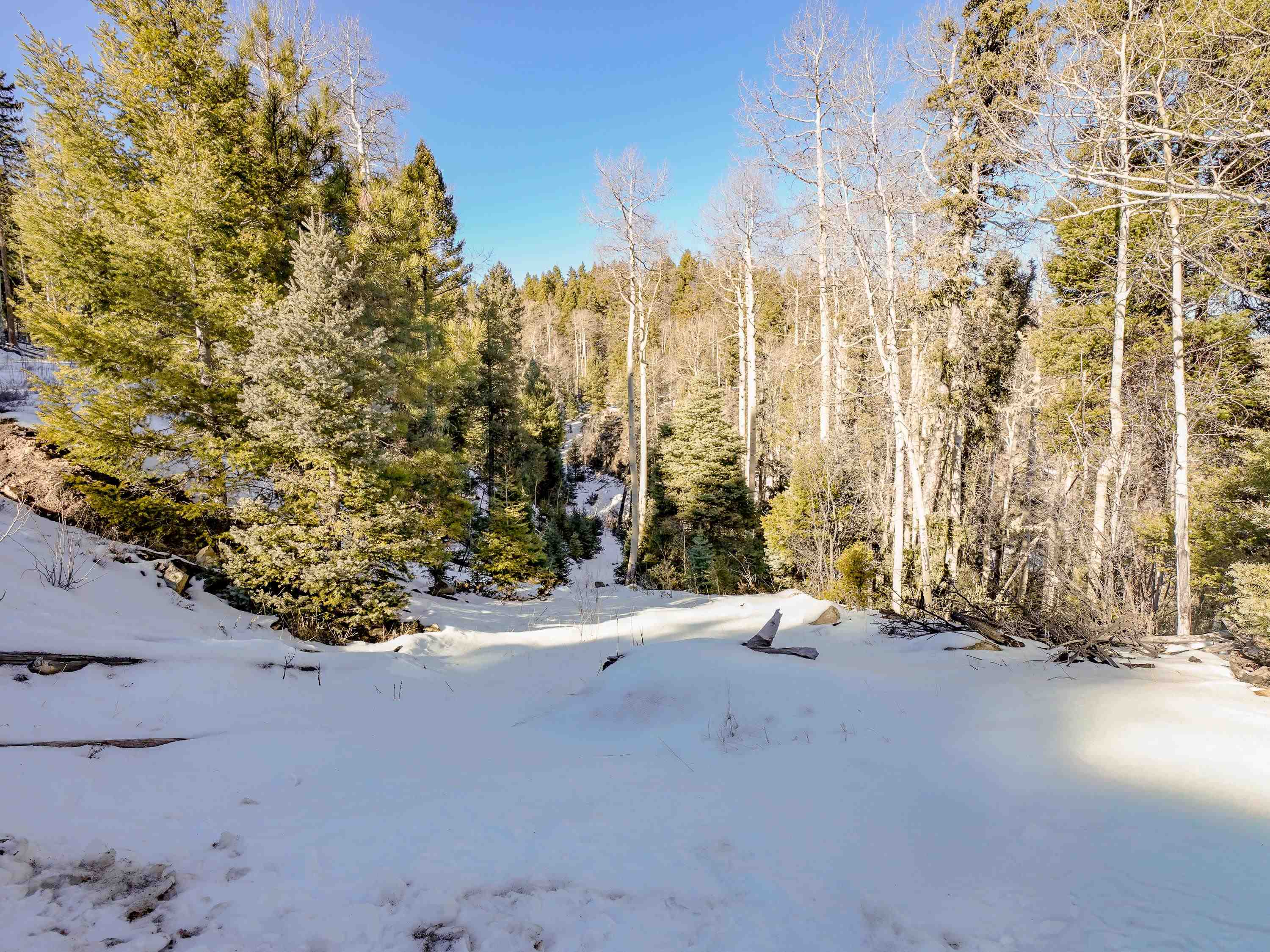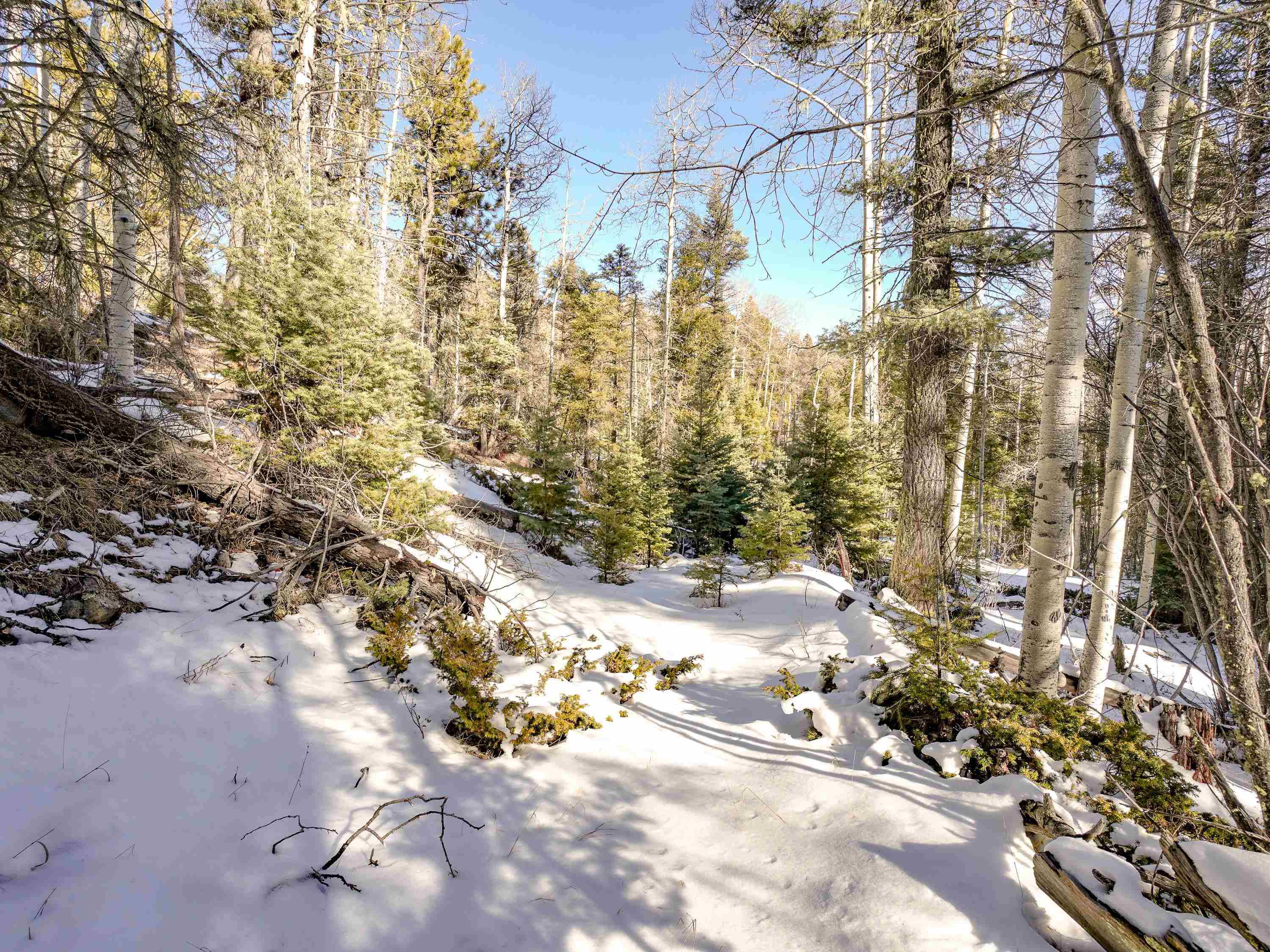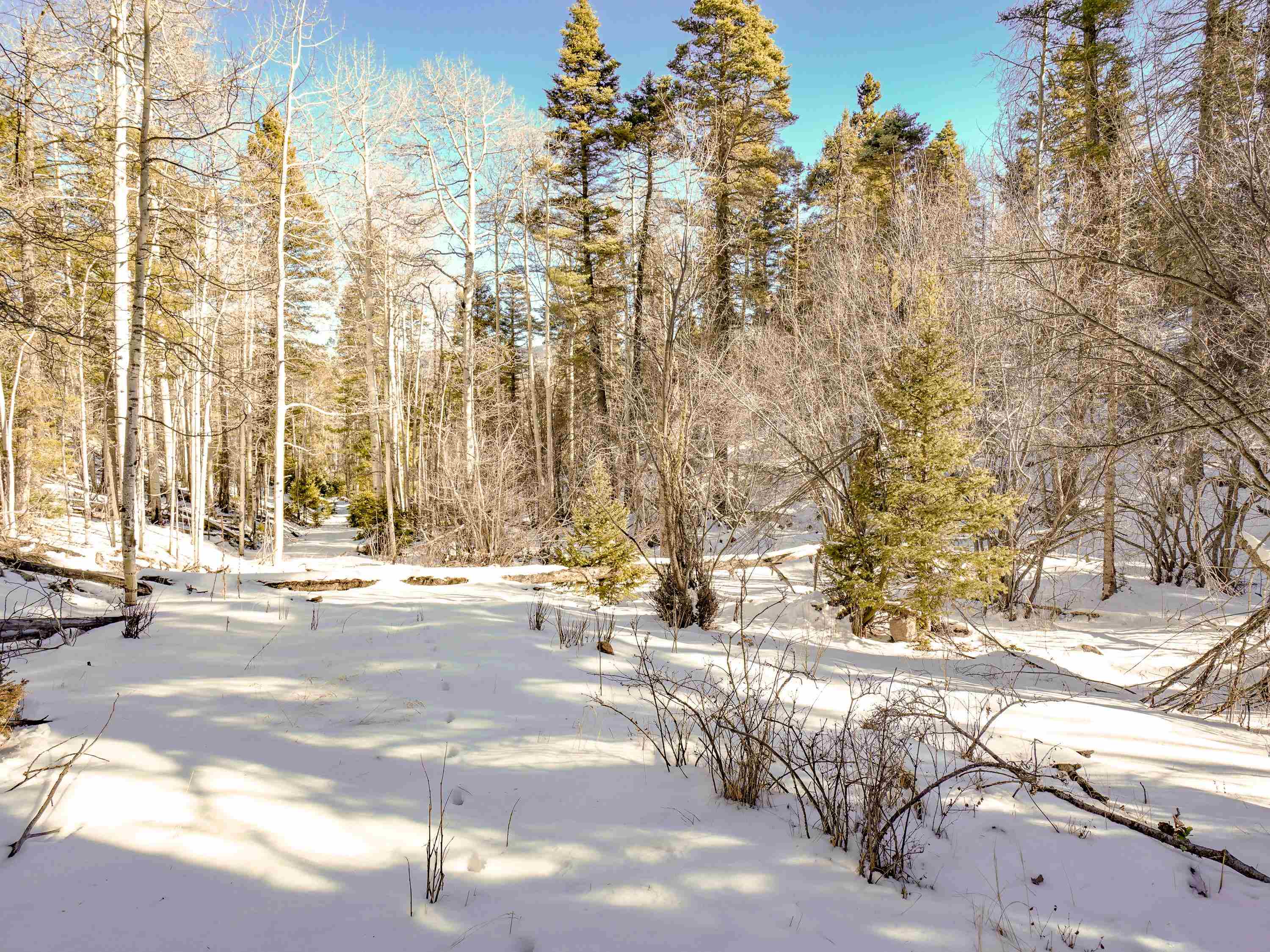Beautiful 9.68-acre single-family equestrian lot tucked at the end of a quiet cul-de-sac, offering the rare combination of privacy, aspens, and easy year-round access. This stunning parcel feels like you're deep in the mountains, with rugged terrain that includes a mature stand of aspens, a seasonal stream, and a dramatic cliff feature. The topography offers potential for a driveway and building site, with a view corridor across the valley and even a glimpse toward the ski area. Bordering greenbelt, the property feels exceptionally secluded, with room to create private trails and access to the Cougar Trail, yet still just an easy drive to all the amenities of Angel Fire.