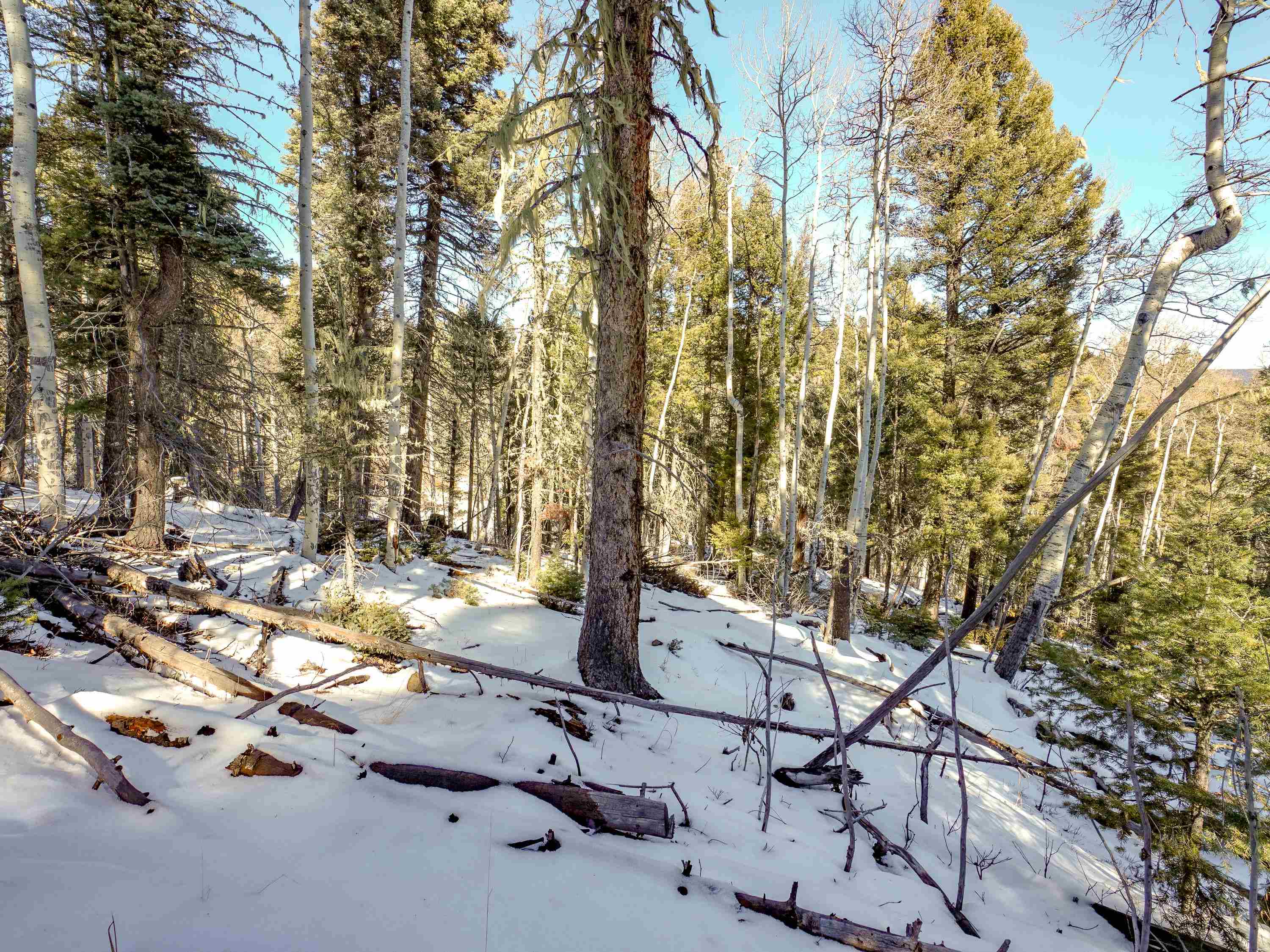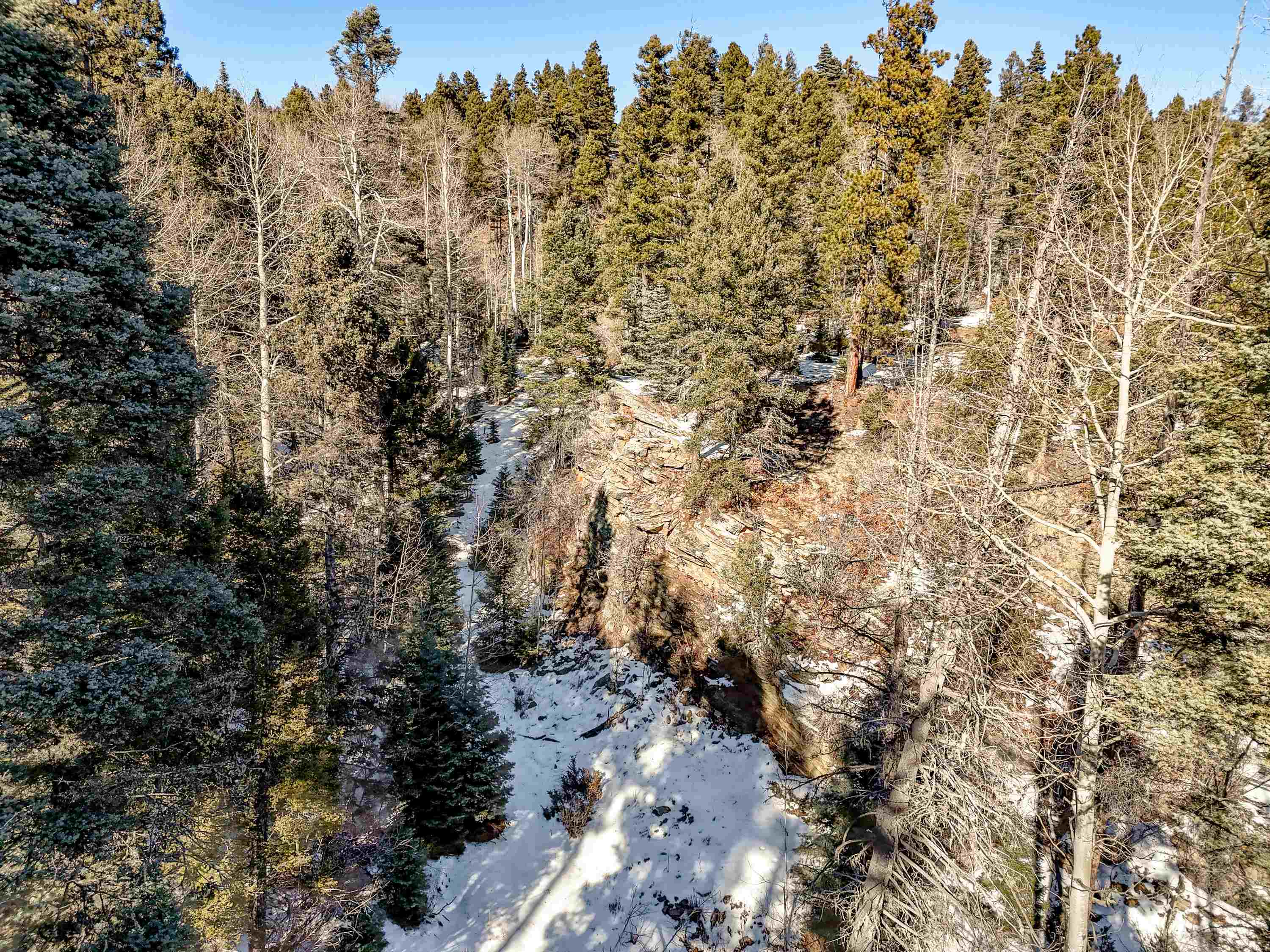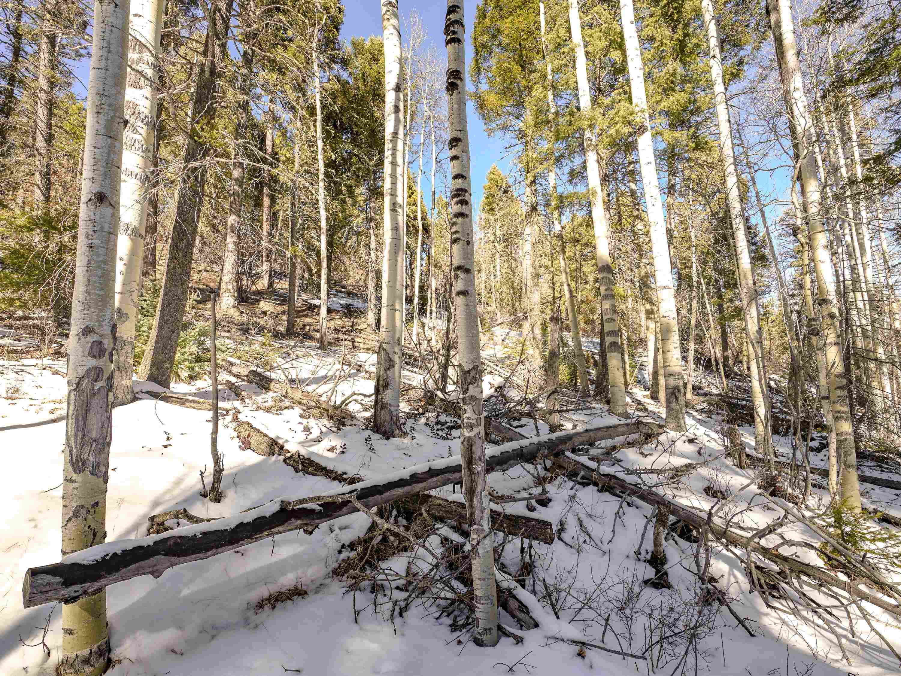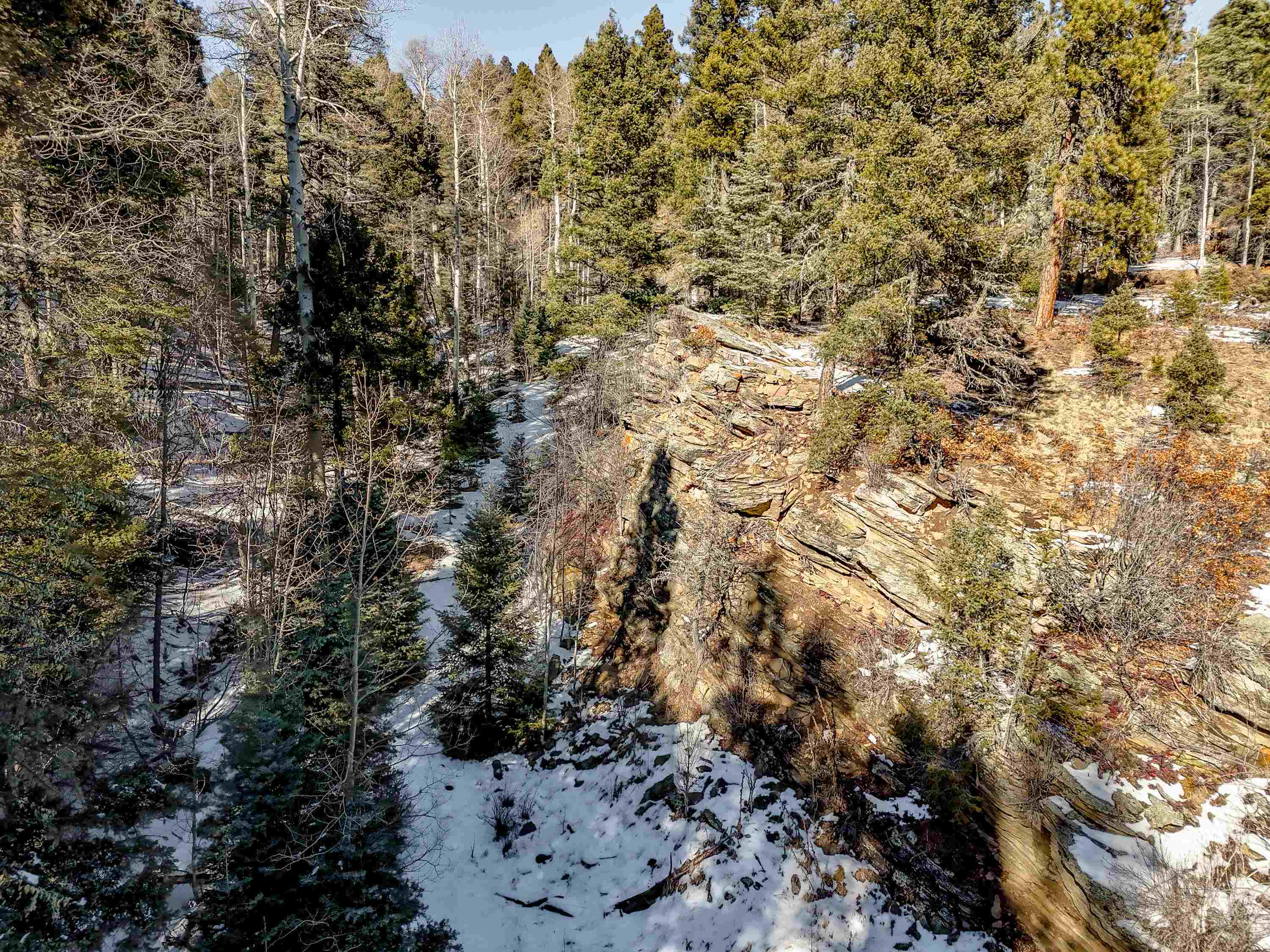 Beautiful 9.68-acre single-family equestrian lot tucked at the end of a quiet cul-de-sac, offering the rare combination of privacy, aspens, and easy year-round access. This stunning parcel feels like you're deep in the mountains, with rugged terrain that includes a mature stand of aspens, a seasonal stream, and a dramatic cliff feature. The topography offers potential for a driveway and building site, with a view corridor across the valley and even a glimpse toward the ski area. Bordering greenbelt, the property feels exceptionally secluded, with room to create private trails and access to the Cougar Trail, yet still just an easy drive to all the amenities of Angel Fire.